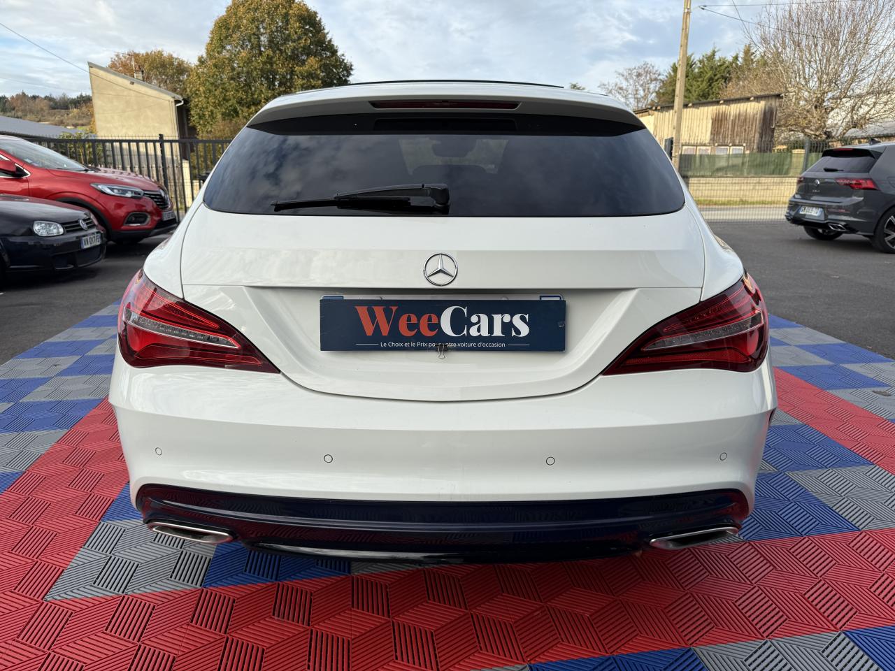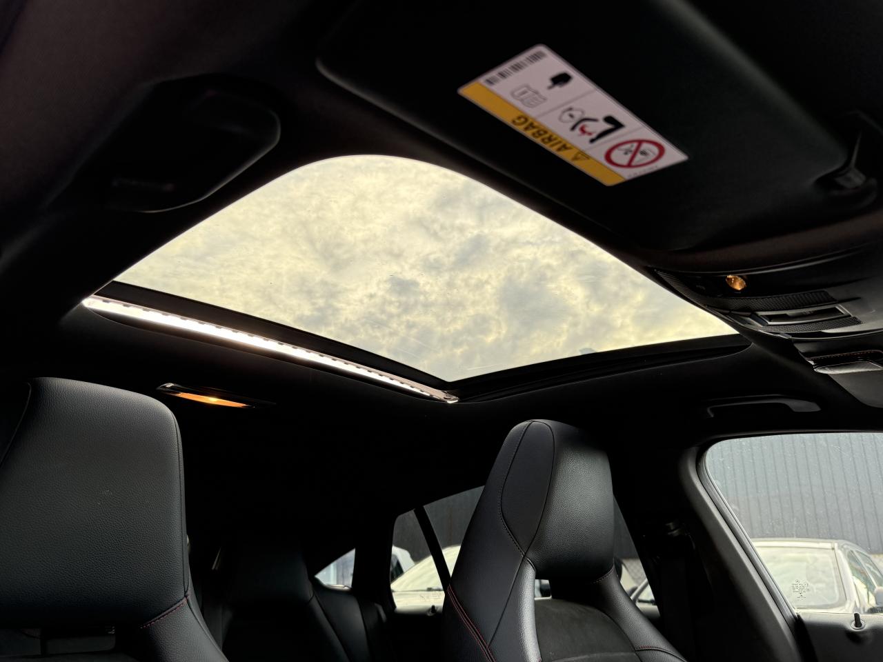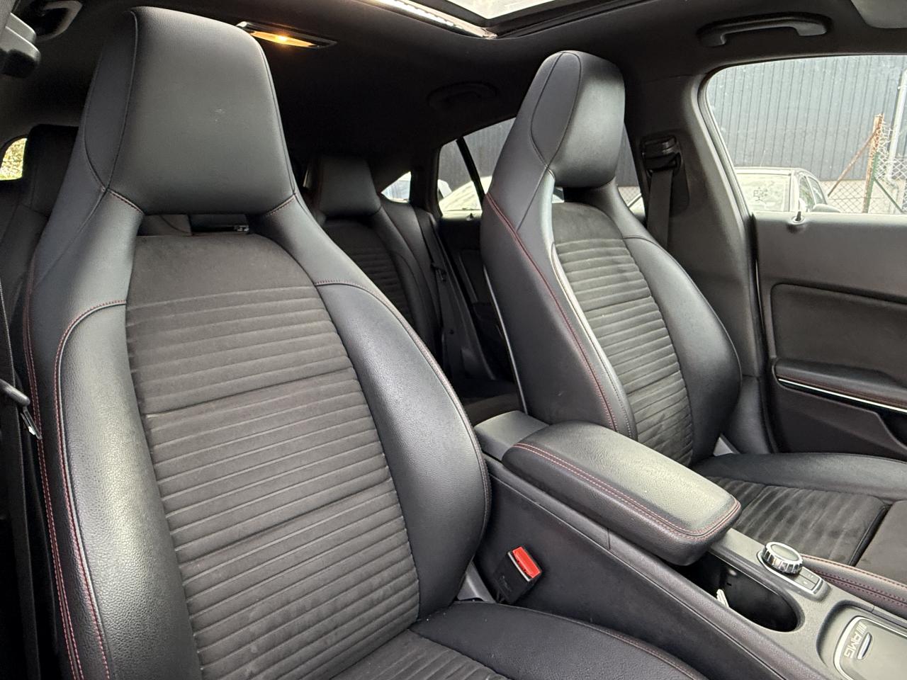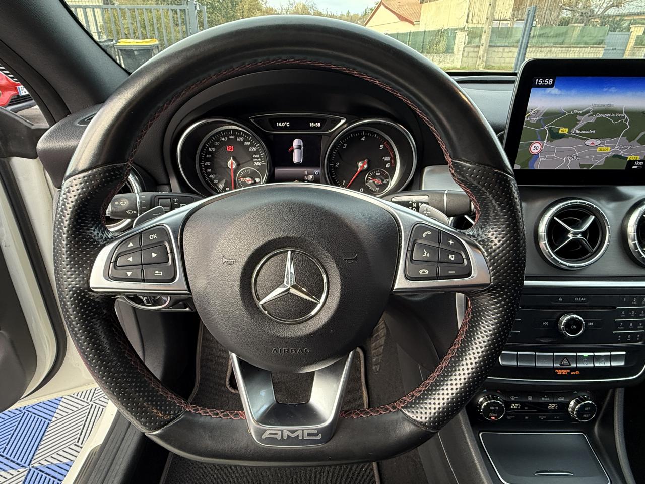 ABS (antiblocage de roues) et ASR (antipatinage)Accoudoir avant fixe avec vide-pochesAccoudoir central avant ajustable avec vide pochesADAPTIVE BRAKE avec fonction HOLD et aide au démarrage en côteAirbag genoux conducteurAirbags bassin intégrés aux sièges conducteur et passager avantAirbags frontaux à plusieurs seuils de déclenchement pour le conducteur et le passager avantAirbags latéraux et airbags rideauxAssistant de feux de routeAttention Assist : système de détection de somnolenceAudio 20 CD avec écran couleur 17,8 cm (7") et pré-installation pour Garmin MAP PILOT. Radio, double tuner, lecteur CD, Bluetooth, 2 ports USB et 1 SD card. Interface Média pour iPod ou iPhone intégréeBanquette arrière inclinable en position cargoBanquette arrière rabattable 1/3-2/3BAS (freinage d'urgence assisté)Boîte à gants éclairéeBoîte automatique à double embrayage 7 rapports 7G-DCT avec palettes de commandes au volantBuses d’aération avec cerclage et croix centrale chromés argentésCaméra de recul avec lignes de guidage et vue 180°Capot moteur actifCasier de rangement sous le plancher du coffreCeintures de sécurité à 3 points à toutes les placesCiel de pavillon noirClé design chroméeClignotant avec commande confort par impulsionsClimatisation automatique confort THERMOTRONIC à 2 zones avec affichage digital et réglages séparés conducteur/passagerColonne de direction réglable mécaniquement en hauteur et en profondeurCombiné d'instruments couleurs à 2 cadrans analogiques et visuel multifonctionsConnexion Bluetooth pour téléphone portable et clavier numérique intégréContrôle de pression des pneus ( TPMS )Couvercle sur vide-poches à l'avantDésactivation automatique de l'airbag passager AVDétecteur d'occupation du siège passager avantDétecteur de pluie et allumage automatique des projecteursDéverrouillage électrique du coffre depuis l'habitacleDirection paramétrique sportDYNAMIC SELECT : 4 modes de conduite (Confort, Sport, Eco ou Personnalisé) agissant sur le moteur et sa sonorité, la transmission et le train de roulementEclairage de secours en cas d'accidentESP (régulation de comportement dynamique)Feux antibrouillard arrièreFeux stop adaptatifsFiltre à particulesFixations ISOFIX pour sièges enfants sur places arrièreFonction d'arrêt/redémarrage "Stop/Start ECO" avec commutateur de désactivation manuelleFrein de parking électriqueFreinage d'urgence assisté actif : système d'avertissement des risques de collision et de pré-freinage incluant l'assistance au freinage adaptifGrand écran central 20,3 cm (8")Hayon EASY-PACK à ouverture/fermeture automatiqueIndicateur de température extérieureIndicateur dynamique de maintenance (ASSYST PLUS)Interface Média USB dans l'accoudoir central avantJantes alliage AMG 46 cm (18") design 5 doubles branches bicolores avec pneus 225/40 R18Kit anti-crevaison TIREFITLève-vitres électrique (x4) à commande séquentielle et dispositif anti-pincementMercedes-Benz Connect meOrdinateur de bordPack AMG Line extérieurPack AMG Line intérieurPack chrome extérieur incluant ceinture de caisse chroméePack d'éclairage intérieurPack GarminPack Sport BlackPare-chocs couleur carrosseriePilote automatique de stationnement : système d'aide au stationnement avec radars de proximité avant/arrière et fonction manoeuvres automatiquesPlancher du coffre réglable en hauteurPrise 12 V à l'arrièrePrise 12 V dans le compartiment de chargeProjecteurs hautes performances à technologie LED comprenant les feux de jours et la fonction d'éclairage en bleu "Coming Home"Rétroviseurs extérieurs électriques chauffants et asphériques avec rappels de clignotant intégrésRétroviseurs extérieurs rabattables électriquement et rétroviseurs extérieur gauche et intérieur jour/nuit automatiqueSécurité enfant avec verrouillage manuel des portes arrière et électrique des vitres arrièreSiège conducteur à réglages électriques avec fonction Mémoires pour le siège et le rétroviseur extérieur gaucheSiège conducteur réglable manuellement en hauteurSiège passager avant à réglages électriques avec fonction MémoiresSièges Sport intégrauxSoutien lombaire à 4 réglages pour conducteur et passagerTEMPOMAT (régulateur de vitesse) et SPEEDTRONIC (limiteur de vitesse)Toit ouvrant panoramique électrique avec store pare-soleil électrique, fonction de fermeture automatique en cas de pluie et protection anti-pincementVerrouillage centralisé à télécommande avec fonction verrouillage automatique désactivableVitres teintées vertesVolant multifonctions à 12 touches