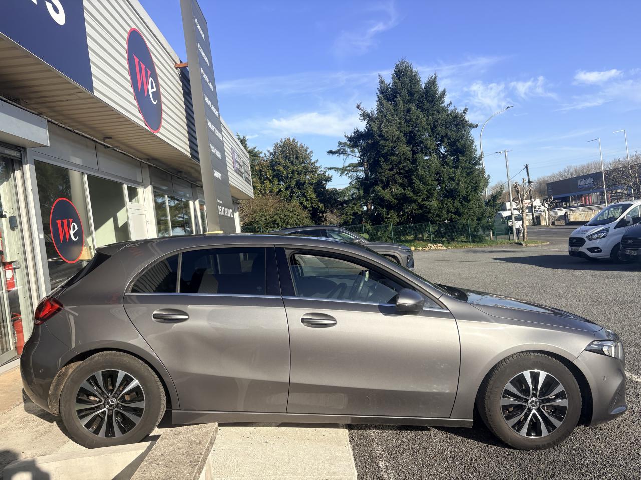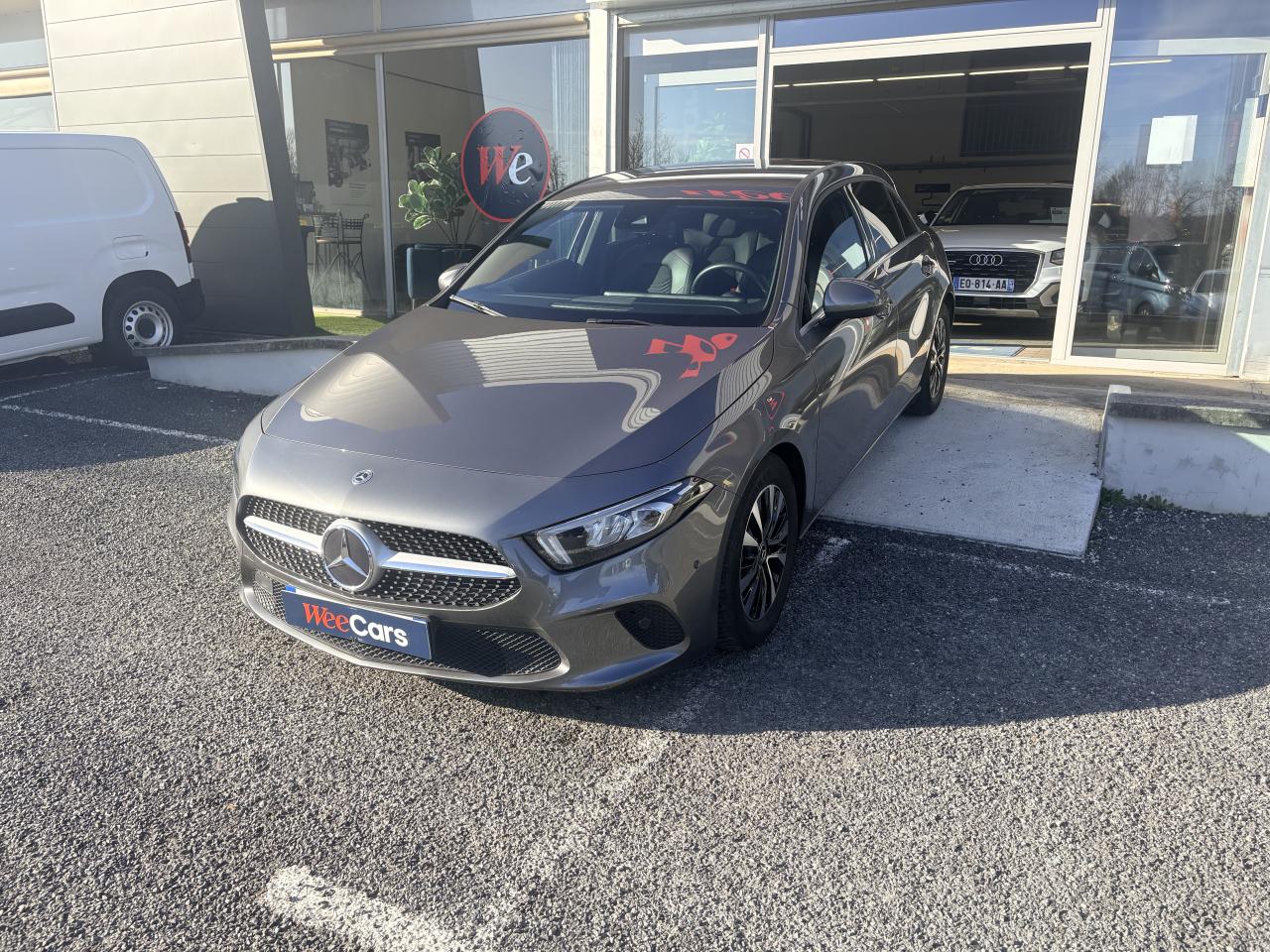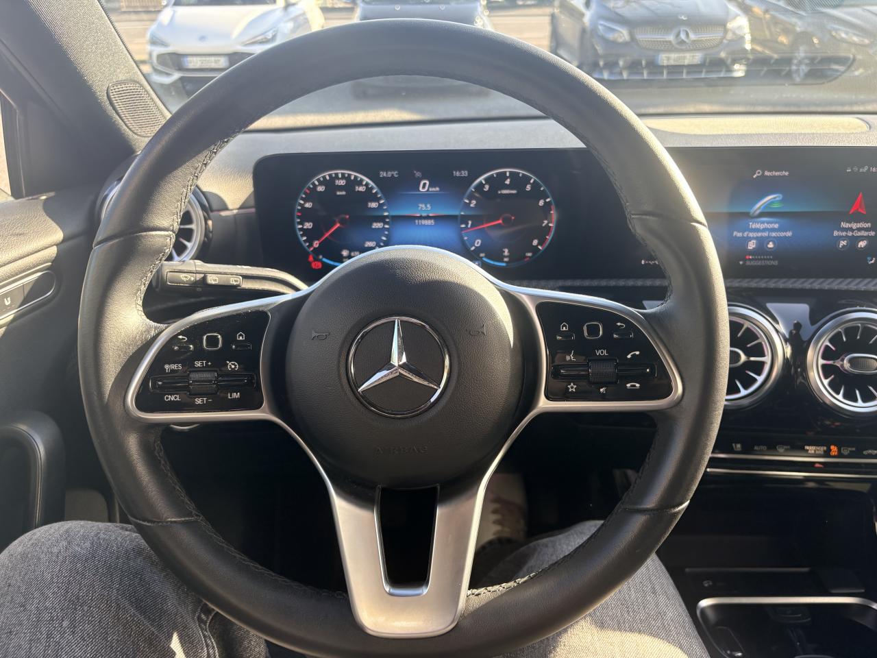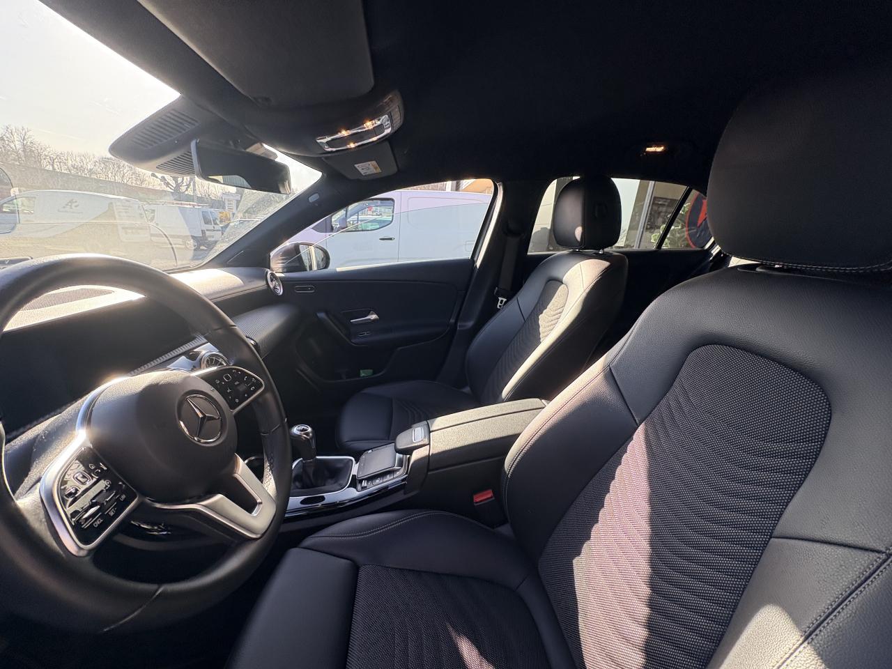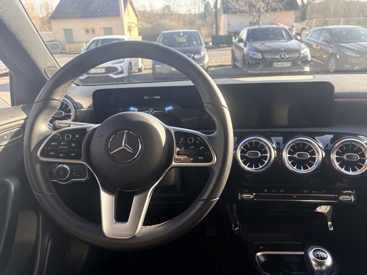 ABS (antiblocage de roues), ASR (antipatinage) et BAS (freinage d'urgence assisté)Accoudoir central avantADAPTIVE BRAKE avec fonction HOLD et aide au démarrage en côte, préremplissage et séchage des freins par freinage en cas de pluieAffichage du non bouclage des ceintures de sécurité aux places arrièreAirbag frontaux conducteur et passagerAirbag genoux conducteurAirbags latéraux (thorax / bassin) avantAirbags rideauxAttention Assist : système de détection de somnolenceAvertisseur de franchissement de ligne actifBaguettes de ligne de ceinture et entourages de vitres chromésBaguettes de seuil avec monogramme "Mercedes-Benz"Boîte à gants éclairéeBoîte de vitesses manuelle 6 rapportsBuses de ventilation noires avec cerclage chroméCalandre diamant avec pastilles noires et lamelle avec insert chroméCaméra de recul avec lignes de guidageCapot moteur actif pour la protection des piétonsCiel de pavillon en tissu noirClimatisation automatique THERMATIC à 1 zone avec filtre à charbons actifs contre la poussière, la suie et le pollenConnexion Bluetooth pour téléphone portableConsole centrale Noir brillantDésactivation automatique de l’airbag passager avantDirection paramétrique asservie à la vitesseDossier AR rabattable 40/20/40Double porte-gobelet dans la console centraleDYNAMIC SELECT avec les programmes de conduite « Confort », « Sport » et « Individual »Eléments de design chromés dont sorties d‘échappement apparentes en chromeEssieu arrière à bras combinésFeux de stop adaptatifsFilets à bagages au dossier des sièges AVFrein de stationnement électriqueFreinage d'urgence assisté actifGarnitures intérieures en tissu /similicuir ARTICOI-Size et Top Tether pour les sièges arrière extérieursInserts décoratifs façon CarboneInterface USB-C dans le vide-poches et dans la console centrale arrièreJantes alliage 43,2 cm (17'') à 5 doubles branches finition noir/naturel brillantKEYLESS-GO : système de démarrage sans cléKit anti-crevaison TIREFITModule de communication LTE pour l'utilisation des services Mercedes me connectPack AdvantagePack Confort SiègesPack Stationnement avec caméra de reculPack visibilitéPavé tactile TouchpadPeinture noirePré-équipement pour l'autopartage via l'application Mercedes me Car SharingPré-équipement pour Live Traffic Information (service gratuit pendant 3 ans après activation Mercedes me)Pré-équipement pour réglages et suivi du véhicule à distance (service gratuit pendant 3 ans après activation Mercedes me)Prise 12V dans le vide poche de la console centraleProjecteurs hautes performances à technologie LEDRainsensor (Capteur de pluie et de luminosité)Réception radio numérique (DAB)Reconnaissance des panneaux de limitation de vitesseSiège conducteur avec réglages de la hauteur et de l'approche du siège, de l'inclinaison du dossier, de l'inclinaison de l'assise, de la profondeur de l'assiseSièges AV confortsSorties d'échappement apparentes en chrome (non fonctionnelles)Système d'Appel d'Urgence Mercedes-BenzSystème de commande vocale et assistant personnel activable grâce à "Hey Mercedes"Système de contrôle de la pression des pneusSystème de stabilisation en cas de vent latéralSystème multimédia MBUX avec fonctionnalités élargies (profils personnalisés, fonctions prédictives, borne Wifi, webradio)Tapis de sol en veloursTEMPOMAT (régulateur et limiteur de vitesse)Train de roulement confort avec châssis surbaisséVolant sport multifonction en cuir avec boutons tactiles Touch-Control, cache chromé et surpiqûres noires