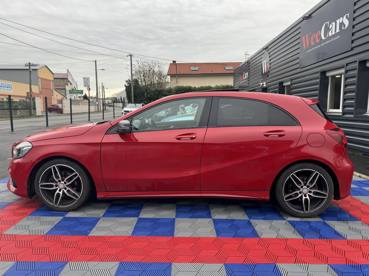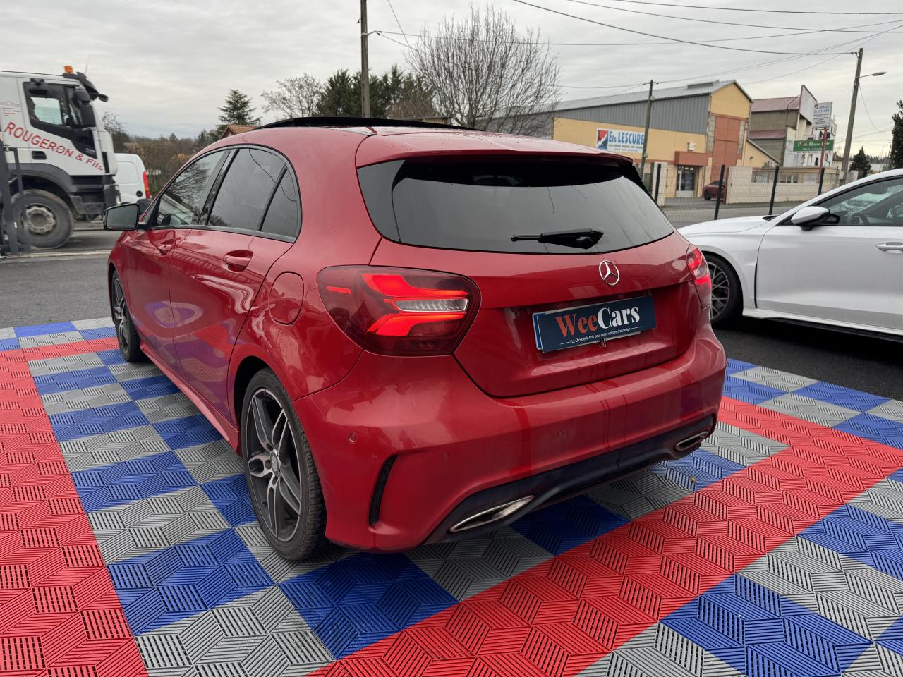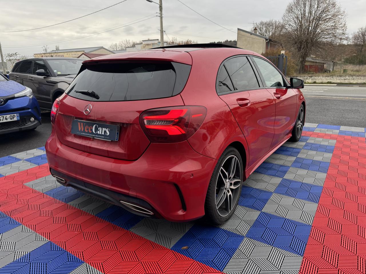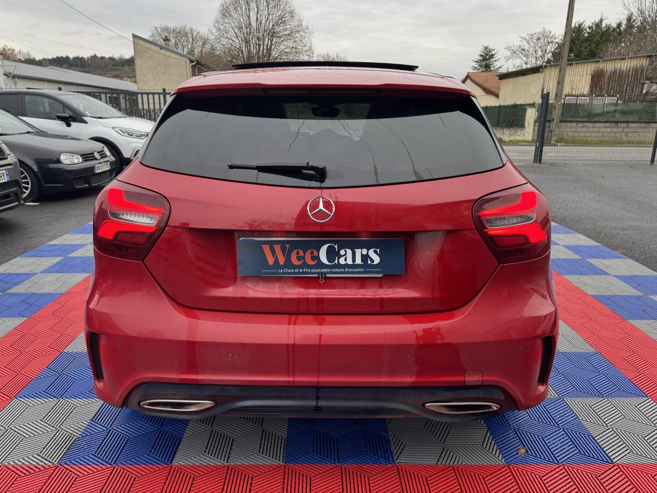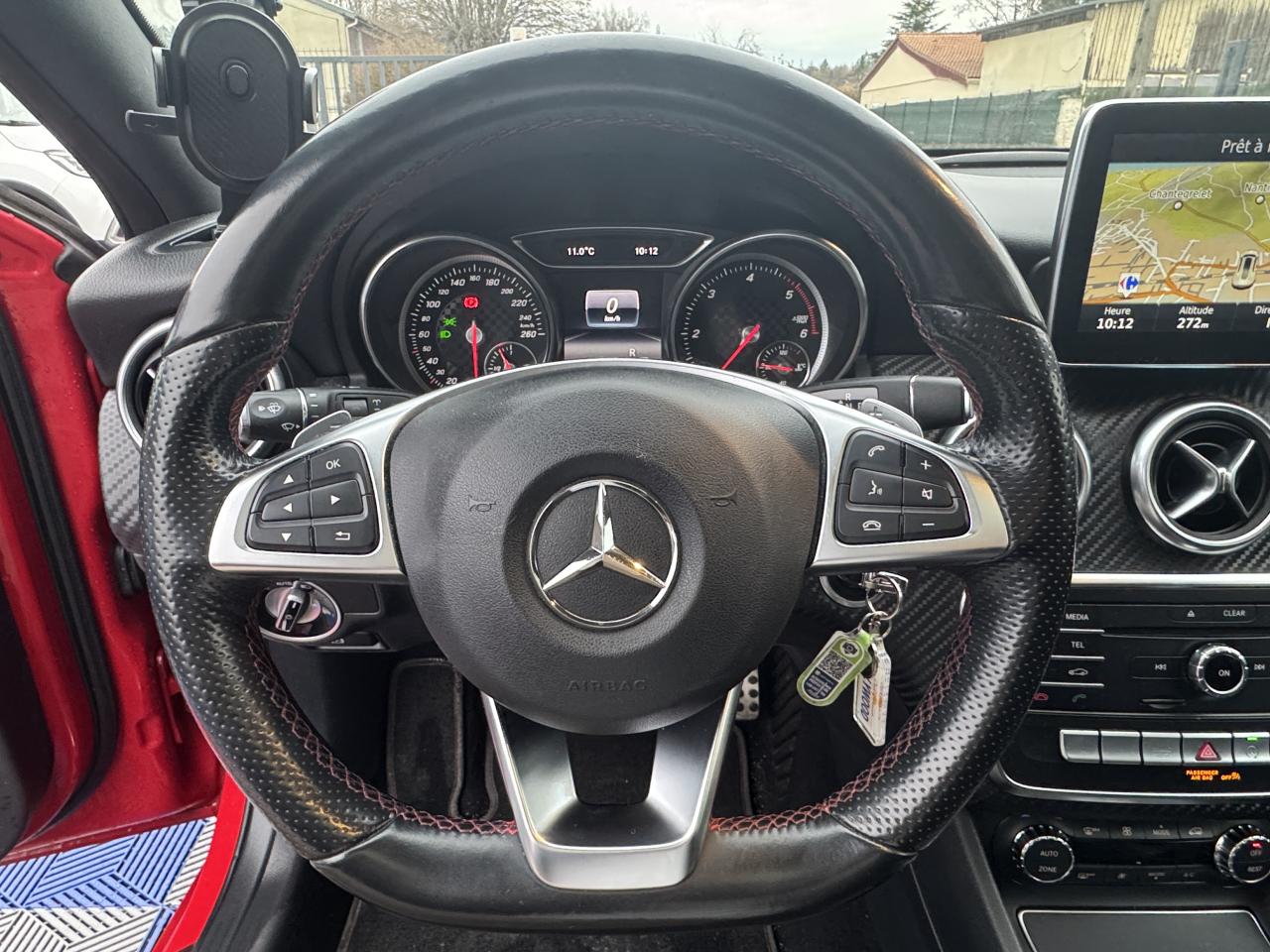 ABS (antiblocage de roues) et ASR (antipatinage)Accoudoir avant avec vide-pochesADAPTIVE BRAKE avec fonction HOLD et aide au démarrage en côteAirbag genoux conducteurAirbags bassin intégrés aux sièges conducteur et passager avantAirbags frontaux à plusieurs seuils de déclenchement pour le conducteur et le passager avantAirbags latéraux et airbags rideauxAllumage automatique des projecteursAPA (Aide au Parking Active)Attention Assist : système de détection de somnolenceAudio 20 CD avec écran couleur 17,8 cm (7"), pré-installation pour Garmin MAP PILOT, radio, double tuner, lecteur CD, Bluetooth, 2 ports USB et 1 SD cardAvertisseur de perte de pression des pneusBaguette de ligne de ceinture noir matBanquette arrière rabattable 1/3-2/3BAS (freinage d'urgence assisté)Boîte à gants éclairéeBoîte de vitesses automatique à double embrayage 7 rapports 7G-DCT avec palettes de commandes au volantCaméra de recul avec lignes de guidageCapot moteur actifCapteur de pluieCeintures de sécurité à 3 points à toutes les placesCendriers à l'avant et à l'arrièreClé design chroméeClignotant avec commande confort par impulsionsClimatisation automatique confort THERMOTRONIC à 2 zones avec affichage digital et réglages séparés conducteur/passagerCOLLISION PREVENTION ASSIST PLUS: système d'avertissement des risques de collision avec assistant de freinage adaptatifColonne de direction réglable mécaniquement en hauteur et en profondeurCombiné d'instrument couleurCombiné d'instruments à 2 cadrans analogiques et visuel multifonctionsCombiné d'instruments sportConnexion Bluetooth pour téléphone portable et clavier numérique intégréContrôle de la pression des 4 pneus et alerte conducteur dans le combiné d'instrumentsDésactivation automatique de l'airbag passager AVDétecteur d'occupation du siège passager avantDirection paramétrique sportDynamic Select: 4 modes de conduite (Confort, Sport, Eco ou Personnalisé) agissant sur le moteur, la transmission, la suspension et la directionEclairage de secours en cas d'accidentÉléments décoratifs intérieurs et buses d'aération chromésESP (régulation de comportement dynamique)Feux antibrouillard arrièreFeux de stop adaptatifsFeux halogènesFiltre à particulesFonction d'arrêt/redémarrage "Stop/Start ECO" avec commutateur de désactivation manuelleFrein de parking électriqueGrand écran central 20,3 cm (8")Indicateur de température extérieureIndicateur dynamique de maintenance (ASSYST PLUS)Interface média USB dans la console centrale (2 ports USB et 1 port SD Card)ISOFIX : fixations des sièges-enfants arrière (places extérieures)Jantes alliage AMG 18" à 5 double-branches bicolores avec pneus 225/40 R18Kit anti-crevaison TIREFITLève-vitres électrique (x4) à commande séquentielle et dispositif anti-pincementMercedes connect me : Système d'Appel d'Urgence Mercedes-BenzNavigateur Internet sur l'écran centralOrdinateur de bordPack AMG Line ExtérieurPack AMG Line IntérieurPack d'éclairage intérieurPack GarminPack Sport BlackPare-chocs couleur carrosserieProjecteurs hautes performances à technologie LED comprenant les feux de jours et la fonction d'éclairage en bleu "Coming Home"Réglage électrique de la profondeur d'assiseRétroviseurs et poignées de portes de couleur carrosserieRétroviseurs extérieurs électriques chauffants et asphériques avec rappels de clignotant intégrésRétroviseurs extérieurs rabattables électriquement et rétroviseurs extérieur gauche et intérieur jour/nuit automatiqueSécurité enfant avec verrouillage manuel des portes arrière et électrique des vitres arrièreSélecteur multifonctions chroméSiège conducteur réglable manuellement en hauteurSièges avant avec design spécifique et réglages manuel de l'inclinaison des assises et de la hauteur du siège passagerSièges Sport intégrauxSortie d'échappement dissimulée dans le pare-choc arrièreTEMPOMAT (régulateur de vitesse) et SPEEDTRONIC (limiteur de vitesse)Toit ouvrant panoramique électrique avec store pare-soleil électrique, fonction de fermeture en cas de pluie et protection anti-pincementVerrouillage centralisé à télécommande avec fonction verrouillage automatique désactivableVitres latérales arrière et lunette arrière teintées foncéesVitres teintées vertesVolant 3 branches en cuirVolant multifonctions à 12 touches