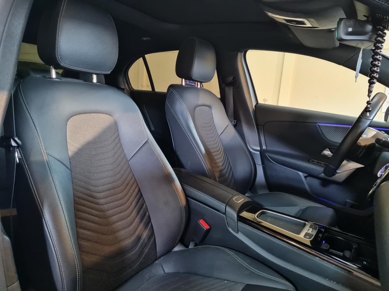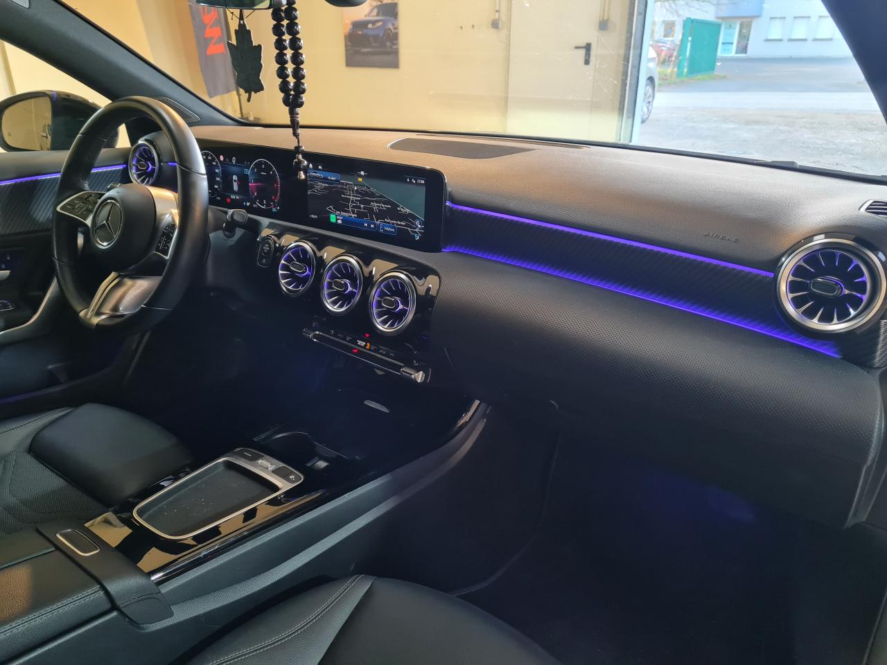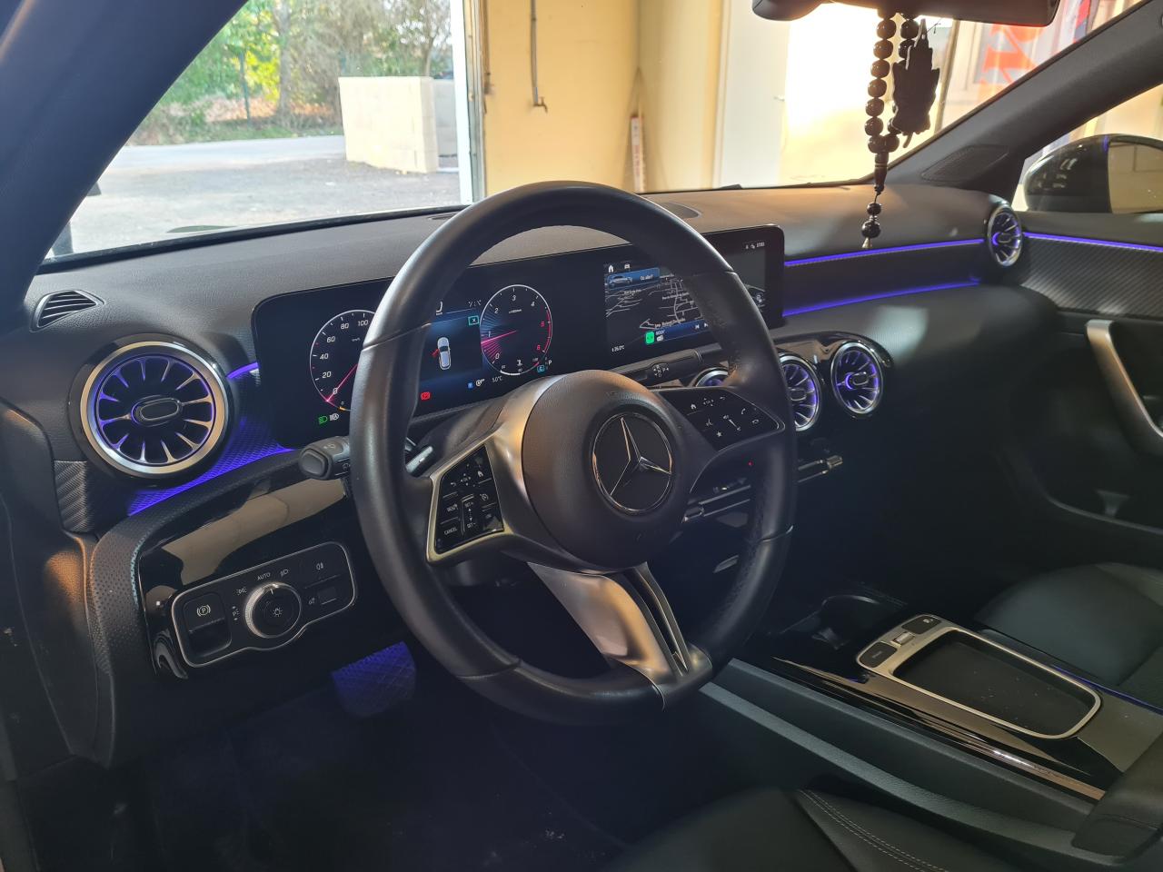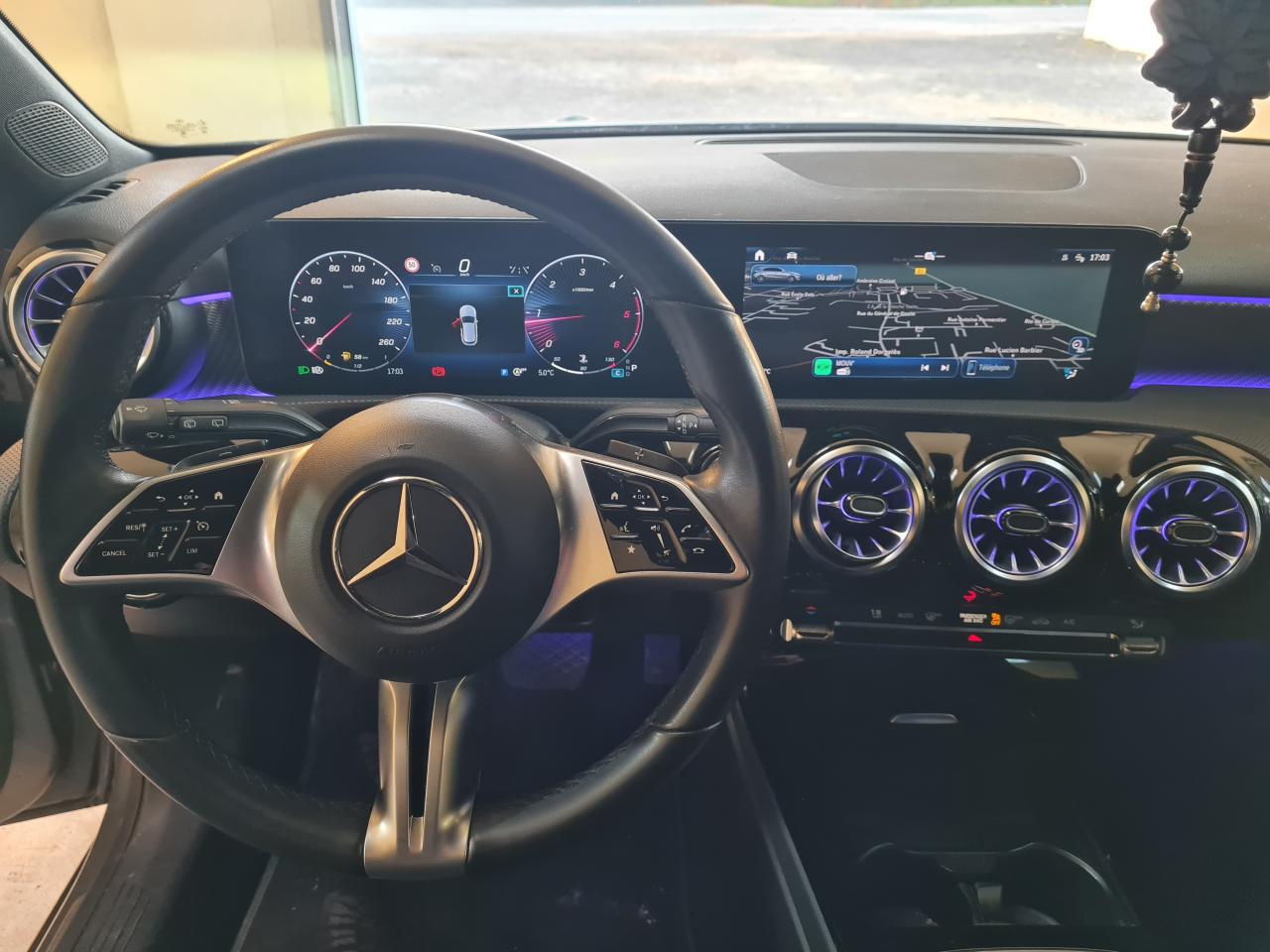 ABS (antiblocage de roues), ASR (antipatinage) et BAS (freinage d'urgence assisté)Accoudoir central avant rabattableADAPTIVE BRAKE avec fonction HOLD et aide au démarrage en côte, préremplissage et séchage des freins par freinage en cas de pluieAffichage du non bouclage des ceintures de sécurité aux places arrièreAirbag frontaux conducteur et passagerAirbag genoux conducteurAirbags latéraux avantAirbags rideauxAssistant de franchissement de ligne actifAssistant de limitation de vitesse par lecture des panneaux grâce à une caméraAttention Assist : système de détection de somnolenceBaguettes de ligne de ceinture et entourages de vitres chromésBaguettes de seuil avec monogramme "Mercedes-Benz"Boîte à gants éclairéeBoîte de vitesses à double embrayage 8G-DCTBuses de ventilation dans le ton noir avec bague extérieure en argent matCalandre avec motif Mercedes-Benz en noir brillant et étoile centrale Mercedes ainsi que lamelle unique gris mat avec insert chroméCapot moteur actif pour la protection des piétonsCapot moteur avec bossages stylisésCiel de pavillon en tissu noirClimatisation automatique THERMATIC à 1 zone avec filtre à charbons actifs contre la poussière, la suie et le pollenConnexion Bluetooth pour téléphone portableConsole centrale avec cache coulissant, vide-poches et double porte-gobeletsContrôle de la pression des pneumatiquesDésactivation automatique de l'airbag passager AVDétecteur de pluie et allumage automatique des projecteursDirection paramétrique assistée et asservie à la vitesseDossiers des sièges arrière rabattables selon un rapport de 40/20/40DYNAMIC SELECT avec les programmes de conduite « ECO », « Confort », « Sport » et « Individual »Ecran couleur tactile 10,25''Essieu arrière à bras combinésFeux de route adaptatifsFeux stop adaptatifsFilet au dos des sièges avantFixations iSize pour siège-enfant avec sangle Top Tether aux places extérieures arrièreFrein de stationnement électriqueFreinage d'urgence assisté actif (alerte visuelle et sonore en cas de risque de collision et freinage d'urgence autonome dans certaines conditions)Garniture de siège en similicuir ARTICO/tissu Bertrix noirHabillage des bas de caisse dans le ton carrosserieInsert chromé au niveau de la jupe arrièreInserts décoratifs façon carbone foncéInstrumentation digitale avec écran 10,25''Jantes alliage 43,2 cm (17") à 10 branches, optimisées sur le plan aérodynamique, finition noir/naturel brillantJupe avant avec insert chroméKEYLESS-GO : système de démarrage sans cléKit anti-crevaison TIREFITModule de communication LTE pour l'utilisation des services Mercedes me connectNavigation MBUX PremiumPack Confort siègesPack Connectivité confortPack RétroviseursPack StationnementPack Stationnement avec caméra de reculPack USB PlusPack VisibilitéPeinture noire nocturnePneus étéPré-équipement pour l'autopartage via l'application Mercedes me Car SharingPré-équipement pour la surveillance du véhiculePré-équipement pour Live Traffic Information et communication Car-to-X,utilisable gratuitement pendant 7 ans à partir de l’activationPré-équipement pour services à distance via l'application Mercedes me sur smartphone (service gratuit pendant 3 ans après activation Mercedes me)Projecteurs hautes performances à technologie LEDRadio Numérique DABSièges avant "Confort"Soutien lombaire à 4 réglages pour conducteur et passagerSystème d'Appel d'Urgence Mercedes-BenzSystème de commande vocale et assistant personnel activable grâce à "Hey Mercedes"Système de stabilisation en cas de vent latéralSystème multimédia MBUX avec fonctionnalités élargies (profils personnalisés, fonctions prédictives, borne Wifi, webradio)Tapis de sol en veloursTEMPOMAT (régulateur et limiteur de vitesse)Train de roulement confort avec châssis surbaisséVolant sport multifonctions à 3 branches en cuir avec commandes tactiles à gauche et à droite et palettes de changement de rapport au volant noires