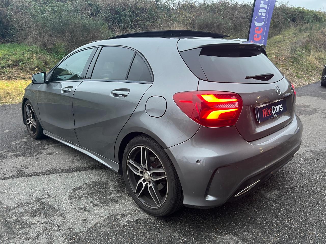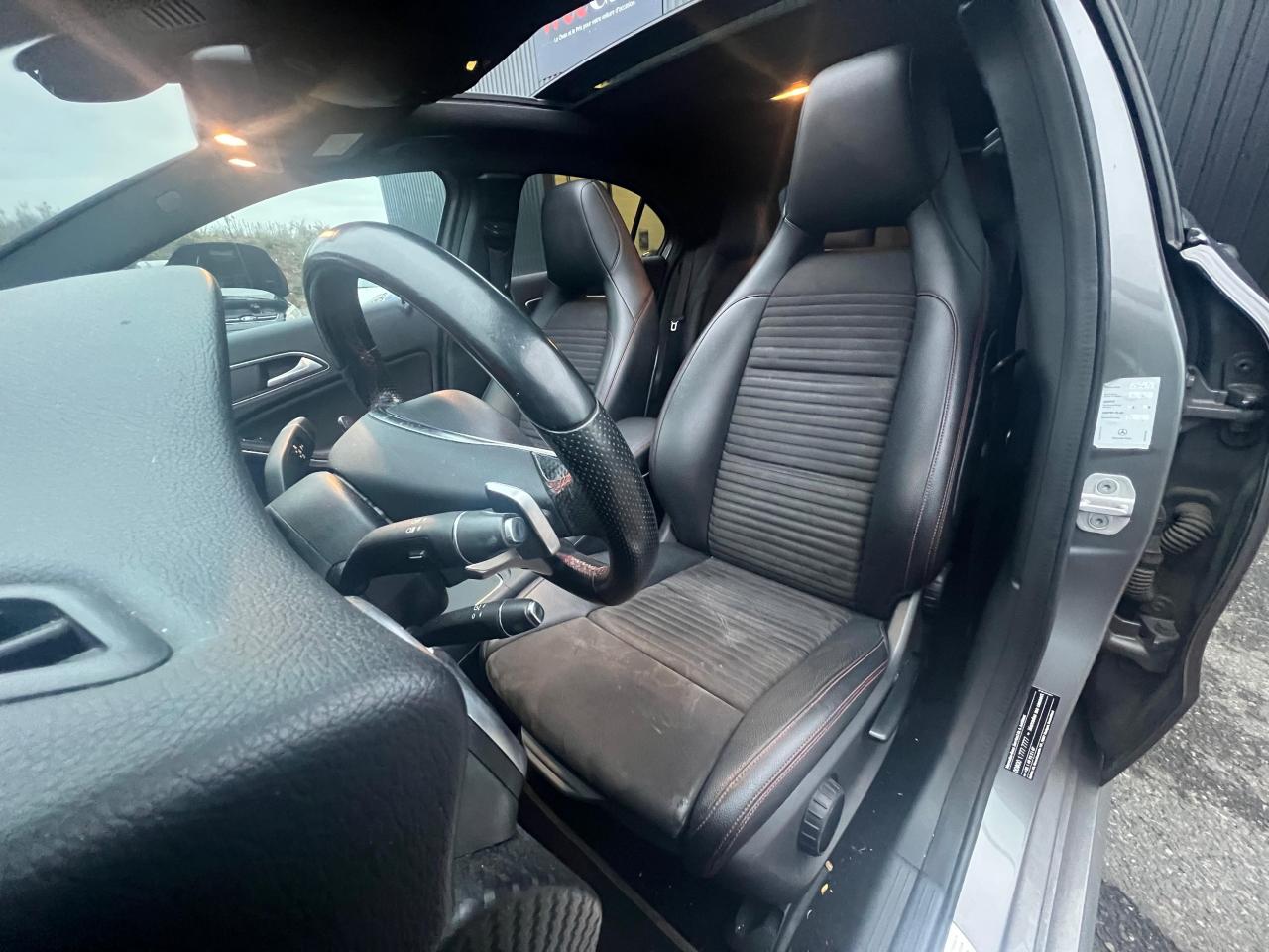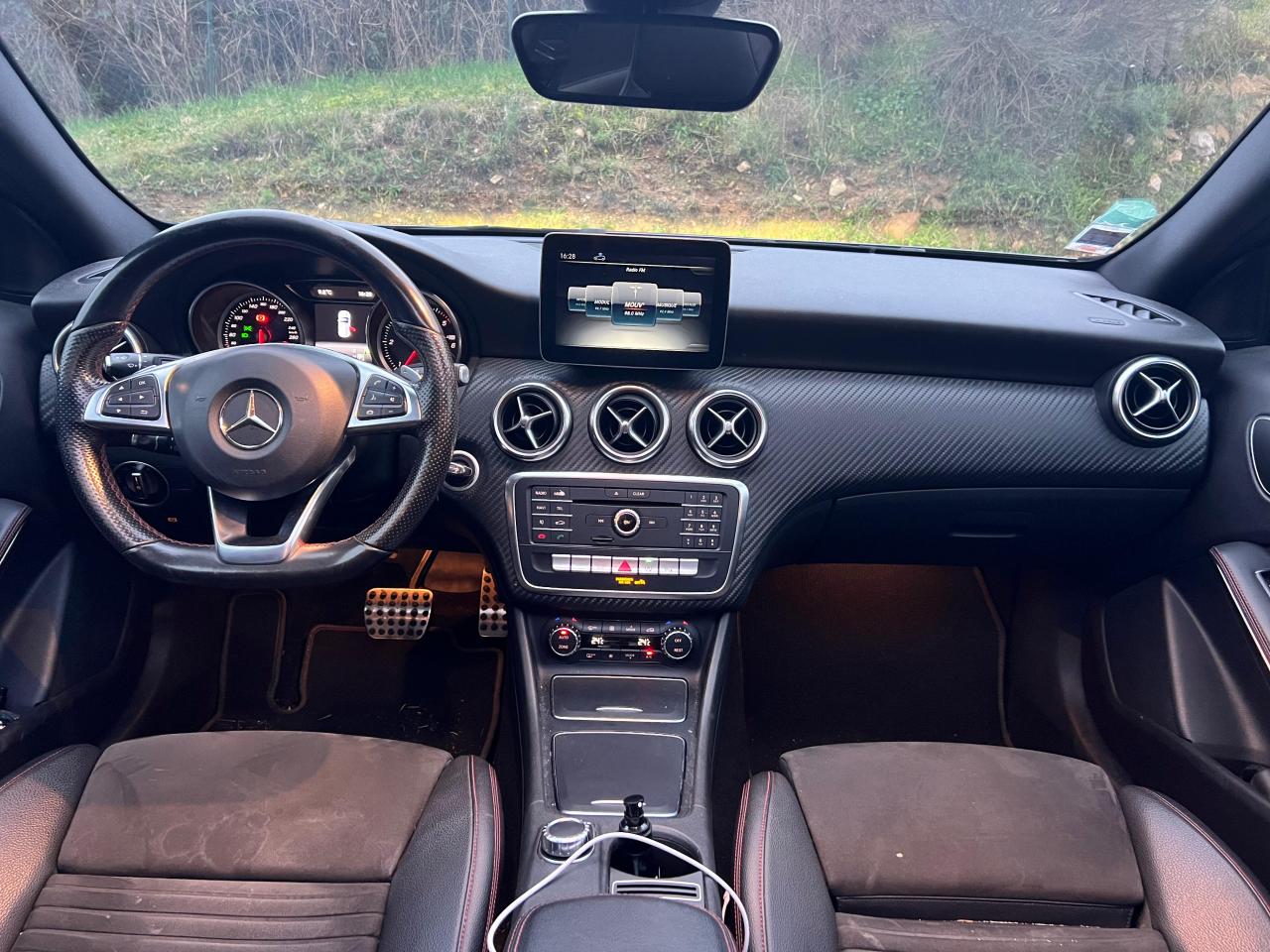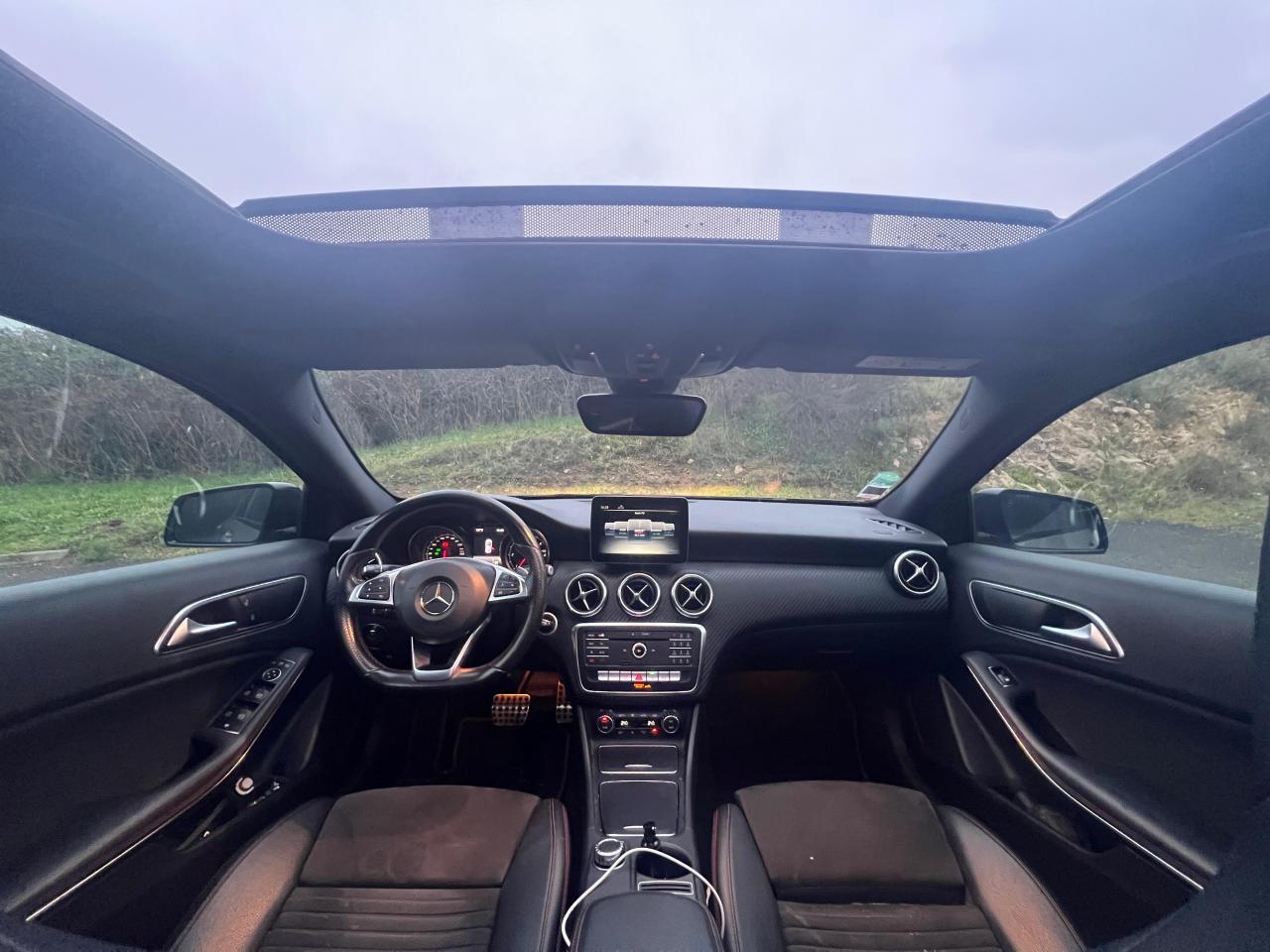ABS (antiblocage de roues) et ASR (antipatinage)Accoudoir avant avec vide-pochesADAPTIVE BRAKE avec fonction HOLD et aide au démarrage en côteAirbag genoux conducteurAirbags bassin intégrés aux sièges conducteur et passager avantAirbags frontaux à plusieurs seuils de déclenchement pour le conducteur et le passager avantAirbags latéraux et airbags rideauxAllumage automatique des projecteursAttention Assist : système de détection de somnolenceAudio 20 CD avec écran couleur 17,8 cm (7"), pré-installation pour Garmin MAP PILOT, radio, double tuner, lecteur CD, Bluetooth, 2 ports USB et 1 SD cardAvertisseur de perte de pression des pneusBanquette arrière rabattable 1/3-2/3BAS (freinage d'urgence assisté)Boîte à gants éclairéeBoîte de vitesses automatique à double embrayage 7 rapports 7G-DCT avec palettes de commandes au volantCaméra de recul avec lignes de guidageCapot moteur actifCapteur de pluieCeintures de sécurité à 3 points à toutes les placesCendriers à l'avant et à l'arrièreClé design chroméeClignotant avec commande confort par impulsionsClimatisation automatique confort THERMOTRONIC à 2 zones avec affichage digital et réglages séparés conducteur/passagerCOLLISION PREVENTION ASSIST PLUS: système d'avertissement des risques de collision avec assistant de freinage adaptatifColonne de direction réglable mécaniquement en hauteur et en profondeurCombiné d'instruments à 2 cadrans analogiques et visuel multifonctionsConnexion Bluetooth pour téléphone portable et clavier numérique intégréContrôle de la pression des 4 pneus et alerte conducteur dans le combiné d'instrumentsDésactivation automatique de l'airbag passager AVDétecteur d'occupation du siège passager avantDirection paramétrique sportDouble sortie d'échappement ovale chroméeDynamic Select: 4 modes de conduite (Confort, Sport, Eco ou Personnalisé) agissant sur le moteur, la transmission, la suspension et la directionEclairage de secours en cas d'accidentÉléments décoratifs intérieurs et buses d'aération chromésESP (régulation de comportement dynamique)Feux antibrouillard arrièreFeux de stop adaptatifsFeux halogènesFiltre à particulesFonction d'arrêt/redémarrage "Stop/Start ECO" avec commutateur de désactivation manuelleFrein de parking électriqueGrand écran central 20,3 cm (8")Indicateur de température extérieureIndicateur dynamique de maintenance (ASSYST PLUS)Interface média USB dans la console centrale (2 ports USB et 1 port SD Card)ISOFIX : fixations des sièges-enfants arrière (places extérieures)Jantes alliage AMG 18" à 5 double-branches bicolores avec pneus 225/40 R18Kit anti-crevaison TIREFITLève-vitres électrique (x4) à commande séquentielle et dispositif anti-pincementMercedes connect me : Système d'Appel d'Urgence Mercedes-BenzNavigateur Internet sur l'écran centralOrdinateur de bordPack AMG Line ExtérieurPack AMG Line IntérieurPack d'éclairage intérieurPack GarminPack Sport BlackPare-chocs couleur carrosseriePilote automatique de stationnement avec radar de proximité avant/arrièrePoignées de portes couleur carrosserieProjecteurs hautes performances à technologie LED comprenant les feux de jours et la fonction d'éclairage en bleu "Coming Home"Réglage électrique de la profondeur d'assiseRétroviseurs extérieurs électriques chauffants et asphériques avec rappels de clignotant intégrésRétroviseurs extérieurs rabattables électriquement et rétroviseurs extérieur gauche et intérieur jour/nuit automatiqueSécurité enfant avec verrouillage manuel des portes arrière et électrique des vitres arrièreSélecteur multifonctions chroméSiège conducteur réglable manuellement en hauteurSièges avant avec design spécifique et réglages manuel de l'inclinaison des assises et de la hauteur du siège passagerSièges Sport intégrauxSortie d'échappement dissimulée dans le pare-choc arrièreTEMPOMAT (régulateur de vitesse) et SPEEDTRONIC (limiteur de vitesse)Toit ouvrant panoramique électrique avec store pare-soleil électrique, fonction de fermeture en cas de pluie et protection anti-pincementVerrouillage centralisé à télécommande avec fonction verrouillage automatique désactivableVitres teintées vertesVolant multifonctions à 12 touches