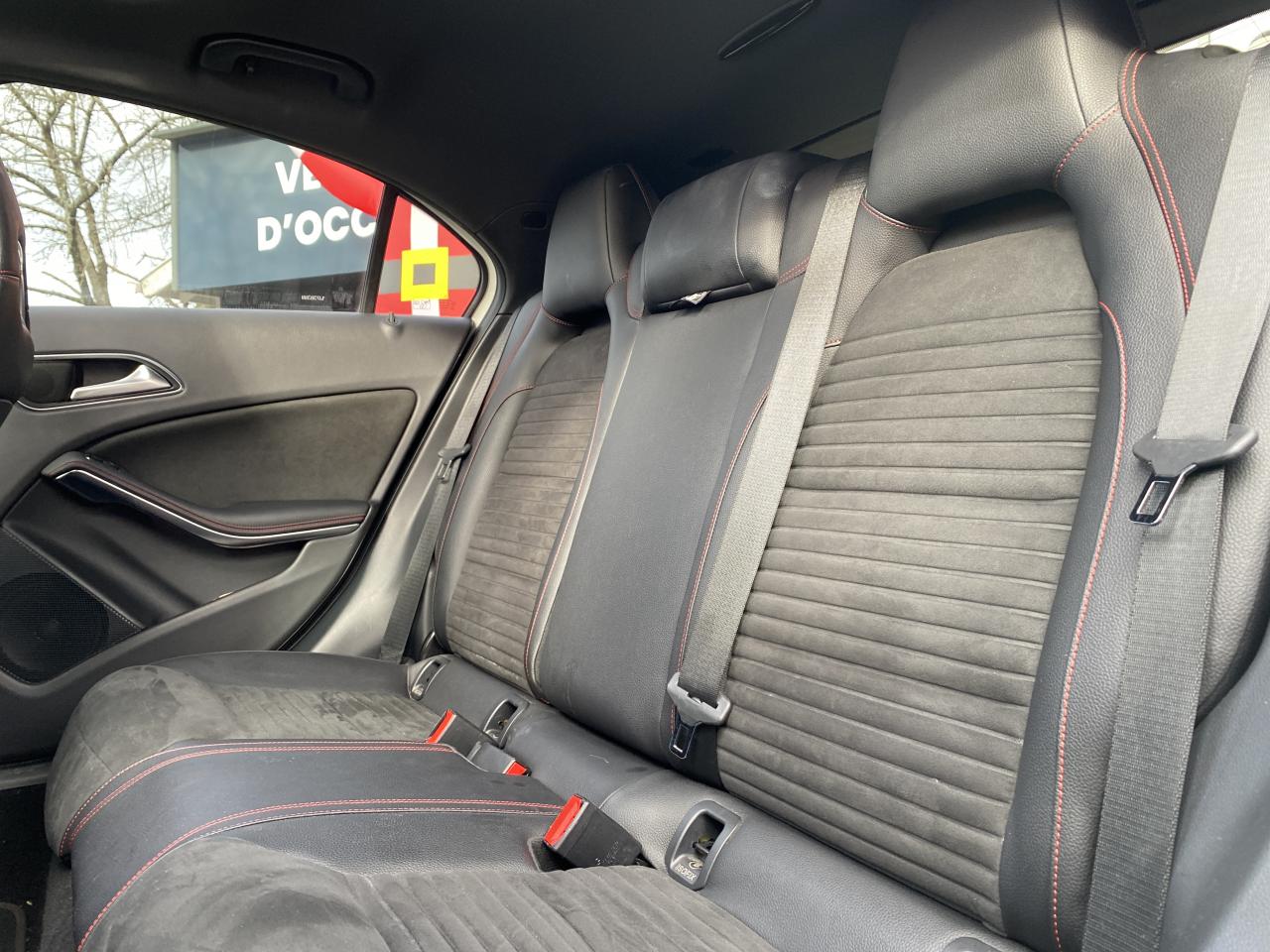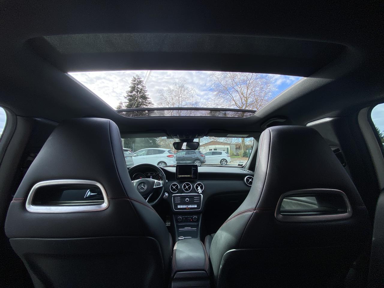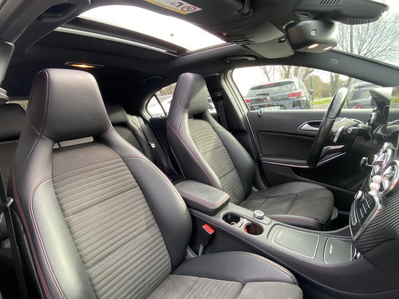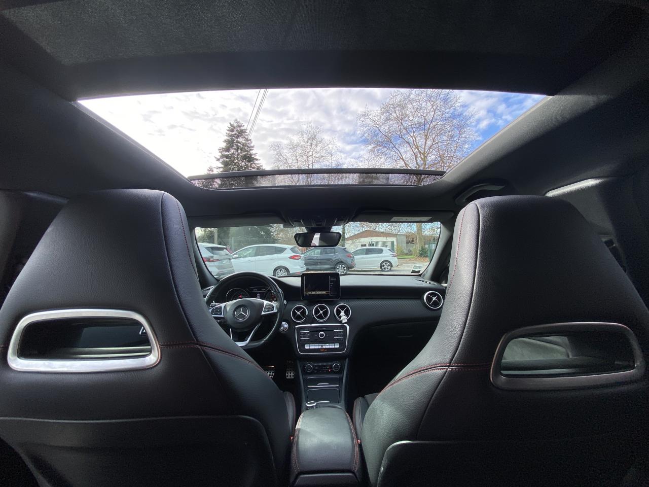 ABS (antiblocage de roues) et ASR (antipatinage)Accoudoir avant avec vide-pochesADAPTIVE BRAKE avec fonction HOLD et aide au démarrage en côteAirbag genoux conducteurAirbags bassin intégrés aux sièges conducteur et passager avantAirbags frontaux à plusieurs seuils de déclenchement pour le conducteur et le passager avantAirbags latéraux et airbags rideauxAllumage automatique des projecteursAttention Assist : système de détection de somnolenceAudio 20 CD avec écran couleur 17,8 cm (7"), pré-installation pour Garmin MAP PILOT, radio, double tuner, lecteur CD, Bluetooth, 2 ports USB et 1 SD cardAvertisseur de perte de pression des pneusBanquette arrière rabattable 1/3-2/3BAS (freinage d'urgence assisté)Boîte à gants éclairéeBoîte de vitesses automatique à double embrayage 7 rapports 7G-DCT avec palettes de commandes au volantCaméra de recul avec lignes de guidageCapot moteur actifCapteur de pluieCeintures de sécurité à 3 points à toutes les placesCendriers à l'avant et à l'arrièreClé design chroméeClignotant avec commande confort par impulsionsClimatisation automatique confort THERMOTRONIC à 2 zones avec affichage digital et réglages séparés conducteur/passagerCOLLISION PREVENTION ASSIST PLUS: système d'avertissement des risques de collision avec assistant de freinage adaptatifColonne de direction réglable mécaniquement en hauteur et en profondeurCombiné d'instruments à 2 cadrans analogiques et visuel multifonctionsConnexion Bluetooth pour téléphone portable et clavier numérique intégréContrôle de la pression des 4 pneus et alerte conducteur dans le combiné d'instrumentsDésactivation automatique de l'airbag passager AVDétecteur d'occupation du siège passager avantDirection paramétrique sportDouble sortie d'échappement ovale chroméeDynamic Select: 4 modes de conduite (Confort, Sport, Eco ou Personnalisé) agissant sur le moteur, la transmission, la suspension et la directionEclairage de secours en cas d'accidentÉléments décoratifs intérieurs et buses d'aération chromésESP (régulation de comportement dynamique)Feux antibrouillard arrièreFeux de stop adaptatifsFeux halogènesFiltre à particulesFonction d'arrêt/redémarrage "Stop/Start ECO" avec commutateur de désactivation manuelleFrein de parking électriqueGrand écran central 20,3 cm (8")Indicateur de température extérieureIndicateur dynamique de maintenance (ASSYST PLUS)Interface média USB dans la console centrale (2 ports USB et 1 port SD Card)ISOFIX : fixations des sièges-enfants arrière (places extérieures)Jantes alliage AMG 18" à 5 double-branches bicolores avec pneus 225/40 R18Kit anti-crevaison TIREFITLève-vitres électrique (x4) à commande séquentielle et dispositif anti-pincementMercedes connect me : Système d'Appel d'Urgence Mercedes-BenzNavigateur Internet sur l'écran centralOrdinateur de bordPack AMG Line ExtérieurPack AMG Line IntérieurPack d'éclairage intérieurPack GarminPack Sport BlackPare-chocs couleur carrosseriePilote automatique de stationnement avec radar de proximité avant/arrièrePoignées de portes couleur carrosserieProjecteurs hautes performances à technologie LED comprenant les feux de jours et la fonction d'éclairage en bleu "Coming Home"Réglage électrique de la profondeur d'assiseRétroviseurs extérieurs électriques chauffants et asphériques avec rappels de clignotant intégrésRétroviseurs extérieurs rabattables électriquement et rétroviseurs extérieur gauche et intérieur jour/nuit automatiqueSécurité enfant avec verrouillage manuel des portes arrière et électrique des vitres arrièreSélecteur multifonctions chroméSiège conducteur réglable manuellement en hauteurSièges avant avec design spécifique et réglages manuel de l'inclinaison des assises et de la hauteur du siège passagerSièges Sport intégrauxSortie d'échappement dissimulée dans le pare-choc arrièreTEMPOMAT (régulateur de vitesse) et SPEEDTRONIC (limiteur de vitesse)Toit ouvrant panoramique électrique avec store pare-soleil électrique, fonction de fermeture en cas de pluie et protection anti-pincementVerrouillage centralisé à télécommande avec fonction verrouillage automatique désactivableVitres teintées vertesVolant multifonctions à 12 touches