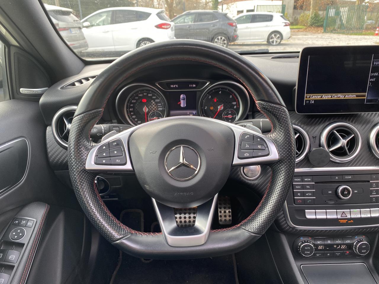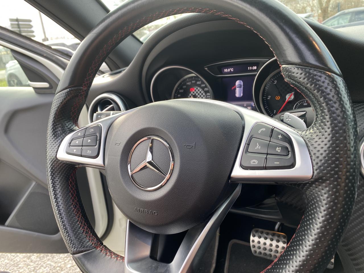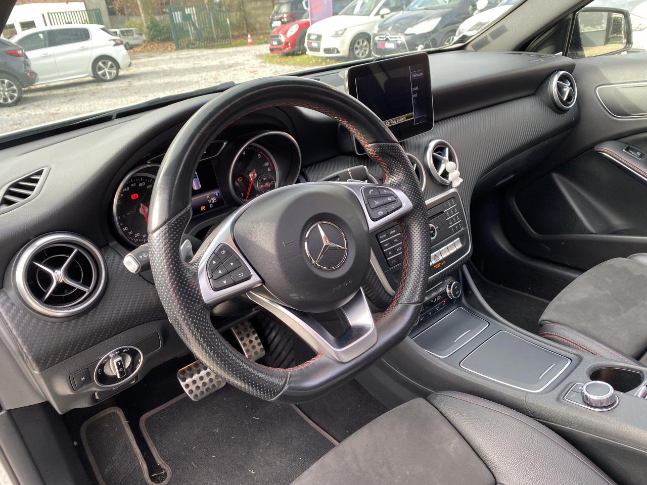 ABS (antiblocage de roues) et ASR (antipatinage)Accoudoir avant avec vide-pochesADAPTIVE BRAKE avec fonction HOLD et aide au démarrage en côteAirbag genoux conducteurAirbags bassin intégrés aux sièges conducteur et passager avantAirbags frontaux à plusieurs seuils de déclenchement pour le conducteur et le passager avantAirbags latéraux et airbags rideauxAllumage automatique des projecteursAttention Assist : système de détection de somnolenceAudio 20 CD avec écran couleur 17,8 cm (7"), pré-installation pour Garmin MAP PILOT, radio, double tuner, lecteur CD, Bluetooth, 2 ports USB et 1 SD cardAvertisseur de perte de pression des pneusBanquette arrière rabattable 1/3-2/3BAS (freinage d'urgence assisté)Boîte à gants éclairéeBoîte de vitesses automatique à double embrayage 7 rapports 7G-DCT avec palettes de commandes au volantCaméra de recul avec lignes de guidageCapot moteur actifCapteur de pluieCeintures de sécurité à 3 points à toutes les placesCendriers à l'avant et à l'arrièreClé design chroméeClignotant avec commande confort par impulsionsClimatisation automatique confort THERMOTRONIC à 2 zones avec affichage digital et réglages séparés conducteur/passagerCOLLISION PREVENTION ASSIST PLUS: système d'avertissement des risques de collision avec assistant de freinage adaptatifColonne de direction réglable mécaniquement en hauteur et en profondeurCombiné d'instruments à 2 cadrans analogiques et visuel multifonctionsConnexion Bluetooth pour téléphone portable et clavier numérique intégréContrôle de la pression des 4 pneus et alerte conducteur dans le combiné d'instrumentsDésactivation automatique de l'airbag passager AVDétecteur d'occupation du siège passager avantDirection paramétrique sportDouble sortie d'échappement ovale chroméeDynamic Select: 4 modes de conduite (Confort, Sport, Eco ou Personnalisé) agissant sur le moteur, la transmission, la suspension et la directionEclairage de secours en cas d'accidentÉléments décoratifs intérieurs et buses d'aération chromésESP (régulation de comportement dynamique)Feux antibrouillard arrièreFeux de stop adaptatifsFeux halogènesFiltre à particulesFonction d'arrêt/redémarrage "Stop/Start ECO" avec commutateur de désactivation manuelleFrein de parking électriqueGrand écran central 20,3 cm (8")Indicateur de température extérieureIndicateur dynamique de maintenance (ASSYST PLUS)Interface média USB dans la console centrale (2 ports USB et 1 port SD Card)ISOFIX : fixations des sièges-enfants arrière (places extérieures)Jantes alliage AMG 18" à 5 double-branches bicolores avec pneus 225/40 R18Kit anti-crevaison TIREFITLève-vitres électrique (x4) à commande séquentielle et dispositif anti-pincementMercedes connect me : Système d'Appel d'Urgence Mercedes-BenzNavigateur Internet sur l'écran centralOrdinateur de bordPack AMG Line ExtérieurPack AMG Line IntérieurPack d'éclairage intérieurPack GarminPack Sport BlackPare-chocs couleur carrosseriePilote automatique de stationnement avec radar de proximité avant/arrièrePoignées de portes couleur carrosserieProjecteurs hautes performances à technologie LED comprenant les feux de jours et la fonction d'éclairage en bleu "Coming Home"Réglage électrique de la profondeur d'assiseRétroviseurs extérieurs électriques chauffants et asphériques avec rappels de clignotant intégrésRétroviseurs extérieurs rabattables électriquement et rétroviseurs extérieur gauche et intérieur jour/nuit automatiqueSécurité enfant avec verrouillage manuel des portes arrière et électrique des vitres arrièreSélecteur multifonctions chroméSiège conducteur réglable manuellement en hauteurSièges avant avec design spécifique et réglages manuel de l'inclinaison des assises et de la hauteur du siège passagerSièges Sport intégrauxSortie d'échappement dissimulée dans le pare-choc arrièreTEMPOMAT (régulateur de vitesse) et SPEEDTRONIC (limiteur de vitesse)Toit ouvrant panoramique électrique avec store pare-soleil électrique, fonction de fermeture en cas de pluie et protection anti-pincementVerrouillage centralisé à télécommande avec fonction verrouillage automatique désactivableVitres teintées vertesVolant multifonctions à 12 touches