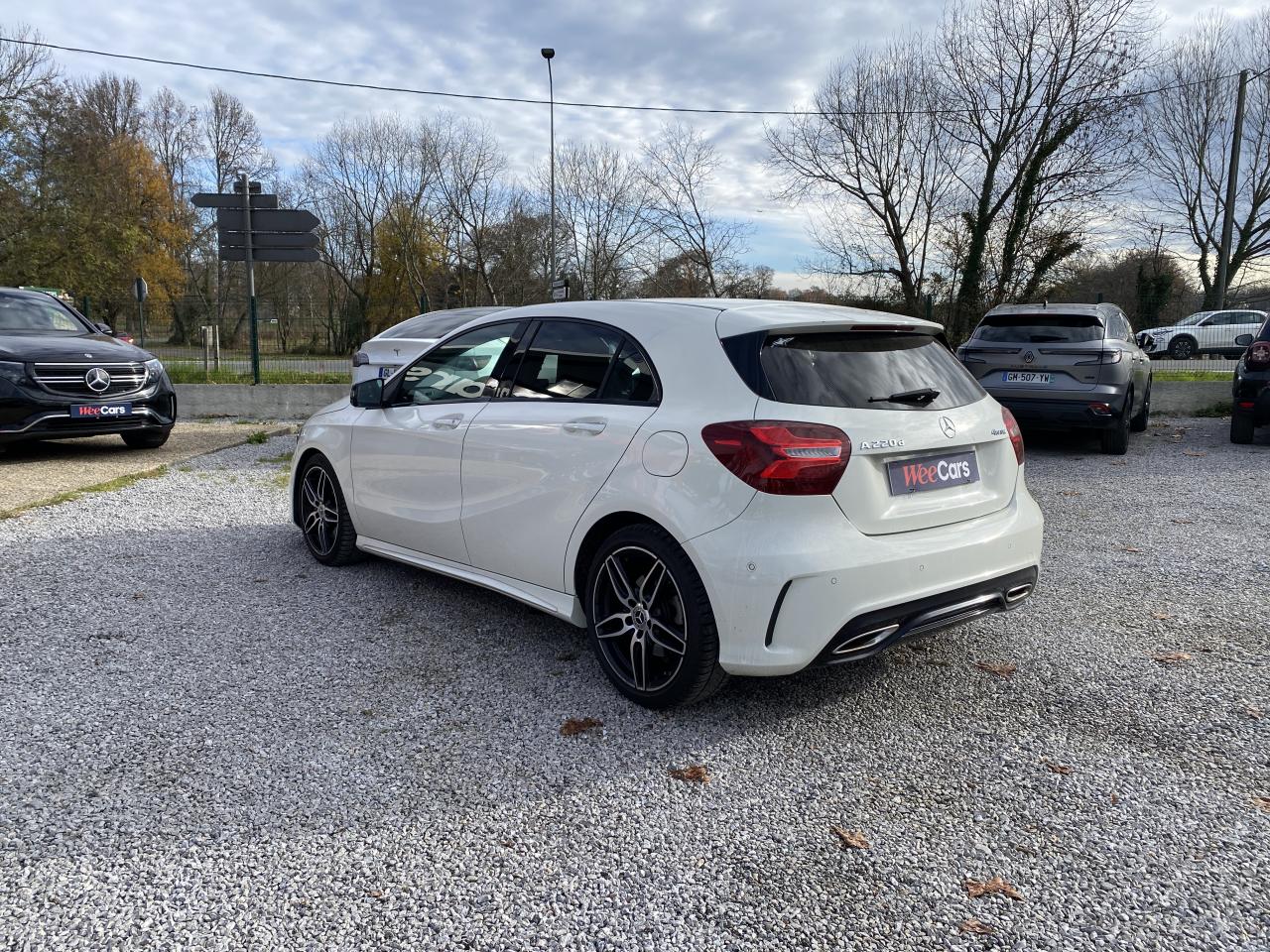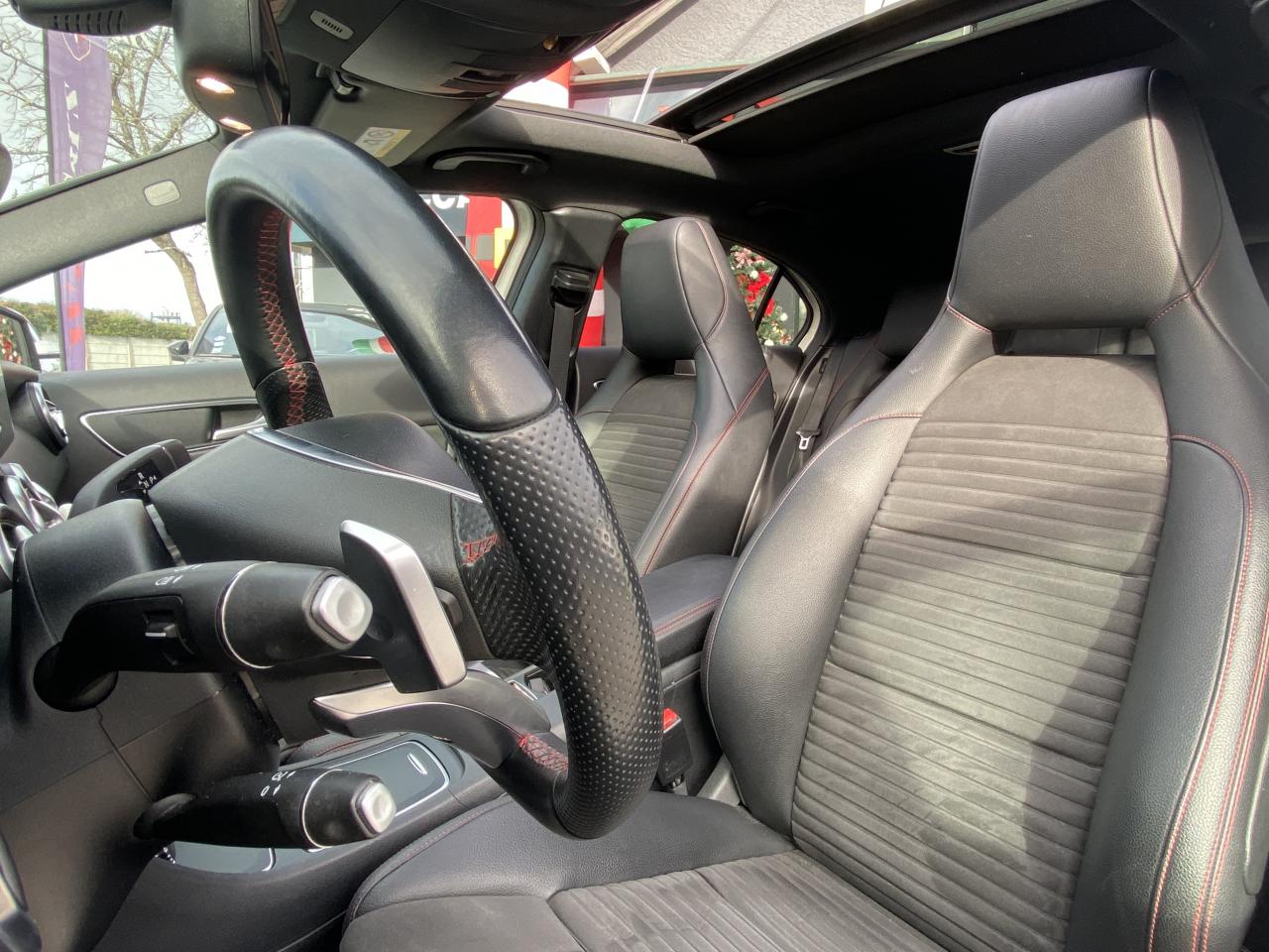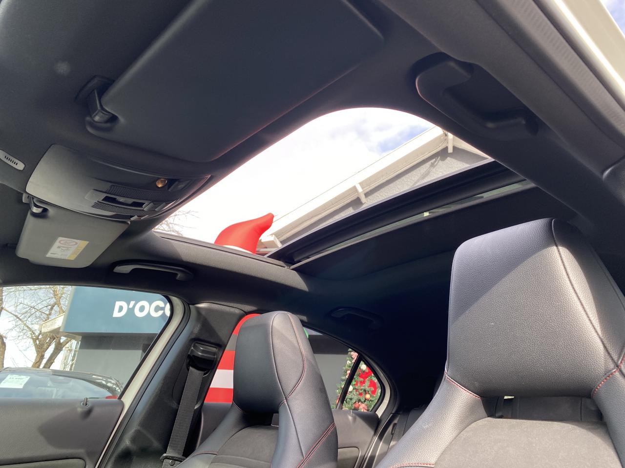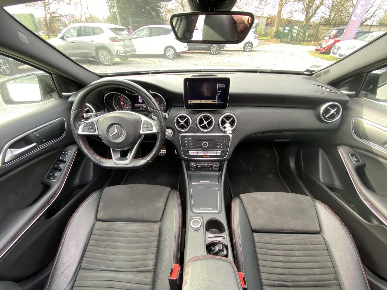 ABS (antiblocage de roues) et ASR (antipatinage)Accoudoir avant avec vide-pochesADAPTIVE BRAKE avec fonction HOLD et aide au démarrage en côteAirbag genoux conducteurAirbags bassin intégrés aux sièges conducteur et passager avantAirbags frontaux à plusieurs seuils de déclenchement pour le conducteur et le passager avantAirbags latéraux et airbags rideauxAllumage automatique des projecteursAttention Assist : système de détection de somnolenceAudio 20 CD avec écran couleur 17,8 cm (7"), pré-installation pour Garmin MAP PILOT, radio, double tuner, lecteur CD, Bluetooth, 2 ports USB et 1 SD cardAvertisseur de perte de pression des pneusBanquette arrière rabattable 1/3-2/3BAS (freinage d'urgence assisté)Boîte à gants éclairéeBoîte de vitesses automatique à double embrayage 7 rapports 7G-DCT avec palettes de commandes au volantCaméra de recul avec lignes de guidageCapot moteur actifCapteur de pluieCeintures de sécurité à 3 points à toutes les placesCendriers à l'avant et à l'arrièreClé design chroméeClignotant avec commande confort par impulsionsClimatisation automatique confort THERMOTRONIC à 2 zones avec affichage digital et réglages séparés conducteur/passagerCOLLISION PREVENTION ASSIST PLUS: système d'avertissement des risques de collision avec assistant de freinage adaptatifColonne de direction réglable mécaniquement en hauteur et en profondeurCombiné d'instruments à 2 cadrans analogiques et visuel multifonctionsConnexion Bluetooth pour téléphone portable et clavier numérique intégréContrôle de la pression des 4 pneus et alerte conducteur dans le combiné d'instrumentsDésactivation automatique de l'airbag passager AVDétecteur d'occupation du siège passager avantDirection paramétrique sportDouble sortie d'échappement ovale chroméeDynamic Select: 4 modes de conduite (Confort, Sport, Eco ou Personnalisé) agissant sur le moteur, la transmission, la suspension et la directionEclairage de secours en cas d'accidentÉléments décoratifs intérieurs et buses d'aération chromésESP (régulation de comportement dynamique)Feux antibrouillard arrièreFeux de stop adaptatifsFeux halogènesFiltre à particulesFonction d'arrêt/redémarrage "Stop/Start ECO" avec commutateur de désactivation manuelleFrein de parking électriqueGrand écran central 20,3 cm (8")Indicateur de température extérieureIndicateur dynamique de maintenance (ASSYST PLUS)Interface média USB dans la console centrale (2 ports USB et 1 port SD Card)ISOFIX : fixations des sièges-enfants arrière (places extérieures)Jantes alliage AMG 18" à 5 double-branches bicolores avec pneus 225/40 R18Kit anti-crevaison TIREFITLève-vitres électrique (x4) à commande séquentielle et dispositif anti-pincementMercedes connect me : Système d'Appel d'Urgence Mercedes-BenzNavigateur Internet sur l'écran centralOrdinateur de bordPack AMG Line ExtérieurPack AMG Line IntérieurPack d'éclairage intérieurPack GarminPack Sport BlackPare-chocs couleur carrosseriePilote automatique de stationnement avec radar de proximité avant/arrièrePoignées de portes couleur carrosserieProjecteurs hautes performances à technologie LED comprenant les feux de jours et la fonction d'éclairage en bleu "Coming Home"Réglage électrique de la profondeur d'assiseRétroviseurs extérieurs électriques chauffants et asphériques avec rappels de clignotant intégrésRétroviseurs extérieurs rabattables électriquement et rétroviseurs extérieur gauche et intérieur jour/nuit automatiqueSécurité enfant avec verrouillage manuel des portes arrière et électrique des vitres arrièreSélecteur multifonctions chroméSiège conducteur réglable manuellement en hauteurSièges avant avec design spécifique et réglages manuel de l'inclinaison des assises et de la hauteur du siège passagerSièges Sport intégrauxSortie d'échappement dissimulée dans le pare-choc arrièreTEMPOMAT (régulateur de vitesse) et SPEEDTRONIC (limiteur de vitesse)Toit ouvrant panoramique électrique avec store pare-soleil électrique, fonction de fermeture en cas de pluie et protection anti-pincementVerrouillage centralisé à télécommande avec fonction verrouillage automatique désactivableVitres teintées vertesVolant multifonctions à 12 touches