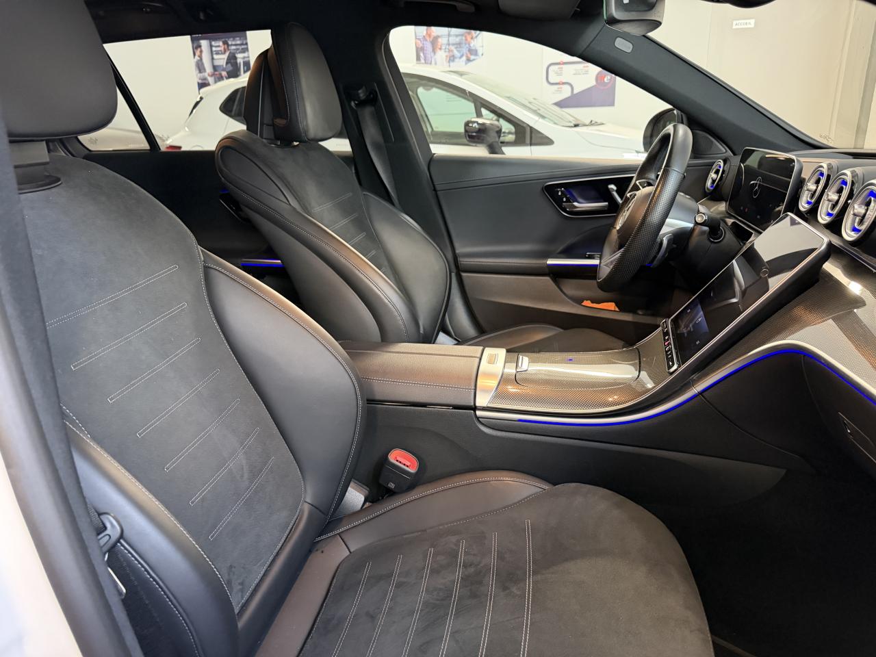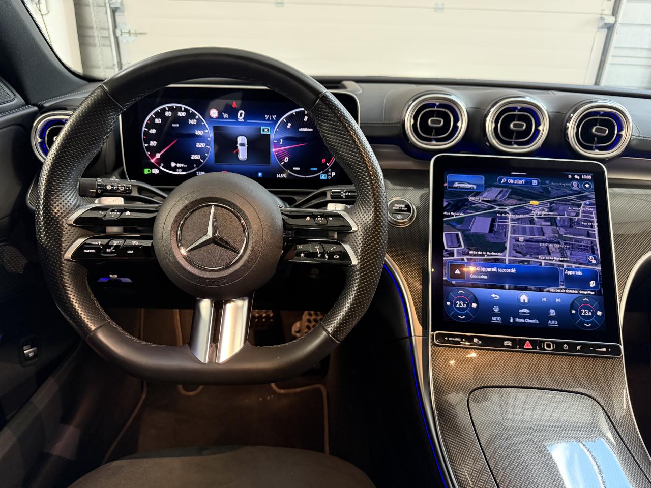 Affichage tête haute Console centrale structure métallique DIGITAL LIGHT avec fonction Projection Dispositif d'attelage et ESP avec système de stabilisation... Jantes alliage AMG 19" design multibranches noir et rebord... Pack AMG Line Premium Pack Confort KEYLESS-GO Toit ouvrant panoramique électrique en verre