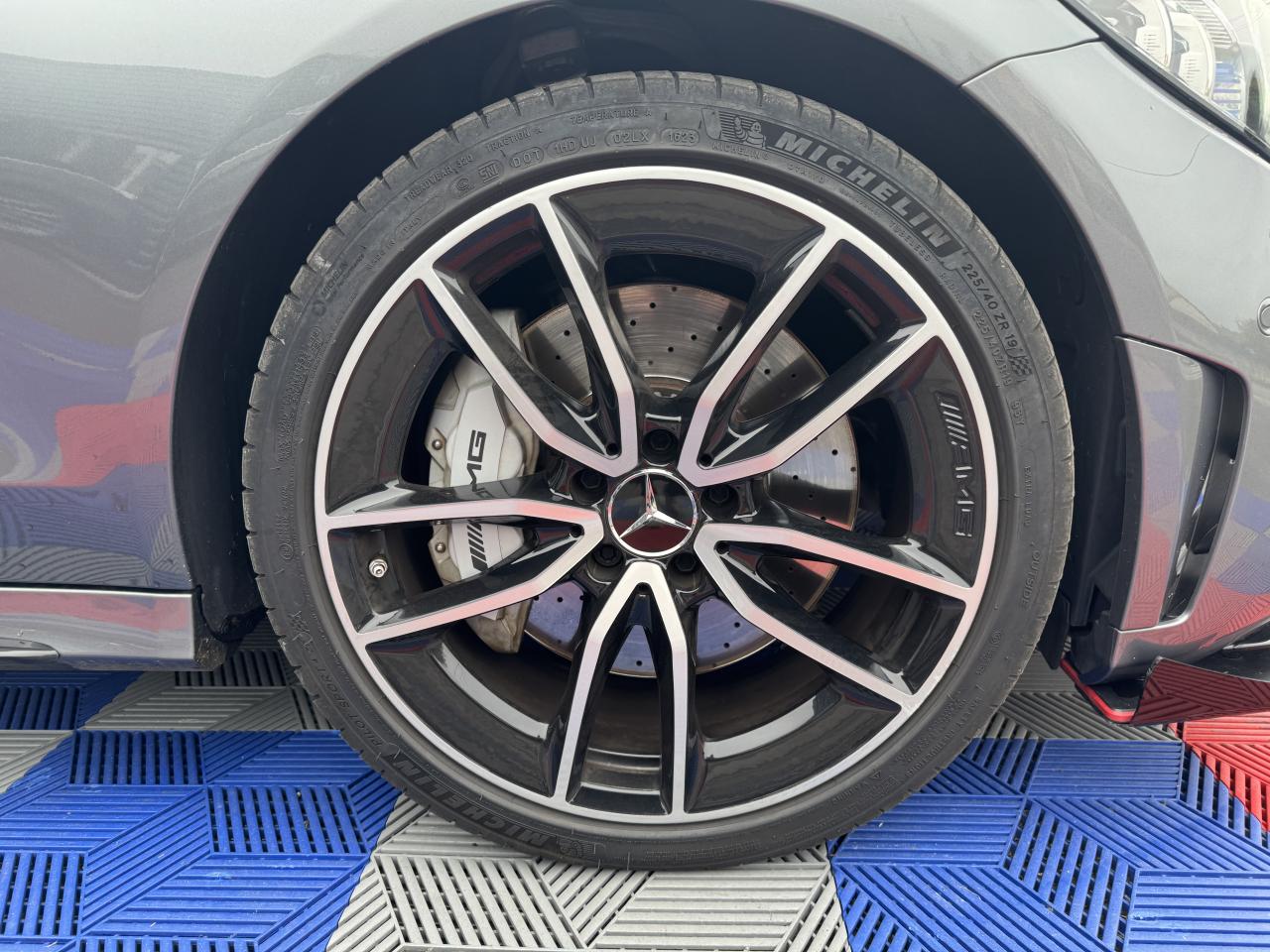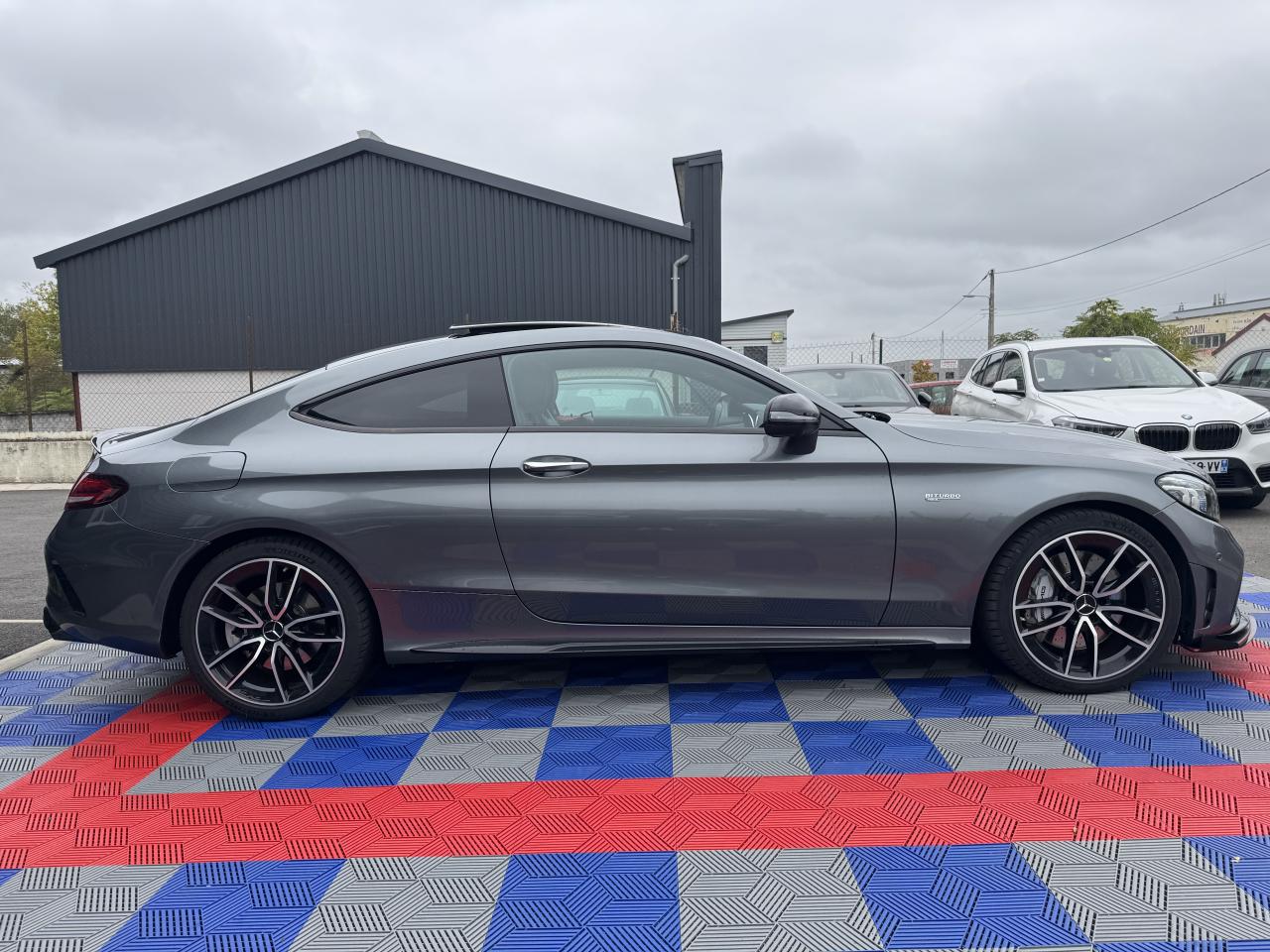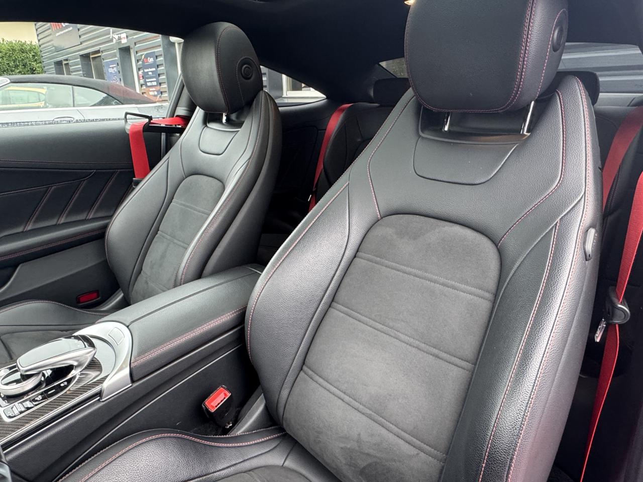3ème feu stop à LED4 Crochets d'arrimage dans le coffre9 haut-parleursABS (antiblocage de roues) et ASR (antipatinage)Accoudoir central avant avec vide-poches incluant deux prises USB et une fente SDADAPTIVE BRAKE avec fonction HOLD et aide au démarrage en côte, préremplissage et séchage des freins par freinage en cas de pluieAffichage du non bouclage des ceintures de sécurité aux places arrièreAirbag genoux conducteurAirbags frontaux à 2 seuils de déclenchementAirbags latéraux avantAirbags rideauxAllumage automatique des projecteursApproche-ceinture automatiqueAssistance dynamique en virage (DCE – Dynamic Cornering Enhancement)Attention Assist : système de détection de somnolenceAutoradio Audio 20 GPS double tuner incluant la restitution de fichiers audio MP3/WMA/WAV/AAC, la connexion Bluetooth pour téléphone portable, le Picture Viewer pour l'affichage de fichiers images, la lecture de SMS ou d'e-mailsBaguette de ligne de ceinture en finition argentBaguette de ligne de toit en aluminium poliBaguettes de seuil de portes avec monogramme "AMG" éclairé à l'avantBanquette arrière rabattable 40/20/40Bas de caisse couleur carrosserieBoîte à gants éclairéeBoîte de vitesses à 9 rapports SPEEDSHIFT TCT AMG avec passages des rapports plus courts et fonction de double débrayage au rétrogradageBoîtiers des rétroviseurs extérieurs noirsCapot moteur actif pour la protection des piétonsCarte SIMCeintures de sécurité 3 points avec rétracteur et limiteur d'effort x4Ceintures de sécurité rouge designoCiel de pavillon en tissu noirClignotants à commande confort par impulsionsClimatisation automatique THERMATIC à 2 zonesColonne de direction réglable manuellement en hauteur et en profondeurCombiné d'instruments entièrement numérique de 31,2 cm (12,3") de diagonale avec trois styles d'affichage « Classic », « Sport » et « Supersport »Compartiment range-lunettes dans la console de pavillonConciergerie Mercedes me connectContrôle de pression des pneus ( TPMS )Couvercle de coffre avec étoile Mercedes chromée brillanteDésactivation automatique de l’airbag passager avantDéverrouillage à distance du couvercle du coffreDirection paramétrique sport AMG à 2 niveaux avec démultiplication variable et réglage spécifique AMGDYNAMIC SELECT AMG avec 5 modes de conduiteEssuie-glace à déclenchement automatiqueEtriers de freins avant peints dans le ton argent avec inscription noire « AMG »Feux arrière intégralement à LEDFeux de stop adaptatifsFilet de rangement dans le coffre côté gaucheFiltre à particulesFixation de siège enfant de type i-Size intégrée dans les coussins d’assise à l'arrière (places extérieures) et dispositif de courroies Top Tether pour les sièges enfantsFonction d'arrêt/redémarrage "Stop/Start ECO" avec commutateur de désactivation manuelleFrein de parking électriqueFreinage d'urgence assisté actifGarnitures en similicuir ARTICO/microfibre DINAMICA dans le ton noir avec surpiqûres contrastées rouges, joues latérales des assises en similicuir ARTICO noir et partie centrale des sièges en microfibre DINAMICAIndicateur d'usure des garnitures de freinIndicateur de température extérieurIndicateur dynamique de maintenance (ASSYST PLUS)Inserts décoratifs en finition laque noire/aluminium clair finition stries longitudinalesJantes alliage AMG 18" à 5 branches et profil aérodynamique optimisé, finition gris trémolite/naturel brillantKEYLESS-GO : système de démarrage sans cléKit anti-crevaison TIREFITKit carrosserie AMGLève-vitres électrique (x4) à commande séquentielle et dispositif anti-pincementModule de communication LTE pour l'utilisation des services Mercedes me connectMonogramme "BITURBO 4MATIC" sur les ailes avantOrdinateur de bordPack Confort des sièges avantPack d'éclairage intérieurPack PremiumPack rangementPare-chocs arrière couleur carrosseriePare-soleil avec miroirs de courtoisie éclairésPédalier AMG en acier inoxydable brossé avec picots en caoutchoucPlanche de bord, bas de glace, partie centrale des contre-portes et accoudoirs habillés de similicuir ARTICO noir avec surpiqûres contrastées rougesProjecteurs MULTIBEAM à LED avec feux de route adaptatifs PLUS ULTRA RANGERadio Numérique DABRégulation du comportement dynamique (ESP) à 3 niveaux disponibles via la touche ESPRétroviseurs extérieurs électriques, chauffants et asphériques, avec rappels de clignotants intégrésSécurité enfant avec verrouillage manuel des portes arrière et électrique des vitres arrièreSièges avant sport AMG avec monogramme "AMG"SPEEDTRONIC (limiteur de vitesse)Suspension surbaissée (-15 mm) et train de roulement SportSystème d'Appel d'Urgence Mercedes-BenzSystème d'échappement sport AMG à la sonorité sportiveSystème de freinage surdimensionné avec disques de frein composite ventilés et perforés à l'avantSystème de navigation premium COMAND Online incluant navigation par disque dur avec cartographie des villes en 3D, affichage des cartes satellites, service "Live Traffic Information" pour optimiser le guidage dynamique, système de commande vocale LINGUATRONIC, réceptioSystème de stabilisation en cas de vent latéralTapis de sol noirs avec passepoil rouge et inscription « AMG »Tempomat (Régulateur de vitesse)TOUCHPAD : pavé tactile permettant la navigation dans les menus audio, téléphone et média sur l'écran couleurTransmission intégrale 4MATIC Performance AMG avec répartition des forces spécifique AMG (31 % sur l’essieu avant, 69 % sur l’essieu arrière) et train de roulement sport RIDE CONTROL AMG à amortissement adaptatif à 3 niveauxVerrouillage centralisé à télécommande avec fonction de verrouillage automatiqueVolant AMG à 3 branches en cuir Nappa, perforé dans la zone de préhension, avec méplat dans la partie inférieure, boutons Touch-Control, palettes de commande de boîte en aluminium argenté et repère « 12 heures », coloris noir et surp