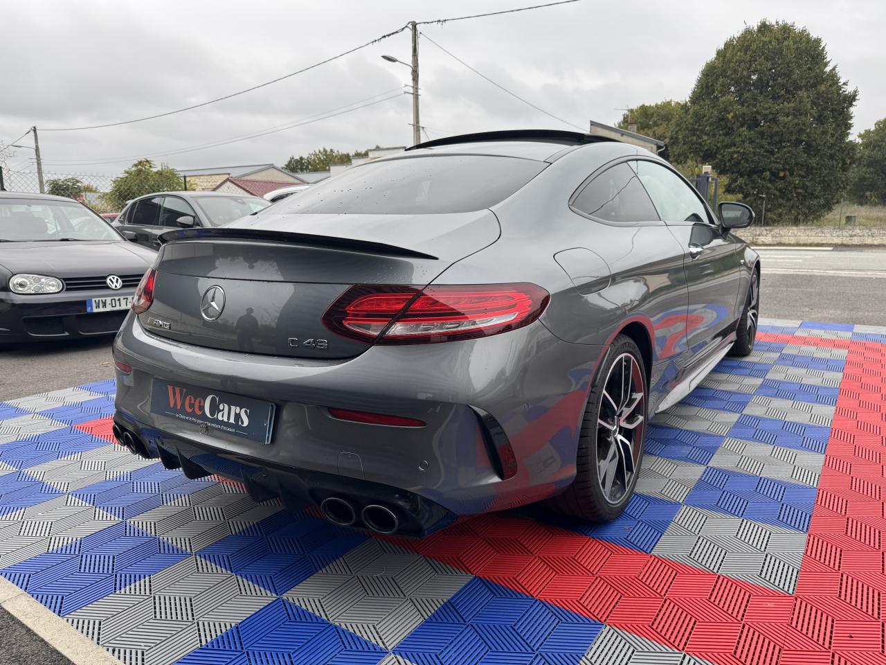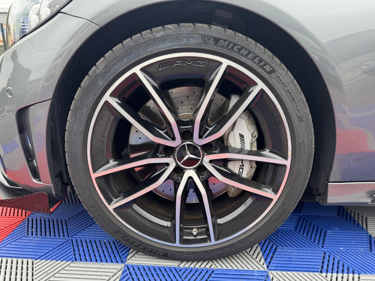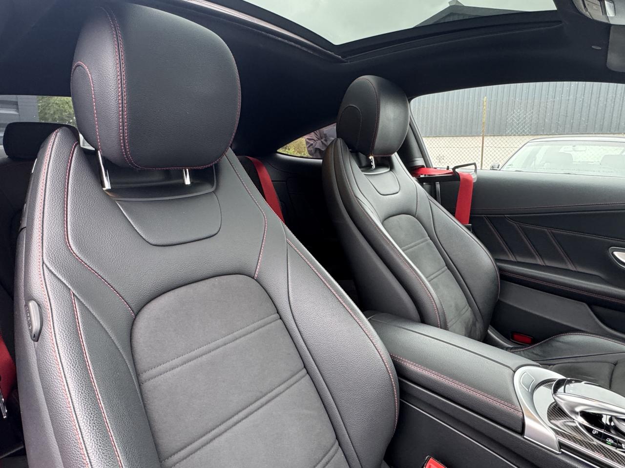 3ème feu stop à LED4 Crochets d'arrimage dans le coffre9 haut-parleursABS (antiblocage de roues) et ASR (antipatinage)Accoudoir central avant avec vide-poches incluant deux prises USB et une fente SDADAPTIVE BRAKE avec fonction HOLD et aide au démarrage en côte, préremplissage et séchage des freins par freinage en cas de pluieAffichage du non bouclage des ceintures de sécurité aux places arrièreAirbag genoux conducteurAirbags frontaux à 2 seuils de déclenchementAirbags latéraux avantAirbags rideauxAllumage automatique des projecteursApproche-ceinture automatiqueAssistance dynamique en virage (DCE – Dynamic Cornering Enhancement)Attention Assist : système de détection de somnolenceAutoradio Audio 20 GPS double tuner incluant la restitution de fichiers audio MP3/WMA/WAV/AAC, la connexion Bluetooth pour téléphone portable, le Picture Viewer pour l'affichage de fichiers images, la lecture de SMS ou d'e-mailsBaguette de ligne de ceinture en finition argentBaguette de ligne de toit en aluminium poliBaguettes de seuil de portes avec monogramme "AMG" éclairé à l'avantBanquette arrière rabattable 40/20/40Bas de caisse couleur carrosserieBoîte à gants éclairéeBoîte de vitesses à 9 rapports SPEEDSHIFT TCT AMG avec passages des rapports plus courts et fonction de double débrayage au rétrogradageBoîtiers des rétroviseurs extérieurs noirsCapot moteur actif pour la protection des piétonsCarte SIMCeintures de sécurité 3 points avec rétracteur et limiteur d'effort x4Ceintures de sécurité rouge designoCiel de pavillon en tissu noirClignotants à commande confort par impulsionsClimatisation automatique THERMATIC à 2 zonesColonne de direction réglable manuellement en hauteur et en profondeurCombiné d'instruments entièrement numérique de 31,2 cm (12,3") de diagonale avec trois styles d'affichage « Classic », « Sport » et « Supersport »Compartiment range-lunettes dans la console de pavillonConciergerie Mercedes me connectContrôle de pression des pneus ( TPMS )Couvercle de coffre avec étoile Mercedes chromée brillanteDésactivation automatique de l’airbag passager avantDéverrouillage à distance du couvercle du coffreDirection paramétrique sport AMG à 2 niveaux avec démultiplication variable et réglage spécifique AMGDYNAMIC SELECT AMG avec 5 modes de conduiteEssuie-glace à déclenchement automatiqueEtriers de freins avant peints dans le ton argent avec inscription noire « AMG »Feux arrière intégralement à LEDFeux de stop adaptatifsFilet de rangement dans le coffre côté gaucheFiltre à particulesFixation de siège enfant de type i-Size intégrée dans les coussins d’assise à l'arrière (places extérieures) et dispositif de courroies Top Tether pour les sièges enfantsFonction d'arrêt/redémarrage "Stop/Start ECO" avec commutateur de désactivation manuelleFrein de parking électriqueFreinage d'urgence assisté actifGarnitures en similicuir ARTICO/microfibre DINAMICA dans le ton noir avec surpiqûres contrastées rouges, joues latérales des assises en similicuir ARTICO noir et partie centrale des sièges en microfibre DINAMICAIndicateur d'usure des garnitures de freinIndicateur de température extérieurIndicateur dynamique de maintenance (ASSYST PLUS)Inserts décoratifs en finition laque noire/aluminium clair finition stries longitudinalesJantes alliage AMG 18" à 5 branches et profil aérodynamique optimisé, finition gris trémolite/naturel brillantKEYLESS-GO : système de démarrage sans cléKit anti-crevaison TIREFITKit carrosserie AMGLève-vitres électrique (x4) à commande séquentielle et dispositif anti-pincementModule de communication LTE pour l'utilisation des services Mercedes me connectMonogramme "BITURBO 4MATIC" sur les ailes avantOrdinateur de bordPack Confort des sièges avantPack d'éclairage intérieurPack PremiumPack rangementPare-chocs arrière couleur carrosseriePare-soleil avec miroirs de courtoisie éclairésPédalier AMG en acier inoxydable brossé avec picots en caoutchoucPlanche de bord, bas de glace, partie centrale des contre-portes et accoudoirs habillés de similicuir ARTICO noir avec surpiqûres contrastées rougesProjecteurs MULTIBEAM à LED avec feux de route adaptatifs PLUS ULTRA RANGERadio Numérique DABRégulation du comportement dynamique (ESP) à 3 niveaux disponibles via la touche ESPRétroviseurs extérieurs électriques, chauffants et asphériques, avec rappels de clignotants intégrésSécurité enfant avec verrouillage manuel des portes arrière et électrique des vitres arrièreSièges avant sport AMG avec monogramme "AMG"SPEEDTRONIC (limiteur de vitesse)Suspension surbaissée (-15 mm) et train de roulement SportSystème d'Appel d'Urgence Mercedes-BenzSystème d'échappement sport AMG à la sonorité sportiveSystème de freinage surdimensionné avec disques de frein composite ventilés et perforés à l'avantSystème de navigation premium COMAND Online incluant navigation par disque dur avec cartographie des villes en 3D, affichage des cartes satellites, service "Live Traffic Information" pour optimiser le guidage dynamique, système de commande vocale LINGUATRONIC, réceptioSystème de stabilisation en cas de vent latéralTapis de sol noirs avec passepoil rouge et inscription « AMG »Tempomat (Régulateur de vitesse)TOUCHPAD : pavé tactile permettant la navigation dans les menus audio, téléphone et média sur l'écran couleurTransmission intégrale 4MATIC Performance AMG avec répartition des forces spécifique AMG (31 % sur l’essieu avant, 69 % sur l’essieu arrière) et train de roulement sport RIDE CONTROL AMG à amortissement adaptatif à 3 niveauxVerrouillage centralisé à télécommande avec fonction de verrouillage automatiqueVolant AMG à 3 branches en cuir Nappa, perforé dans la zone de préhension, avec méplat dans la partie inférieure, boutons Touch-Control, palettes de commande de boîte en aluminium argenté et repère « 12 heures », coloris noir et surp
