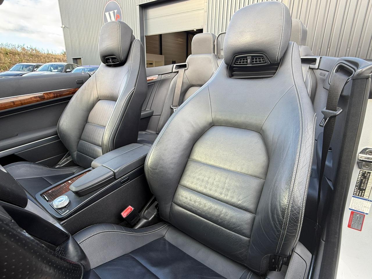 ABS (antiblocage de roues) et BAS (freinage d'urgence assisté)Accoudoir central avant avec vide-pochesADAPTIVE BRAKE avec aide au démarrage en côteAGILITY CONTROL : train de roulement avec système d'amortissement sélectifAide au Parking Active : système d'aide au stationnement avec radars de proximité avant/arrièreAirbag genoux conducteurAirbags bassinAirbags de tête pour conducteur et passager avantAirbags frontaux à deux seuils de déclenchementAirbags latéraux avantAllumage automatique des projecteursAntivol à clé électronique avec système de verrouillage ELCODEAppuie-tête avant actifs NECK-PROAttention Assist : système de détection de somnolenceAvertisseur de perte de pression des pneusAvertisseur dynamique de maintenance (ASSYST PLUS)Boîtier de commande des fonctionnalités du cabriolet au niveau de l'accoudoir centralCapot moteur actif pour la protection des piétonsCapote souple avec possibilité d'ouverture/fermeture jusqu'à 40 km/h et disponible dans quatre coloris (noir, rouge, bleu encre ou marron foncé)Capteur de pluieCeintures de sécurité 3 points avec rétracteurs à l'avant et limiteurs d'effort (x4)Clignotants à commande confort par impulsionsClimatisation automatique THERMATIC à 2 zonesCOLLISION PREVENTION ASSIST : système d'avertissement des risques de collisionColonne de direction réglable manuellement en hauteur et en profondeurCombiné d'instruments à fond noir avec écran couleur 10,9 cm (4,3'')Détecteur d'occupation du siège passager avantDirection paramétrique assistée et asservie à la vitesseEclairage des seuils de portesESP (régulation de comportement dynamique) avec ASR (antipatinage)Feux arrière de brouillardFeux arrières à technologie LEDFeux de jour à LEDFeux de stop adaptatifsGarnitures intérieures en cuirHorloge analogique au niveau de la console centraleInserts décoratifs en aluminium clair sur la console centrale,le tableau de bord et les contre-portesISOFIX : fixation sièges-enfants arrièreJantes alliage AMG 18'' à 5 branches doubles avec pneus AV 235/40 R18 et AR 255/35 R18 En liaison avec Pack Sport AMGLève-vitres électrique (x4) à commande séquentielle et dispositif anti-pincementNavigation Becker MAP PILOT : navigation 3D (cartographie Europe) par disque dur (situé dans la boîte à gants) avec information trafic TMCOrdinateur de bordOuverture confort de la capote électrique avec télécommande à infrarougePRE-SAFE : système de sécurité préventivePrises 12 V à l'avantProjecteurs et feux arrière antibrouillardProjecteurs semi-LEDRadio Audio 20 avec écran couleur 14,7 cm (5,8''), lecteur CD compatible MP3, port USB, clavier numérique intégré, connexion Bluetooth pour téléphone portableRespect des normes anti-pollution Euro 6Rétroviseur intérieur électrochromeRétroviseurs extérieurs rabattables électriquement et extérieur gauche jour/nuit automatiqueSièges avant avec fonction Easy EntrySièges avant chauffantsSièges avant partiellement électriques (hauteur du coussin d'assise et inclinaison du dossier)TEMPOMAT (régulateur de vitesse) et SPEEDTRONIC (limiteur de vitesse)Volant multifonctions en cuir Nappa à 3 branches avec insert chromé et cuir perforé au niveau des zones de préhension