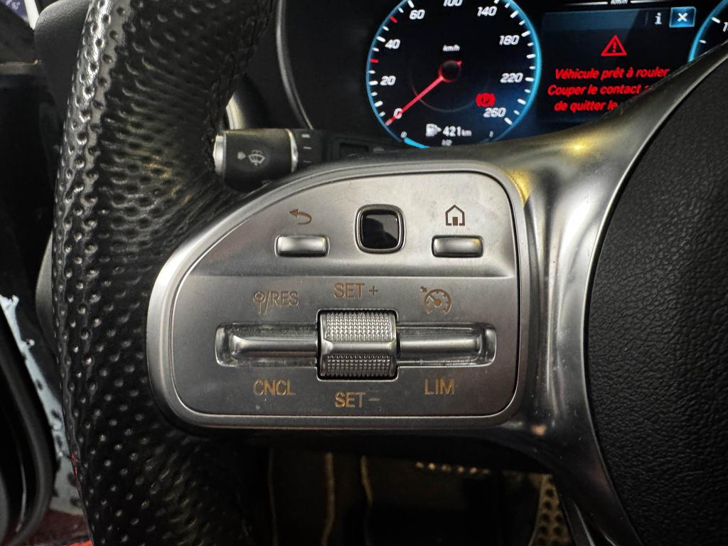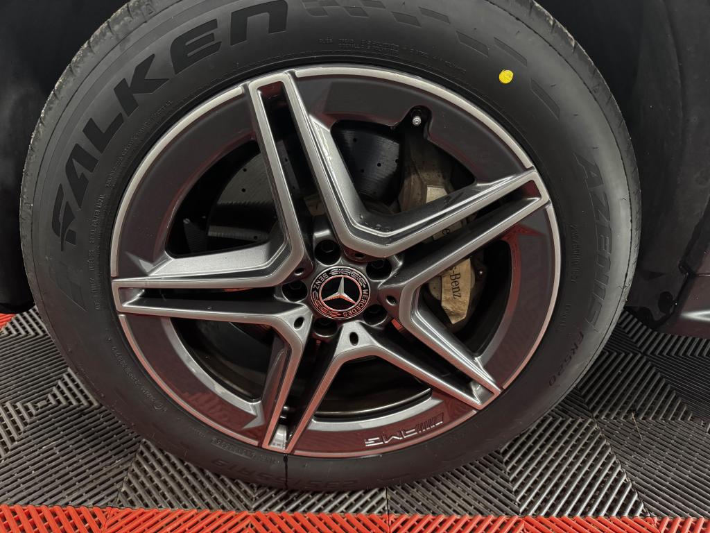 ABS (antiblocage de roues) et ASR (antipatinage)Accoudoir central avant avec vide-poches incluant deux prises USB et une fente SDADAPTIVE BRAKE avec fonction HOLD et aide au démarrage en côte, préremplissage et séchage des freins par freinage en cas de pluieAffichage du non bouclage des ceintures de sécurité aux places arrièreAirbag genoux conducteurAirbags frontaux à 2 phases de déploiement (conducteur et passager avant)Airbags latéraux, conducteur et passager avantAirbags rideaux avant et passagers latéraux arrièreAttention Assist : système de détection de somnolenceBaguette de ligne de ceinture en aluminium poliBanquette arrière rabattable 40/20/40Boîte à gants éclairéeBoîte de vitesses automatique à 9 rapports 9G-TRONICCâble de charge pour bornes de recharge publiques, 5mCâble de recharge pour prise domestique (5 mètres)Caméra de recul incluant lignes de guidage dynamiques et image haute définition sur l'écran médiaCapot moteur actif pour la protection des piétonsCeintures de sécurité 3 points avec rétracteur et limiteur d'effort x4Chargeur embarqué 7,4 KWCiel de pavillon en tissu noirClignotants à commande confort par impulsionsClimatisation automatique THERMATIC à 2 zonesColonne de direction réglable manuellement en hauteur et en profondeurCombiné d'instruments avec écran couleur de 14 cm (5,5") et résolution de 383 x 600 pixels pour l'affichage d'informations supplémentairesContrôle de la pression des pneumatiquesDésactivation automatique de l’airbag passager avantDéverrouillage à distance du couvercle du coffreDirection assistée et asservie à la vitesseDYNAMIC SELECT : offre le choix parmi 4 modes de conduite (Eco, Confort, Sport et Sport+)Ecran media haute résolution (1 920 x 720 pixels) de 10,25'' (26 cm) au format 16/9Encadrements des vitres en aluminium poliESP (régulation de comportement dynamique) avec assistant de conduite dynamique en virageEssuie-glace à déclenchement automatiqueFeux arrière intégralement à LEDFeux de stop adaptatifsFilet dans le coffre à bagages (côté gauche) et 4 oeillets d'arrimage sur le plancher du coffreFiltre à particulesFixation de siège enfant de type i-Size intégrée dans les coussins d’assise à l'arrière (places extérieures) et dispositif de courroies Top Tether pour les sièges enfantsFonction d'arrêt/redémarrage "Stop/Start ECO" avec commutateur de désactivation manuelleFrein de parking automatique électrique avec desserrage automatique au démarrageFreinage d'urgence assisté actif (alerte visuelle et sonore en cas de risque de collision et freinage d'urgence autonome dans certaines conditions)Garnitures en similicuir ARTICO et DINAMICA noirGrille de calandre diamant avec pastilles chromées, étoile Mercedes intégrée et une lamelle dans le ton argent avec insert chroméHayon EASY-PACK avec ouverture et fermeture par commande électriqueIndicateur d'usure des garnitures de freinIndicateur de température extérieureIndicateur dynamique de maintenance (ASSYST PLUS)Inserts décoratifs en aluminium clair avec stries longitudinales sur la planche de bord et les contre-portesJantes alliage AMG 48,3 cm (19") à 5 doubles branches finition gris trémolite/naturel brillantKEYLESS-GO : système de démarrage sans cléKit anti-crevaison TIREFITKit carrosserie AMG : jupe avant AMG avec prises d’air élargies et insert décoratif chromé, jupe arrière AMG façon diffuseur avec insert noirLève-vitres électrique (x4) à commande séquentielle et dispositif anti-pincementMercedes me connectPack Confort des sièges avantPack d'éclairage intérieurPack exterieur ChromePack rangementPack rétroviseursPack stationnementPalettes de changement de rapports au volant Direct SelectPare-chocs arrière dans le ton carrosseriePare-chocs avant dynamique avec insert décoratif en position centrale, finition chroméePare-soleil avec miroirs de courtoisie éclairésPartie centrale des contre-portes en similicuir ARTICO avec surpiqûres contrastées spécifiques à l'AMG LinePavé tactile avec cadre en finition chromée argentéePédalier sport AMG en acier inoxydable brossé avec picots en caoutchouc noirPeinture non métalliséePrises d'air avec grille en losanges, finition noir brillantProjecteurs LED hautes performances à l'avant avec allumage automatiqueProtections anti-encastrement avant et arrière chroméesRadio Numérique DABRampes de toit en aluminium poli, plaquées sur le toitRange-lunettes dans l'unité de commande au toitRétroviseurs extérieurs électriques, chauffants et asphériques, avec rappels de clignotants intégrésSécurité enfant avec verrouillage manuel des portes arrière et électrique des vitres arrièreSièges sport avec garnitures en similicuir ARTICO/microfibre dans le ton noir avec surpiqûres contrastées grisesSystème d'échappement à deux sorties chroméesSystème de freinage à l’arrière doté d’étriers flottants à 1 piston et de disques de frein de dimension 320 mm/24 mmSystème de freinage à l’avant doté d’étriers fixes à 4 pistons et du logo « Mercedes-Benz » et de disques de frein perforés de dimension 360 mm/36 mmSystème de freinage avec disques de frein de plus grande dimension sur les essieux avantSystème de Navigation MBUX par disque durSystème de sonorisation avec quatre haut-parleurs de médiums dans les contre-portes et un FrontbassSystème de stabilisation en cas de vent latéralTapis de sol en velours avec monogramme "AMG"Tapis de sol noirs avec monogramme AMGTEMPOMAT (régulateur et limiteur de vitesse)TOUCHPAD : pavé tactile permettant la navigation dans les menus audio, téléphone et média sur l'écran couleurTrain de roulement sport avec direction directe sportVerrouillage centralisé à télécommande avec fonction de verrouillage automatiqueVitrage latéral arrière et lunette arrière teintées foncées brillante, et prises d'air avec grille en losanges, finition noir brillantVitres latérales arrière et lunet
