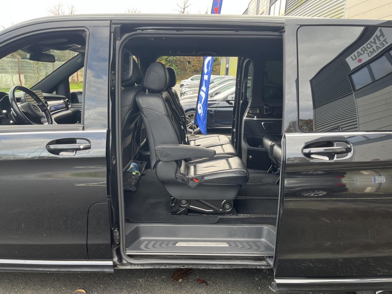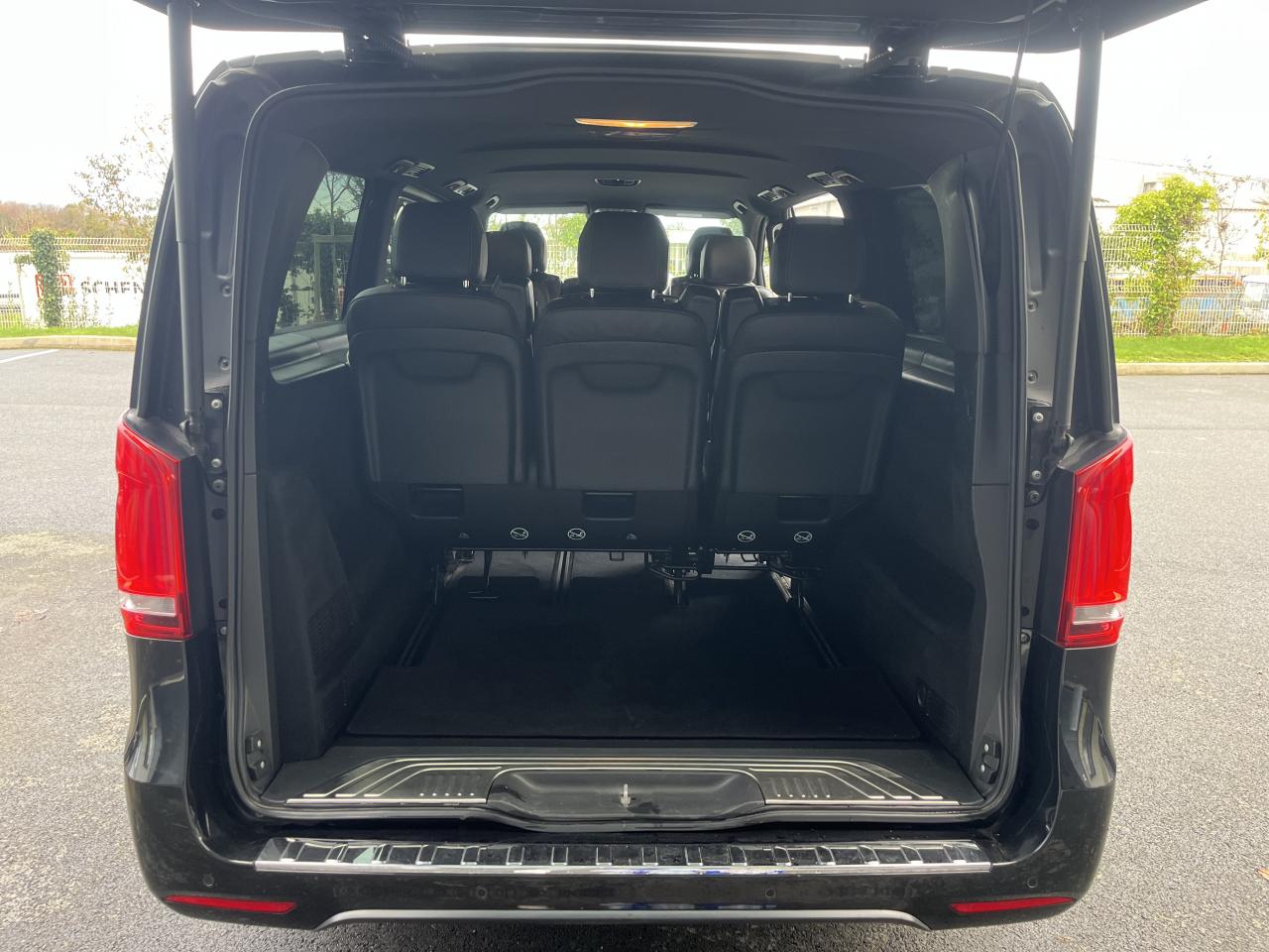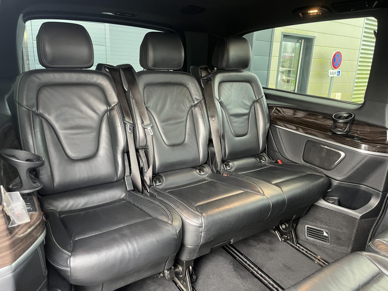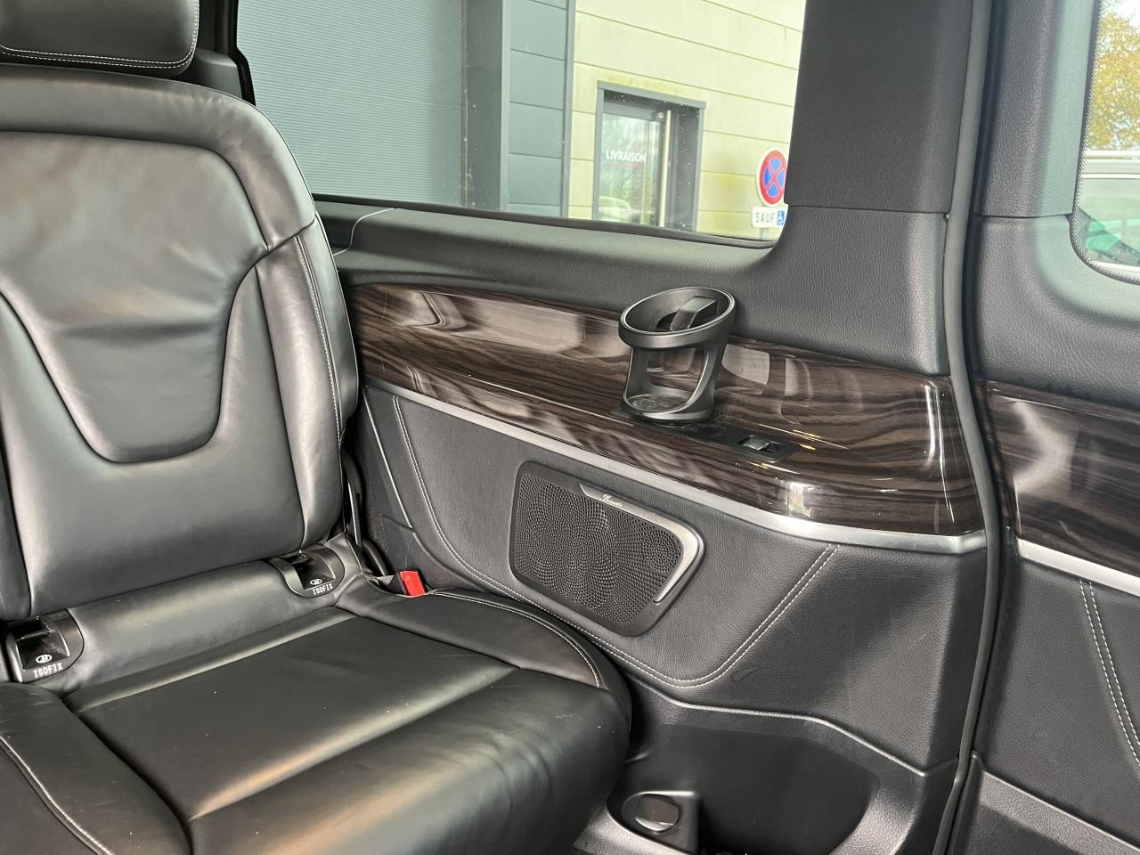 1 triangle de signalisation4 sièges individuels arrièreAccoudoirs passagers 2ème rangéeAide au démarrage en côteAirbag passager AVAirbags latéraux (bassin et thorax)Airbags rideaux conducteur et passagerAlarme de non bouclage de ceinture passagerAllumage automatique des projecteursAssistance en cas de panneAssistant de compensation du vent latéralAttention Assist : système de détection de somnolenceAudio 20 CDBatterie de puissance accrueBatterie tampon pour démarrageBlueEFFICIENCYBoîte à gants verrouillableBoîte de vitesses automatique à 9 rapports 9G-TRONICBorne auxiliaire pour aide au démarrageCanal d'air chaud vers le compartiment passagersCapteur de pluieCertificat CE de conformitéChauffage auxiliaire électriqueCiel de toit gris cristalClé électronique façon chromeClimatisation TEMPMATIC à régulation semi-automatiqueCombiné d'instruments avec visuel couleurConsole centrale avec casier de rangementDirection électriqueEchangeur thermique additionnel à l'arrièreEclairage d'ambiance intérieurEclairage de proximité hayon arrièreEclairage des seuils de porteEclairage du plancher avantEclairage poignée de maintien arrière avec spot de lectureFeux de position, feux stop et clignotants à LEDFeux stop adaptatifsFilet de rangement, dossier du siège conducteurFilet de rangement, dossier du siège passagerFonction Stop/Start ECOFrein à disque sur les essieux avant et arrièreFrein actif pour porte coulissanteFrein de stationnement électroniqueHabillage aérodynamique du soubassementHaut-parleur deux voies à l'avant et à l'arrièreHayon arrièreIndicateur de maintenance ASSYSTInsert décoratif bois rayures finesIntelligent Light System (ILS) à LEDIntervalle de maintenance 40 000 kmJantes en alliage leger 7J x 17"Lève-vitres électriques avantLive Traffic InformationLunette arrière à ouverture séparéeModule de communication (LTE) pour services numériquesModule de pavillon confortMonogramme de seuil Mercedes-Benz éclairéMoquette à l'arrièreMoquette à l'avantNavigation Garmin MAP PILOTNorme antipollution Euro 6d-TEMP M/N1 cl. IIPack Assistance à la trajectoirePack RétroviseurPare-chocs et pièces rapportées ton carrosseriePare-soleil avec miroirs de courtoisie éclairés, conducteur et passager avantPeinture uniePneumatiques 225/55 R17Pneumatiques confortsPneus étéPorte latérale coulissante droitePorte latérale coulissante gauchePré-équipement pour navigation Garmin MAP PILOTPrédisposition faisceau d'attelagePrise 12V dans le coffreRails de sièges à verrouillage rapideRéservoir de 70 litresRétroviseur intérieurRétroviseurs extérieurs chauffants à réglage électriqueSécurité-enfants pour portes et hayons dans le compartiment passagersSellerie cuir Lugano NoirSiège conducteur confortSiège individuel 2eme rangée droiteSiège individuel 2ème rangée gaucheSiège passager confortSoutien lombaire pour siège conducteurSoutien lombaire pour siège passagerSubdivision du compartiment de chargement (2 casiers de rangement intégrés)Système d'Appel d'Urgence Mercedes-BenzSystème de contrôle de la pression des pneusTémoin d'alerte pour niveau de liquide lave-glaceTrain de roulement AGILITY CONTROLTroisième feu stopVariante de poids 3 100 kgVitre fixe avant droiteVitre fixe avant gaucheVitres arrière teintées noiresVolant gainé cuirVolant multifonctions et ordinateur de bordVolant réglable en hauteur et inclinaison