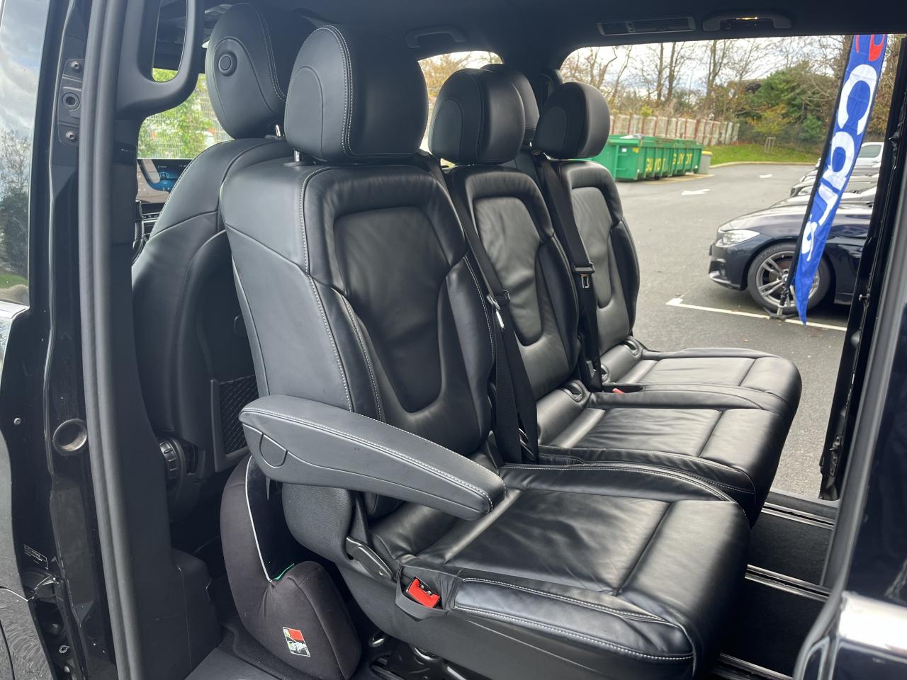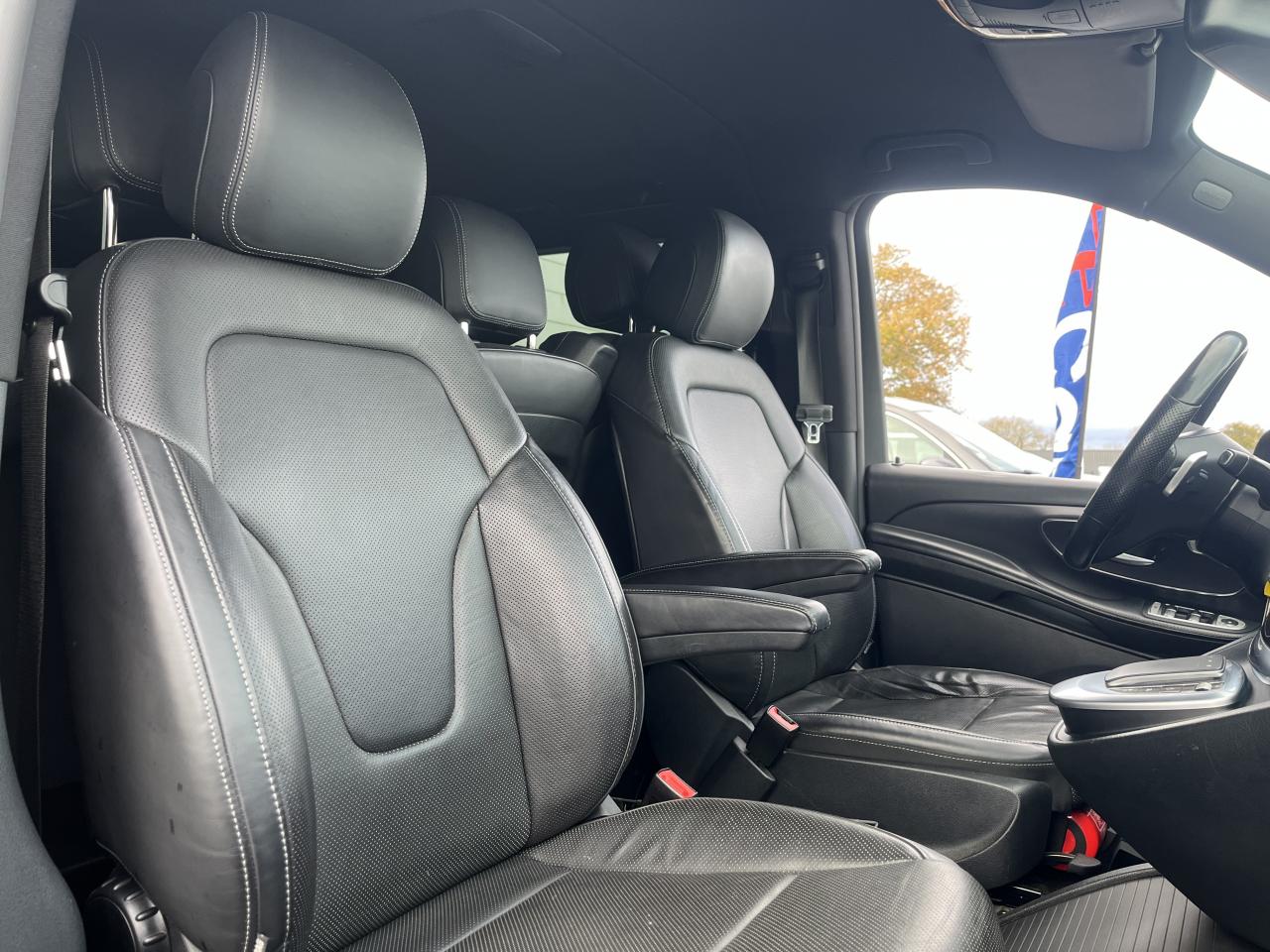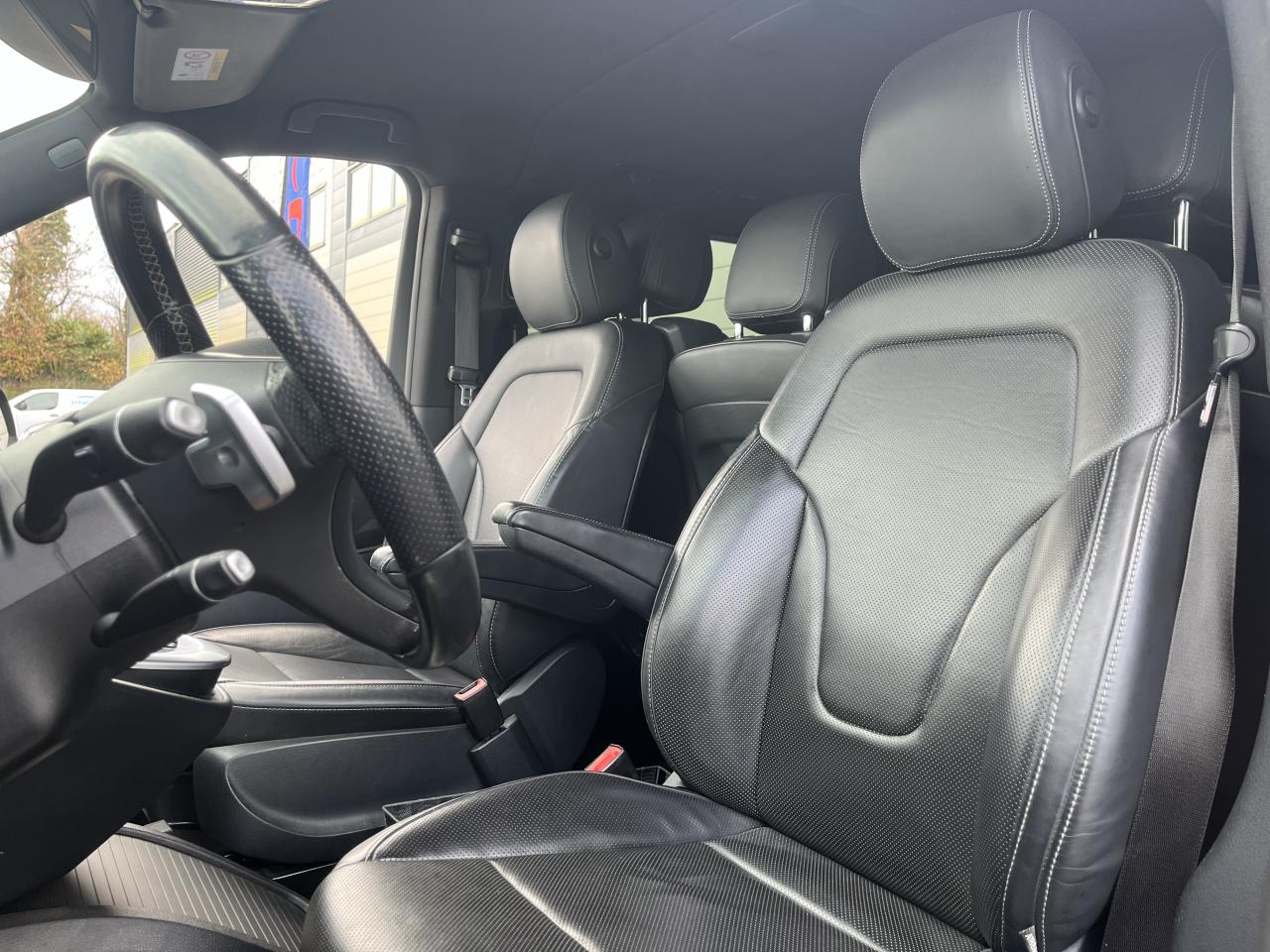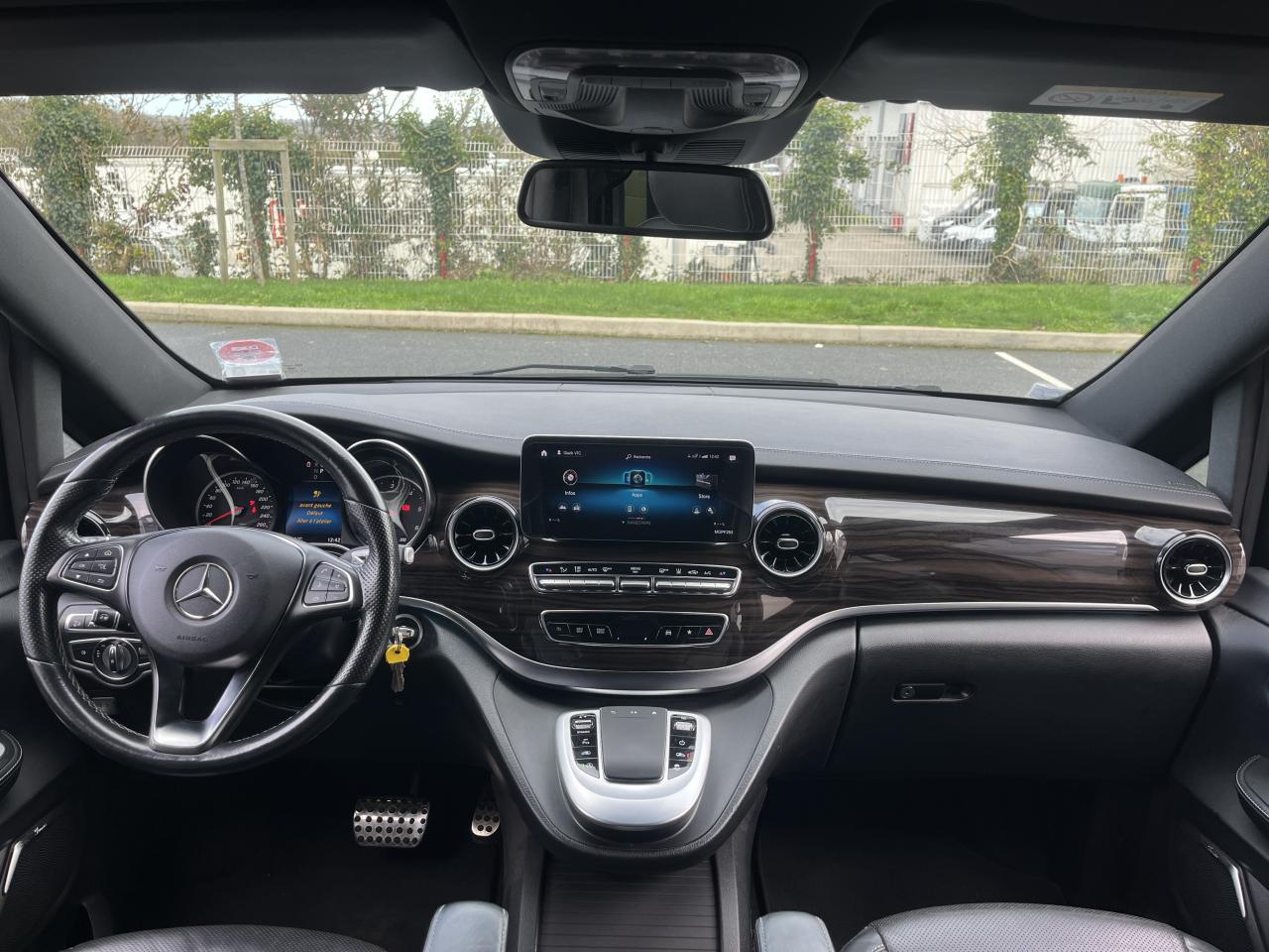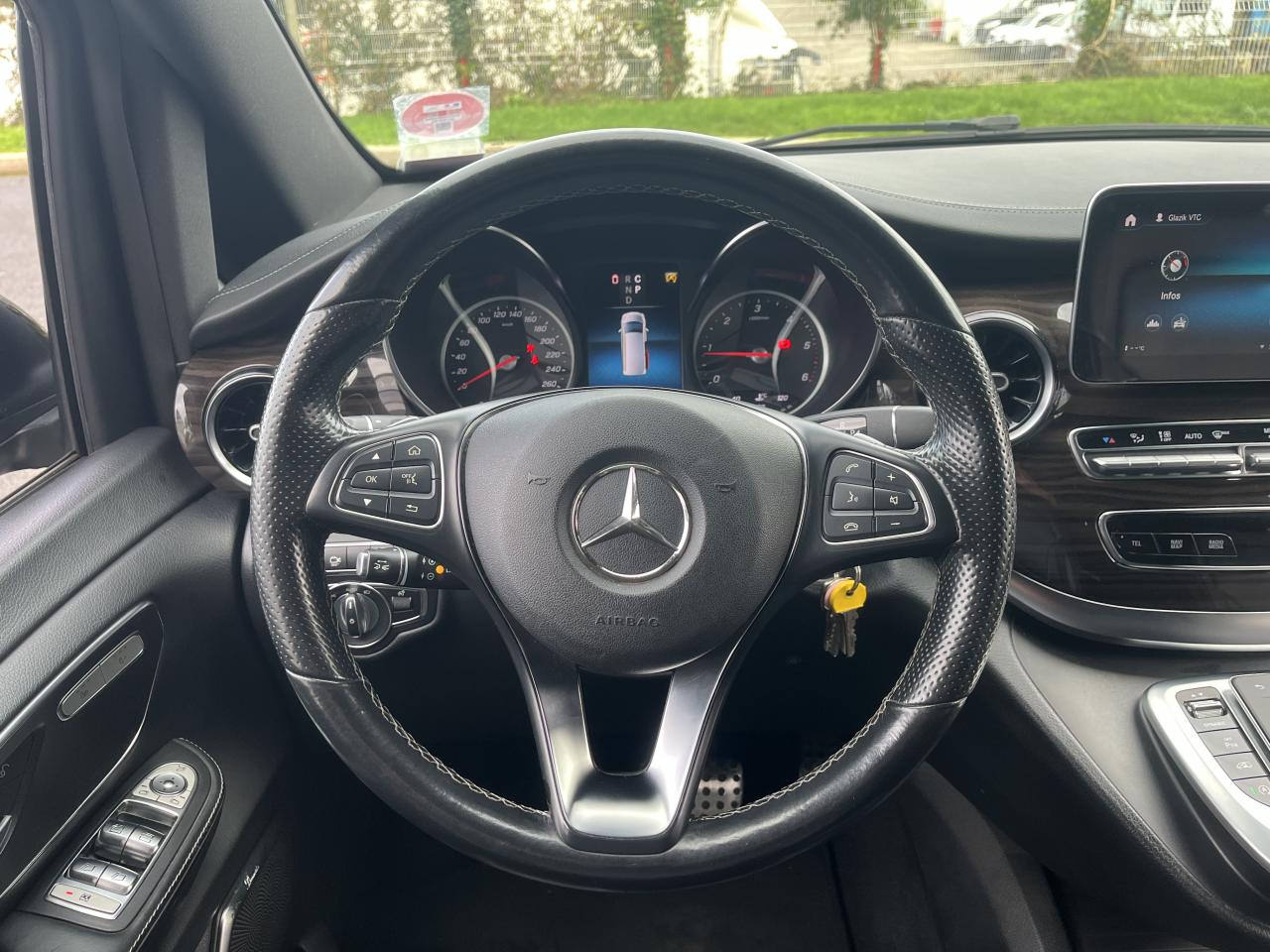 1 triangle de signalisation4 sièges individuels arrièreAccoudoirs passagers 2ème rangéeAide au démarrage en côteAirbag passager AVAirbags latéraux (bassin et thorax)Airbags rideaux conducteur et passagerAlarme de non bouclage de ceinture passagerAllumage automatique des projecteursAssistance en cas de panneAssistant de compensation du vent latéralAttention Assist : système de détection de somnolenceAudio 20 CDBatterie de puissance accrueBatterie tampon pour démarrageBlueEFFICIENCYBoîte à gants verrouillableBoîte de vitesses automatique à 9 rapports 9G-TRONICBorne auxiliaire pour aide au démarrageCanal d'air chaud vers le compartiment passagersCapteur de pluieCertificat CE de conformitéChauffage auxiliaire électriqueCiel de toit gris cristalClé électronique façon chromeClimatisation TEMPMATIC à régulation semi-automatiqueCombiné d'instruments avec visuel couleurConsole centrale avec casier de rangementDirection électriqueEchangeur thermique additionnel à l'arrièreEclairage d'ambiance intérieurEclairage de proximité hayon arrièreEclairage des seuils de porteEclairage du plancher avantEclairage poignée de maintien arrière avec spot de lectureFeux de position, feux stop et clignotants à LEDFeux stop adaptatifsFilet de rangement, dossier du siège conducteurFilet de rangement, dossier du siège passagerFonction Stop/Start ECOFrein à disque sur les essieux avant et arrièreFrein actif pour porte coulissanteFrein de stationnement électroniqueHabillage aérodynamique du soubassementHaut-parleur deux voies à l'avant et à l'arrièreHayon arrièreIndicateur de maintenance ASSYSTInsert décoratif bois rayures finesIntelligent Light System (ILS) à LEDIntervalle de maintenance 40 000 kmJantes en alliage leger 7J x 17"Lève-vitres électriques avantLive Traffic InformationLunette arrière à ouverture séparéeModule de communication (LTE) pour services numériquesModule de pavillon confortMonogramme de seuil Mercedes-Benz éclairéMoquette à l'arrièreMoquette à l'avantNavigation Garmin MAP PILOTNorme antipollution Euro 6d-TEMP M/N1 cl. IIPack Assistance à la trajectoirePack RétroviseurPare-chocs et pièces rapportées ton carrosseriePare-soleil avec miroirs de courtoisie éclairés, conducteur et passager avantPeinture uniePneumatiques 225/55 R17Pneumatiques confortsPneus étéPorte latérale coulissante droitePorte latérale coulissante gauchePré-équipement pour navigation Garmin MAP PILOTPrédisposition faisceau d'attelagePrise 12V dans le coffreRails de sièges à verrouillage rapideRéservoir de 70 litresRétroviseur intérieurRétroviseurs extérieurs chauffants à réglage électriqueSécurité-enfants pour portes et hayons dans le compartiment passagersSellerie cuir Lugano NoirSiège conducteur confortSiège individuel 2eme rangée droiteSiège individuel 2ème rangée gaucheSiège passager confortSoutien lombaire pour siège conducteurSoutien lombaire pour siège passagerSubdivision du compartiment de chargement (2 casiers de rangement intégrés)Système d'Appel d'Urgence Mercedes-BenzSystème de contrôle de la pression des pneusTémoin d'alerte pour niveau de liquide lave-glaceTrain de roulement AGILITY CONTROLTroisième feu stopVariante de poids 3 100 kgVitre fixe avant droiteVitre fixe avant gaucheVitres arrière teintées noiresVolant gainé cuirVolant multifonctions et ordinateur de bordVolant réglable en hauteur et inclinaison