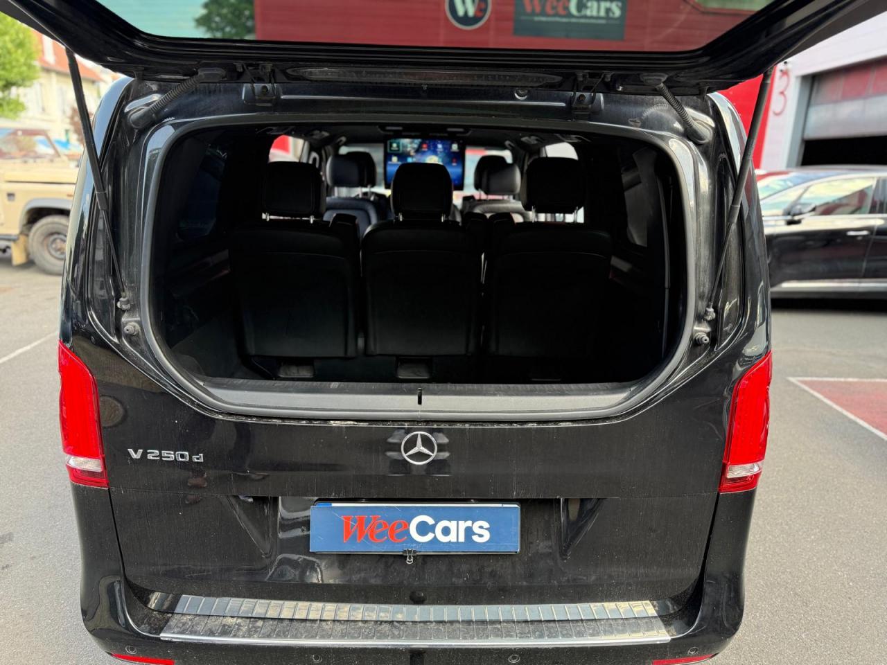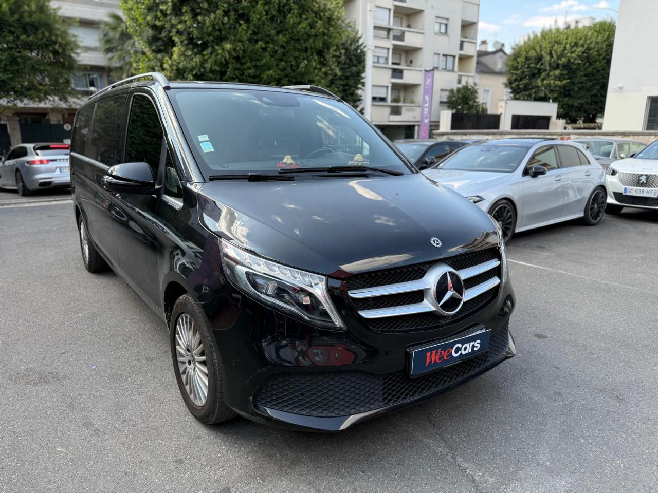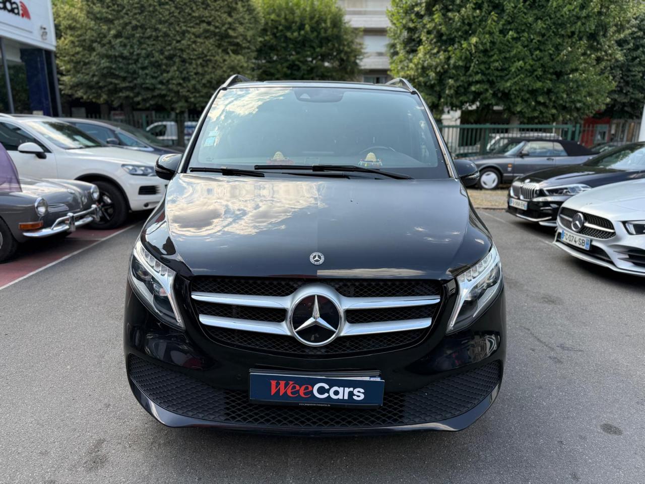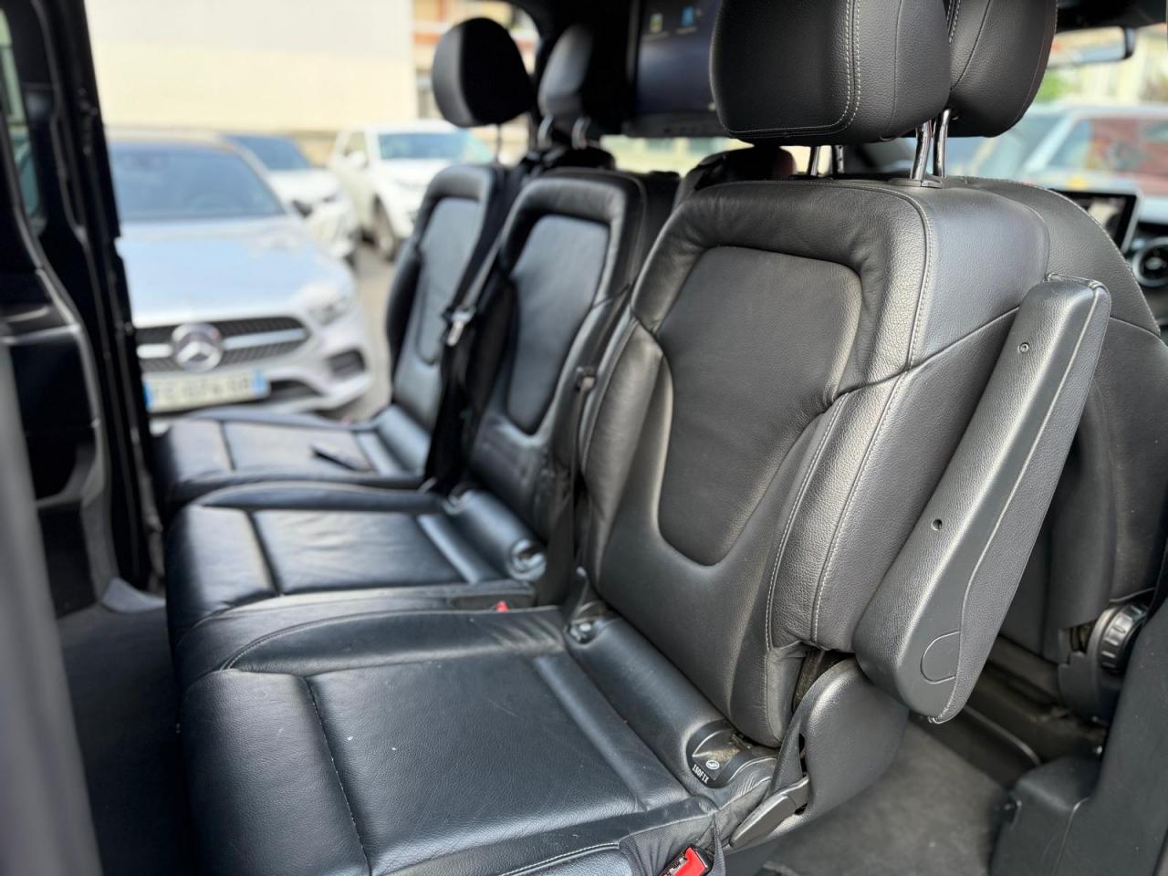 1 triangle de signalisation4 sièges individuels arrièreAccoudoirs passagers 2ème rangéeAide au démarrage en côteAirbag passager AVAirbags latéraux (bassin et thorax)Airbags rideaux conducteur et passagerAlarme de non bouclage de ceinture passagerAllumage automatique des projecteursAssistance en cas de panneAssistant de compensation du vent latéralAttention Assist : système de détection de somnolenceAudio 20 CDBatterie de puissance accrueBatterie tampon pour démarrageBlueEFFICIENCYBoîte à gants verrouillableBoîte de vitesses automatique à 9 rapports 9G-TRONICBorne auxiliaire pour aide au démarrageCanal d'air chaud vers le compartiment passagersCapteur de pluieCertificat CE de conformitéChauffage auxiliaire électriqueCiel de toit gris cristalClé électronique façon chromeClimatisation TEMPMATIC à régulation semi-automatiqueCombiné d'instruments avec visuel couleurConsole centrale avec casier de rangementDirection électriqueEchangeur thermique additionnel à l'arrièreEclairage d'ambiance intérieurEclairage de proximité hayon arrièreEclairage des seuils de porteEclairage du plancher avantEclairage poignée de maintien arrière avec spot de lectureFeux de position, feux stop et clignotants à LEDFeux stop adaptatifsFilet de rangement, dossier du siège conducteurFilet de rangement, dossier du siège passagerFonction Stop/Start ECOFrein à disque sur les essieux avant et arrièreFrein actif pour porte coulissanteFrein de stationnement électroniqueHabillage aérodynamique du soubassementHaut-parleur deux voies à l'avant et à l'arrièreHayon arrièreIndicateur de maintenance ASSYSTInsert décoratif bois rayures finesIntelligent Light System (ILS) à LEDIntervalle de maintenance 40 000 kmJantes en alliage leger 7J x 17"Lève-vitres électriques avantLive Traffic InformationLunette arrière à ouverture séparéeModule de communication (LTE) pour services numériquesModule de pavillon confortMonogramme de seuil Mercedes-Benz éclairéMoquette à l'arrièreMoquette à l'avantNavigation Garmin MAP PILOTNorme antipollution Euro 6d-TEMP M/N1 cl. IIPack Assistance à la trajectoirePack RétroviseurPare-chocs et pièces rapportées ton carrosseriePare-soleil avec miroirs de courtoisie éclairés, conducteur et passager avantPeinture uniePneumatiques 225/55 R17Pneumatiques confortsPneus étéPorte latérale coulissante droitePorte latérale coulissante gauchePré-équipement pour navigation Garmin MAP PILOTPrédisposition faisceau d'attelagePrise 12V dans le coffreRails de sièges à verrouillage rapideRéservoir de 70 litresRétroviseur intérieurRétroviseurs extérieurs chauffants à réglage électriqueSécurité-enfants pour portes et hayons dans le compartiment passagersSellerie cuir Lugano NoirSiège conducteur confortSiège individuel 2eme rangée droiteSiège individuel 2ème rangée gaucheSiège passager confortSoutien lombaire pour siège conducteurSoutien lombaire pour siège passagerSubdivision du compartiment de chargement (2 casiers de rangement intégrés)Système d'Appel d'Urgence Mercedes-BenzSystème de contrôle de la pression des pneusTémoin d'alerte pour niveau de liquide lave-glaceTrain de roulement AGILITY CONTROLTroisième feu stopVariante de poids 3 100 kgVitre fixe avant droiteVitre fixe avant gaucheVitres arrière teintées noiresVolant gainé cuirVolant multifonctions et ordinateur de bordVolant réglable en hauteur et inclinaison