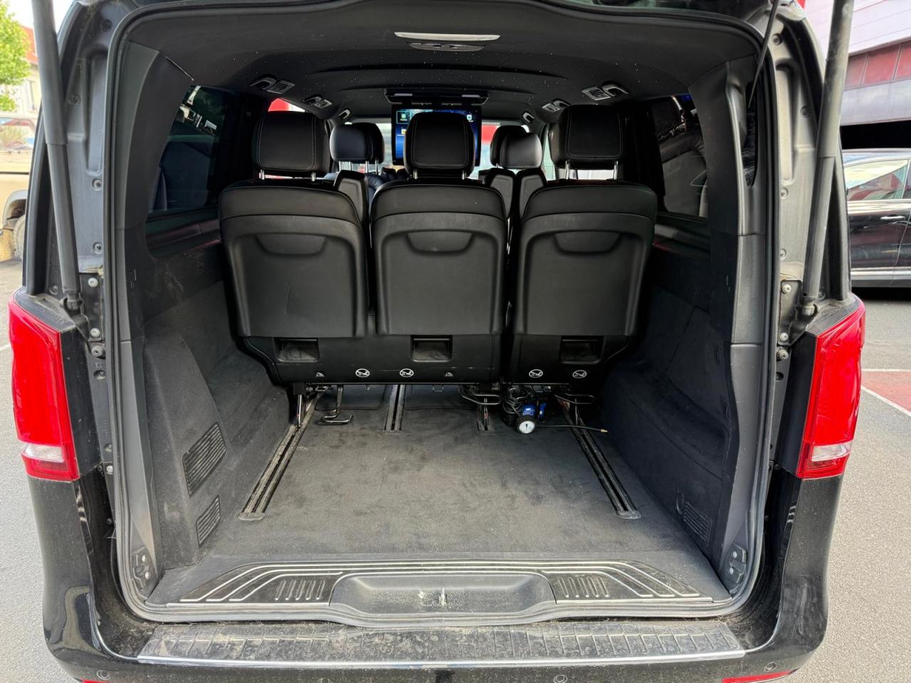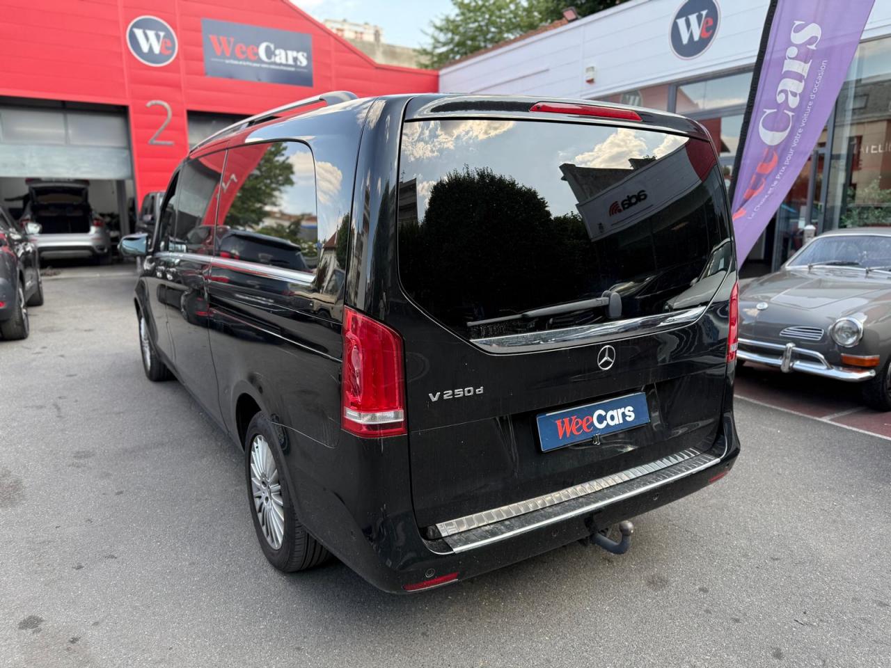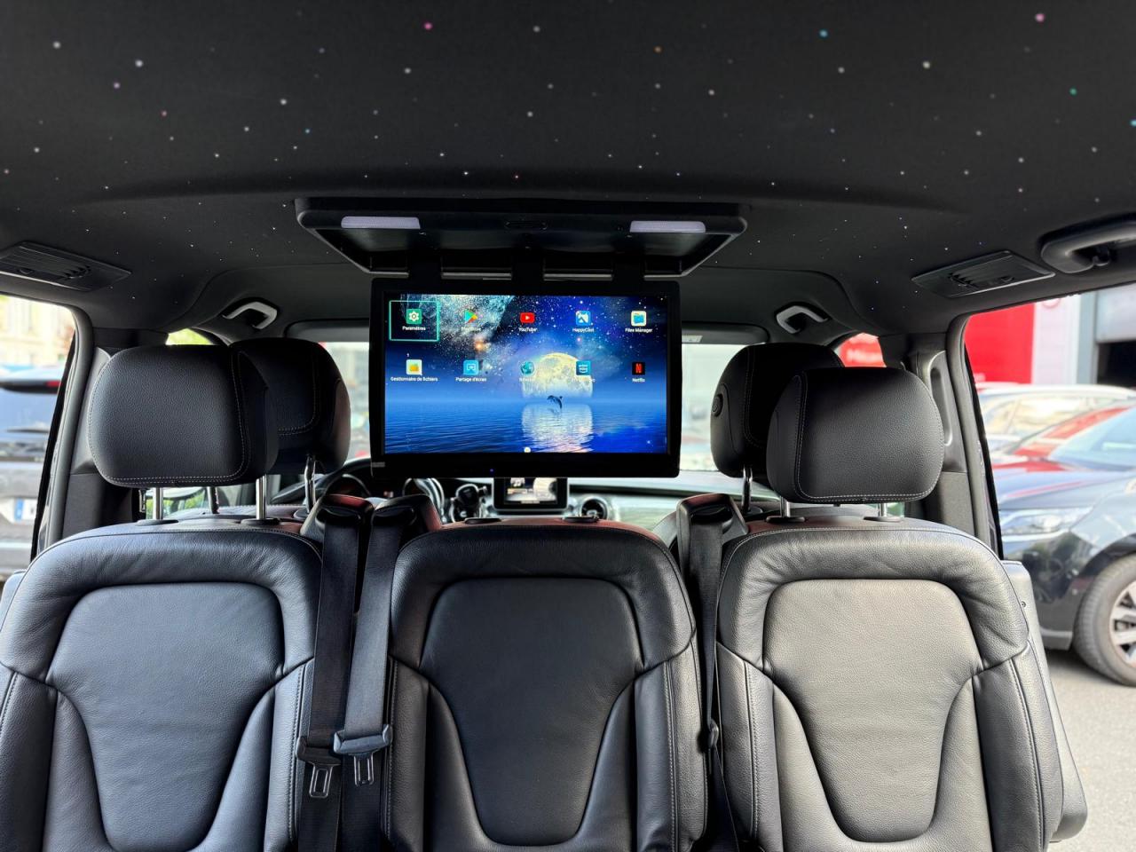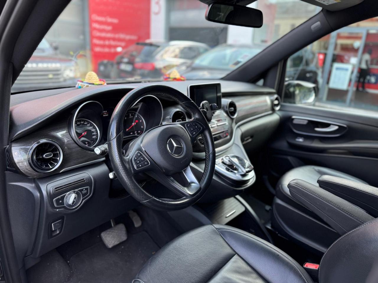 1 triangle de signalisation4 sièges individuels arrièreAccoudoirs passagers 2ème rangéeAide au démarrage en côteAirbag passager AVAirbags latéraux (bassin et thorax)Airbags rideaux conducteur et passagerAlarme de non bouclage de ceinture passagerAllumage automatique des projecteursAssistance en cas de panneAssistant de compensation du vent latéralAttention Assist : système de détection de somnolenceAudio 20 CDBatterie de puissance accrueBatterie tampon pour démarrageBlueEFFICIENCYBoîte à gants verrouillableBoîte de vitesses automatique à 9 rapports 9G-TRONICBorne auxiliaire pour aide au démarrageCanal d'air chaud vers le compartiment passagersCapteur de pluieCertificat CE de conformitéChauffage auxiliaire électriqueCiel de toit gris cristalClé électronique façon chromeClimatisation TEMPMATIC à régulation semi-automatiqueCombiné d'instruments avec visuel couleurConsole centrale avec casier de rangementDirection électriqueEchangeur thermique additionnel à l'arrièreEclairage d'ambiance intérieurEclairage de proximité hayon arrièreEclairage des seuils de porteEclairage du plancher avantEclairage poignée de maintien arrière avec spot de lectureFeux de position, feux stop et clignotants à LEDFeux stop adaptatifsFilet de rangement, dossier du siège conducteurFilet de rangement, dossier du siège passagerFonction Stop/Start ECOFrein à disque sur les essieux avant et arrièreFrein actif pour porte coulissanteFrein de stationnement électroniqueHabillage aérodynamique du soubassementHaut-parleur deux voies à l'avant et à l'arrièreHayon arrièreIndicateur de maintenance ASSYSTInsert décoratif bois rayures finesIntelligent Light System (ILS) à LEDIntervalle de maintenance 40 000 kmJantes en alliage leger 7J x 17"Lève-vitres électriques avantLive Traffic InformationLunette arrière à ouverture séparéeModule de communication (LTE) pour services numériquesModule de pavillon confortMonogramme de seuil Mercedes-Benz éclairéMoquette à l'arrièreMoquette à l'avantNavigation Garmin MAP PILOTNorme antipollution Euro 6d-TEMP M/N1 cl. IIPack Assistance à la trajectoirePack RétroviseurPare-chocs et pièces rapportées ton carrosseriePare-soleil avec miroirs de courtoisie éclairés, conducteur et passager avantPeinture uniePneumatiques 225/55 R17Pneumatiques confortsPneus étéPorte latérale coulissante droitePorte latérale coulissante gauchePré-équipement pour navigation Garmin MAP PILOTPrédisposition faisceau d'attelagePrise 12V dans le coffreRails de sièges à verrouillage rapideRéservoir de 70 litresRétroviseur intérieurRétroviseurs extérieurs chauffants à réglage électriqueSécurité-enfants pour portes et hayons dans le compartiment passagersSellerie cuir Lugano NoirSiège conducteur confortSiège individuel 2eme rangée droiteSiège individuel 2ème rangée gaucheSiège passager confortSoutien lombaire pour siège conducteurSoutien lombaire pour siège passagerSubdivision du compartiment de chargement (2 casiers de rangement intégrés)Système d'Appel d'Urgence Mercedes-BenzSystème de contrôle de la pression des pneusTémoin d'alerte pour niveau de liquide lave-glaceTrain de roulement AGILITY CONTROLTroisième feu stopVariante de poids 3 100 kgVitre fixe avant droiteVitre fixe avant gaucheVitres arrière teintées noiresVolant gainé cuirVolant multifonctions et ordinateur de bordVolant réglable en hauteur et inclinaison