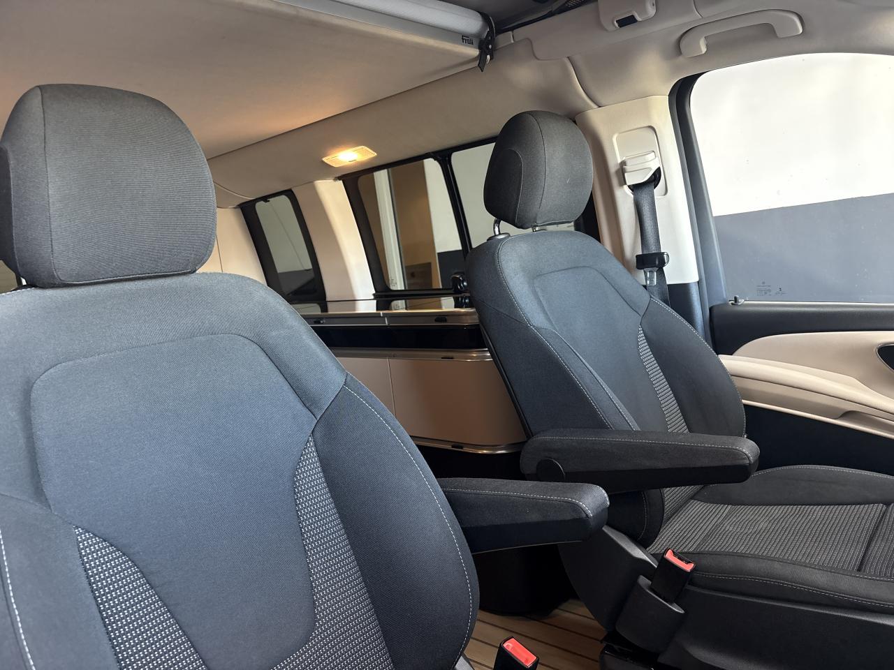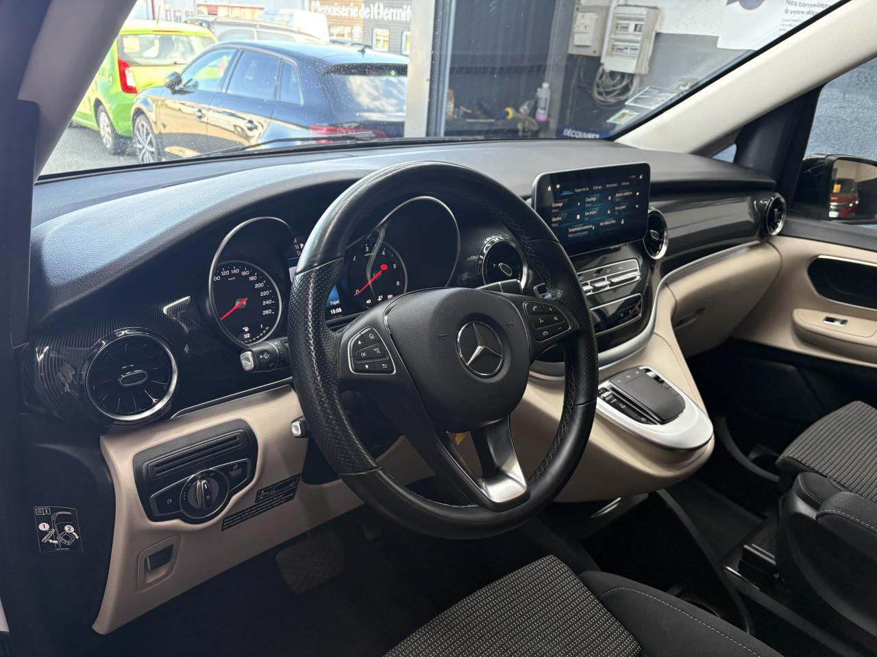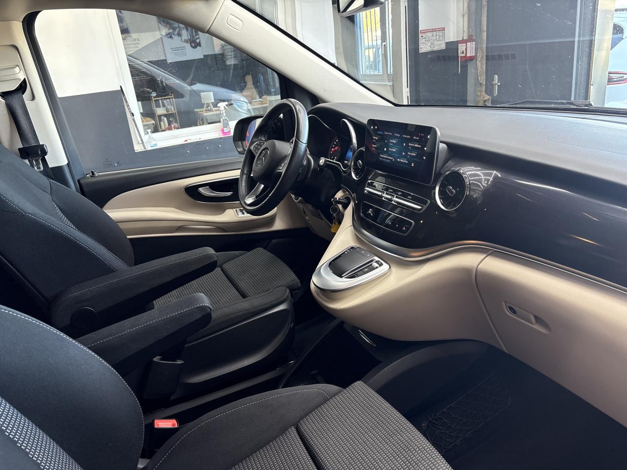 3 ans de mise à jour des cartes de navigationAccoudoirs passagers 2ème rangéeAide au démarrage en côteAirbag passager avantAirbags latéraux (bassin et thorax)Airbags rideaux conducteur et passagerAlarme de non bouclage de ceinture passagerAllumage automatique des projecteursAlternateur 14V / 250AAssistance en cas de panneBatterie de puissance accrueBatterie tampon pour démarrageBlueEFFICIENCYBoîte à gants verrouillableBoîte de vitesses automatique à 9 rapports 9G-TRONICCaméra de reculCanal d'air chaud vers le compartiment passagersCapteur de pluieChauffage auxiliaire électriqueCiel de toit gris cristalClé électronique façon chromeClimatisation TEMPMATIC à régulation semi-automatiqueCombiné d'instruments avec visuel couleurConsole centrale avec casier de rangementEchangeur thermique additionnel à l'arrièreEclairage d'ambiance intérieurEclairage de proximité hayon arrièreEclairage du plancher avantEclairage poignée de maintien arrière avec spot de lectureFeux de position, feux stop et clignotants à LEDFeux stop adaptatifsFonction Stop/Start ECOFrein actif pour porte coulissanteHaut-parleur deux voies à l'avant et à l'arrièreHayon arrièreInsert décoratif bois rayures fines, restylageIntelligent Light System (ILS) à LEDJantes en alliage leger 7J x 17"Live Traffic InformationLunette arrière à ouverture séparéeModule de communication (LTE) pour services numériquesModule de pavillon confortMonogramme de seuil Mercedes-Benz éclairéMoquette à l'arrièreMoquette à l'avantOuverture et fermeture confort avec télécommandePack aérodynamiquePack Confort SiègesPack d'assistance de trajectoirePack rétroviseursPare-chocs et pièces rapportées ton carrosseriePare-soleil avec miroir de courtoisie éclairéPavé tactile de commandePeintures standardPneumatiques 225/55 R17Pneumatiques confortsPneus étéPoignée à l'arrièrePoignées de maintien et d'accèsPorte latérale coulissante gauchePré-équipement Remote Services PlusPrédisposition faisceau d'attelagePrise 12V dans le coffreRadio Numérique DABRails de sièges à verrouillage rapideRéservoir de 70 litresRétroviseurs extérieurs chauffants à réglage électriqueSécurité-enfants dans le compartiment passagersSellerie cuir Lugano NoirSiège conducteur confortSiège individuel 1ère rangée à droiteSiège individuel 1ère rangée à gaucheSiège individuel 2eme rangée droiteSiège individuel 2ème rangée gaucheSiège passager confortSubdivision du compartiment de chargementSystème d'Appel d'Urgence Mercedes-BenzSystème de contrôle de la pression des pneusSystème de navigationSystème multimédia MBUX MidTémoin d'alerte pour niveau de liquide lave-glaceTempomatTrain de roulement AGILITY CONTROLTriangle de présignalisation CEE dans porte conducteurVariante de poids 3 100 kgVitre arrière fixeVitre avant droite fixe dans le panneau latéral/la porte coulissanteVitre avant gauche fixe dans le panneau latéral/la porte coulissanteVitres arrière teintées noiresVolant gainé cuirVolant multifonctions et ordinateur de bordVolant réglable en hauteur et inclinaison