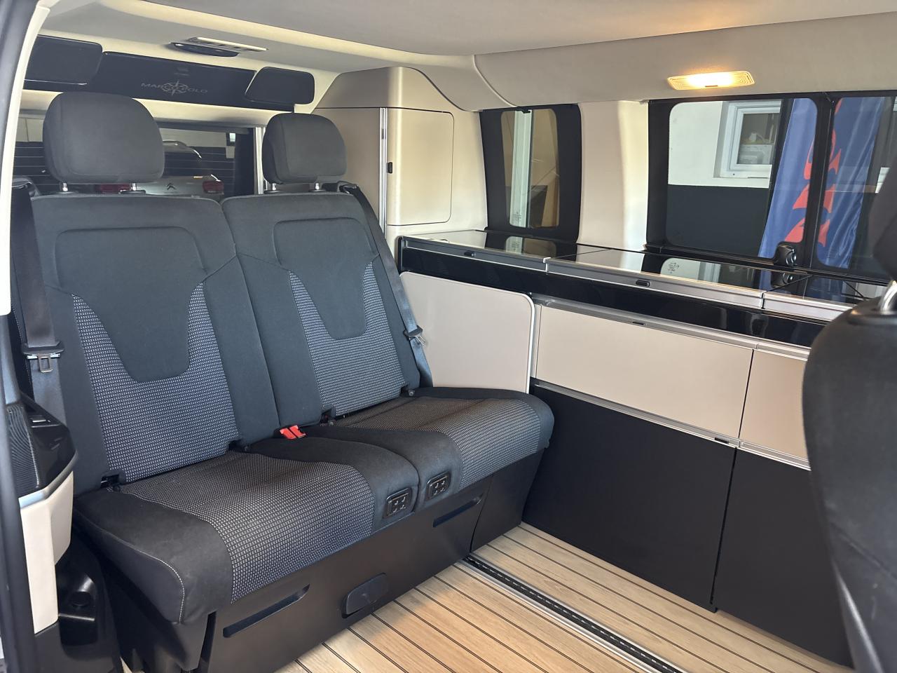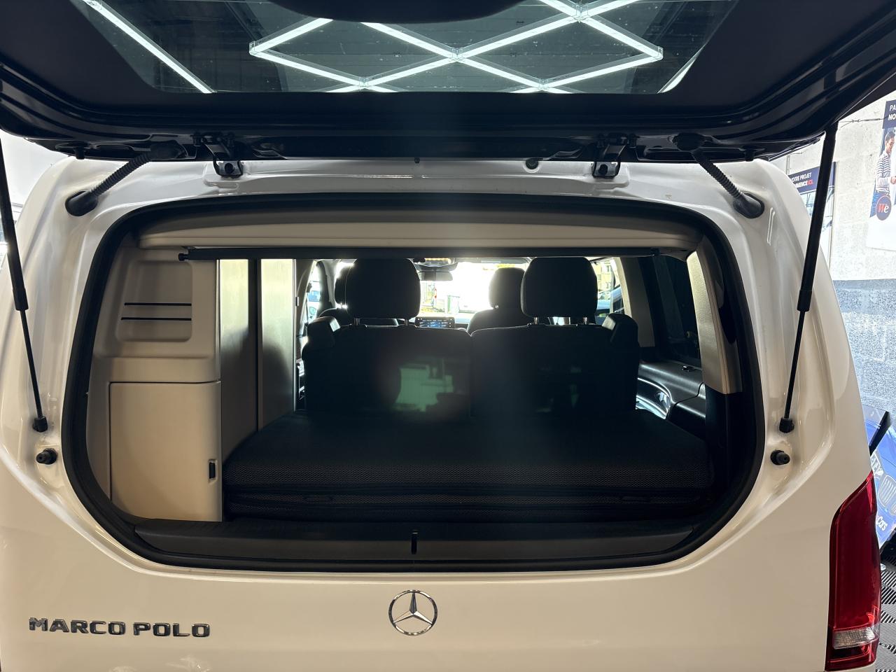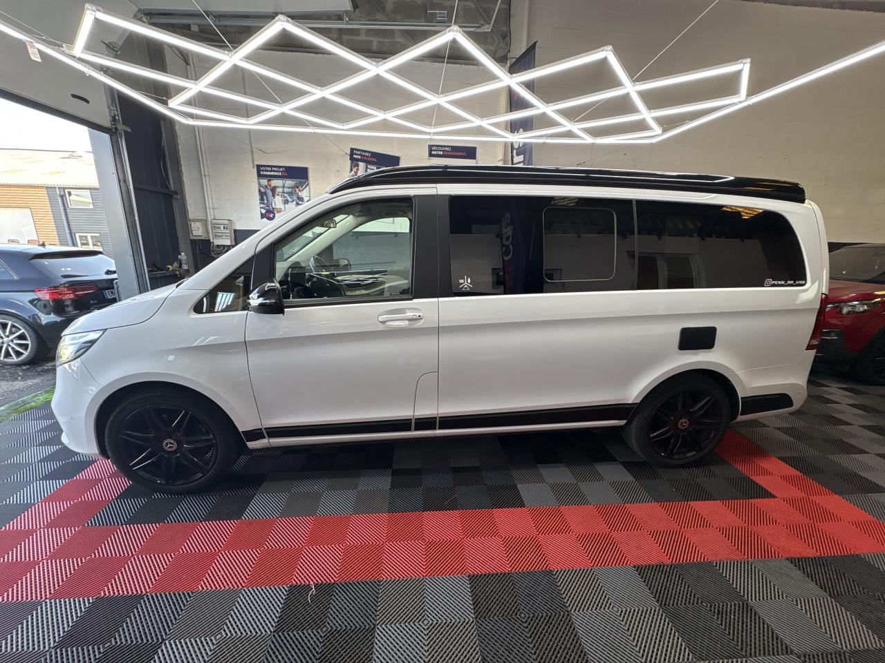 3 ans de mise à jour des cartes de navigationAccoudoirs passagers 2ème rangéeAide au démarrage en côteAirbag passager avantAirbags latéraux (bassin et thorax)Airbags rideaux conducteur et passagerAlarme de non bouclage de ceinture passagerAllumage automatique des projecteursAlternateur 14V / 250AAssistance en cas de panneBatterie de puissance accrueBatterie tampon pour démarrageBlueEFFICIENCYBoîte à gants verrouillableBoîte de vitesses automatique à 9 rapports 9G-TRONICCaméra de reculCanal d'air chaud vers le compartiment passagersCapteur de pluieChauffage auxiliaire électriqueCiel de toit gris cristalClé électronique façon chromeClimatisation TEMPMATIC à régulation semi-automatiqueCombiné d'instruments avec visuel couleurConsole centrale avec casier de rangementEchangeur thermique additionnel à l'arrièreEclairage d'ambiance intérieurEclairage de proximité hayon arrièreEclairage du plancher avantEclairage poignée de maintien arrière avec spot de lectureFeux de position, feux stop et clignotants à LEDFeux stop adaptatifsFonction Stop/Start ECOFrein actif pour porte coulissanteHaut-parleur deux voies à l'avant et à l'arrièreHayon arrièreInsert décoratif bois rayures fines, restylageIntelligent Light System (ILS) à LEDJantes en alliage leger 7J x 17"Live Traffic InformationLunette arrière à ouverture séparéeModule de communication (LTE) pour services numériquesModule de pavillon confortMonogramme de seuil Mercedes-Benz éclairéMoquette à l'arrièreMoquette à l'avantOuverture et fermeture confort avec télécommandePack aérodynamiquePack Confort SiègesPack d'assistance de trajectoirePack rétroviseursPare-chocs et pièces rapportées ton carrosseriePare-soleil avec miroir de courtoisie éclairéPavé tactile de commandePeintures standardPneumatiques 225/55 R17Pneumatiques confortsPneus étéPoignée à l'arrièrePoignées de maintien et d'accèsPorte latérale coulissante gauchePré-équipement Remote Services PlusPrédisposition faisceau d'attelagePrise 12V dans le coffreRadio Numérique DABRails de sièges à verrouillage rapideRéservoir de 70 litresRétroviseurs extérieurs chauffants à réglage électriqueSécurité-enfants dans le compartiment passagersSellerie cuir Lugano NoirSiège conducteur confortSiège individuel 1ère rangée à droiteSiège individuel 1ère rangée à gaucheSiège individuel 2eme rangée droiteSiège individuel 2ème rangée gaucheSiège passager confortSubdivision du compartiment de chargementSystème d'Appel d'Urgence Mercedes-BenzSystème de contrôle de la pression des pneusSystème de navigationSystème multimédia MBUX MidTémoin d'alerte pour niveau de liquide lave-glaceTempomatTrain de roulement AGILITY CONTROLTriangle de présignalisation CEE dans porte conducteurVariante de poids 3 100 kgVitre arrière fixeVitre avant droite fixe dans le panneau latéral/la porte coulissanteVitre avant gauche fixe dans le panneau latéral/la porte coulissanteVitres arrière teintées noiresVolant gainé cuirVolant multifonctions et ordinateur de bordVolant réglable en hauteur et inclinaison
