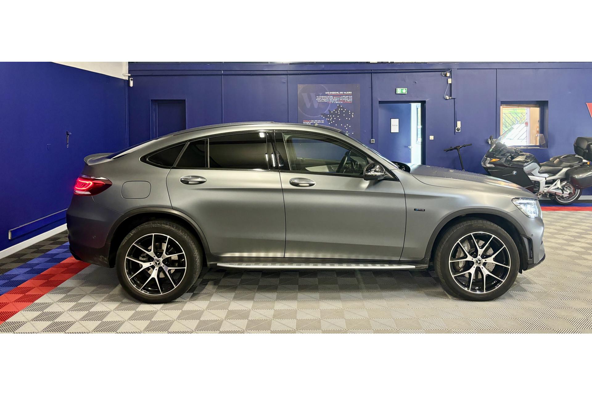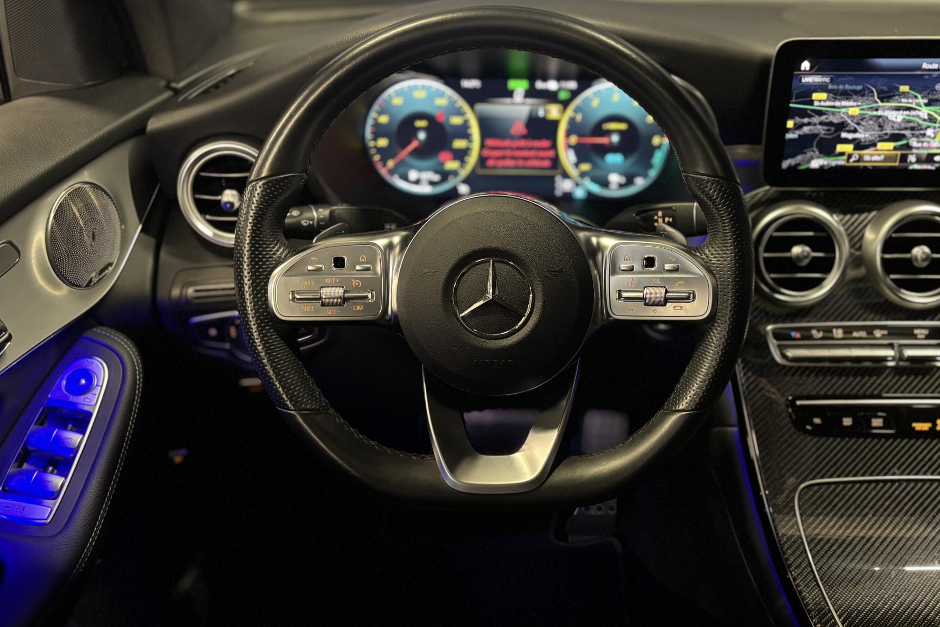 ABS (antiblocage de roues) et ASR (antipatinage)Accoudoir central arrière rabattable avec vide-poches et porte-gobeletsAccoudoir central avant avec vide-poches incluant deux prises USB et une fente SDADAPTIVE BRAKE avec fonction HOLD et aide au démarrage en côte, préremplissage et séchage des freins par freinage en cas de pluieAffichage du non bouclage des ceintures de sécurité aux places arrièreAirbag genoux pour conducteurAirbags frontaux à 2 phases de déploiement (conducteur et passager avant)Airbags latéraux, conducteur et passager avantAirbags rideaux avant et passagers latéraux arrièreAttention Assist : système de détection de somnolenceBaguette de ligne de ceinture en aluminium poliBanquette arrière rabattable 40/20/40Boîte à gants éclairéeBoîte de vitesses automatique à 9 rapports 9G-TRONICCâble de recharge pour prise domestique (5 mètres)Caméra de recul incluant lignes de guidage dynamiques et image haute définition sur l'écran médiaCapot moteur actif pour la protection des piétonsCeintures de sécurité 3 points avec rétracteur et limiteur d'effort x4Chargeur embarqué 7,4kWCiel de pavillon en tissu noirClignotants à commande confort par impulsionsClimatisation automatique THERMATIC à 2 zonesCombiné d'instruments avec écran couleur de 14 cm (5,5") et résolution de 383 x 600 pixels pour l'affichage d'informations supplémentairesContrôle de la pression des pneumatiquesDésactivation automatique de l’airbag passager avantDéverrouillage à distance du couvercle du coffreDirection assistée et asservie à la vitesseDYNAMIC SELECT : offre le choix parmi 4 modes de conduite (Eco, Confort, Sport et Sport+)Ecran media haute résolution (1 920 x 720 pixels) de 10,25'' (26 cm) au format 16/9Encadrements des vitres en aluminium poliESP (régulation de comportement dynamique) avec assistant de conduite dynamique en virageEssuie-glaces détecteurs de pluieFeux arrière intégralement à LEDFeux de stop adaptatifsFilet dans le coffre à bagages (côté gauche) et 4 oeillets d'arrimage sur le plancher du coffreFiltre à particulesFixation de siège enfant de type i-Size intégrée dans les coussins d’assise à l'arrière (places extérieures) et dispositif de courroies Top Tether pour les sièges enfantsFonction d'arrêt/redémarrage "Stop/Start ECO" avec commutateur de désactivation manuelleFrein de parking automatique électrique avec desserrage automatique au démarrageFreinage d'urgence assisté actif (alerte visuelle et sonore en cas de risque de collision et freinage d'urgence autonome dans certaines conditions)Grand insert décoratif en finition laqué noir sur la console centraleGrille de calandre diamant avec pastilles chromées, étoile Mercedes intégrée et une lamelle dans le ton argent avec insert chroméHayon EASY-PACK avec ouverture et fermeture par commande électriqueIndicateur d'usure des garnitures de freinIndicateur de température extérieureIndicateur dynamique de maintenance (ASSYST PLUS)Inserts décoratifs en aluminium clair avec stries longitudinales sur la planche de bord et les contre-portesKEYLESS-GO : démarrage sans cléKit anti-crevaison TIREFITKit carrosserie AMG : jupe avant AMG avec prises d’air élargies et insert décoratif chromé, jupe arrière AMG façon diffuseur avec insert noirLève-vitres électrique (x4) à commande séquentielle et dispositif anti-pincementMercedes me connectModule de communication LTE pour l'utilisation des services Mercedes me connectPack Confort des sièges avantPack d'éclairage intérieurPack exterieur ChromePack rangementPack rétroviseursPack stationnementPalettes de changement de rapports au volant Direct SelectPare-chocs arrière dans le ton carrosseriePare-chocs avant dynamique avec insert décoratif en position centrale, finition chroméePare-soleil avec miroirs de courtoisie éclairés (X2)Pavé tactile avec cadre en finition chromée argentéePédalier sport AMG en acier inoxydable brossé avec picots en caoutchouc noirPeinture non métalliséeProjecteurs LED hautes performances à l'avant avec allumage automatiqueRadio Numérique DABRange-lunettes dans l'unité de commande au toitRétroviseurs extérieurs électriques, chauffants et asphériques, avec rappels de clignotants intégrésSécurité enfant avec verrouillage manuel des portes arrière et électrique des vitres arrièreSièges sport avec garnitures en similicuir ARTICO/microfibre dans le ton noir avec surpiqûres contrastées grisesSystème de freinage à l’arrière doté d’étriers flottants à 1 piston et de disques de frein de dimension 320 mm/24 mmSystème de freinage à l’avant doté d’étriers fixes à 4 pistons et du logo « Mercedes-Benz » et de disques de frein perforés de dimension 360 mm/36 mmSystème de Navigation MBUX par disque durSystème de sonorisation avec quatre haut-parleurs de médiums dans les contre-portes et un FrontbassSystème de stabilisation en cas de vent latéralTapis de sol en velours avec monogramme "AMG"TEMPOMAT (régulateur et limiteur de vitesse)TOUCHPAD : pavé tactile permettant la navigation dans les menus audio, téléphone et média sur l'écran couleurTrain de roulement sport avec direction directe sportVerrouillage centralisé à télécommande avec fonction de verrouillage automatiqueVitres latérales arrière et lunette arrière teintées foncéesVolant sport multifonction à 3 branches revêtu de cuir Nappa noir, avec surpiqûres noires, méplat dans la partie inférieure, marquages profonds dans la zone de préhension, boutons Touch-Control et cache chromé argenté