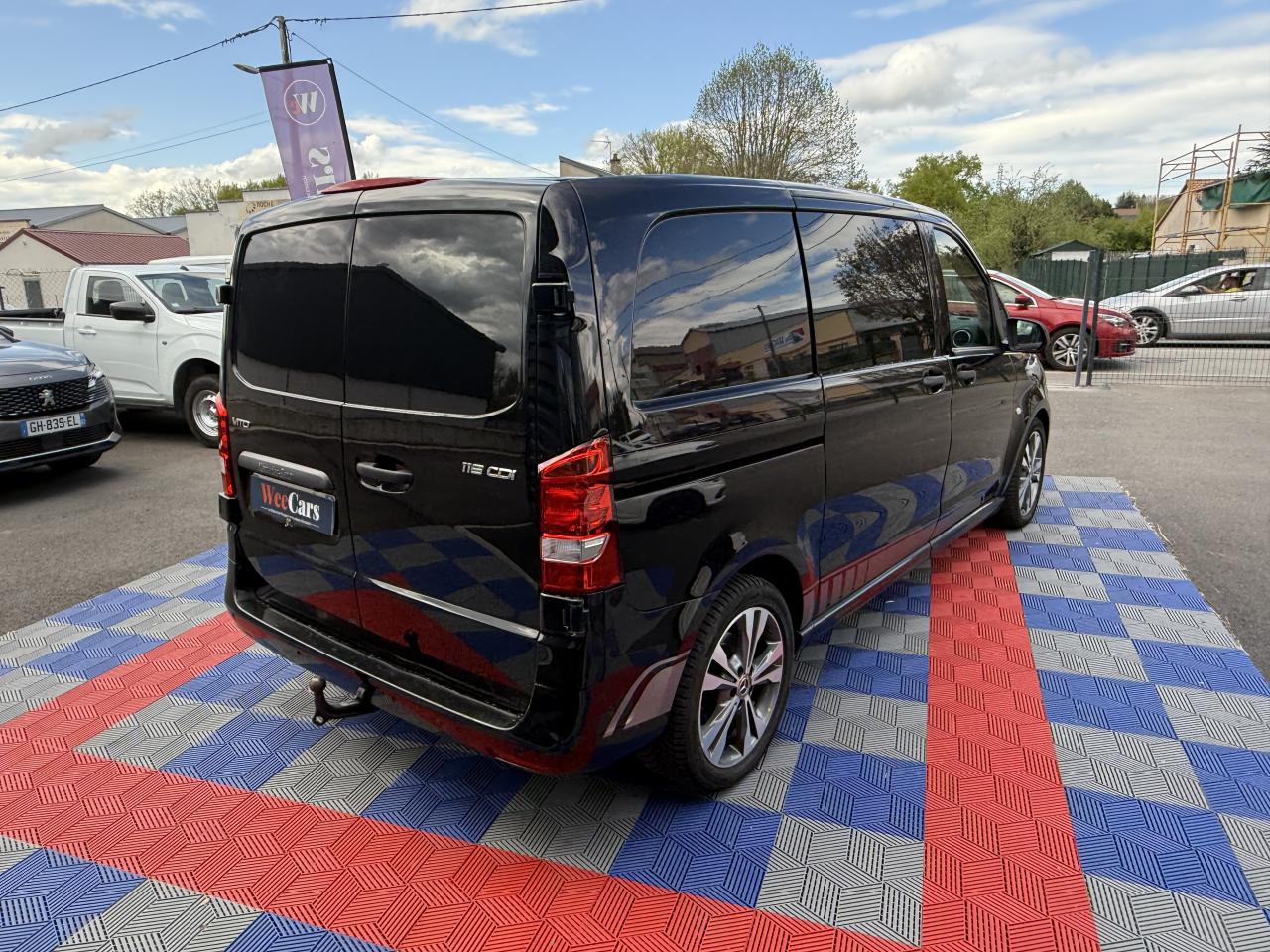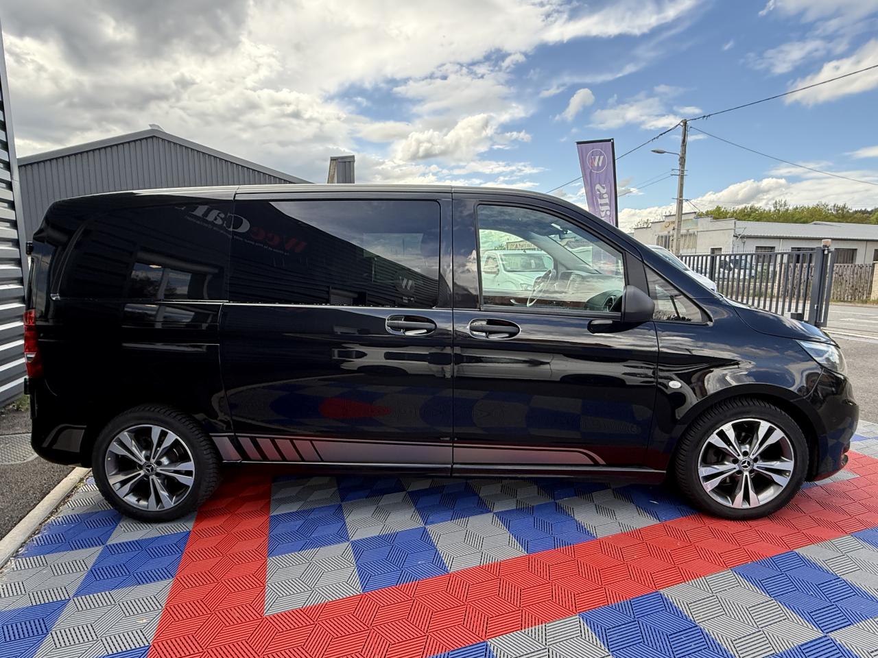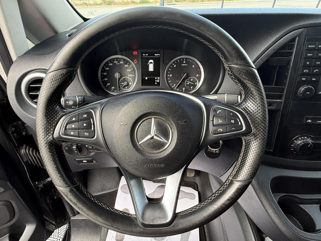 ABS (Antiblocage de roues)Airbag conducteur et passagerAlternateur 14 V / 150 AASR - Système anti-patinage des rouesAssistance au démarrage en côteAttention Assist : système de détection de somnolenceAudio 10 : radio RDS Bluetooth USB Aux-in Carte SDAvertisseur d'oubli de ceintures de sécurité conducteur et passagerBAS : amplificateur hydraulique de freinage d'urgenceBatterie 12V / 70AhBDW : Brake Disk Wiping : Elimination de la pellicule d'eau sur les disques de frein par temps de pluieBlocage actif pour porte coulissanteBoîte à gants verrouillableBoîte de vitesses automatique à 7 rapports 7G-TRONIC PLUS avec levier sélecteur DIRECT SELECT avec palettes de commandes au volantContrôle de pression des pneus ( TPMS )CROSSWIND ASSIST : système de correction de trajectoire en cas de vent latéralEBP : Electronic Brake Prefill Rapprochement préventif des garnitures de frein dans les situations critiquesEBV : Répartiteur électronique de freinageEUC : Contrôle de sous-virage Enhanced Understeering ControlFeux de stop adaptatifsGaine d'air chaud/froid vers l'habitacleHabillage de pavillon standard montants B à DHabillage intérieur paroi latérale dans le compartiment de chargement / habitacleHaut-Parleur à deux voies avantHayon arrièreHayon vitré + essuie-glace + lave-glaceIndicateur dynamique de maintenance ASSYSTJantes acier 41cm 6,5Jx16LAC : Régulation asservie à la charge Load Adaptive ControlPack BlueEFFICIENCYPlafonniers arrièrePlancher bois antidérapantPneumatiques 205/65 R16Pneus étéPorte coulissante droitePrise 12VRéservoir Adblue de 11,5L environRéservoir de carburant grand formatRétroviseur intérieurROM / RMI : Protection antiretournement Roll Over Mitigation et Roll Movement InterventionSécurité-enfants dans les portes coulissantes dans le compartiment passagersSiège conducteur réglable en longueur, inclinaison et hauteurSiège passager réglable manuellement en longueur et inclinaisonSiège passager standardSystème de fixation de sièges arrière à verrouillage rapide, 2 rangéesSystème de freinage hydraulique à double circuit avec amplificateur de dépressionSystème de régulation du comportement dynamique ESPSystème de stabilisation en cas de vent latéralSystème électrique pour prise de courant remorqueTémoin de niveau de lave-glaceTémoin de température extérieureTEMPOMAT (régulateur de vitesse) et SPEEDTRONIC (limiteur de vitesse)Tissu Tunja noirTrain de roulement confortTSA (Aide à la stabilité au remorquage)Variante de poids 3 100 kgVéhicule dépollué Euro 6 Gr. IVerrouillage centralisé avec télécommande radioVitre fixe AVD, paroi latérale/porte coulissanteVitre fixe AVG, paroi latérale/porte coulissanteVitres de custode arrières fixesVolant réglable en hauteur et en profondeur