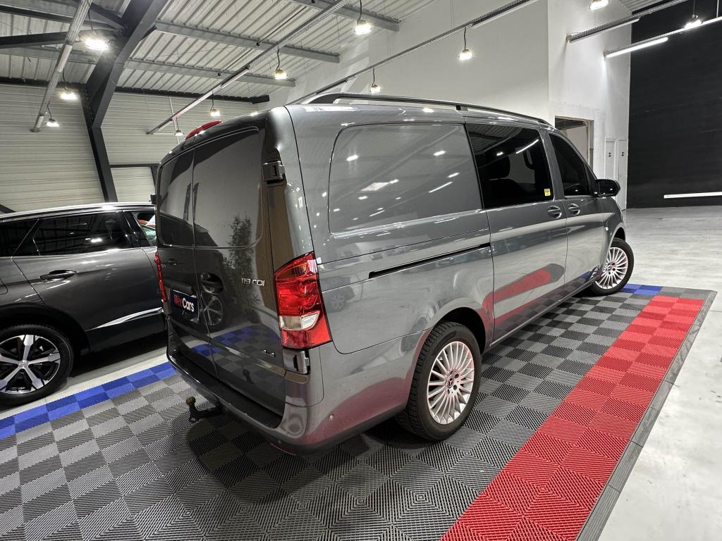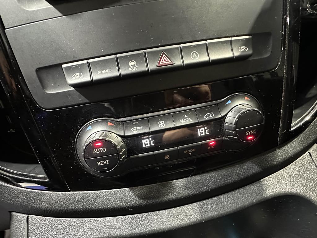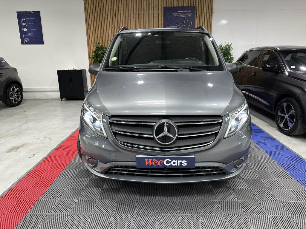 Affichage de la pression des pneumatiquesAide au démarrage en côteAide au stationnement active avec radars ParktronicAirbag passager avantAllumage automatique des projecteursAssistance en cas de panneAttention Assist : système de détection de somnolenceAudio 30 : écran tactile 7 pouces, bluetooth et intégration smartphone (Apple CarPlay et Android Auto)Banquette arrière standard 1er rang 3 placesBatterie de puissance accrueBatterie tampon pour démarrageBlocage actif pour porte coulissanteBoîte à gants verrouillableBoîte de vitesses automatique à 9 rapports 9G-TRONICCapteur de pluieClimatisation TEMPMATIC à régulation semi-automatiqueCloison de séparation continue montant C, vitréeCombiné d'instruments avec affichage matriciel à pixelsEclairage d'intérieur arrièreEclairage des seuils de portesEclairage du plancher avantEclairage intérieur et de proximitéFeux stops adaptatifsFonction Stop/Start ECOHaut-Parleur à deux voies avantIntervalle de maintenance 40 000 kmJantes en acier 6,5 J x 17Module de communication (LTE) pour services numériquesPack BlueEFFICIENCYPack Comfort MixtoPack confortPack DesignPack TechnologiePeintures standardPlancher boisPneumatiques 225/55 R17Pneus étéPoids total admissible 3050 kgPortes arrière battantes ouverture à 180 degrés sans fenêtrePré-équipement Remote Services PlusPrédisposition faisceau d'attelageRadio Numérique DABRéservoir de 70 litresRétroviseur intérieurRétroviseurs extérieurs chauffants à réglage électriqueRétroviseurs extérieurs rabattables électriquementRoue de secours + cricSécurité enfant porte latéraleSiège passager réglableSystème d'Appel d'Urgence Mercedes-BenzSystème de dépollution des gaz SCR génération 3Télécommande radio multi-touchesTEMPOMAT (régulateur et limiteur de vitesse)Train de roulementTransmission intégrale permanenteVitre fixe AVD, paroi latérale/porte coulissanteVitre fixe AVG, paroi latérale/porte coulissanteVitres teintéesVolant gainé cuirVolant multifonctions et ordinateur de bordVolant réglable en hauteur et inclinaison