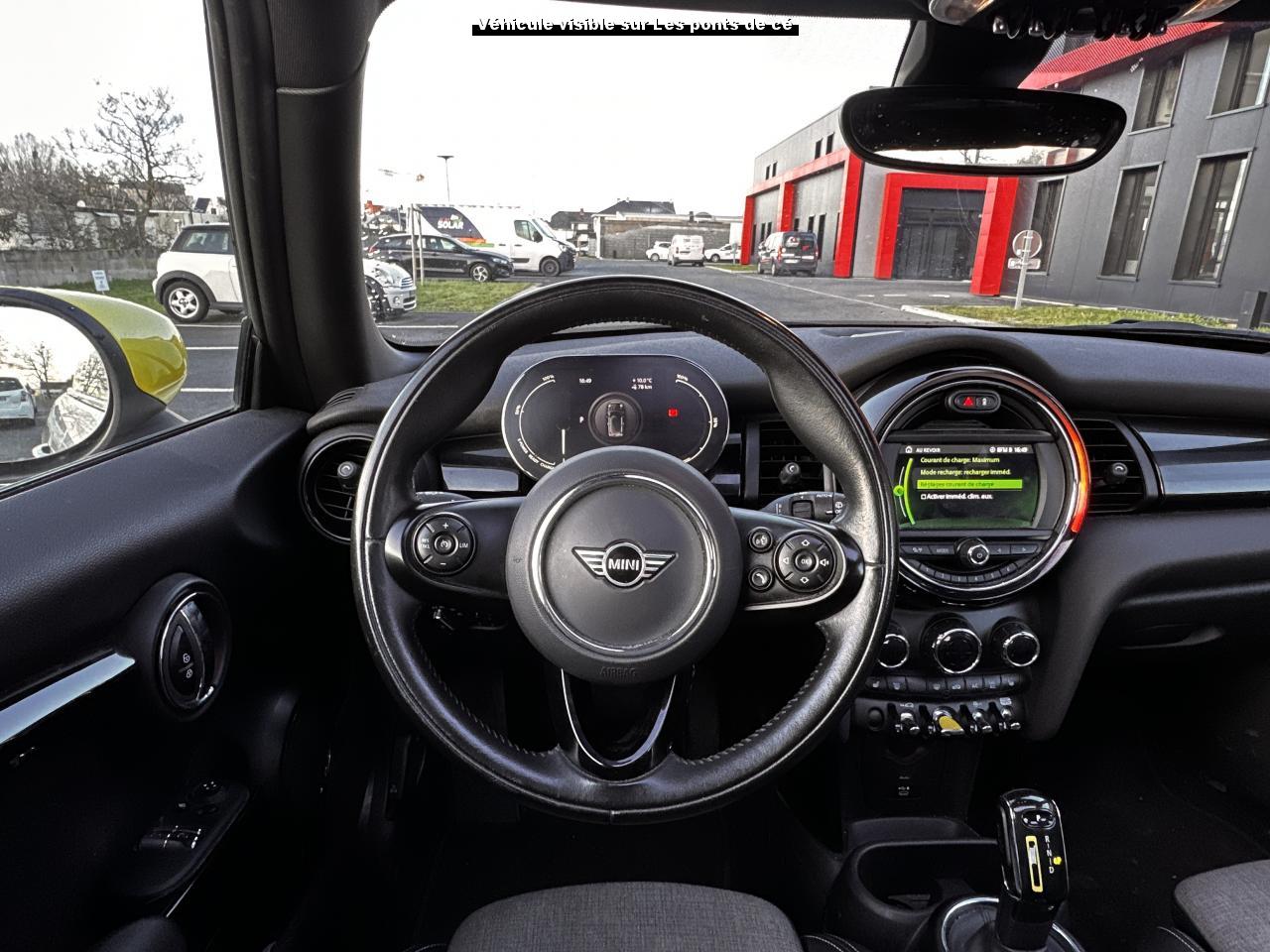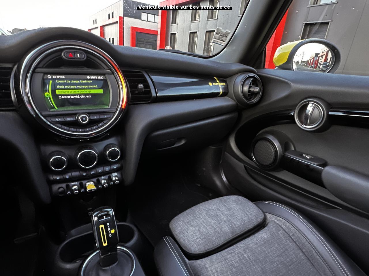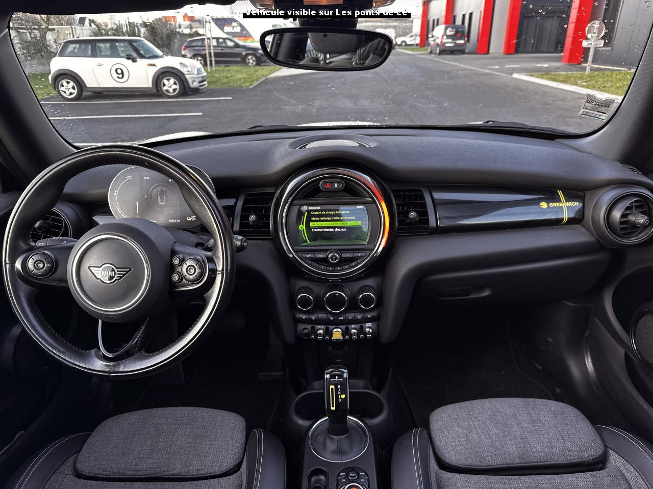 Accès ConfortAccoudoir central avant inclinable en 4 positionsAide au stationnement arrièreBande de type Méridien au niveau du rétroviseur et sur la poignée de la malle arrière avec l’étiquette GRNWCHBandes de couleur Greenwich au niveau des bas de caisseBandes décoratives de capot GreenwichCâble de charge pour prise domestiqueCâble de recharge type 2 – type 2 monophaséCalandre Vigourous GreyCaméra de reculCarte avec fonction de recherche des points d'intérêts comme les stations de rechargeClimatisation automatique bi-zoneFonction Évaluation de l’efficience de conduiteFonctions “Ma MINI à distance”Informations sur l’état de charge de la batterie et sur l’autonomieInsert côté passager GreenwichJantes 16" Loop Spoke SilverKit EclairageKit rangementMINI driving modesMINI Excitement packageMINI Safety (Assistance à la conduite)Mise à jour automatique des cartesOne pedal feeling (une seule pédale sauf freinage d'urgence)Pack Connected Navigation avec écran tactile 6,5”Projecteurs antibrouillard à LEDProjecteurs Full LEDRégulateur de vitesse avec fonction freinageRétroviseur intérieur électrochromeRétroviseurs extérieurs anti-éblouissement électrochromeRétroviseurs extérieurs rabattables électriquementRétroviseurs noirsSellerie tissu/similicuir Black Pearl Light GreySièges avant chauffantsSystème Bluetooth avancé avec recharge par induction du téléphoneSystème de recharge rapideTapis de sol en veloursTeinte de carrosserie métallisée White SilverToit noirToit ouvrant panoramique en verreVolant Sport gainé cuir