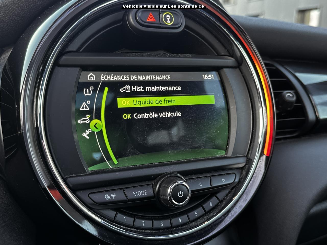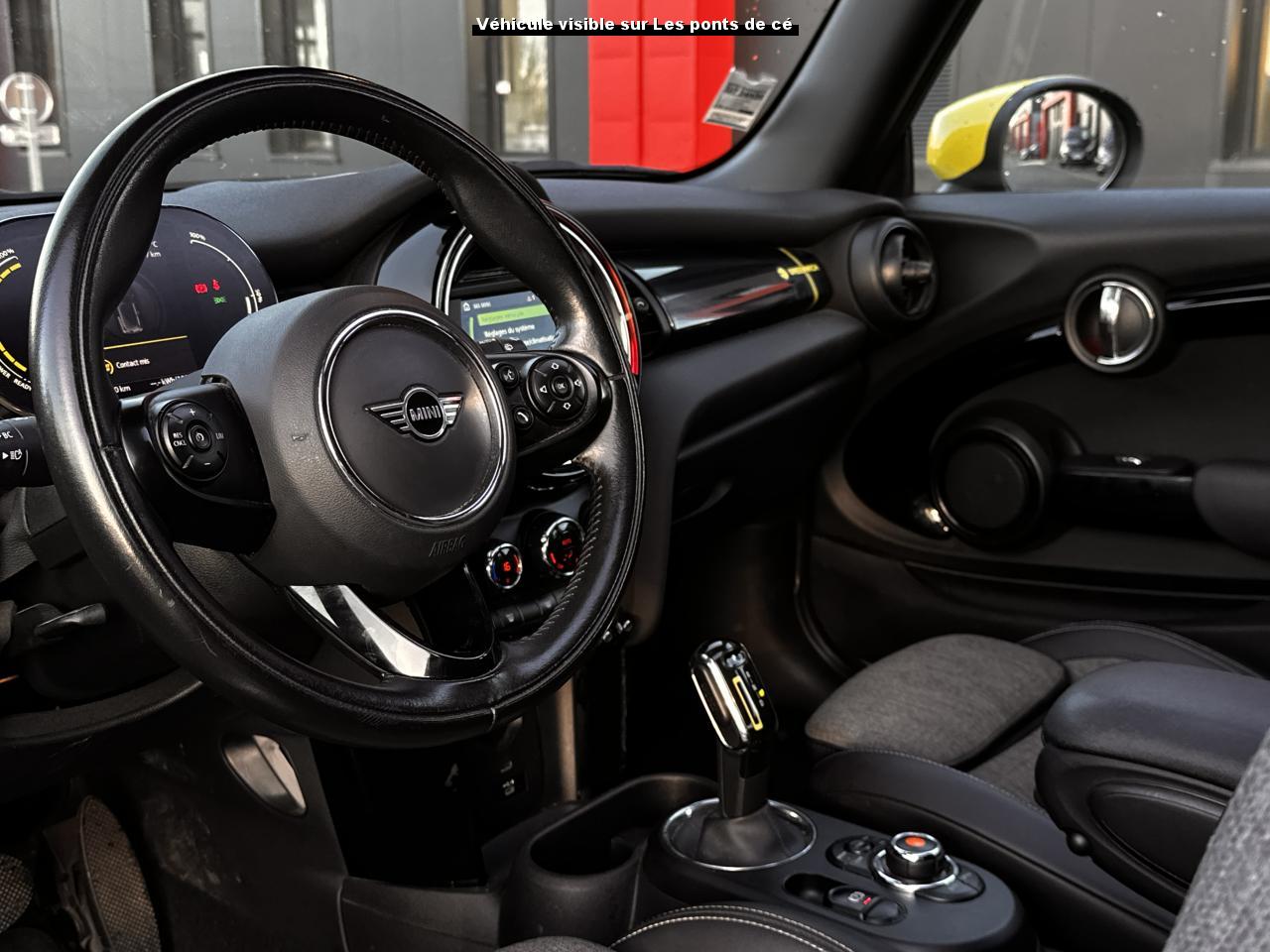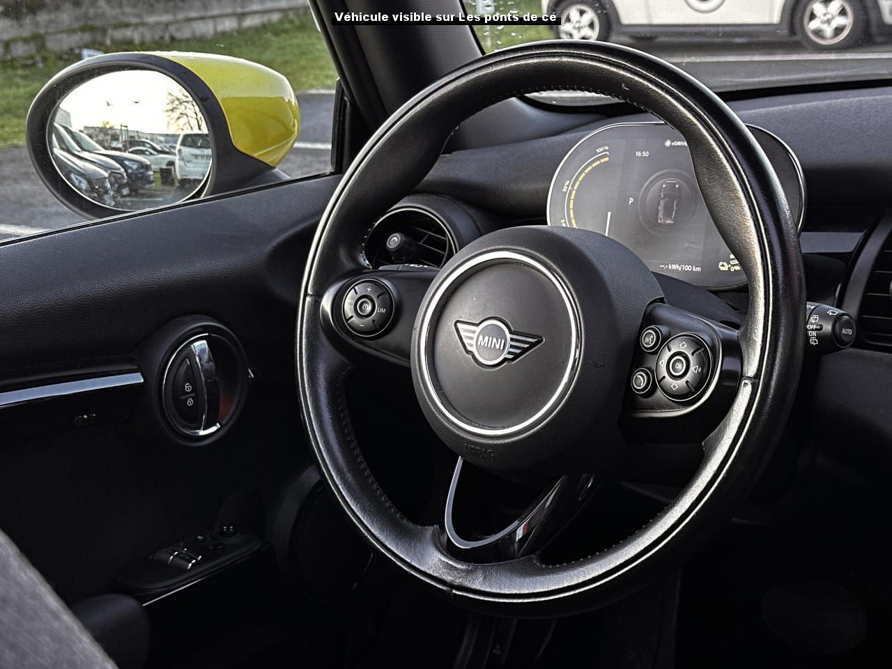 Accès ConfortAccoudoir central avant inclinable en 4 positionsAide au stationnement arrièreBande de type Méridien au niveau du rétroviseur et sur la poignée de la malle arrière avec l’étiquette GRNWCHBandes de couleur Greenwich au niveau des bas de caisseBandes décoratives de capot GreenwichCâble de charge pour prise domestiqueCâble de recharge type 2 – type 2 monophaséCalandre Vigourous GreyCaméra de reculCarte avec fonction de recherche des points d'intérêts comme les stations de rechargeClimatisation automatique bi-zoneFonction Évaluation de l’efficience de conduiteFonctions “Ma MINI à distance”Informations sur l’état de charge de la batterie et sur l’autonomieInsert côté passager GreenwichJantes 16" Loop Spoke SilverKit EclairageKit rangementMINI driving modesMINI Excitement packageMINI Safety (Assistance à la conduite)Mise à jour automatique des cartesOne pedal feeling (une seule pédale sauf freinage d'urgence)Pack Connected Navigation avec écran tactile 6,5”Projecteurs antibrouillard à LEDProjecteurs Full LEDRégulateur de vitesse avec fonction freinageRétroviseur intérieur électrochromeRétroviseurs extérieurs anti-éblouissement électrochromeRétroviseurs extérieurs rabattables électriquementRétroviseurs noirsSellerie tissu/similicuir Black Pearl Light GreySièges avant chauffantsSystème Bluetooth avancé avec recharge par induction du téléphoneSystème de recharge rapideTapis de sol en veloursTeinte de carrosserie métallisée White SilverToit noirToit ouvrant panoramique en verreVolant Sport gainé cuir
