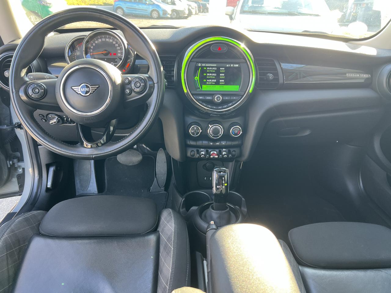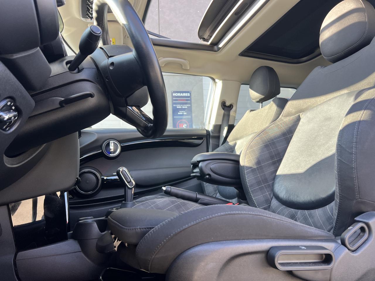 Accoudoir central avant, Aide au stationnement arrière, Becquet arrière de toit, Colour Line Carbon Black, Contrôle Dynamique de la Stabilité DSC, y compris assistant de démarrage en côte, Fonction Start & Stop et démarrage sans clé, Jantes en alliage 16’’ «Victory Spoke» Black et pneumatiques 195/55R16, MINI Connected, MINI driving modes, MINI Excitement package, Pack Connected Navigation, Prise 12V sous la console centrale, Projecteurs Full LED avec cerclage complet des LED et Union Jack à l'arrière, Régulateur de vitesse avec fonction de freinage, Rétroviseurs extérieurs rabattables électriquement, Sellerie Tissus/similicuir Black Pearl Carbon Black, Système Bluetooth avec recharge par induction du téléphone, Toit ouvrant panoramique en verre