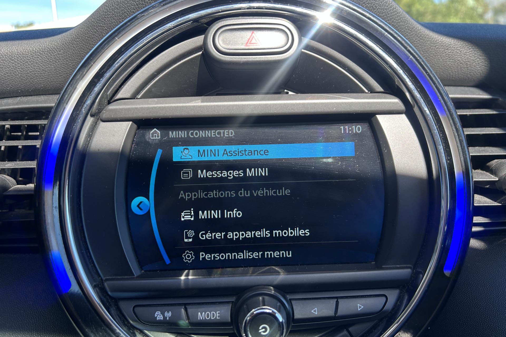 Aide au stationnement avant/arrière Bandes décoratives de capot blanches ou noires Chrome line interieur Chrome-Line extérieur Contrôle de la Transmission Fixations ISOFIX pour le siège passager avant + désactivation... Inserts décoratifs Piano Black MINI driving modes Pack City Zen Radio Numérique DAB Régulateur de vitesse actif Rétroviseur intérieur électrochrome Suspension DirectDrive ... Volant Sport gainé cuir 3 branches MINI Yours