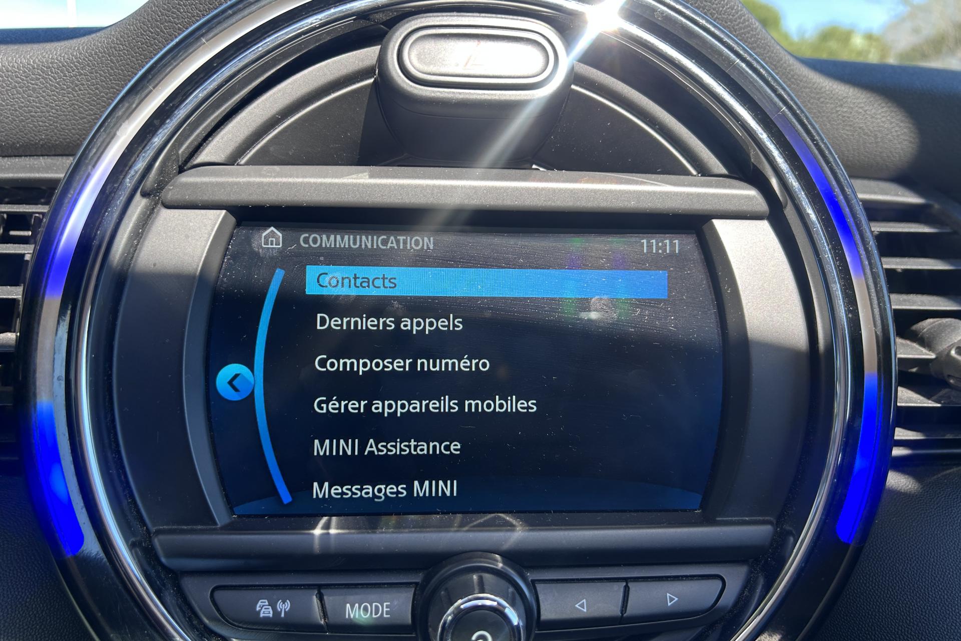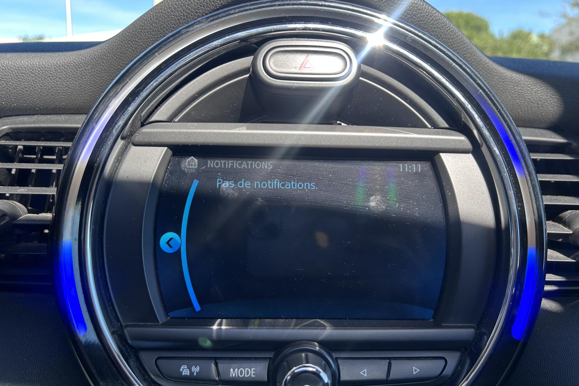 2 clés radiocommandées5 appuie-tête réglables en hauteur6 airbags (2 frontaux, 2 latéraux et 2 rideaux)ABS, y compris assistant de freinageAccoudoir central avantAffichage en temps réel les besoins de maintenance du véhiculeAide au stationnement arrièreAppel d'urgence intelligent et TéléserviceAutoradio MINI 2 haut-parleurs et 2 sub-woofersBaguettes de seuil de porte avec inscription de la motorisation façon métalliqueBandes décoratives et ouïes de clignotants Heddon StreetBanquette arrière 3 places avec dossiers rabattables en deux parties (60/40)Becquet arrière de toitBoîte à gants réfrigéréeBoîte de vitesses manuelle 6 rapportsCalandre au contour chromé avec lamelles “Piano Black”Cerclage des buses d'aération chroméesCiel de pavillon teinte Satellite GreyClignotants blancsClimatisation automatique bi-zoneColour Line Carbon BlackConnectivité avancée sans fil Hot Spot Wifi et recharge sans fil par inductionContrôle Dynamique de la Stabilité DSC, y compris assistant de démarrage en côteDétecteur de pluie et allumage automatique des projecteursEclairage d'accompagnement "Follow me Home"Ecrous antivolFeux arrière à LEDFixations ISOFIX aux places arrièreFonction Start & Stop et démarrage sans cléIndicateur de crevaisonInsert MINI Yours Piano Black illuminéInserts décoratifs Hazy GreyJantes en alliage 16'' design "Victory Spoke" 6,5 J x 16 / pneumatiques 195/55 R 16Kit EclairageKit rangementMesure individuelle de pression des pneumatiquesMINI Excitement packageOrdinateur de bordPack Connected NavigationPare-chocs avant et arrière couleur carrosseriePériodicité vidange 24 mois/30000kmPoignée de hayon “Piano Black”Poignées de portes chroméesPoignées de portes intérieures chroméesPorte-boissons à l'avant (x2)Prise 12V sous la console centraleProjecteurs avant et feux arrière au contour chroméProjecteurs Full LED avec cerclage complet des LED et Union Jack à l'arrièreRéglage en hauteur des sièges avantRéglage en hauteur du siège passager avantRégulateur de vitesseRégulateur de vitesse avec fonction freinage en descenteRétroviseur extérieurs rabattables électriquementRétroviseurs extérieurs à réglage électriqueRétroviseurs extérieurs couleur carrosserieSellerie Tissus/similicuir Black Pearl Carbon BlackSeuils de portes chromésSièges avant sportSortie d'échappement simple, droite et chroméeSystème Bluetooth (Téléphone & Streaming audio)Système Bluetooth avec recharge par induction du téléphoneSystème de capot actif (DHS)Tapis de sol en veloursTeinte d'habitacle Carbon BlackTeinte de carrosserie métallisée Moonwalk GreyToit couleur carrosserieToit ouvrant panoramique en verreTouches multifonctions sur le volantTriangle de signalisation et trousse de premiers secoursVolant sport 3 branches gainé de cuir