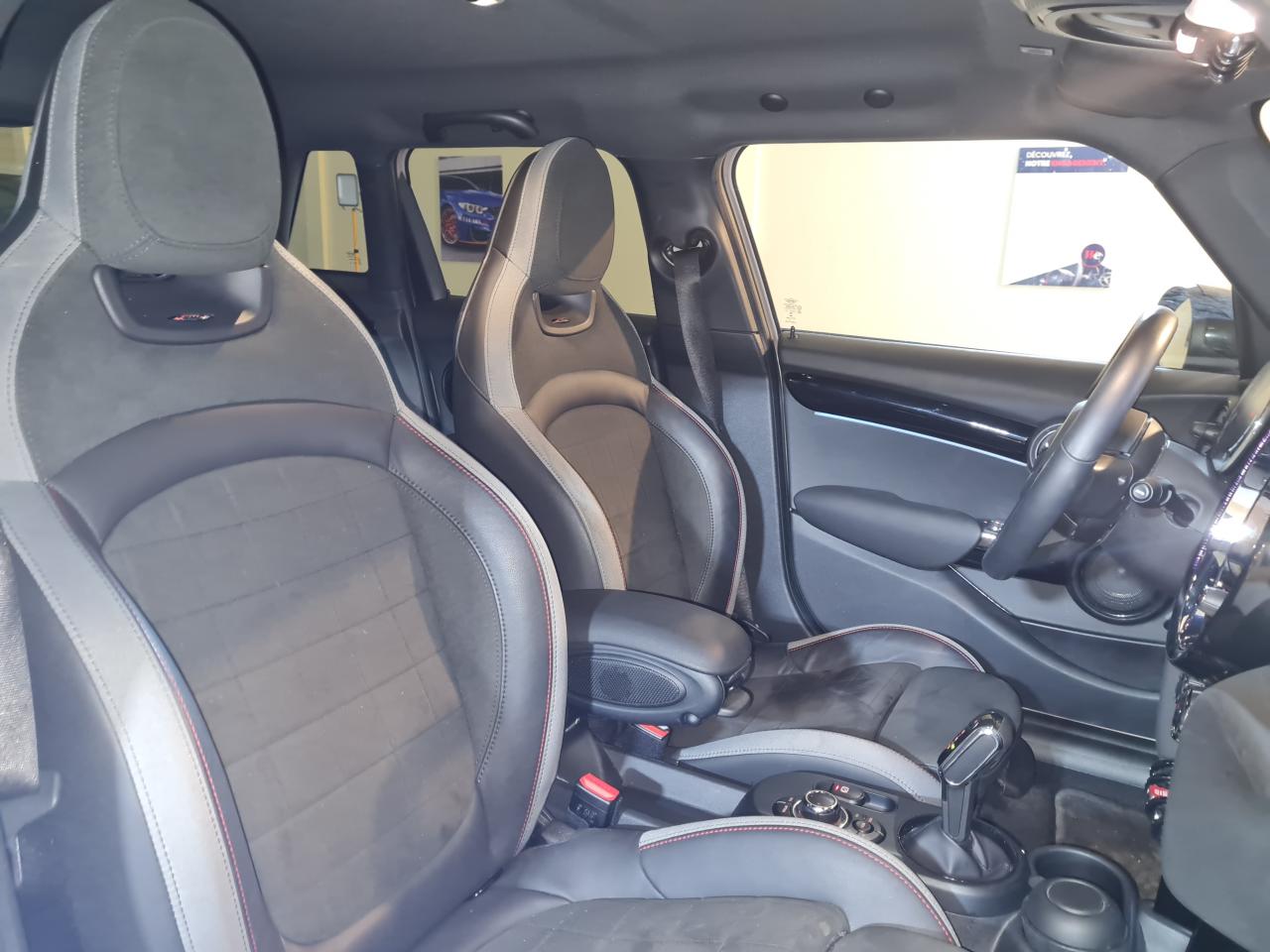 6 airbags (2 frontaux, 2 latéraux et 2 rideaux)ABS, y compris assistant de freinageAccès ConfortAccoudoir central avantAide au stationnement avant/arrièreAnneau lumineux LED écran centralAppel d'urgence intelligent et TéléserviceAutoradio AM/FM/DABBanquette arrière : trois places, rabattable 40/60Becquet de toit arrièreBoite de vitesses robotiséeCalandre au contour chromé avec grille façon "nid d'abeilles" avec sigle SCiel de pavillon anthraciteClimatisation automatique bi-zoneContrôle Dynamique de la Stabilité DSC, y compris assistant de démarrage en côteDétecteur de pluie et allumage automatique des projecteursDouble sortie d'échappement centrale et chroméeEclairage d'accompagnement "Follow me Home"Eclairage d'ambianceEcrous antivolFeux arrière à LED avec design Union JackFixations ISOFIX aux places arrièreFixations ISOFIX pour le siège passager avant + désactivation de l'airbagFonction sécurité piéton avec capot actifFonction Start & Stop et démarrage sans cléIndicateur de crevaisonInserts décoratifs ‘Piano Black'Jantes en alliage 17’’ design “Track Spoke” BlackKit aérodynamique John Cooper WorksKit EclairageKit mobilitéKit rangementLève-vitres électriquesMINI driving modesOuïes latérales chromées "S"Pack Connected Media avec écran tactile 8,8’’Pack Connected NavigationPiano Black ExtérieurPoignée de hayon “Piano Black”Port USBPrise 12V sous la console centralePrise d'air supplémentaire sur le capot moteurProjecteurs Full LED et feux diurnes en cerclage completRégulateur de vitesse avec fonction de freinageRépétiteurs de clignotants à LEDRétroviseur extérieur anti-éblouissement coté conducteurRétroviseur intérieur électrochromeRétroviseurs extérieurs à réglage électriqueRétroviseurs extérieurs couleur carrosserieRétroviseurs extérieurs rabattables électriquementSeuils de portes chromésSièges avant réglables en hauteurSièges avant sport avec réglage de la longueur d'assise et dos du siège avec filet de rangementSièges avant sport John Cooper Works avec sellerie tissu/dinamicaSuspension adaptativeSystème Bluetooth avancé avec recharge par induction du téléphoneSystème de manoeuvres automatiques "Park Assist"Tapis de sol en veloursTeinte de carrosserie Metallisée Chili RedToit couleur carrosserieTouches multifonctions sur le volantTrappe du réservoir à carburant chroméeVerrouillage centralisé des portes, du coffre et de la trappe à essenceVolant sport gainé cuir Nappa John Cooper Works