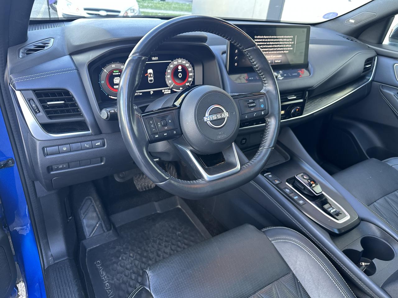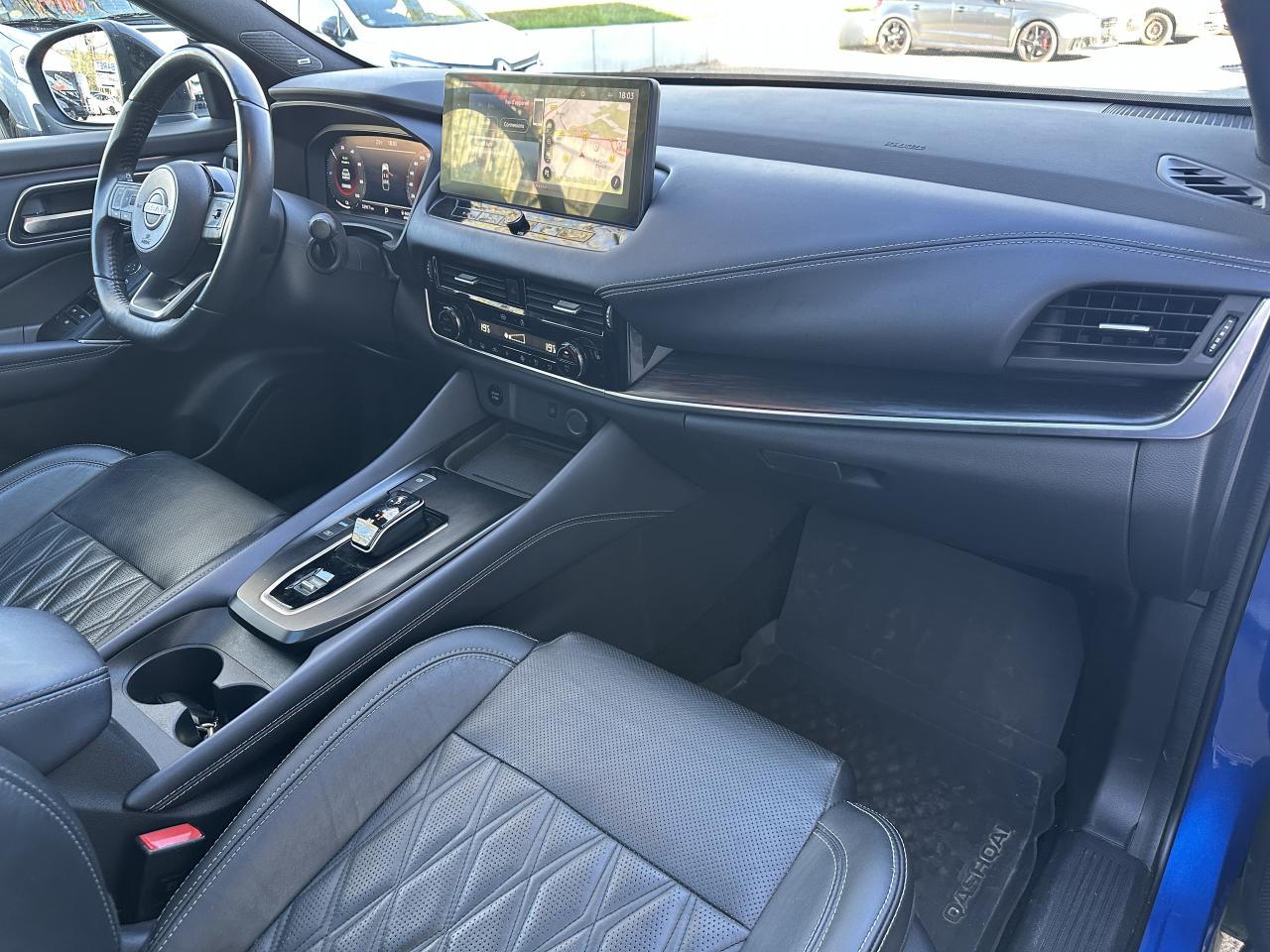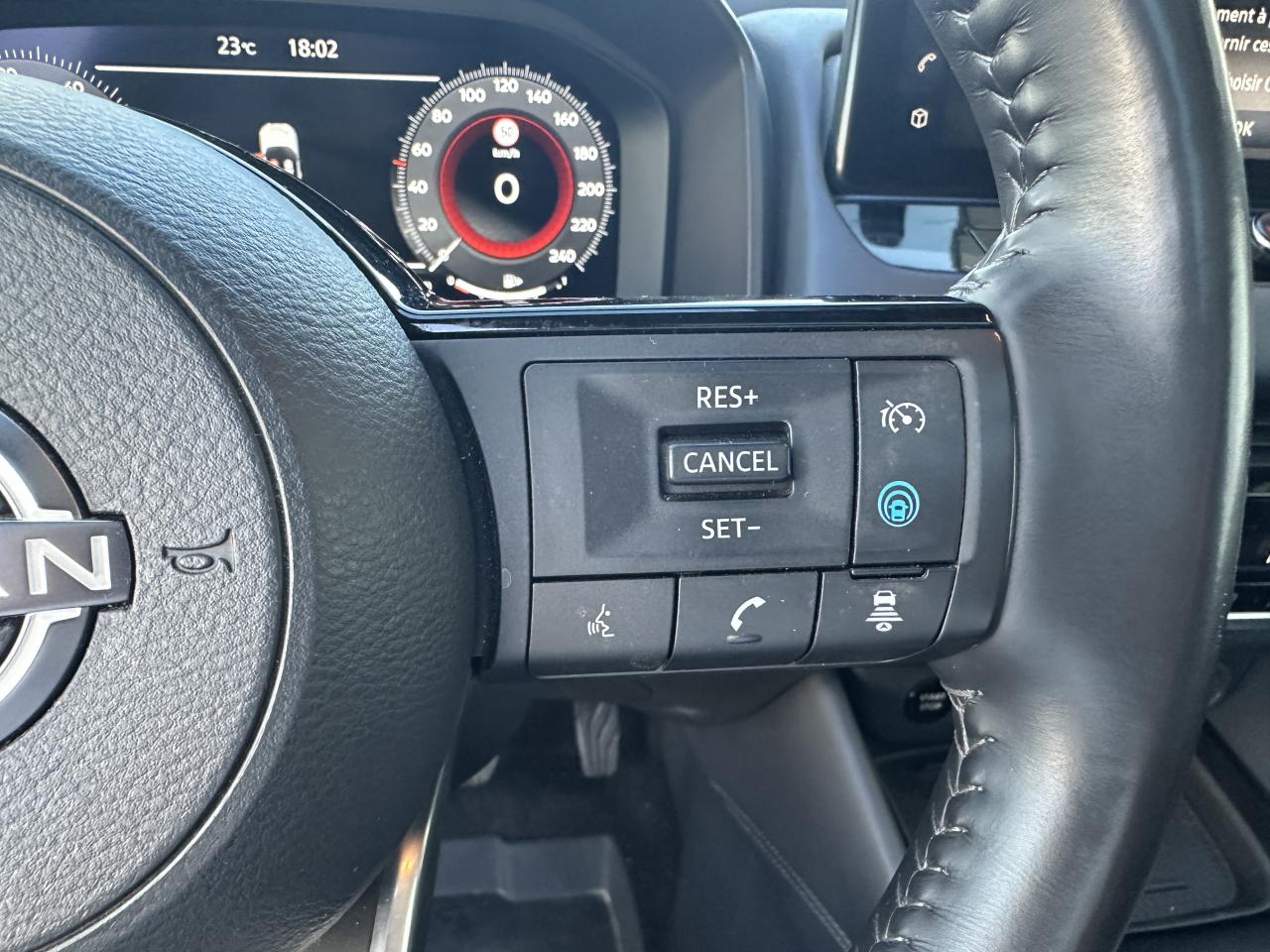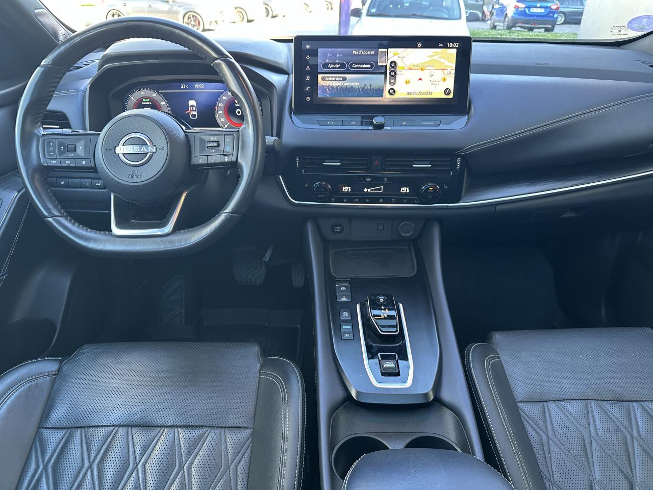 Accoudoir central avant, Affichage tête haute avec projection sur le pare-brise 10,8", Allumage automatique des phares intelligent, Climatisation automatique bi-zone, Combiné d'instrumentation numérique 12,3", Commandes au volant (audio, Bluetooth, régulateur et limiteur de vitesse, contrôle de l'ordinateur de bord), Connexions Apple CarPlay et Android Auto, Différentiel à glissement limité, e-Pedal Step, Eclairage d'ambiance (contre-portes avant et console centrale), Frein à main électrique avec aide au stationnement/démarrage et fonction Autohold, Freinage d'urgence intelligent avec détection piétons, cyclistes et intersections, Jantes alliage 20" avec suspension arrière multibras, Limiteur de vitesse, Mémorisation des réglages via l'Intelligent Key, NBAS (Amplificateur de freinage d'urgence), NissanConnect Services, Ouverture électrique du hayon "mains libres", Pack Design, Pack Hiver, Pack Navigation, Pack Techno, Plancher de coffre modulable, ProPILOT avec Navi-Link, ProPILOT Park : technologie de stationnement automatique, Radars de stationnement arrière, Radars de stationnement avant, Régulateur de vitesse intelligent, Rétroviseurs extérieurs rabattables automatiquement, Rétroviseurs extérieurs réglables, rabattables électriquement et dégivrants, Sélecteur de mode de conduite (ECO / NORMAL / SPORT), Sellerie cuir matelassé Noir, Siège conducteur à réglages électriques 8 directions, Siège conducteur avec fonction mémoire, Siège conducteur réglable en hauteur, Sièges à réglage lombaire électrique 4 positions à l'avant, Sièges passager à réglages électriques, Surveillance des angles morts intelligent, Système "Chassis Control" (contrôle actif de trajectoire et de l'assiette), Système audio Bose Premium avec 10 haut-parleurs et un caisson de basses Acoustimass, Système d'alerte anticollision arrière intelligent avec détection des objets en mouvement, Système d'alerte prédictif anticollision frontale, Système d'ouverture et démarrage sans clé “Intelligent Key”, Système de démarrage sans clé avec interrupteur Start/Stop, Système de détection de fatigue intelligent, Système de reconnaissance des panneaux de signalisation, Système mains libres Bluetooth, Vitres arrière teintées, Volant gainé cuir, Volant réglable en hauteur et en profondeur