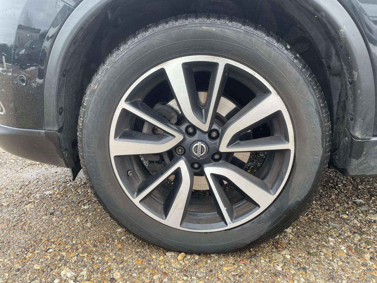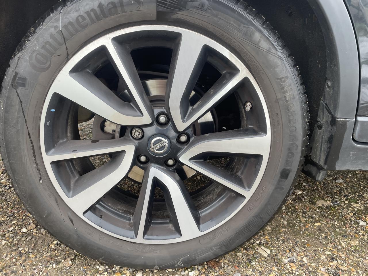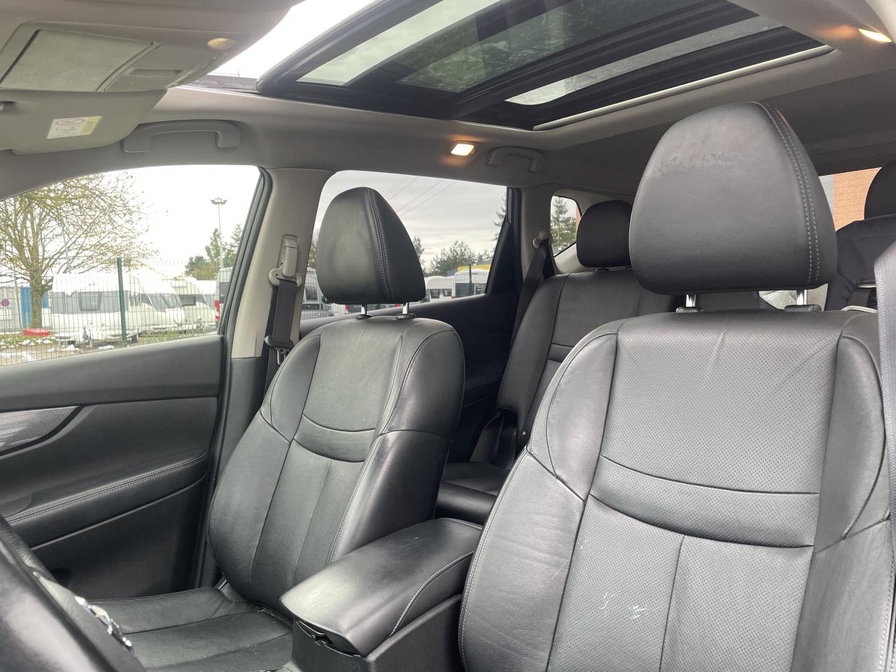 ABS (Antiblocage de roues)Accoudoir arrière avec porte-gobeletsAccoudoir conducteurAide au démarrage en côteAide au stationnement avant/arrièreAirbag passager déconnectableAirbags frontaux, latéraux avant et rideauxAllumage automatique des projecteursBanquette arrière coulissante et rabattable 60/40Barres de toit longitudinales couleur argentCeintures de sécurité arrière 3 points à enrouleurCeintures de sécurité avant 3 points avec prétensionneur et limiteur d'effortClimatisation automatique bi-zoneContour des vitres latérales chroméContrôle de pression des pneus ( TPMS )Ecran TFT couleur 5''ESP (Correcteur électronique de trajectoire)Essuie-glace à déclenchement automatiqueFermeture et ouverture centralisées des portes à distanceFeux antibrouillard avant avec cerclage chroméFeux diurnes à LED avec signature lumineuseFrein de parking électriqueHayon électriqueInsert chromé dans le pare-choc avantJantes alliage 19''Lève-vitres électriques à l'avant et à l'arrièreLimiteur et régulateur de vitesse avec commandes au volantNBAS (Amplificateur de freinage d'urgence)Nissan AVM - Vision 360°Nissan Safety ShieldNissan Safety Shield PlusNissanConnectPare-soleil côté conducteur et passager avec miroir de courtoisie éclairéPhares Bi-LEDPlancher de coffre modulablePoignées de porte chroméesPoints d'ancrage de siège enfant ISOFIX à l'arrière (x2)Répartiteur électronique de freinage (EBD)Répétiteur de clignotant sur rétroviseurs extérieursRétroviseur intérieur électrochromeRétroviseurs extérieurs électriques et dégivrantsRoue de secoursSellerie cuirSiège avant anti-fatigueSiège conducteur avec réglage en hauteurSiège conducteur avec réglage lombaireSièges avant chauffantsSièges avant réglables électriquementSystème "Chassis Control"Système anti-démarrageSystème audio RDS / CD avec commandes au volant, 6 HP et connexion USBSystème d'ouverture et de démarrage sans clé "Intelligent Key"Système de stationnement intelligent (IPA)Système mains libres Bluetooth avec commandes au volantToit ouvrant panoramique électrique en verreVitres latérales arrière et vitre de hayon surteintéesVolant et pommeau de levier de vitesse gainés de cuirVolant réglable en hauteur et en profondeur