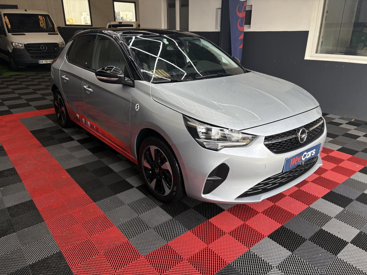 3 appuie-tête arrière6 airbags (frontaux, latéraux et rideaux)6 haut-parleursAide actif au maintien dans la voieAide au démarrage en côteAide au stationnement arrièreAvertisseur de sous-gonflage des pneumatiquesCâble de recharge Mode 2 - 3,7Kw Green UpChargeur embarqué monophasé 7,4 KWClef Opel mains libres et frein de parking électriqueClimatisation automatique mono-zoneCombiné instrumentation numérique 7"Console centrale avec accoudoir, rangement et porte gobeletsEcran tactile couleur 7'' avec compatibilité Android Auto et Apple CarplayFeux arrière halogèneGrille de calandre noire avec inserts chromésJantes en alliage 16'' 5 branches, ArgentKit anti-crevaisonLigne de vitrage noireModule Opel Connect : appel d'urgencePack Visibilité LEDPare-soleil avec miroir de courtoisie côté passagerPeinture métallisée Rouge KardioPoignées de portes intérieures chroméesPrise USB en façadeReconnaissance des panneaux de signalisation amélioréeRégulateur et limiteur de vitesseRétroviseurs extérieurs à réglages électrique et dégivrantsRétroviseurs extérieurs couleur noirSellerie en tissu Fresez, couleur "Marvel Black"Siège conducteur réglable dans 6 directionsSiège passager réglable dans 4 directionsSystème anti-collision à basse vitesse et détection des piétonsSystème d'infotainment & de navigationSystème de détection de la somnolence du conducteurSystème de fixation ISOFIX aux places arrièreToit couleur carrosserieVerrouillage centralisé à télécommandeVitres arrière manuellesVitres avant électriques avec fonction anti-pincementVolant multifonction 3 branches avec méplat