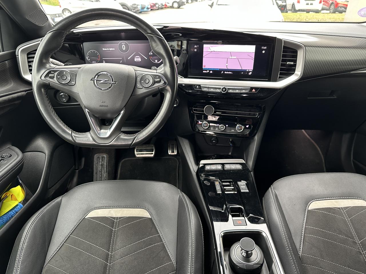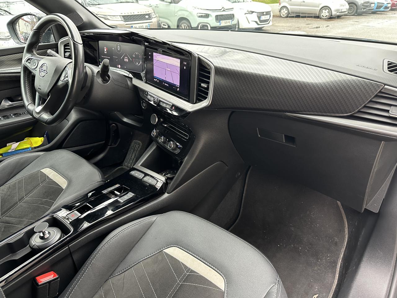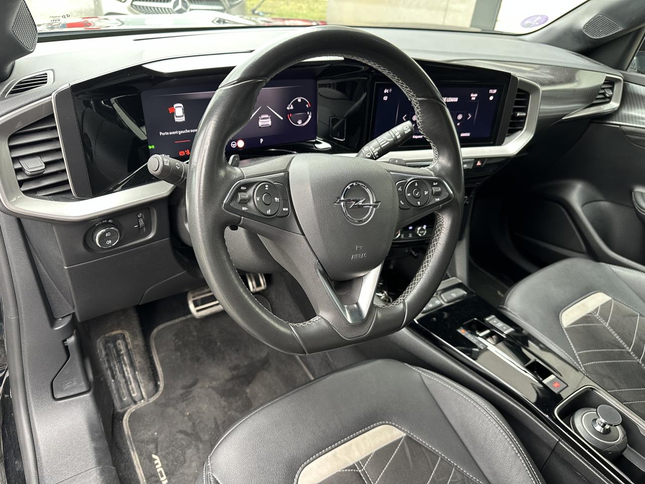 2 prises USB AR, 2e clé avec télécommande, 3 appuie-tête arrière, Accoudoir conducteur avec porte-gobelet, Aide actif au maintien dans la voie, Aide au démarrage en côte, Airbag passager déconnectable par interrupteur, Airbags conducteur et passager, Airbags latéraux sur sièges avant, Airbags rideaux, Appuie-têtes avant réglables, Barre chromée sous pare-chocs avant, Calandre Opel Vizor, Climatisation automatique mono-zone, Coques de rétroviseurs noires, Direction assistée, Eclairage d'ambiance à LED, Feux arrière à LED, Feux de jour à LED, Jantes en alliage 18'' 5 branches, Bi-color Argent / Noir, Kit anti-crevaison, Ligne de contour de Vizor chromée, Ligne de vitrage chromée, Miroir de courtoisie sur le pare-soleil côté passager, Opel PURE PANEL incluant Ecran digital 10'' compatible avec Apple CarPlay et Android Auto, incluant les services de navigation TomTom Live, 6 haut parleurs,Apple CarPlay & Android Auto, Radio DAB+, une prise USB (type-A), le module Opel Connect ainsi que l'écran d'inst, Ordinateur de bord, Pack Active Drive Assist +, Pack Advanced City 180°,, Pack Visibilité, Pack Vision Matrix, Pédalier chromé, Peinture métallisée Vert Signal, Phares Avant Matrix LED Intellilux, Plafonnier avec double spot de lecture, Poignées de portes intérieures chromées, Projecteurs antibrouillard, Provisions pour plancher de coffre amovible, Reconnaissance des panneaux de signalisation améliorée, Sécurité enfant aux portes arrière, Sellerie confort 100% alcantara noire, Siège conducteur réglable dans 6 directions avec réglage lombaire, Siège passager réglable dans 6 directions, Sièges avant chauffants, Spoiler arrière noir, Système anti-blocage des roues ABS, Système anticollision à tous niveaux de vitesse, Système d'entrée et de démarrage sans clé, Système de détection de la somnolence du conducteur, Système ISOFIX sur sièges arrière, Toit noir, Vitres arrières surteintées, Vitres avant et arrière électriques, Volant en cuir multifonction 3 branches avec méplat