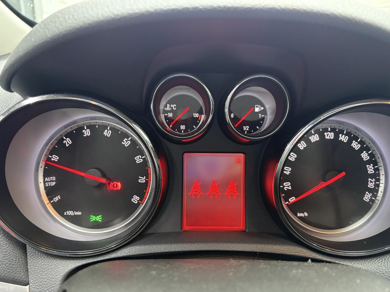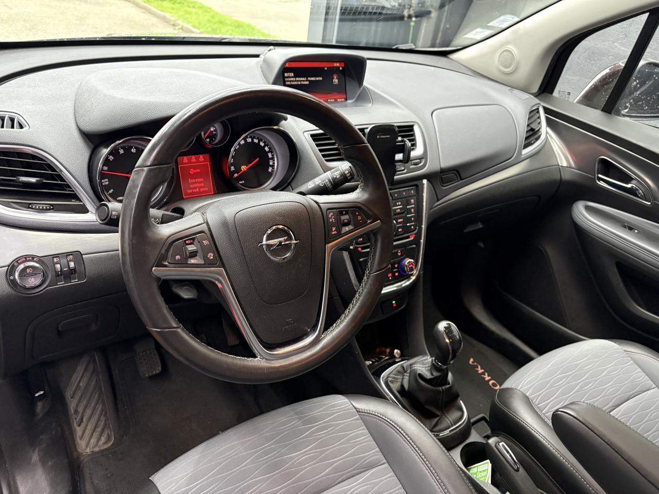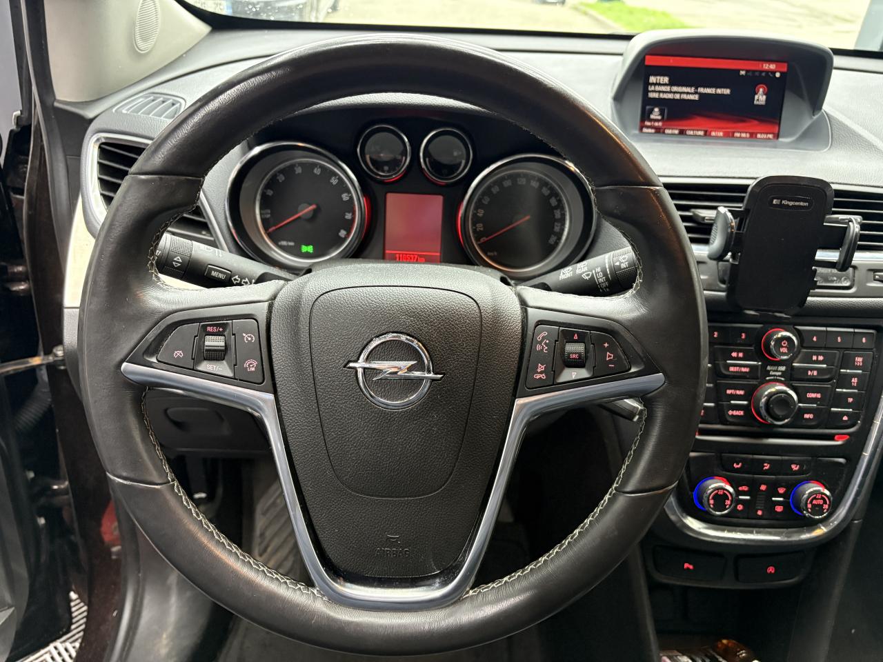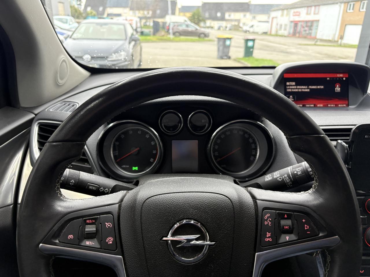 5 ceintures de sécurité 3 points à enrouleur avant et arrière (réglable en hauteur à l'avant)Accoudoir central avant sur siège conducteurAccoudoirs latéraux avant et arrièreAide au stationnement avant/arrièreAirbags Opel conducteur et passagerAirbags Opel latéraux sur sièges avantAirbags Opel rideauxAppuis-tête avant réglablesAvertisseur double tonBacs de rangement intégrés aux portes avant et arrièreBluetooth pour téléphone portableBoîte à gants éclairéeCache-bagages rigideCalandre chroméeCeintures de sécurité avant avec double prétensionneurs et limiteur d'effortClé pliante avec télécommande intégréeClignotants latéraux additionnelsClimatisation automatique bi-zone avec filtre anti-pollen et détecteur de qualité d'airCompte-tours électroniqueCompteur kilométrique et totalisateur journalier à affichage digitalConsole centrale comprenant 2 porte-gobelets et espace de rangement avec couvercleContrôle de pression des pneus ( TPMS )Contrôle electronique de stabilité (ESC) intégrant le contrôle de traction (TC), le contrôle de freinage en courbe (CBC), le contrôle de couple en courbe (CTC), l'assistance au freinage d'urgence (BAS) et la compensation hydraulique de l'évContrôle électronique de trajectoire ESP+Dossier de banquette arrière rabattable asymétriquement 1/3 - 2/3Eclairage du coffreEssuie-glace arrière à balayage intermittentEssuie-glace avant électriques (3 vitesses, dont une intermittente sauf si capteur de pluie)Feux avant diurnesFixations Isofix sur les deux sièges latéraux arrièreJantes alliage 18" à 10 branchesJauge à carburant avec alerte miniKit anti-crevaisonLève vitres électriques avant et arrière impulsionnelsLigne de vitrage intégralement chroméeLumière d'ambianceLunette arrière dégivranteOnStarOrdinateur de bord 6 fonctionsPack VisibilitéPare-soleil orientable avec miroirs de courtoisiePédalier rétractable en cas de choc frontal (PRS)Peinture laquéePhares antibrouillard avant intégrésPlancher plat avec espace de rangement sous plancherPoignées de maintien pour passager avant et arrièrePoignées de portes couleur carrosseriePoignées de portes intérieures et bouton de frein à main du type chromésPossibilité de déconnecter l'airbag du siège passager avantPrise 12 V sur console centrale arrièrePrise 12V à l'avantRadio CD600 IntelliLink avec écran couleur 7'', 6 haut-parleurs premium, Bluetooth, reconnaissance vocale (téléphone et audio), prise auxiliaire et USB, lecture des MP3/WMA, lecture des SMS, visualisation des images, streaming audioRails de toitRappel de bouclage de ceinture conducteur, passagers avant et arrièreRéglage électrique de l'assiette des pharesRégulateur et limiteur de vitesseRétroviseurs extérieurs couleur carrosserieRétroviseurs extérieurs rabattables électriquementRétroviseurs extérieurs, asphérique côté conducteur, dégivrants à réglage électriqueSellerie mixte Lighthouse/Morrocana Dark Galvanized ou Cocoa/SaddleSiège conducteur réglable dans 4 directions dont réglage en hauteurSiège passager réglable dans 2 directionsSpots de lecture à l'avantStructure de sécurité passive avec cellule de survie pour les passagers en acier haute résistance et zone de déformation à absorption d'énergieSystème antiblocage des roues (ABS électronique) avec répartition électronique du freinage (EBD)Tiroir de rangement sous siège passagerVerrou électronique Opel (antidémarrage)Verrouillage centralisé (portes, coffre et trappe à carburant) à télécommandeVitres latérales et lunette arrière surteintéesVitres teintéesVolant multifonction 3 branches gaîné de cuir avec insert alu brossé, réglable en hauteur et en profondeur