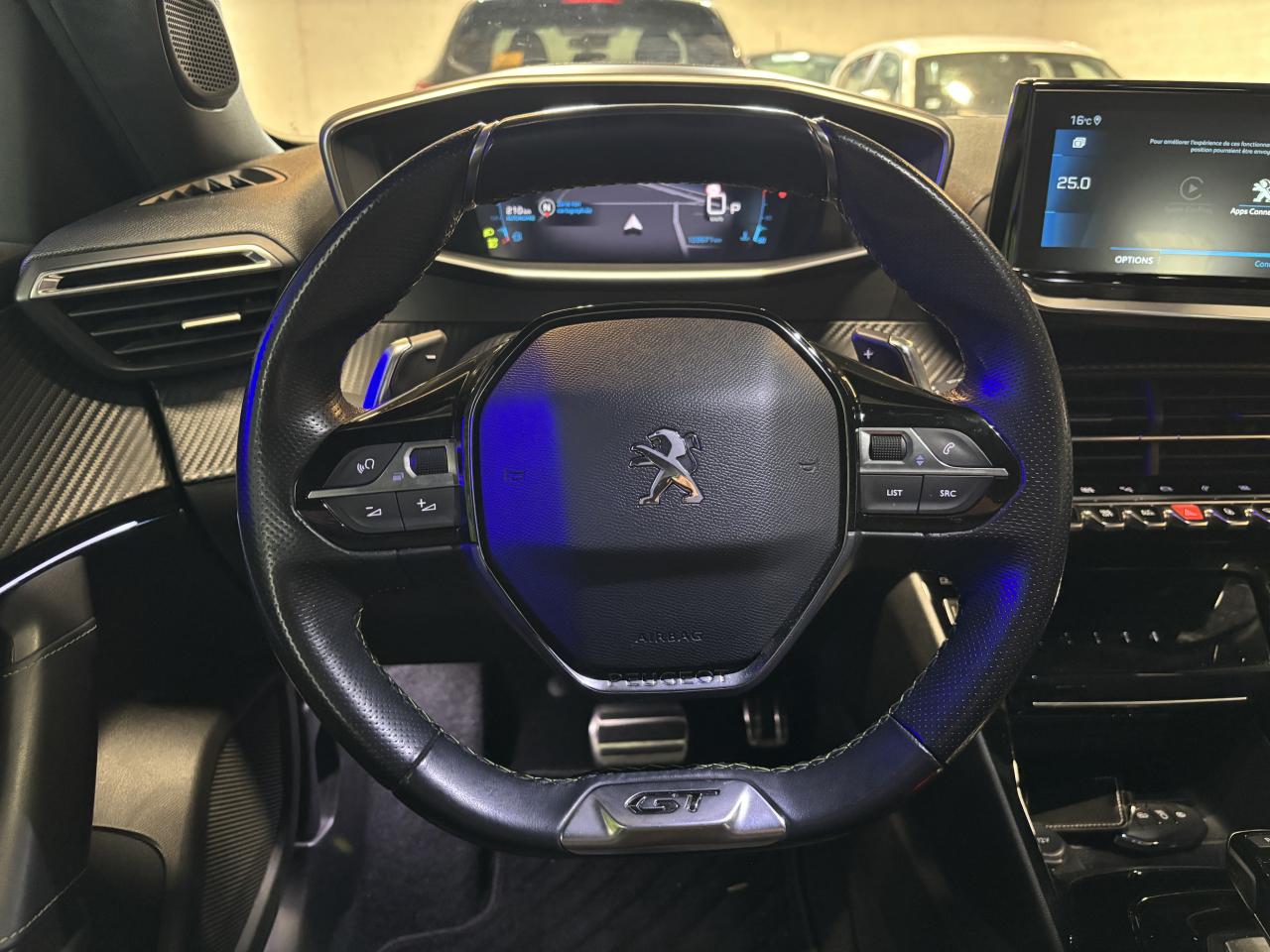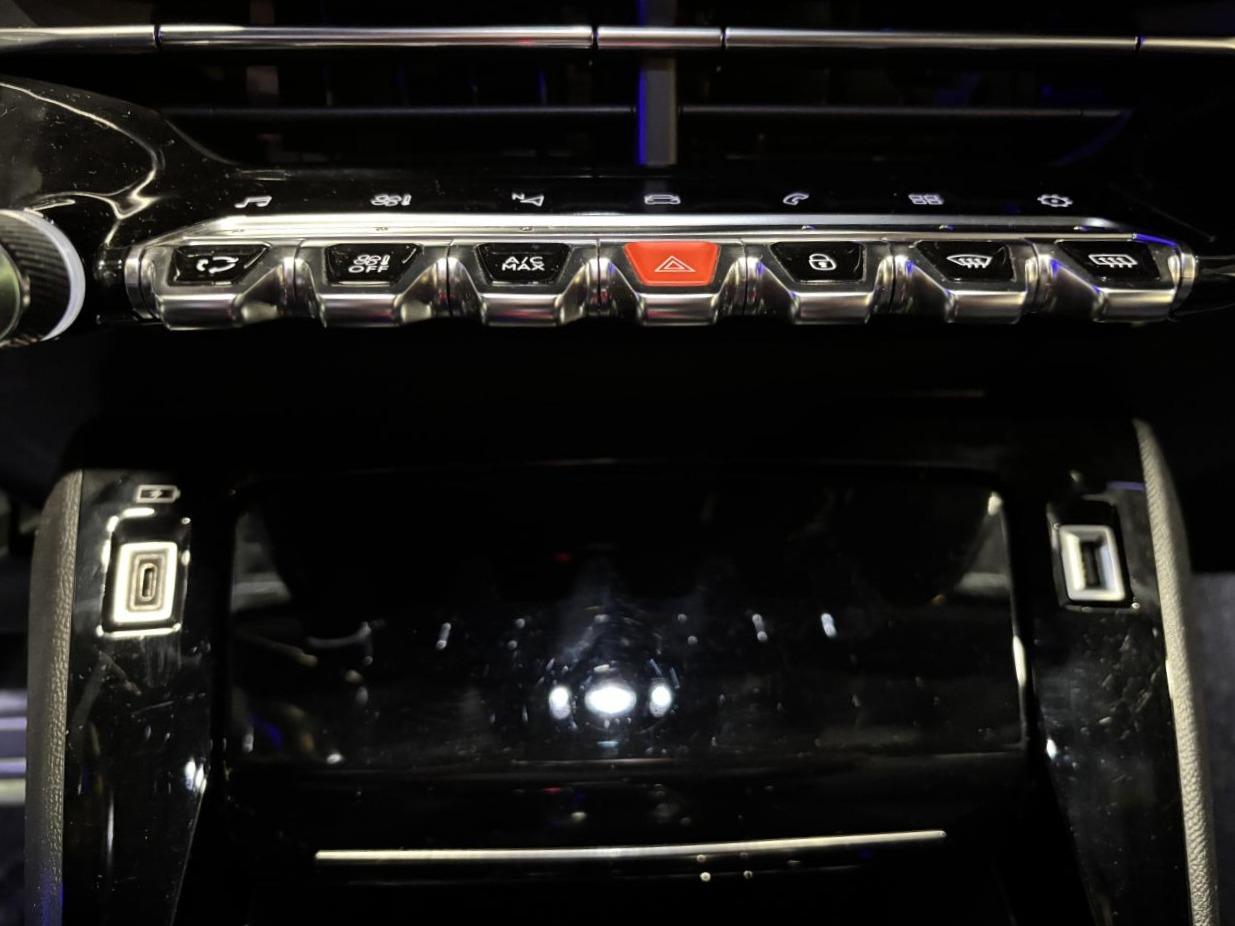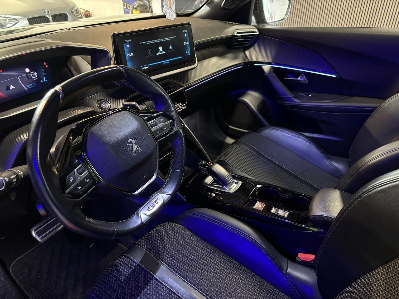 2 prises USB (Recharge type A) sur console haute pour passagers arrière4 poignées de maintien (2 à l'avant et 2 à l'arrière)6 haut-parleurs (2 tweeters et 2 woofers à l'avant et 2 haut-parleurs à l'arrière)ABS (Antiblocage de roues)AFU (Assistance au freinage d'urgence), REF (Répartiteur Electronique de Freinage)Aide graphique et sonore au stationnement arrièreAide graphique et sonore au stationnement avantAir conditionné automatique Mono-zoneAirbags frontaux auto-adaptatifs, latéraux avant (thorax et abdominaux), rideaux avantAllumage automatique des projecteursAppuie-tête avant et arrière (aux 3 places) réglables en hauteurAssistance au démarrage en côte (Hill Assist)Avertisseur de temps de conduiteBanquette arrière rabattable 1/3-2/3Barres de toit longitudinales noires brillantesBecquet arrière noir brillantBoitiers de rétroviseurs extérieurs noir brillantCalandre haut de gamme avec grille supérieure noire vernie et marquage vertical Dark Chrome, grille inférieure avec décor Métallure, enjoliveur supérieur Noir BrillantCanule d'échappement chroméeCommandes d'ouverture extérieure de portes couleur caisseCommandes d'ouverture intérieure de portes chroméesConsole haute avec accoudoir intégréContrôle de stabilité de la remorque (TSM)Contrôle dynamique de stabilité CDS avec antipatinage électronique ASRContrôle électronique de stabilité (ESC)Démarrage mains libres avec 2 télécommandes 3 boutons mains libresDétecteur de sous-gonflage indirectDirection assistée électriqueEclairage coffreEclairage d'accueil et d'accompagnementEclairage intérieur à LED : plafonniers tactiles avant (1 lampe et 2 liseuses) et arrière (2 liseuses), miroir de courtoisie dans pare-soleil, cave à piedsEclairage polyambient 8 couleursEnjoliveurs de custode Noir Brillant avec sérigraphieEnjoliveurs de seuil de coffre MétallureEssuie-glace à déclenchement automatiqueFeux arrière 3 griffes à LEDFeux diurnes à LED sous projecteursFilets aumônières au dos des sièges avantFixations suivant norme ISOFIX et Top Tether avec étiquette de localisation sur siège passager avantFixations suivant norme ISOFIX et Top Tether avec étiquettes de localisation aux places latérales arrièreFonction Bluetooth et Mirror Screen (Apple CarPlay/ Android Auto)Frein de stationnement électrique avec aide au démarrage en pente et serrage automatiqueGestion automatique des feux de croisement / feux de routeHabitacle et ciel de pavillon noirJantes alliage 17'' SALAMANCA diamantées bi-tons Noir Onyx et vernis brillant, cabochons et vis Noir OnyxKatana Noir Mat avec insert Noir Brillant et marquage GT brillantKit de dépannage pneumatique avec conditionnement rigideLécheurs de vitres latérales noir brillantLève-vitres électriques avant et arrière, séquentiels et antipincementNavigation 3D connectée avec reconnaissance vocale, écran tactile capacitif 10" HD, 2 prises USB console avant (une DATA Type A et une de recharge type C)Pack Safety PlusPanneaux de porte avant avec poignée mousséePare-brise teinté acoustique sérigraphié bi-couchesPassages de roues Noir MatPédalier sport en aluminiumPeinture métallisée Orange FusionPEUGEOT Connect SOS & Assistance et TéléservicesPeugeot i-Cockpit 3D avec combiné tête haute numérique 3DPlanche de bord slush surpiquée et panneaux de portes avant avec décors aspect carbone et éclairage polyambiant 8 couleursPlancher de coffre modulable 2 positionsProjecteurs antibrouillard LED avec fonction corneringProjecteurs Peugeot Full LED Technology avec signature 3 griffes, indicateurs de direction à LEDProtections latérales de portes Noir grainées avec inserts MétallureRadio Numérique DABRégulateur et limiteur de vitesseRétroviseur intérieur photosensible framelessRétroviseurs extérieurs dégivrants à réglage et rabattement électriques, éclairage de seuilSélecteur de mode de conduiteSellerie Tri matière Tissu / TEP CAPY, surpiqûres Vert AdamiteSiège conducteur avec réglage mécanique de hauteurSiège passager avant réglable en hauteur manuellementSurtapis avant et arrière noirs avec surpiqûres Vert AdamiteSystème de surveillance d'angle mortToit Black DiamondVerrouillage automatique des ouvrants en roulantVitres latérales arrière et lunette arrière chauffante temporisée surteintéesVolant compact cuir fleur avec laçage vert, Lion chromé, badge GT, commandes multimédia sur volantVolant réglable en hauteur et en profondeur