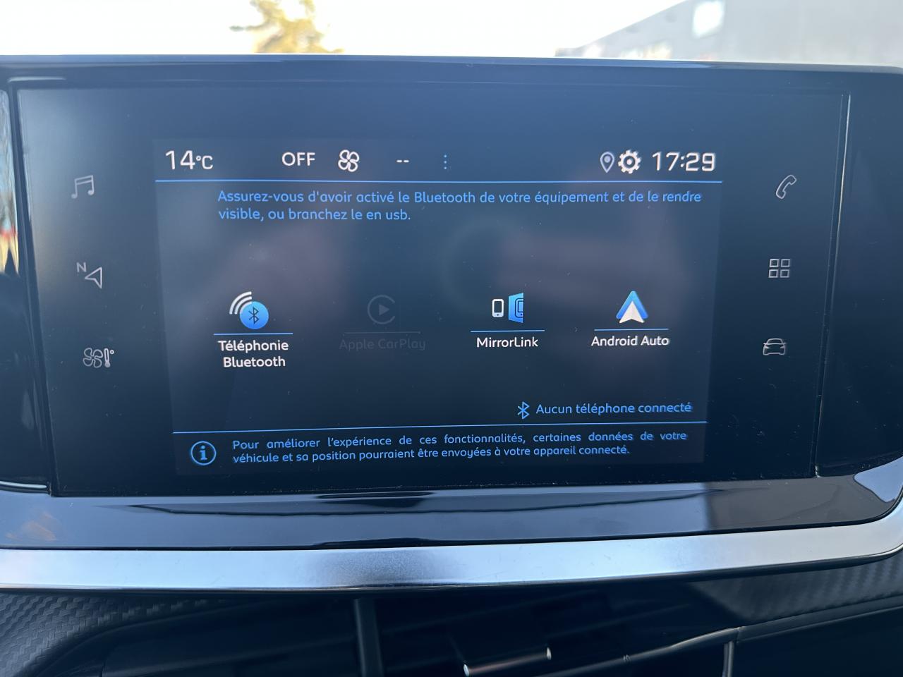 6 haut-parleurs (2 tweeters et 2 woofers à l'avant et 2 larges bandes à l'arrière), AFU (Assistance au freinage d'urgence), REF (Répartiteur Electronique de Freinage), Aide graphique et sonore au stationnement arrière, Allumage automatique des projecteurs, Climatisation automatique mono-zone, Console haute avec accoudoir intégré, Contrôle de stabilité de la remorque (TSM), Contrôle Dynamique de stabilité (DSC), Démarrage mains libres avec 2 télécommandes 3 boutons, Direction assistée électrique, Fonction 'Mirror Screen' (Apple Carplay / Android Auto), Fonction Bluetooth, Jantes alliage 16'' SOHO diamantées peintes Gris Storm, Pack Safety, Peugeot i-Cockpit avec combiné tête haute analogique et matrice couleur 3"5, Projecteurs 'Peugeot LED Technology' avec feux diurnes à LED sous projecteurs, Radio avec écran tactile 7" couleur capacitif, Bluetooth, 2 prises USB console avant (une DATA Type A et une de recharge type C), Régulateur et limiteur de vitesse, Rétroviseurs extérieurs réglables, rabattables électriquement et dégivrants, Sélecteur de mode de conduite, Sellerie Tri matière Tissu / TEP COSY , surpiqûres Vert Mint, Siège conducteur avec réglage manuel en hauteur, Vitres latérales arrière et lunette arrière chauffante temporisée surteintées, Volant compact croute de cuir, Lion chromé et commandes multimédia sur volant, Volant réglable en hauteur et en profondeur