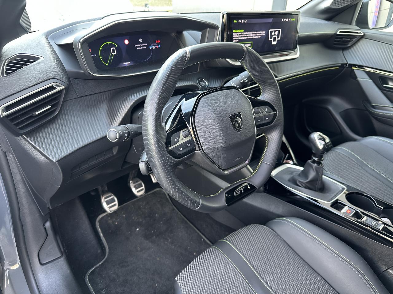 6 haut-parleurs, Accès et démarrage mains libres Proximity, Allumage automatique des projecteurs, Boitiers de rétroviseurs extérieurs noir brillant, Climatisation automatique mono-zone, Commutation automatique des feux de croisement et de route, Light Assist, Jantes alliage 17'' ‘YANAKA’ diamantées bi-tons vernis brillant et Noir Orbital avec inserts Noir Orbital et vernis mat, Pack i-Connect, Pack Safety, PEUGEOT Connect SOS & Assistance et Téléservices, Peugeot i-Cockpit 3D avec combiné tête haute 10" numérique, Planche de bord Slush avec Décor Carbone TPE et double surpiqûres Adamite/Tramontane et baguette Noir brillante avec jonc chromé et jonc lumineux, Projecteurs Peugeot Full LED Technology avec feux diurnes à LED 3 griffes, Recharge smartphone sans fil, Rétroviseurs extérieurs réglables, rabattables électriquement et dégivrants, Sélecteur de mode de conduite (Normal/Eco), Sellerie tissu Belomka accompagnement TEP Isabella tri-matière Uni Capy et surpiqûres Vert Adamite, Siège conducteur avec réglage manuel en hauteur, Visio Park 1, Volant réglable en hauteur et en profondeur