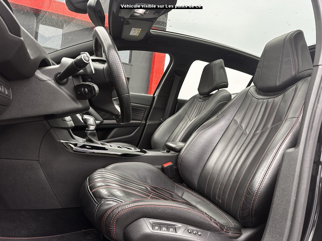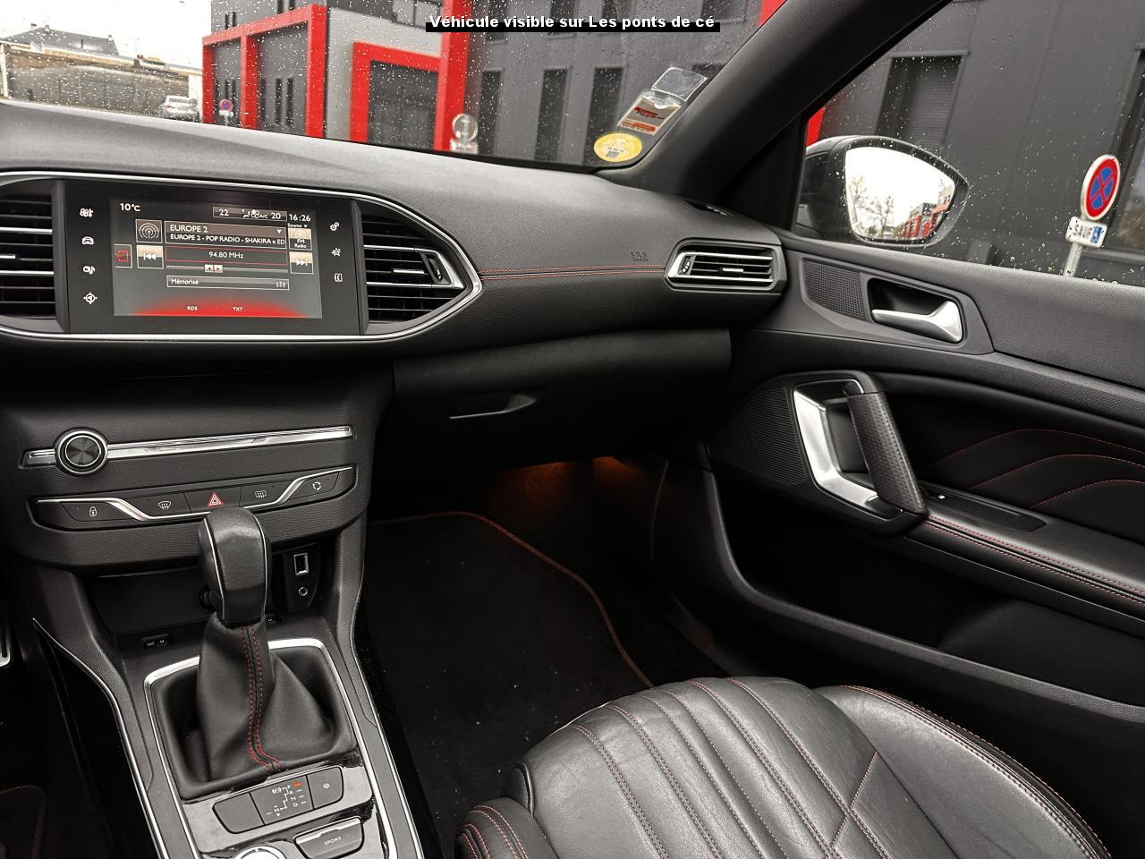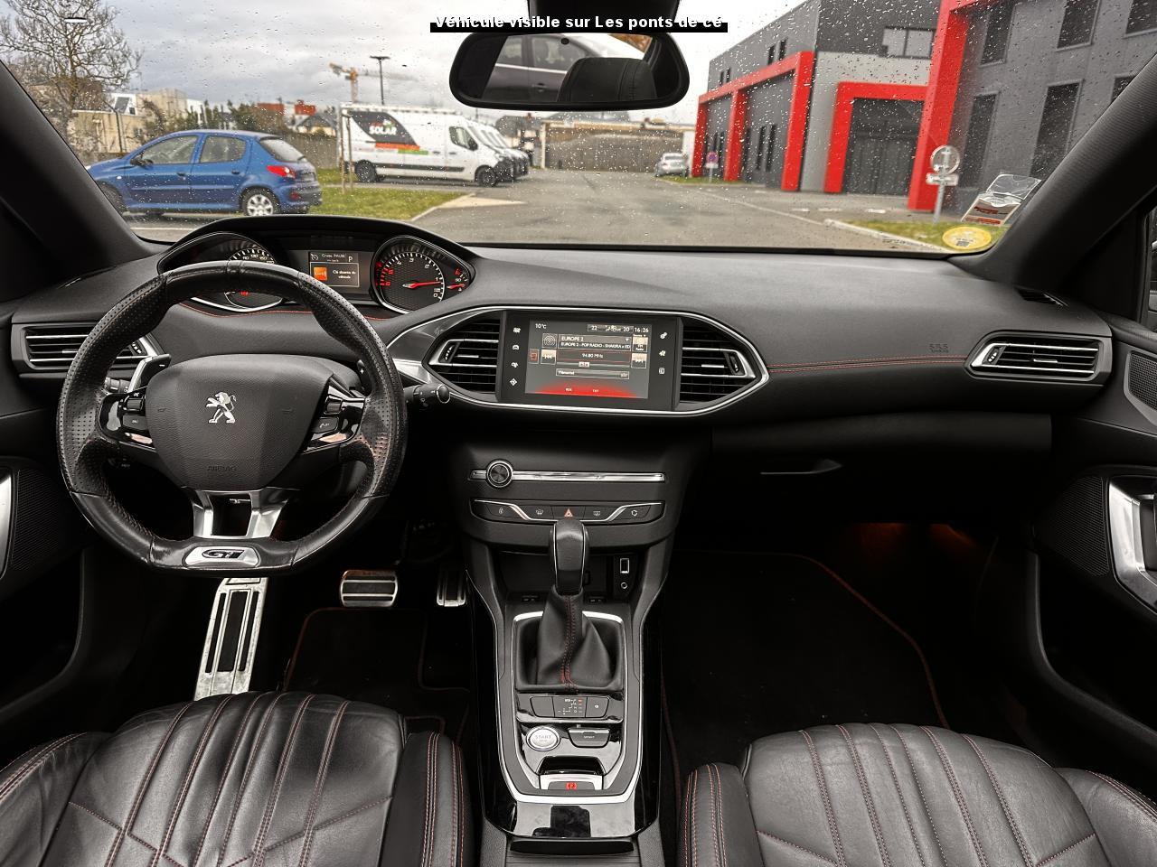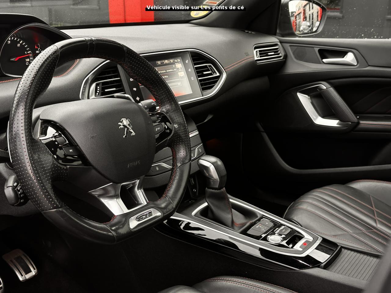 3 appuie-tête arrière réglables en hauteurABS (Antiblocage de roues)Accès et démarrage mains-libresAccoudoir central avant avec rangementAide au démarrage en côteAide graphique et sonore au stationnement arrièreAide graphique et sonore au stationnement avantAirbags frontaux conducteur et passager adaptatifs (passager neutralisable), latéraux avant et rideaux avant et arrièreAlarme sonore d'oubli d'extinction des feuxAlerte visuelle et sonore de débouclage des ceintures de sécurité arrièreAlerte visuelle et sonore de non bouclage et de débouclage des ceintures de sécurité conducteur et passager avantAllumage automatique des feux de détresseAntenne courteAntidémarrage codé électroniqueAppuie-tête avant virgule réglables en hauteurAssistance au freinage d'urgenceBadge GT sur la calandre, les ailes avant et le volet arrièreBanquette arrière rabattable 1/3-2/3Becquet arrière couleur carrosserieBoîte à gants éclairée et réfrigérableBouclier arrière intégrant des doubles canules d'échappement de styleBouclier avant spécifique avec écopes d'entrée d'air noir laquéCalandre spécifique intégrant le lion PEUGEOTCeinture conducteur et passager à enrouleur pyrotechniqueCeintures latérales rang 2 avec limitation d'effortClignotants avant à LEDs avec défilement dynamiqueClimatisation automatique bi-zoneCombiné "Haut de gamme "spécifique GT avec matrice couleur 3"5 et fond de compteur DamierCommande de verrouillage à distance (un plip)Coquilles de rétroviseur spécifiques Noir Perla NeraDécors intérieur spécifiquesDétecteur de sous-gonflage indirectDriver Sport PackEcran tactile multifonction 9,7", radio, Bluetooth, Jack, USB, 6HPEnjoliveurs latéraux de bas de caisseESP (contrôle dynamique de stabilité) + ASRFeux arrière à LEDFeux diurnes à LEDFixations Isofix (aux places latérales arrière)Frein de parking électriqueGarnissage TEP/ALCANTARA avec surpiqûres rougesGarniture et montants de pavillon anthraciteIndicateur de température extérieureJantes Aluminium 18" DIAMANT 225/40R18 WKit de dépannage pneumatique (anneau de remorquage, compresseur et flacon de produit de colmatage)Lève-vitres électriques arrière à fonctions séquentielle et anti-pincementLève-vitres électriques avant à commande séquentielle et anti-pincementLunette arrière chauffantePack ConfortPack VisibiltéPare-chocs arrière, peint couleur caisse avec diffuseur noir laquéPédales et repose pieds en aluminiumPeinture opaquePlafonnier central avant et arrière à LEDPoches aumônières au dos des sièges avantPrise 12VPrise 230VProjecteurs haut de gamme "Full Leds Technology"Rangement dans le coffre, spécifique pour triangle de pré-signalisation et trousse de secoursRéglage lombaire du siège passager (mécanique)Réglage manuel lombaire du siège conducteurRégulateur - limiteur de vitesse programmableRépartiteur électronique de freinage REFRétroviseurs extérieurs avec réglage électriqueRétroviseurs extérieurs rabattables électriquementSeuils des portes en aluminiumSiège conducteur et passager réglable en hauteur (mécanique)Sièges avant sportSurtapis avec surpiqûres rougesSuspension sport (assiette abaissé de 10 mm)Système de navigation avec écran tactileVerrouillage automatique de tous les ouvrants en roulantVitres latérales et lunette arrière surteintéesVolant réglable en hauteur et en profondeur (mécanique)Volant spécifique, cuir pleine fleur avec Badge GT et surpiqûres rouges