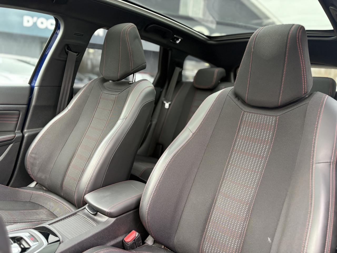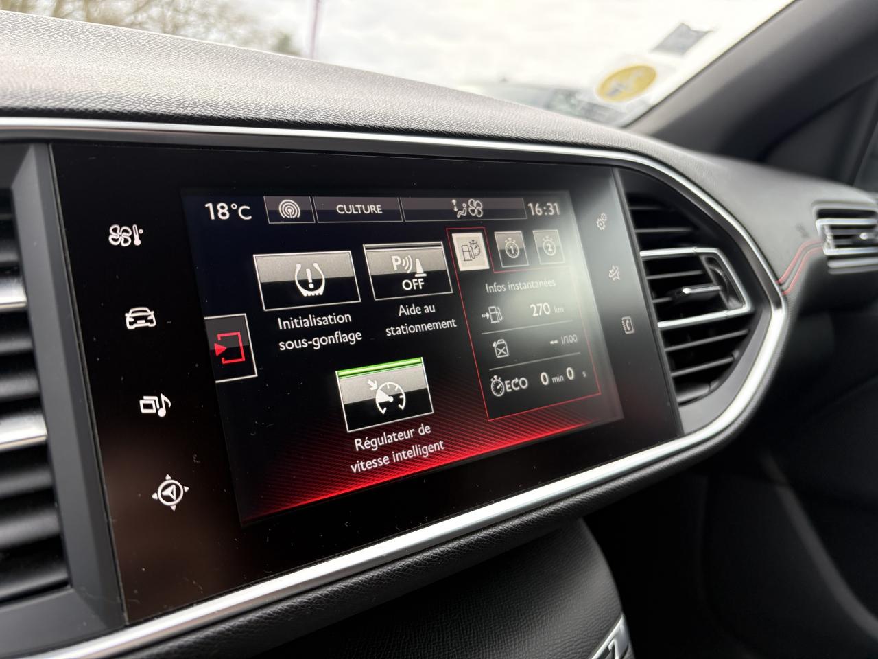 ABS (Antiblocage de roues)Accès et démarrage mains libres - inclut la prise 220 volts et un plip supplémentaireAccoudoir central avant avec rangementAide graphique et sonore au stationnement arrièreAide graphique et sonore au stationnement avantAirbags frontaux conducteur et passager adaptatifs (passager neutralisable), latéraux avant et rideaux avant et arrièreAlerte visuelle et sonore de débouclage des ceintures de sécurité arrièreAlerte visuelle et sonore de non bouclage et de débouclage des ceintures de sécurité conducteur et passager avantAllumage automatique des feux de détresseAppuis-tête à sécurité optimisée réglables en hauteur sur les sièges conducteur et passager avant ainsi que sur les places arrièresAssistance au freinage d'urgenceAssistant de démarrage en côteAvertisseur de temps de conduiteBadge GTi sur les ailes avant et le pare-chocs arrièreBanquette arrière rabattable (2/3 -1/3) avec modularité Magic FlatBarres de seuils de portes avant en inoxBecquet arrière couleur carrosserieBoîte à gants éclairée et réfrigérableBouclier arrière intégrant des doubles canules d'échappement de styleCalandre avec jonc périphérique et damiers chromés, intégrant le lion PEUGEOTCeinture conducteur et passager à enrouleur pyrotechniqueCeintures centrale rang 2 sans limitation d'effort, 3 pointsCeintures latérales rang 2 avec limitation d'effortClimatisation automatique bi-zoneCombiné tête haute, avec graduations spécifiques, aiguilles avec du chrome et cerclages chromés, matrice couleur 3"5Commande de verrouillage à distance (deux plips)Coquilles de rétroviseur spécifiques Noir Perla NeraDécors spécifiques intérieurs avec surpiqûres rougesDétecteur de sous-gonflage à détection indirecteDiffuseur arrière noir laquéEclairage des caves à piedsEcran tactile 9,7'' (Radio 6HP, et connectivité Bluetooth (audio streaming, kit mains libres), commandes au volantEnjoliveurs latéraux de bas de caisseEntourage de vitres chroméESP (contrôle dynamique de stabilité) + ASREssuie-glace arrière avec déclenchement automatique en marche arrièreFeux arrière à LED avec masque noirFeux diurnes à LEDFixations Isofix (aux places latérales arrière)Frein de parking électriqueGarnissage TEP/Tissu OXFORD Mistral/Rouge avec surpiqûres rougesHabitacle et ciel de pavillon anthraciteJantes alliage 17'' diamantées RUBISKit de dépannage pneumatique (anneau de remorquage, compresseur et flacon de produit de colmatage)Lève-vitres électriques arrière à fonctions séquentielle et anti-pincementLève-vitres électriques avant à commande séquentielle et anti-pincementLunette arrière chauffanteMiroirs de courtoisie éclairés conducteur et passagerPack ConfortPack SafetyPack VisibiltéPédalier et repose-pied conducteur en aluminiumPEUGEOT Connect : Navigation connectée 3D avec reconnaissance vocale - Cartographie Europe avec connexion automatique et permanente aux services de Navigation connectée, SOS et Assistance, TéléservicesPEUGEOT i-Cockpit : Poste de pilotage innovant associant combiné tête haute, volant compact et grand écran tactilePlafonnier central avant et arrière à LEDPoches aumônières au dos des sièges avantPrise 12VPrise USBProjecteurs 'Peugeot Full LED Technology'Rangement dans le coffre, spécifique pour triangle de pré-signalisation et trousse de secoursRéglage lombaire du siège passager (mécanique)Réglage manuel lombaire du siège conducteurRégulateur et limiteur de vitesseRépartiteur électronique de freinage REFRétroviseurs extérieurs avec réglage électriqueRétroviseurs extérieurs dégivrantsRétroviseurs extérieurs rabattables électriquementSécurité enfant électrique des vitres arrièreSiège conducteur et passager réglable en hauteur (mécanique)Surtapis avec surpiqûres rougesVerrouillage automatique de tous les ouvrants en roulantVisiopark 1Vitres latérales et lunette arrière surteintéesVolant réglable en hauteur et en profondeur (mécanique)Volant spécifique, cuir pleine fleur avec surpiqûres rouges