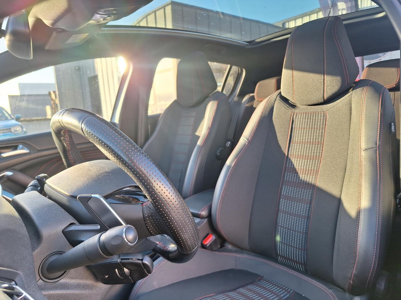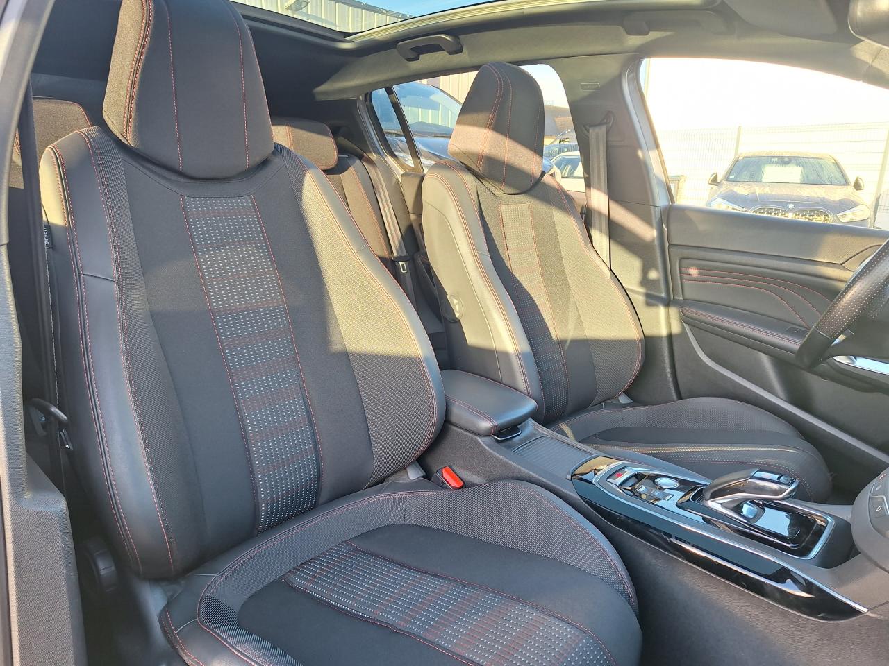 ABS (Antiblocage de roues)Accès et démarrage mains libres - inclut la prise USB en rang 2 et un plip supplémentaireAccoudoir central avant avec rangementAide graphique et sonore au stationnement arrièreAide graphique et sonore au stationnement avantAir conditionné automatique bi-zone (avec filtre à charbon actif, anti-odeurs)Airbags frontaux conducteur et passager adaptatifs (passager neutralisable), latéraux avant et rideaux avant et arrièreAlerte visuelle et sonore de débouclage des ceintures de sécurité arrièreAlerte visuelle et sonore de non bouclage et de débouclage des ceintures de sécurité conducteur et passager avantAllumage automatique des feux de détresseAppuis-tête à sécurité optimisée réglables en hauteur sur les sièges conducteur et passager avant ainsi que sur les places arrièresAssistance au démarrage en côte (Hill Assist)Assistance au freinage d'urgenceAvertisseur de temps de conduiteBadge GT Line sur les ailes avant et le pare-chocs arrièreBanquette arrière rabattable 1/3 - 2/3 avec dossier rabattable, assise fixeBarres de seuils de portes avant en inoxBecquet arrière couleur carrosserieBoîte à gants éclairée et réfrigérableBouclier arrière couleur carrosserieBouclier arrière intégrant des doubles canules d'échappement de styleCalandre avec jonc périphérique et damiers chromés, intégrant le lion PEUGEOTCeinture conducteur et passager à enrouleur pyrotechniqueCeintures centrale rang 2 sans limitation d'effort, 3 pointsCeintures latérales rang 2 avec limitation d'effortCombiné tête haute, avec graduations spécifiques, aiguilles avec du chrome et cerclages chromés, matrice couleur 3"5Commande de verrouillage à distance (deux plips)Coquilles de rétroviseur spécifiques Noir Perla NeraDécors spécifiques intérieurs avec surpiqûres rougesDétecteur de sous-gonflage à détection indirecteDiffuseur arrière noir laquéEcran tactile 9,7'' (Radio 6HP, et connectivité Bluetooth (audio streaming, kit mains libres), commandes au volantEnjoliveurs latéraux de bas de caisseEntourage de vitres chroméESP (contrôle dynamique de stabilité) + ASREssuie-glace arrière avec déclenchement automatique en marche arrièreFeux arrière à LED avec masque noirFeux diurnes à LEDFixations Isofix (aux places latérales arrière)Fonction Mirror ScreenGarnissage TEP/Tissu OXFORD Mistral/Rouge avec surpiqûres rougesHabitacle et ciel de pavillon anthraciteJantes alliage 17'' diamantées RUBISKit de dépannage pneumatique (anneau de remorquage, compresseur et flacon de produit de colmatage)Lève-vitres électriques arrière à fonctions séquentielle et anti-pincementLève-vitres électriques avant à commande séquentielle et anti-pincementLunette arrière chauffanteMiroirs de courtoisie éclairés conducteur et passagerPack ConfortPack SafetyPack VisibiltéPédalier et repose-pied conducteur en aluminiumPEUGEOT Connect : Navigation connectée 3D avec reconnaissance vocale - Cartographie Europe avec connexion automatique et permanente aux services de Navigation connectée, SOS et Assistance, TéléservicesPEUGEOT i-Cockpit : Poste de pilotage innovant associant combiné tête haute, volant compact et grand écran tactilePlafonnier central avant et arrière à LEDPoches aumônières au dos des sièges avantPommeau de levier de vitesses et frein à main en cuirPrise 12VPrise USBProjecteurs 'Peugeot Full LED Technology'Rangement dans le coffre, spécifique pour triangle de pré-signalisation et trousse de secoursRéglage lombaire du siège passager (mécanique)Réglage manuel lombaire du siège conducteurRégulateur et limiteur de vitesseRépartiteur électronique de freinage REFRétroviseurs extérieurs avec réglage électriqueRétroviseurs extérieurs dégivrantsRétroviseurs extérieurs rabattables électriquement avec éclairage d'accueilSécurité enfant électrique des vitres arrièreSiège conducteur et passager réglable en hauteur (mécanique)Surtapis avec surpiqûres rougesVerrouillage automatique de tous les ouvrants en roulantVisiopark 1 : caméra de recul avec restitution sur l'écran tactile d'une vue arrière, et d'une vue de dessus de l'environnement arrière du véhiculeVitres latérales et lunette arrière surteintéesVolant réglable en hauteur et en profondeur (mécanique)Volant spécifique, cuir pleine fleur avec surpiqûres rouges