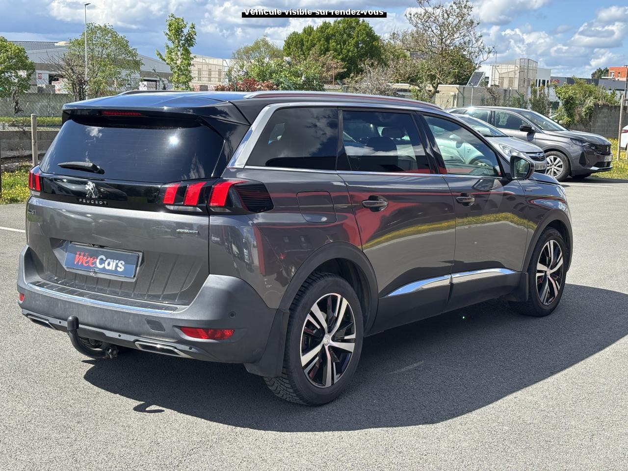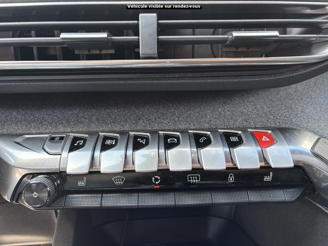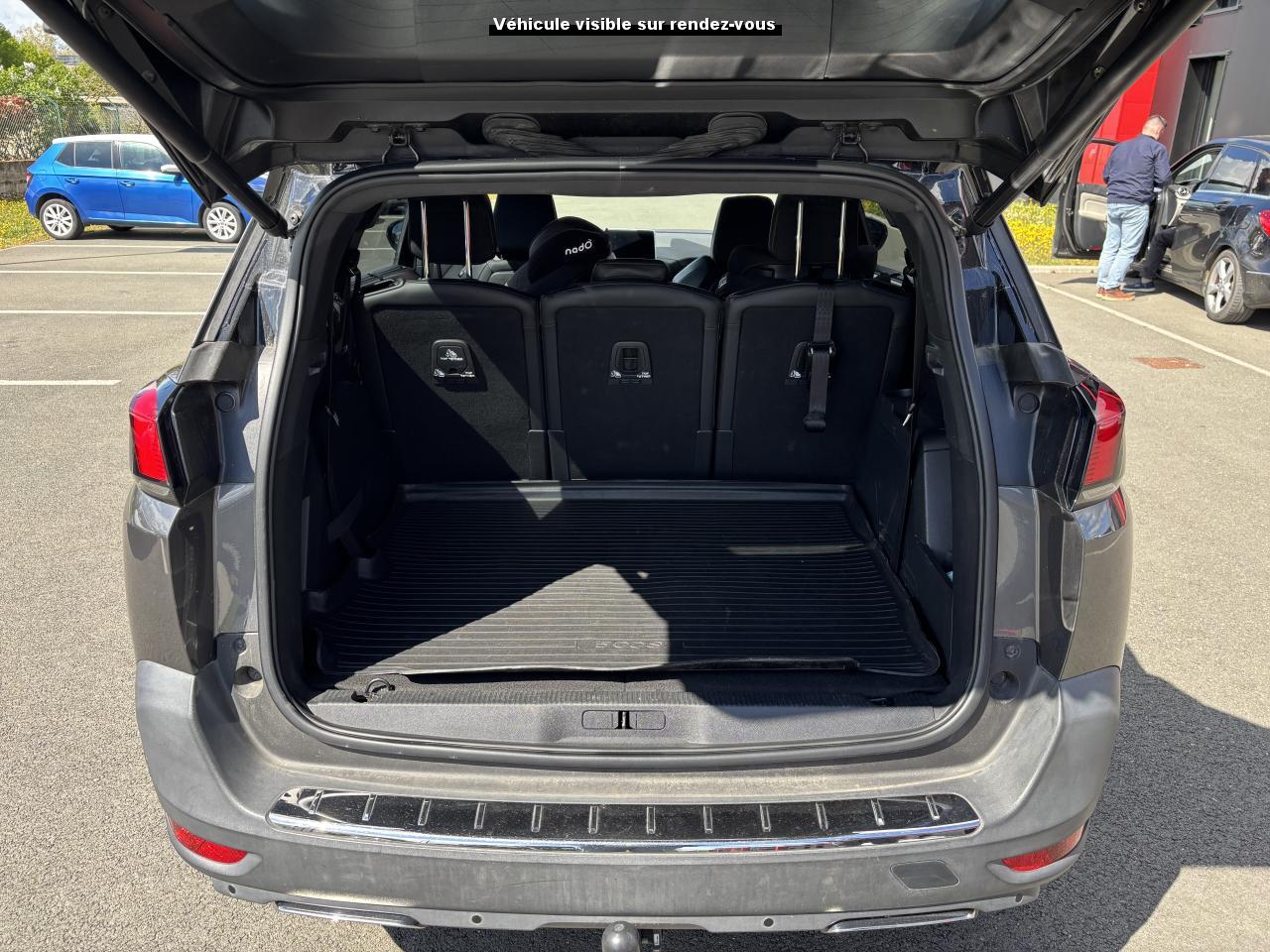 2 sièges de 3è rang, escamotables3 Fixations Isofix (3 points d'ancrage au rang 2)3 Sièges arrière en rang 2 (indépendants, coulissants, inclinables et escamotables dans le plancher)ABS (Antiblocage de roues)Accès et démarrage mains-libresAccoudoir central avant à ouverture papillon, avec compartiment de rangement éclairé et réfrigérableAide sonore et graphique au stationnement arrièreAir conditionné automatique bi-zone + diffuseur arrièreAirbags frontaux conducteur et passager (passager neutralisable) , latéraux avant et rideauxAlerte de temps de conduiteAppuis-tête à sécurité optimisée réglables en hauteur sur les sièges conducteur et passager avant ainsi que sur les places arrièresASR (système d'antipatinage)Assistance au freinage d'urgenceBarres de seuils de portes avant en inoxBarres de toit longitudinales profilées en aluminiumBoîte à gants floquée et éclairéeCalandre avec jonc périphérique chrome brillant et satiné, damier chromé et lettrage Peugeot noirCeintures avant à 3 points, réglables en hauteur, avec prétensionneurs et limiteurs d'effortCeintures de sécurité aux places latérales de 2éme rangée 3 points avec prétensionneur et limiteur d'effort.Ceintures de sécurité trois points à enrouleur (x2) au troisième rangCommande de verrouillage à distance (deux plips)Contrôle Dynamique de stabilité (DSC)Coques de rétroviseurs extérieurs Noir Perla NeraDécors de planche de bord et panneaux de portes en maille 'Brumeo'Décors intérieurs (baguettes de planche de bord et panneaux de portes, enjoliveur de console) chromésDétecteur de sous-gonflageDirection assistée électrique, avec colonne de direction réglable en hauteur et profondeur (mécanique)Eclairage intérieur à LEDEnjoliveur de seuil d'entrée de coffre chroméEnjoliveurs d'arc de pavillon en inoxEnjoliveurs en inox sur les protecteurs de bas de portesEssuie-glace arrière avec déclenchement automatique en marche arrièreEssuie-vitre avant avec système de lavage 'Magic Wash'Frein de stationnement électrique avec aide au démarrage en penteHabitacle et ciel de pavillon Noir MistralIndicateur de rapport optimalInserts d'ailes avant chromésJantes alliage 18" 'Detroit' bi-ton diamantéesJoncs de vitres latérales en inoxKit de dépannage pneumatiqueLève-vitres électriques avant et arrière, séquentiels et antipincementLunette arrière chauffante avec antennes sérigraphiéesMiroirs de courtoisie éclairésPack City 1Pack Eclairage d'ambiancePack Safety PlusPack VisibilitéPassages de roues rapportés noirsPédalier et repose-pied conducteur en aluminiumPeinture Blanc BanquisePeugeot ConnectPeugeot i-Cockpit Amplify: choix de 2 ambiances paramétrablesPeugeot i-Cockpit combiné tête haute numérique reconfigurable, écran tactile capacitif 8" et volant compact multi-fonctionsPlafonnier avant avec spots de lecture (x2) et plafonniers à extinction temporisée aux deuxième et troisième rangsPoches aumônières au dos des sièges avant et filets de rangementPoignées de maintien (x4) rétractables avec frein (crochets pour cintres aux places arrière)Porte-gobelets dans la console centrale avant (x2)Prise 12V (x3) : à l'avant, à l'arrière et dans le coffrePrise USBProjecteurs 'Peugeot Full LED Technology' avec correction automatique de site, projecteurs antibrouillard à LED avec fonction cornering, clignotants avant à LED avec défilement dynamiqueRadio 6 HP, bi-tuner compatible MP3 et connectivité Bluetooth (audio streaming, kit mains libres), avec commandes au volant, écran tactile capacitif 8"Reconnaissance des panneaux de vitesse et préconisationRégulateur et limiteur de vitesseRépartiteur électronique de freinage REFRétroviseurs extérieurs électriques et dégivrantsRétroviseurs extérieurs rabattables électriquement avec 'Lion Spotlight'Rideaux pare-soleil en rang 2Sabot de pare-choc avant gris métalliséSécurité enfant électrique des vitres arrièreSellerie TEP & Tissu 'Imila'Siège conducteur avec réglage lombaire manuelSiège conducteur réglable en hauteurSiège passager avant mécanique avec mise en tabletteSiège passager avant réglable en hauteur manuellementSortie d'echappement avec canule chroméeSpots de lecture (x2) aux deuxième et troisième rangsSurtapis aux places avant et arrièreTablettes aviation au dos des sièges de la 1ère rangéeToggle Switches' chromés (touches 'piano' d'activation des fonctions de l'écran tactile)Toit 'Black Diamond' (toit Noir Perla Nera)Trappes de rangement (x2) aux pieds des passagers du deuxième rangVerrouillage automatique de tous les ouvrants en roulantVitres latérales et lunette arrière surteintéesVolant cuir pleine fleur perforé avec bagues chromées et badge GT Line