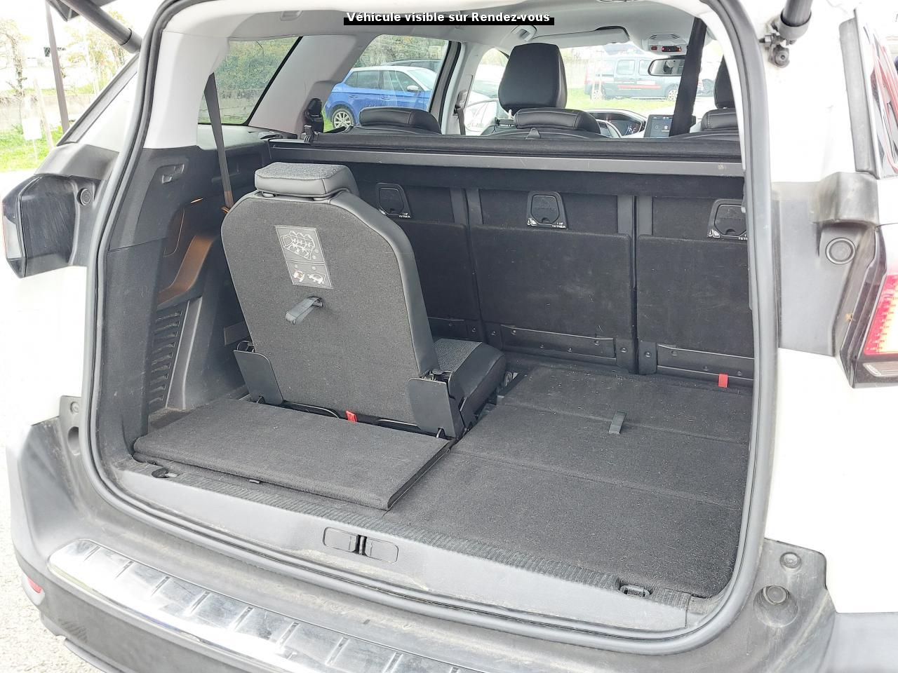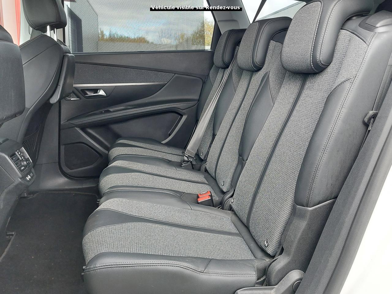 3 Sièges arrière en rang 2 (indépendants, coulissants, inclinables et escamotables dans le plancher)ABS (Antiblocage de roues)Accès et démarrage mains-libresAccoudoir central avant à ouverture papillon, avec compartiment de rangement éclairé et réfrigérableAide sonore et graphique au stationnement arrièreAir conditionné automatique bi-zone avec aérateurs aux places arrièreAirbags frontaux et latéraux conducteur et passager à déclenchement adaptatif pour les Airbag frontaux (Airbag passager désactivable par clé)Airbags rideaux de tête aux places avant et arrièreAlerte de temps de conduiteAppuis-tête à sécurité optimisée réglables en hauteur sur les sièges conducteur et passager avant ainsi que sur les places arrièresAssistance au freinage d'urgenceBarres de toit longitudinales profilées en aluminiumBoîte à gants floquée et éclairéeCalandre avec jonc périphérique chrome brillant, damier chroméCeintures avant à 3 points, réglables en hauteur, avec prétensionneurs et limiteurs d'effortCeintures de sécurité trois points à enrouleur (x2) au troisième rangCeintures de sécurité trois points à enrouleur (x3) au deuxième rang, avec prétensionneurs et limiteurs d'effort aux places latéralesCommande de verrouillage à distance (deux plips)Contrôle dynamique de stabilité CDS avec antipatinage électronique ASRDécors de planche de bord et panneaux de portes en maille 'Brumeo'Décors intérieurs (baguettes de planche de bord et panneaux de portes, enjoliveur de console) chromésDétection de sous-gonflage indirecteDeux sièges escamotables et extractibles pour les passagers du troisième rangDirection assistée électrique, avec colonne de direction réglable en hauteur et profondeur (mécanique)Enjoliveur de seuil d'entrée de coffre chroméEnjoliveurs d'arc de pavillon en inoxEnjoliveurs en inox sur les protecteurs de bas de portesEssuie-glace arrière avec déclenchement automatique en marche arrièreEssuie-vitre avant avec système de lavage 'Magic Wash'Filets aumônières au dos des sièges avantFixations ISOFIX sur les 3 sièges de la 2ème rangéeFonction Mirror ScreenFrein de stationnement électrique avec aide au démarrage en penteHayon mains libres : volet de coffre motorisé avec accès mains libresIndicateur de rapport optimalInserts d'ailes avant chromésJantes alliage 18" 'Detroit' bi-ton diamantéesKit de dépannage pneumatiqueLève-vitres électriques avant et arrière, séquentiels et antipincementLunette arrière chauffante avec antennes sérigraphiéesMiroirs de courtoisie éclairésPack City 1Pack Eclairage d'ambiancePack Safety PlusPack VisibilitéPassages de roues rapportés noirsPeugeot Connect : Navigation 3D connectée avec reconnaissance vocale + PEUGEOT Connect SOS & AssistancePeugeot i-Cockpit Amplify: choix de 2 ambiances paramétrablesPeugeot i-Cockpit combiné tête haute numérique reconfigurable, écran tactile capacitif 8" et volant compact multi-fonctionsPlafonnier avant avec spots de lecture (x2) et plafonniers à extinction temporisée aux deuxième et troisième rangsPoignées de maintien (x4) rétractables avec frein (crochets pour cintres aux places arrière)Porte-gobelets dans la console centrale avant (x2)Prise 12V (x3) : à l'avant, à l'arrière et dans le coffrePrise USBProjecteurs 'Peugeot Full LED Technology'Projecteurs antibrouillard halogènes avec enjoliveurs chromésRadio 6 HP, bi-tuner compatible MP3 et connectivité Bluetooth (audio streaming, kit mains libres), avec commandes au volant, écran tactile capacitif 8"Recharge smartphone sans filReconnaissance des panneaux de vitesse et préconisationRégulateur et limiteur de vitesseRépartiteur électronique de freinage REFRétroviseurs extérieurs couleur carrosserieRétroviseurs extérieurs électriques et dégivrantsRétroviseurs extérieurs rabattables électriquement avec éclairage d'approche à LEDRideaux pare-soleil en rang 2Sabot de pare-choc avant gris métalliséSécurité enfant électrique des vitres arrièreSellerie TEP & Tissu 'Piedimonte' ou 'Evron'Siège conducteur avec réglage lombaire manuelSiège conducteur réglable en hauteurSiège passager avant mécanique avec mise en tabletteSiège passager avant réglable en hauteur manuellementSpots de lecture (x2) aux deuxième et troisième rangsTablettes aviation au dos des sièges de la 1ère rangéeToggle Switches' chromés (touches 'piano' d'activation des fonctions de l'écran tactile)Trappes de rangement (x2) aux pieds des passagers du deuxième rangVerrouillage automatique de tous les ouvrants en roulantVitres latérales et lunette arrière surteintéesVolant cuir pleine fleur