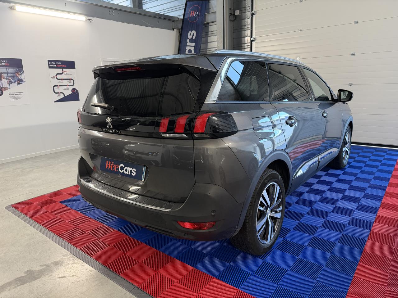 3 Sièges arrière en rang 2 (indépendants, coulissants, inclinables et escamotables dans le plancher)Accès et démarrage mains-libresAccoudoir central avant à ouverture papillon, avec compartiment de rangement éclairé et réfrigérableAir conditionné automatique bi-zone avec aérateurs aux places arrièreAirbags frontaux conducteur et passager adaptatifs (passager neutralisable)Airbags latéraux conducteur et passager avantAirbags rideaux rangs 1, 2 et 3Appuis-tête à sécurité optimisée réglables en hauteur sur les sièges conducteur et passager avant ainsi que sur les places latérales arrièresAvertisseur de temps de conduiteBarres de toit longitudinales profilées en aluminiumCalandre à damier chroméCoques de rétroviseurs extérieurs Noir Perla NeraDécors de planche de bord et panneaux de portes en maille 'Brumeo'Détection de sous-gonflage indirecteDeux sièges escamotables et extractibles pour les passagers du troisième rangDirection assistée électrique, avec colonne de direction réglable en hauteur et profondeur (mécanique)Drive Mode : Choix de 2 modes de conduite (Eco ou Sport)Enjoliveurs d'arc de pavillon en inoxEssuie-vitre avant avec système de lavage 'Magic Wash'Fixation ISOFIX pour sièges enfants sur 3 places arrièreFonction 'Mirror Screen' (Apple Carplay / Android Auto)Frein de stationnement électrique avec aide au démarrage en penteHabitacle et ciel de pavillon Noir MistralInserts d'ailes avant chromésJantes alliage 18" 'Detroit' bi-ton diamantées Gris StormKit de dépannage pneumatiqueLève-vitres électriques séquentiels et antipincementLunette arrière surteintée chauffanteNavigation 3D connectée avec reconnaissance vocale, écran tactile capacitif 10" HDPack City 1Pack Eclairage d'ambiancePack EnfantsPack Safety PlusPack VisibilitéPare-soleil avec miroirs de courtoisie éclairésPassages de roues rapportés noirsPeinture métallisée Metallic CopperPeugeot i-Cockpit combiné tête haute numérique reconfigurable,et volant compact multi-fonctionsPlafonniers avant, rang 2 et rang 3 à LED avec 2 spots de lecturePrises 12V (x3 : zone connectique, arrière de console et coffre)Projecteurs haut de gamme 'Peugeot Full LED Technology'Protecteurs de bas de portes avec inserts Inox BrillantReconnaissance étendue des panneaux de circulationRégulateur et limiteur de vitesseRétroviseur intérieur photosensible (position automatique ou manuelle)Rétroviseurs extérieurs électriques et dégivrants, rabattables électriquement,éclairage d'accueil à LED,témoin de surveillance d'angles mortsSabot de pare-choc avant MétallureSécurité enfant électrique des vitres arrièreSellerie TEP & Tissu 'Colyn'Siège conducteur avec réglage lombaire manuelSiège passager avant avec mise en tabletteSièges conducteur et passager réglables en hauteurToggle Switches' chromés (touches 'piano' d'activation des fonctions de l'écran tactile)Trappes de rangement (x2) aux pieds des passagers du deuxième rangVitres latérales AR surteintéesVolant en cuir Fleur Mistral