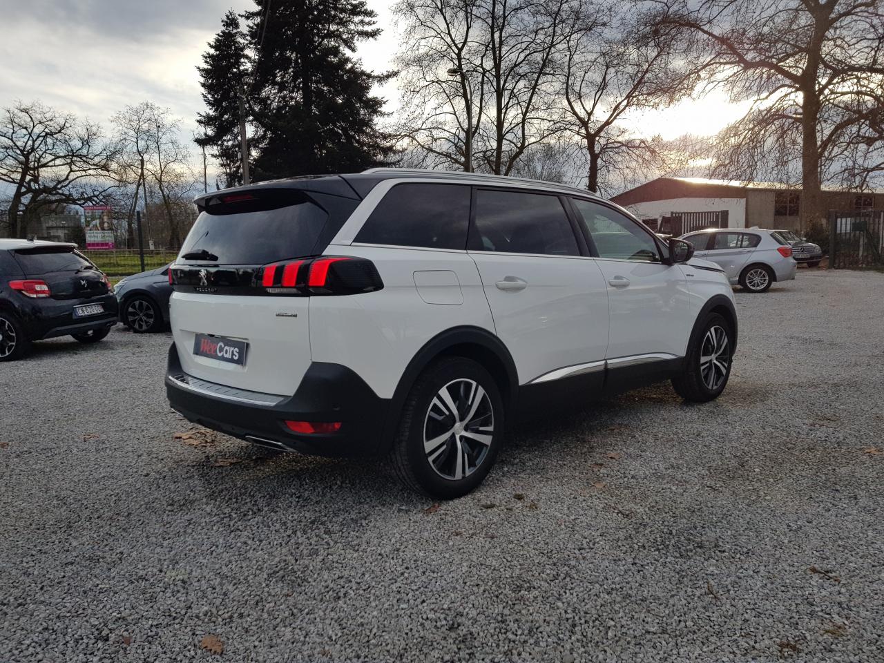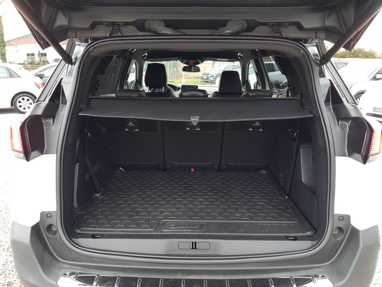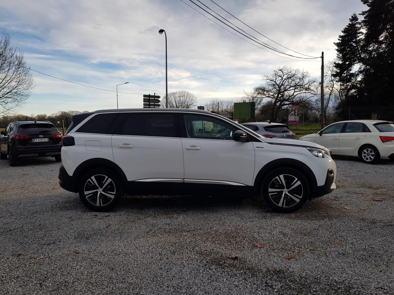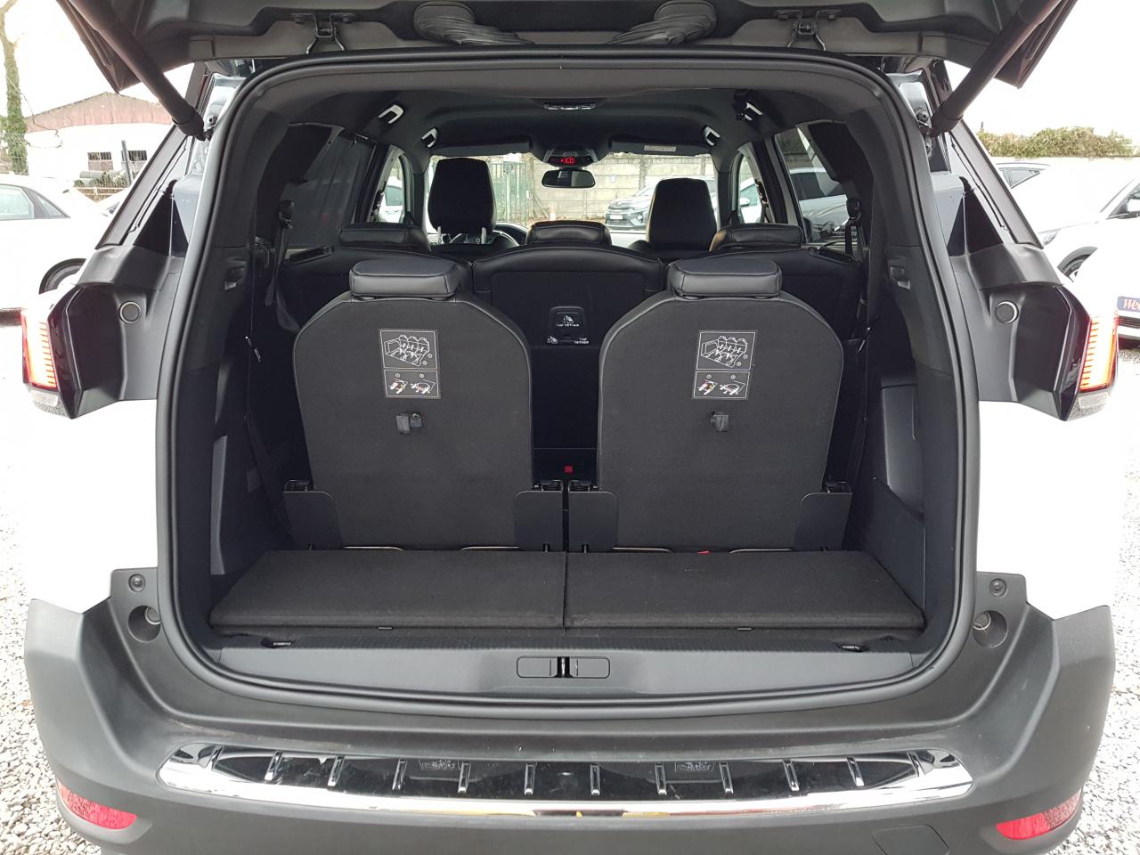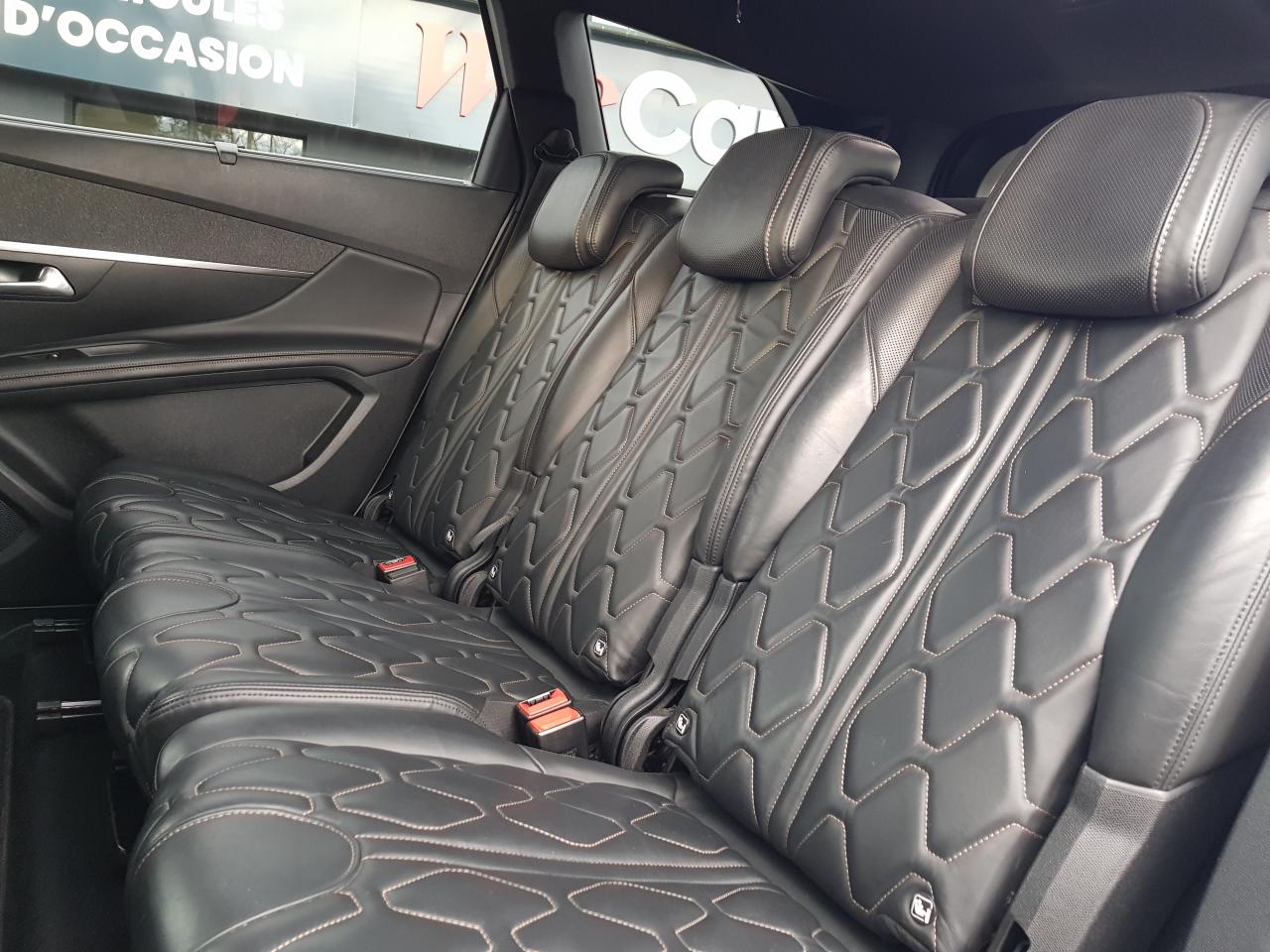 2 sièges de 3è rang, escamotables3 Fixations Isofix (3 points d'ancrage au rang 2)3 Sièges arrière en rang 2 (indépendants, coulissants, inclinables et escamotables dans le plancher)ABS (Antiblocage de roues)Accès et démarrage mains-libresAccoudoir central avant à ouverture papillon, avec compartiment de rangement éclairé et réfrigérableAide sonore et graphique au stationnement arrièreAir conditionné automatique bi-zone + diffuseur arrièreAirbags frontaux conducteur et passager (passager neutralisable) , latéraux avant et rideauxAlerte de temps de conduiteAppuis-tête à sécurité optimisée réglables en hauteur sur les sièges conducteur et passager avant ainsi que sur les places arrièresASR (système d'antipatinage)Assistance au freinage d'urgenceBarres de seuils de portes avant en inoxBarres de toit longitudinales profilées en aluminiumBoîte à gants floquée et éclairéeCalandre avec jonc périphérique chrome brillant et satiné, damier chromé et lettrage Peugeot noirCeintures avant à 3 points, réglables en hauteur, avec prétensionneurs et limiteurs d'effortCeintures de sécurité aux places latérales de 2éme rangée 3 points avec prétensionneur et limiteur d'effort.Ceintures de sécurité trois points à enrouleur (x2) au troisième rangCommande de verrouillage à distance (deux plips)Contrôle Dynamique de stabilité (DSC)Coques de rétroviseurs extérieurs Noir Perla NeraDécors de planche de bord et panneaux de portes en maille 'Brumeo'Décors intérieurs (baguettes de planche de bord et panneaux de portes, enjoliveur de console) chromésDétecteur de sous-gonflageDirection assistée électrique, avec colonne de direction réglable en hauteur et profondeur (mécanique)Eclairage intérieur à LEDEnjoliveur de seuil d'entrée de coffre chroméEnjoliveurs d'arc de pavillon en inoxEnjoliveurs en inox sur les protecteurs de bas de portesEssuie-glace arrière avec déclenchement automatique en marche arrièreEssuie-vitre avant avec système de lavage 'Magic Wash'Frein de stationnement électrique avec aide au démarrage en penteHabitacle et ciel de pavillon Noir MistralIndicateur de rapport optimalInserts d'ailes avant chromésJantes alliage 18" 'Detroit' bi-ton diamantéesJoncs de vitres latérales en inoxKit de dépannage pneumatiqueLève-vitres électriques avant et arrière, séquentiels et antipincementLunette arrière chauffante avec antennes sérigraphiéesMiroirs de courtoisie éclairésPack City 1Pack Eclairage d'ambiancePack Safety PlusPack VisibilitéPassages de roues rapportés noirsPédalier et repose-pied conducteur en aluminiumPeinture Blanc BanquisePeugeot ConnectPeugeot i-Cockpit Amplify: choix de 2 ambiances paramétrablesPeugeot i-Cockpit combiné tête haute numérique reconfigurable, écran tactile capacitif 8" et volant compact multi-fonctionsPlafonnier avant avec spots de lecture (x2) et plafonniers à extinction temporisée aux deuxième et troisième rangsPoches aumônières au dos des sièges avant et filets de rangementPoignées de maintien (x4) rétractables avec frein (crochets pour cintres aux places arrière)Porte-gobelets dans la console centrale avant (x2)Prise 12V (x3) : à l'avant, à l'arrière et dans le coffrePrise USBProjecteurs 'Peugeot Full LED Technology' avec correction automatique de site, projecteurs antibrouillard à LED avec fonction cornering, clignotants avant à LED avec défilement dynamiqueRadio 6 HP, bi-tuner compatible MP3 et connectivité Bluetooth (audio streaming, kit mains libres), avec commandes au volant, écran tactile capacitif 8"Reconnaissance des panneaux de vitesse et préconisationRégulateur et limiteur de vitesseRépartiteur électronique de freinage REFRétroviseurs extérieurs électriques et dégivrantsRétroviseurs extérieurs rabattables électriquement avec 'Lion Spotlight'Rideaux pare-soleil en rang 2Sabot de pare-choc avant gris métalliséSécurité enfant électrique des vitres arrièreSellerie TEP & Tissu 'Imila'Siège conducteur avec réglage lombaire manuelSiège conducteur réglable en hauteurSiège passager avant mécanique avec mise en tabletteSiège passager avant réglable en hauteur manuellementSortie d'echappement avec canule chroméeSpots de lecture (x2) aux deuxième et troisième rangsSurtapis aux places avant et arrièreTablettes aviation au dos des sièges de la 1ère rangéeToggle Switches' chromés (touches 'piano' d'activation des fonctions de l'écran tactile)Toit 'Black Diamond' (toit Noir Perla Nera)Trappes de rangement (x2) aux pieds des passagers du deuxième rangVerrouillage automatique de tous les ouvrants en roulantVitres latérales et lunette arrière surteintéesVolant cuir pleine fleur perforé avec bagues chromées et badge GT Line
