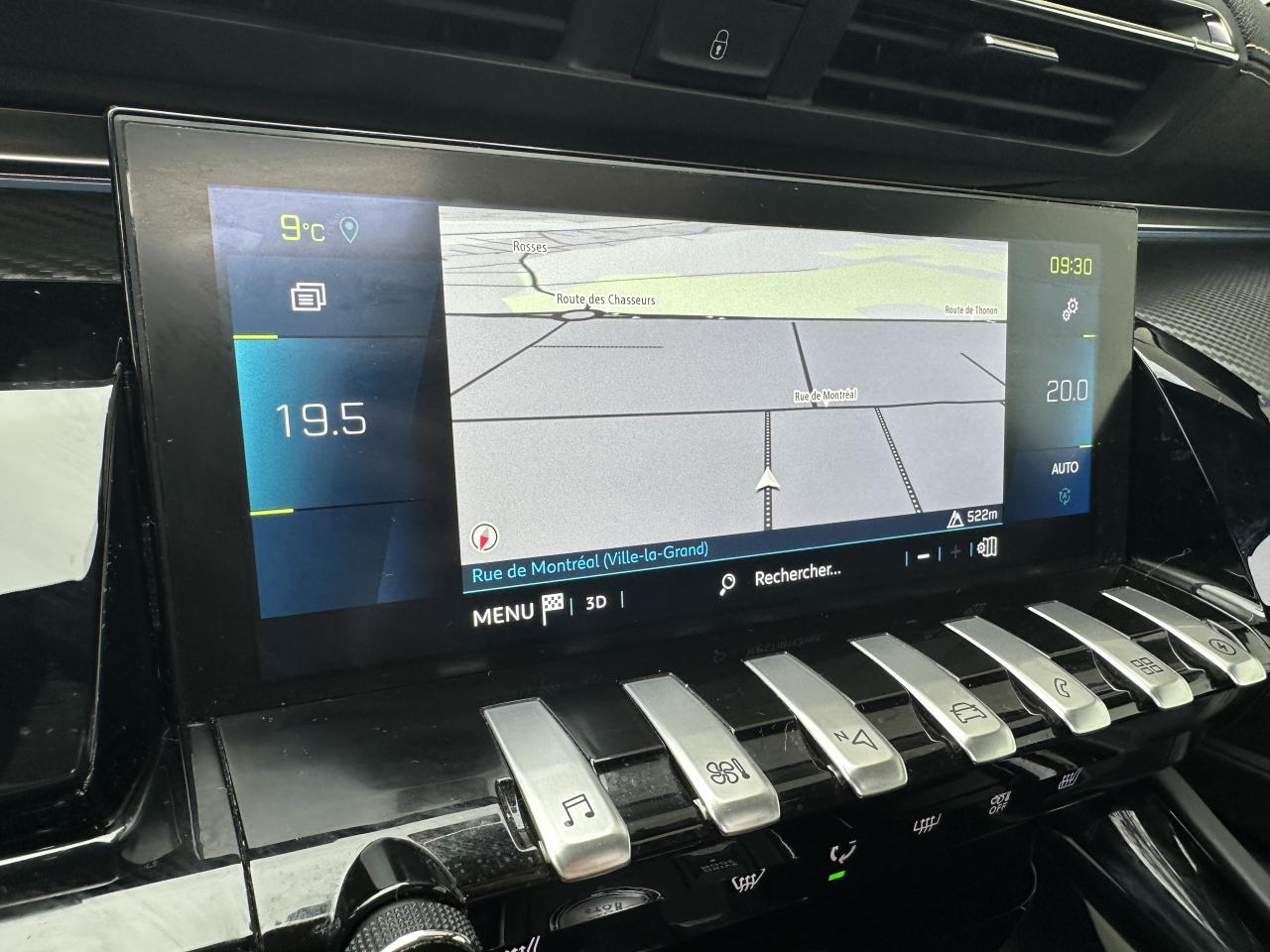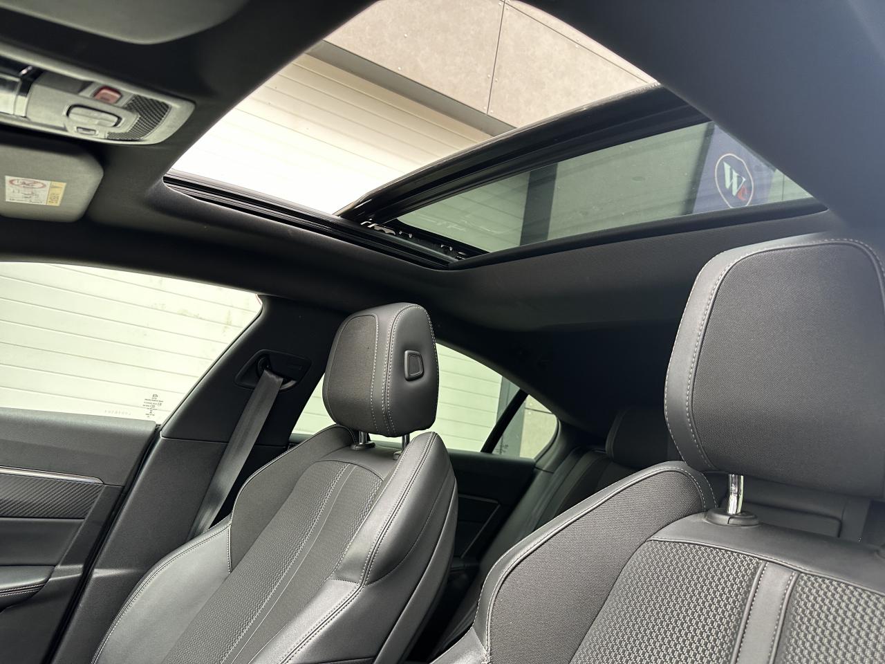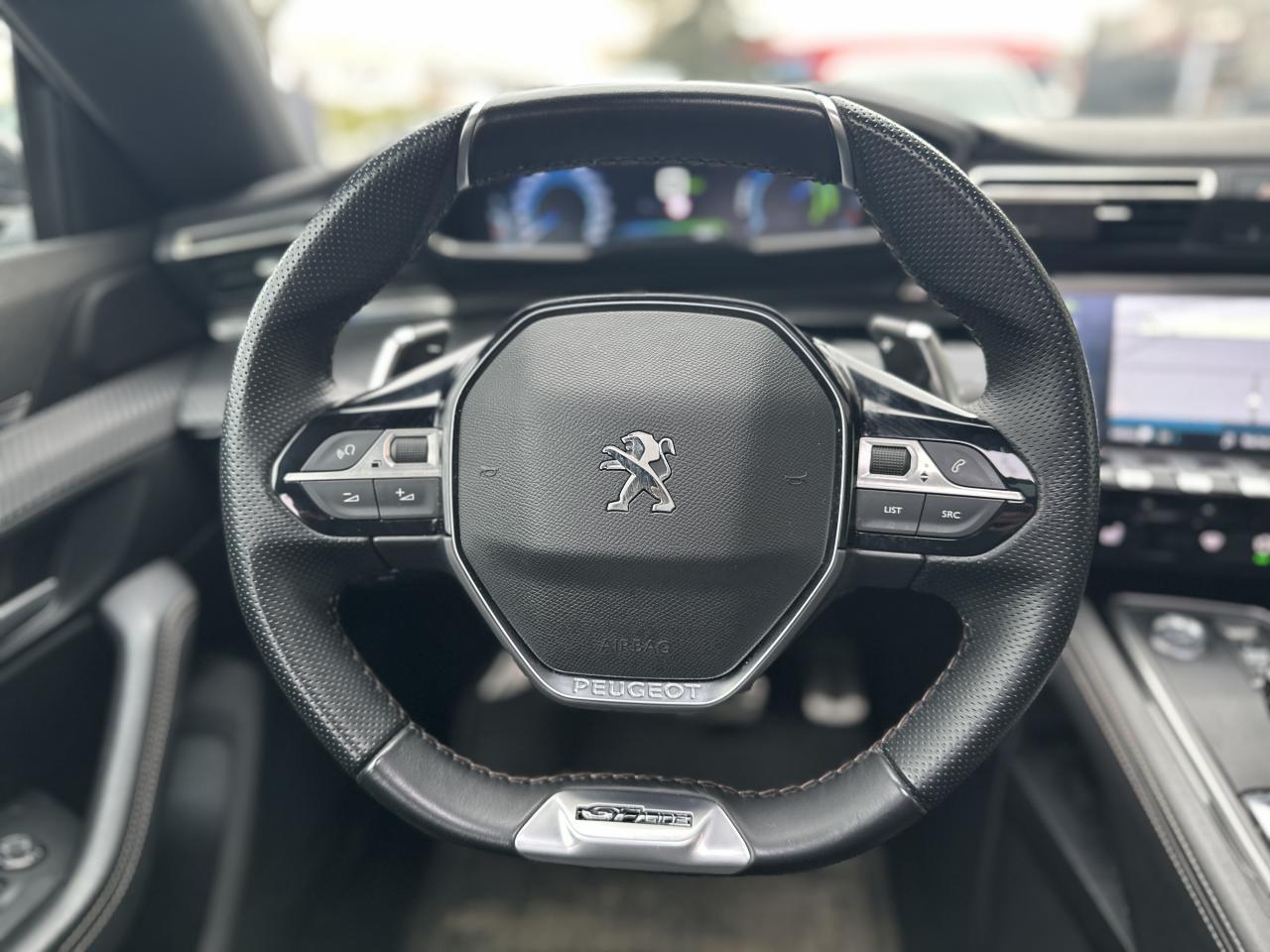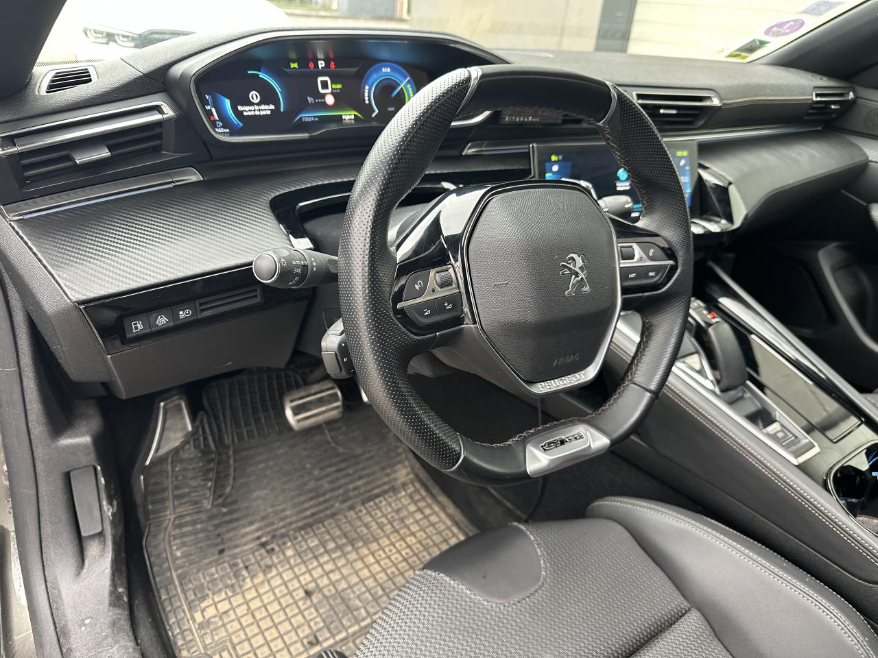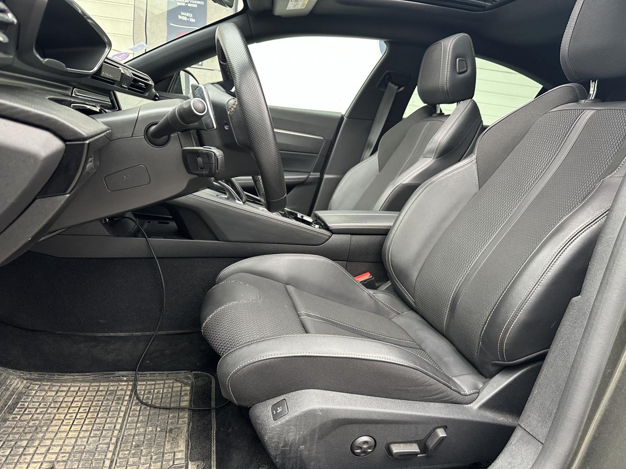 2 ports USB de chargement dans la console centrale arrière, Accès et démarrage mains-libres, Accoudoir central avant à ouverture papillon, avec compartiment de rangement éclairé, Aide graphique et sonore au stationnement arrière, Aide graphique et sonore au stationnement avant, caméra de recul avec restitution sur l'écran tactile d'une vue arrière et d'une vue de dessus de l'environnement arrière du véhicule (Visiopark 1), Air conditionné automatique bi-zone avec aérateurs aux places arrière, Air Quality System (sonde de pollution, couplée à un filtre à charbon actif Haute Efficacité), AVAS : système d'alerte sonore du véhicule émis à faible allure en roulage électrique, audible depuis l'extérieur pour la sécurité des piétons, Canules d'échappement déportées chromées (gauche et droite), Chargeur embarqué 3,7kW, Chauffage programmable électrique avec réglage à distance ou grâce à l'écran tactile 10'' HD, Contrôle de la charge de la batterie à distance, Direction assistée électrique, Driver Sport Pack, Fonction 'Mirror Screen' (Apple Carplay / Android Auto), Jantes alliage 18'' Sperone bi-ton diamantées, Pack Drive Assist Plus, Pack Safety Plus, Pack Sièges semi-électrique 'AGR', Pack Visibilité, PEUGEOT Connect : Navigation connectée 3D avec reconnaissance vocale - Cartographie Europe avec connexion automatique et permanente aux services de Navigation connectée, SOS et Assistance, Téléservices, Peugeot i-Cockpit avec combiné tête haute numérique reconfigurable 12,3'', écran tactile capacitif 10" et volant compact multi-fonctions, Pré-chauffage / climatisation du véhicule à distance, Projecteurs Full LED avec correction automatique de site, clignotants avant à LED et éclairage en virage statique et feux 3D Full LED adaptatifs, Sellerie Alcantara Greval & Cuir Sellier noir, Sièges avant chauffants, Système Hi-Fi Premium Focal - 10 haut-parleurs, Vitres latérales et lunette arrière surteintées, Volant cuir fleur perforé avec bagues chromées et badge GT
