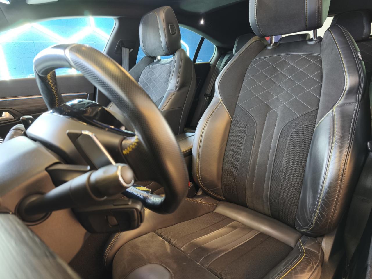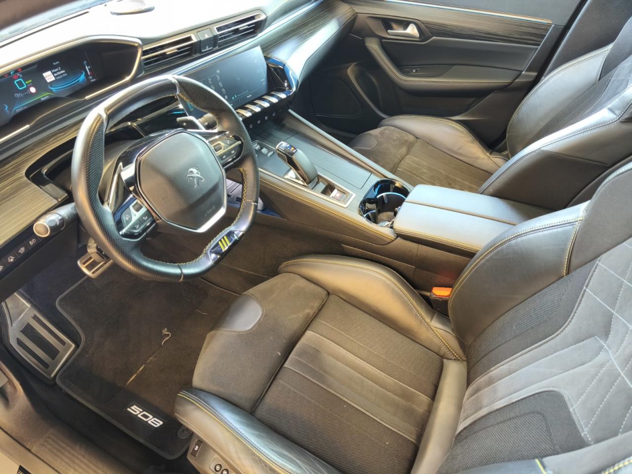 2 ports USB de chargement dans la console centrale arrière2 prises USB avantABS avec répartiteur électronique de freinage (REF) et aide au freinage d'urgence (AFU)Accès et démarrage mains-libresAccoudoir central avant à ouverture papillon, avec compartiment de rangement éclairéActive Suspension Control (Suspension pilotée)Aide graphique et sonore au stationnement arrière, avant et en latéralAir conditionné automatique bi-zone avec aérateurs aux places arrièreAir Quality System (sonde de pollution, couplée à un filtre à charbon actif Haute Efficacité)Airbags frontaux conducteur et passager adaptatifs (airbag passager déconnectable)Airbags latéraux conducteur et passager avantAirbags rideaux de tête aux places avant et arrièreAppuie-tête avant et arrière règlables en hauteurAutoradio MP3/bluetoothAVAS : système d'alerte sonore du véhicule émis à faible allure en roulage électrique, audible depuis l'extérieur pour la sécurité des piétonsAvertisseur de temps de conduiteBanquette arrière rabattable 2/3 - 1/3 avec accoudoir central et trappe à skisBas de caisse longitudinaux rapportés avec stickers 'griffes' noirBoîte à gants floquée et éclairéeBoitiers de rétroviseurs extérieurs noir brillantCalandre supérieure à lames flottantes et contour noir brillantCanules d'échappement déportées (gauche et droite)avec traitement electrolytique noirCapot avant actifCeintures de sécurité arrière, avec limiteurs d'effort progressifsCeintures de sécurité avant à enrouleurs à prétension pyrotechnique et limiteur d'effortChargeur 3,7 kW + Cable de recharge T2 avec prise muraleColonne de direction avec réglage manuel de hauteur et de profondeurCombiné numérique tête haute personnalisé Peugeot Sport EngineeredCommandes de lève-vitres avec inserts chromésConsole centrale avant avec deux porte-gobelets rétroéclairésContrôle de la charge de la batterie à distanceContrôle de stabilité de la remorque (TSM)Contrôle dynamique de stabilité CDS avec antipatinage électronique ASRContrôle électronique de trajectoire (ESC)Crochets de fixation pour cintre (x2 à l'arrière)Décors de planche de bord, panneaux de portes et façade de console centrale en bois façon essence de ZebranoDétection de sous-gonflage indirecteDirection assistée électriqueEclairage d'ambiance bleu sur les portes avant, la planche de bord, les porte-gobelets et sous la console centraleEclairage intérieur LED : plafonnier tactile 3 spots + 2 LEDs d'ambiance, 2 liseuses arrière, pare-soleil, boîte à gants, accoudoir central, zone connectique, caves à pied, zone coffre (x2)Ecrous antivolEntourage des vitres en finition noire brillanteEssuie-vitre avant avec système de lavage 'Magic Wash'Feux antibrouillard arrièreFeux de reculFilets aumônières au dos des sièges avantFixation pour sièges enfants ISOFIX et Top Tether pour les places arrièreFonction 'Mirror Screen' (Apple Carplay / Android Auto)Frein de stationnement électrique et automatique avec aide au démarrage en penteGrille inférieure avec écopes latérales motif nid d'abeille, contour noir brillant et conduit d'air teinté KryptoniteHabitacle et ciel de pavillon noirHayon motoriséJantes alliage 20'' forgées bi-ton diamantées vernis 'Black Mist'Jupe de pare-chocs arrière noir brillant avec ailettes verticalesKit de dépannage pneumatiqueLève-vitres électriques avant et arrière, séquentiels et antipincementLimiteur de vitesseLion sur capot et bandeau de volet arrière 'Dark Chrome'Monogramme 508 noir satin sur calandre et volet de coffrePack Drive Assist PlusPack Electrique à mémoire & MassagesPack InviolabilitéPack Safety PlusPack VisibilitéPare-chocs arrière avec spoilers rapportés et stickers 'griffes' noirPare-chocs avant avec spoilers rapportés et stickers 'griffes' noir / KryptonitePédalier et repose-pied en aluminiumPeinture métallisée Gris SeleniumPEUGEOT Connect : Navigation connectée 3D avec reconnaissance vocale - Cartographie Europe avec connexion automatique et permanente aux services de Navigation connectée, SOS et Assistance, TéléservicesPeugeot i-Cockpit avec combiné tête haute numérique reconfigurable 12,3'', écran tactile capacitif 10" et volant compact multi-fonctionsPlanche de bord surpiquée Kryptonite/TramontanePlancher de coffre fixe avec articulation pour accès au coffre de rangement du câble de rechargePré-chauffage / climatisation du véhicule à distanceProjecteurs Full LED avec correction automatique de site, clignotants avant à LED et éclairage en virage statique et feux 3D Full LED adaptatifsRadio avec écran tactile capacitif 10'' HD et Toggle SwitchesRadio Numérique DABRecharge smartphone sans filRétroviseurs extérieurs photosensibles électriques et dégivrants, rabattables électriquement avec éclairage d'accueil à LED, indexation de marche arrièreSélecteur de modes de conduite 'Drive Modes' : modes Electric/HYBRID/Confort/Sport/4WDSellerie Cuir Sellier noir, Alcantara et maille technique 3D avec surpiqures Kryptonite/TramontaneSeuils de portes avant en aluminium anodisé noir, avec marquage PEUGEOT SPORT ENGINEEREDSignature 3 griffes Kryptonite sur le capot, les custodes et le volet arrièreSurtapis avant et arrière avec surpiqures Kryptonite/TramontaneSystème de vision nocturne « Night Vision »Système Hi-Fi Premium Focal - 10 haut-parleursThèmes d'ambiances du combiné et de l'écran tactile personnalisables : Kryptonite ou DichroiqueToggle Switches' chromés (touches 'piano' d'activation des fonctions de l'écran tactile)Trappe à carburant (aile arrière droite) avec ouverture depuis l'habitacleTrappe de recharge électrique (aile arrière gauche) avec éclairage d'accueil et témoins lumineux de charge programmableVerrouillage automatique de tous les ouvrants en roulantVerrouillage centralisé à distance (2 télécommandes)Visiopark 2 : caméras avant et de recul avec restitution sur l'écran tactile d'une vue avant ou arrièr