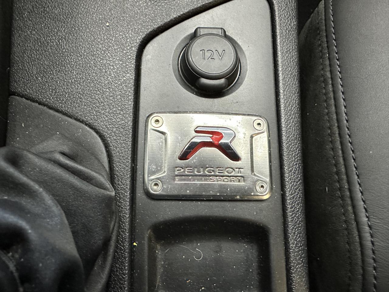 2 télécommandes 3 boutonsAccoudoir central avant réglableAfficheur graphiqueAide sonore et graphique au stationnement arrièreAileron arrière fixe sportAir conditionné automatique avec filtre combiné pollen/charbon actifAirbags frontaux conducteur et passager adaptatifsAirbags latérauxAlarme sonore d'oubli d'extinction des feux et de la clé de contactAllumage automatique des feux de détresseAntiblocage des roues (ABS)Antidémarrage codé électroniqueAppuie-tête avant intégrésArches de toit noir matAssistance au freinage d'urgenceBaquets sport : sièges avant à maintien renforcé habillé de cuir et Alcantara avec surpiqures rougeBoîte à gants éclairée, réfrigérableCeintures de sécurité avant et arrière 3 points avec limiteur d'effort et déclenchement pyrotechnique à l'avantCombiné et montre analogique aspect carbone et métalContrôle dynamique de stabilité - ESP, ASR perfo et assistance au démarrage en côteDifférentiel à glissement limité TorsenDiffuseur arrière avec double canule d'échappement latérales symétriquesEcrous antivol de jantes alliage (x4)Equipement Peugeot Connect SOS + Peugeot Connect AssistanceEtriers de frein avant rouge Peugeot Sport (étriers arrière noir)Façade technique noir nacré brillant + décors chrome brosséFeux arrière à rideaux de lumière et clignotants arrière à LEDsFeux diurnes à LEDFixations Isofix sur sièges arrièreIndicateur de température extérieureJantes alliage 19'' biton noir mat exclusivesKit de dépannage pneumatiqueLève-vitres électriques séquentiels et antipincementLiaisons au sol spécifiques : voies élargies, assiette abaissée, ESP déconnectable recalibréLunette arrière surteintée à double bossageOrdinateur de bordPack sportPack VisibilitéPack VisionPare-brise acoustiquePare-chocs avant et arrière sport couleur caissePédalier, repose-pied et seuil de porte aluminiumPommeau de levier de vitesses spécifiquePrise 12V à l'avantRégulateur et limiteur de vitesseRépartiteur électronique de freinage REFRétroviseurs extérieurs électriques et chauffants, rabattables électriquementSuperverrouillageSurpiqûres rouges sur planche de bord, volant cuir sport, frises de portes, accoudoir et soufflet de levier de vitessesTémoins de non-bouclage et de débouclage visuel et sonore des ceintures de sécuritéToit à double bossage noir Onyx (couleur caisse sur Gris Haria et Noir Perla Nera)Typage R (Monogramme R avant, arrière, sur Jantes, Seuils de porte et Plaque de console centrale)Verrouillage automatique de tous les ouvrants en roulantVerrouillage centralisé des portes avec plipVolant réglable en hauteur et en profondeurVolant sport cuir pleine fleur à méplat et pommeau de levier de vitesse cuir et aspect aluminiumWIP Nav Pus