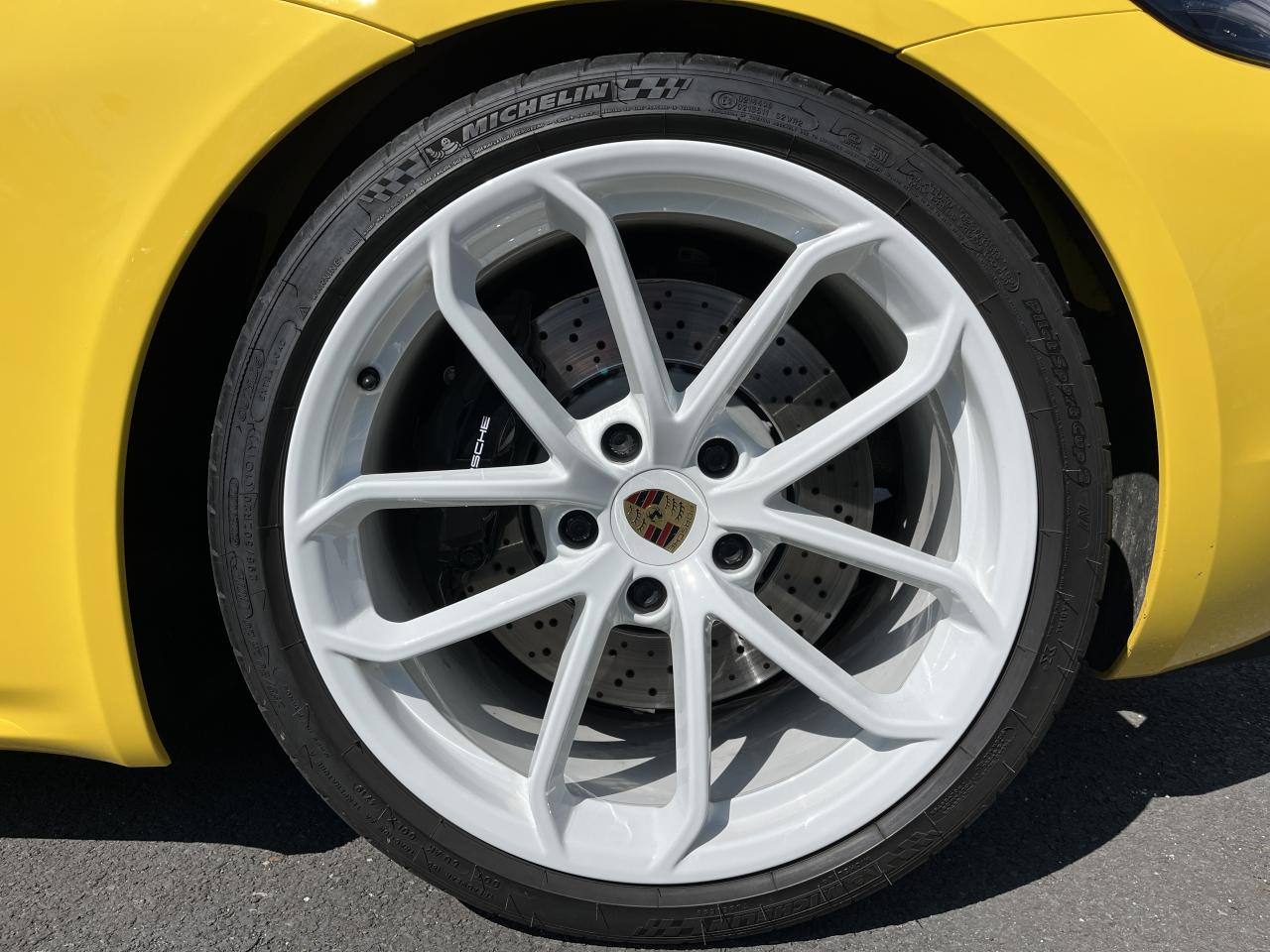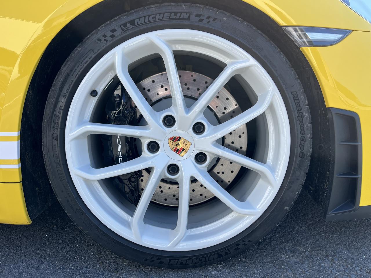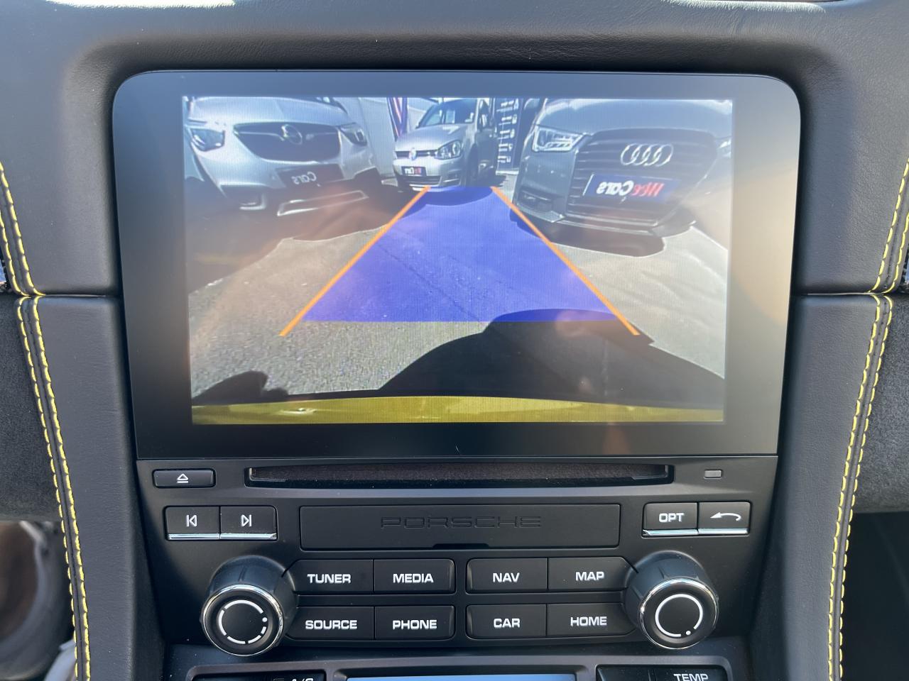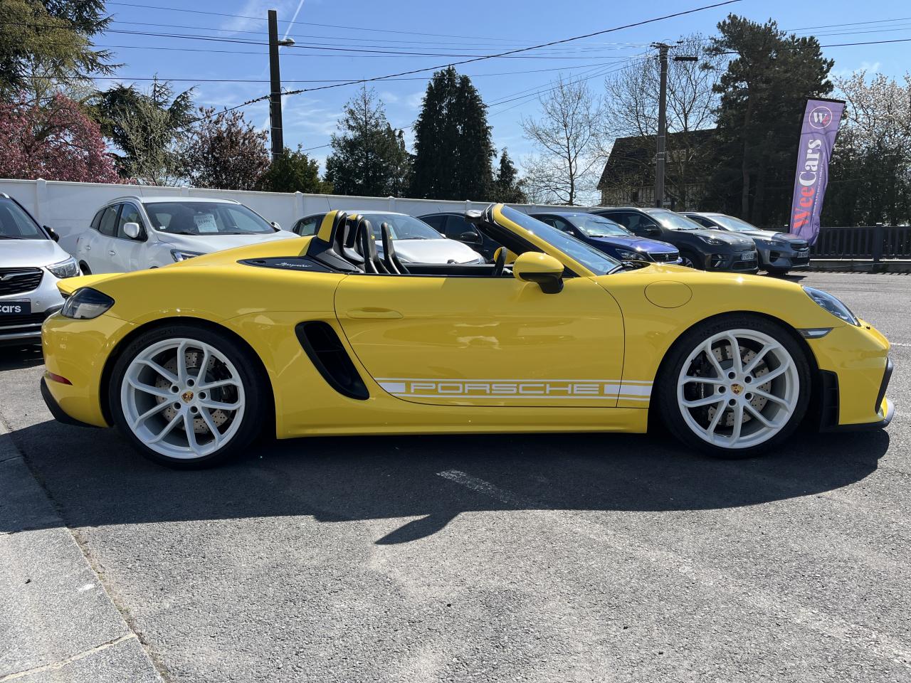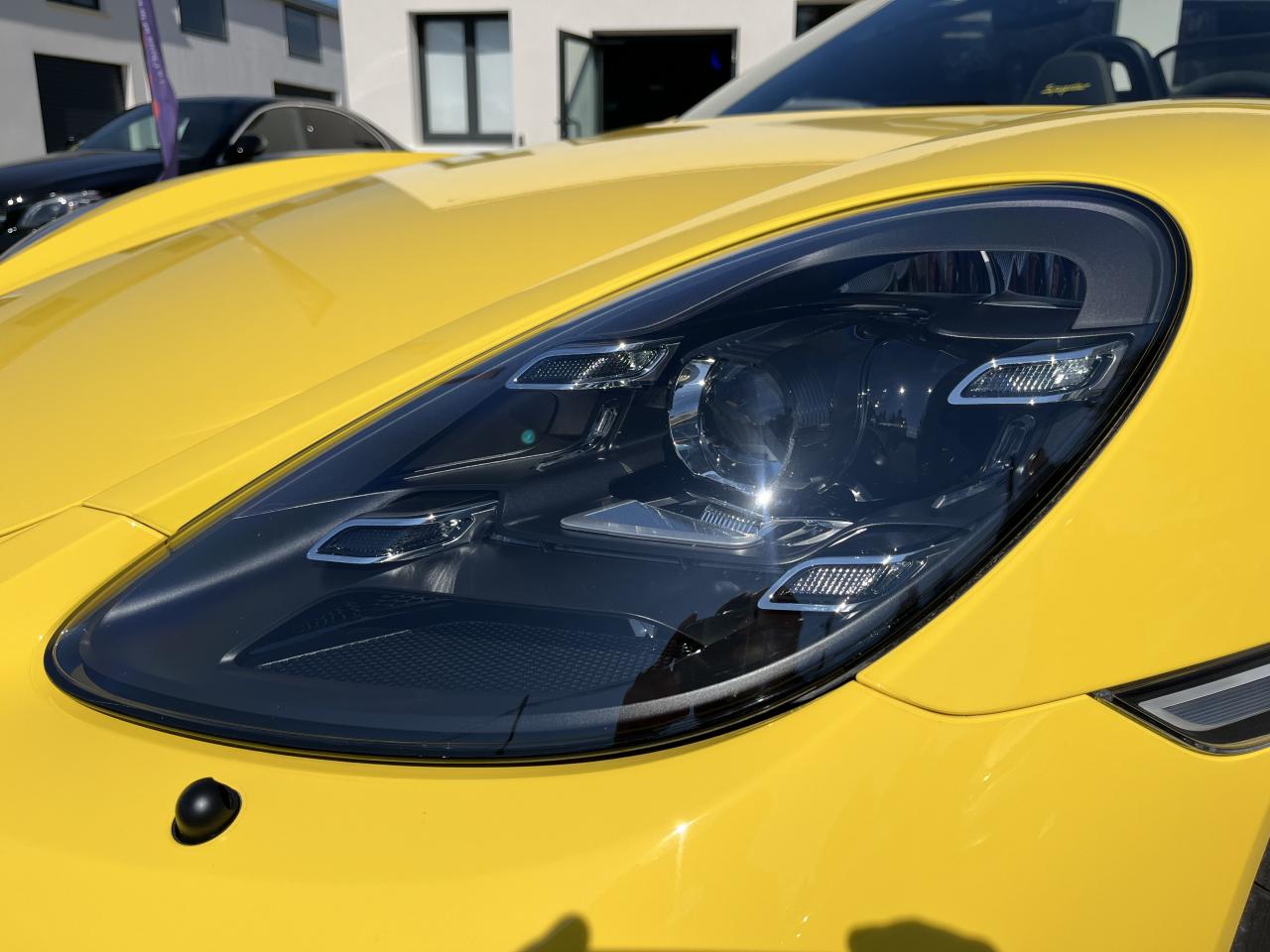 Affichage numérique : vitesse, rapport engagé, kilométrage total et journalier et heureAileron arrière spécifique Spyder à déploiement automatiqueAllumage automatique des feux en cas d'ouverture/fermeture du véhiculeAppuie-tête avec inscription «Spyder » brodée en NoirArceau de sécurité fixeBaguettes de seuil de porte avec désignation du modèleBloc moteur et culasse en aluminiumBoîte de vitesse mécanique à 6 rapports avec volant bimasseCapot arrière en Aluminium avec 2 streamliners dynamiquesCapote allégée, manuelle avec verrouillage électriqueCapote noireChâssis réglable pour l'usage sur circuit (carrossage, voie, barres stabilisatrices)Coffre à l’avant et à l’arrièreCombiné d'instruments avec compte-tours central et écran couleur haute définition de 4,6 poucesContrôle de pression des pneus ( TPMS )Deux catalyseurs à 3 voies et diagnostic embarqué dédié à la surveillance du système de dépollutionDirection électromécanique à assistance variable asservie à la vitesseDisques de freins de 380 mm de diamètre à l’avant, de 380 mm à l’arrière, ventilés et perforésEn Alcantara Noir : couronne du volant, parties centrales des sièges, poignées de porte, panneaux de porte, couvercle du compartiment rangement de la console centrale, ciel de toit. Ceintures en Noir. Coutures décoratives et logo 'Spyder' en NoirEnjoliveurs de roue avec écusson PorscheEntrées d'air latérales en couleur NoirEssieux avant et arrière multibras avec ressort additionnel intégré, barre stabilisatrice, suspension du châssis en partie avec rotules complémentairesEssuie-glaces avec buse de lave-glace intégréeÉtriers fixes monobloc en aluminium à 6 pistons à l'avant et 4 pistons à l'arrièreFeux à LED supplémentaires teintés intégrés au bouclier avant avec feux de position, clignotants et rappels de clignotant latérauxFeux arrière à DEL avec feux stop intégrés 4 points et feux de reculFeux arrière teintésFiltre à particulesFonction Start/StopFrein de parking électriqueJantes 718 Spyder 20 pouces avec pneus sport 245/35 ZR 20 à l'avant et 295/30 ZR 20 à l'arrièreKit de réparation avec compresseur électriqueLevier de vitesse raccourciLogo '718' sur le levier de vitesseLubrification à carter sec avec carter d'huile séparéPack Sport ChronoPanneau de soubassement fermé avec deux entrées de ventilation (type NACA) pour le système d'échappementPartie inférieure du bouclier arrière Noire avec diffuseurParties centrales des sièges en Alcantara, parties latérales et appuis-tête en cuirPorsche Active Suspension Management (PASM) avec réglage sport et abaissement du châssis d'environ 30 mmPorsche Communication Management (PCM) avec pré-équipement pour téléphone portable et interface audioPorsche Side Impact Protection System (POSIP), comprenant les éléments suivants : protection anti-encastrement latérale dans les portes, airbags thorax intégrés dans les bandes latérales des sièges avant et airbags de tête intégrésPorsche Torque Vectoring (PTV) incluant un mécanisme de verrouillage du différentiel arrièreProjecteurs bi-xénon et feux de jours à LEDRepose-pied et pédalier design sportRéservoir 64lRétroviseur extérieur sur panneau de porte, chauffant, réglable électriquement, asphérique côté conducteurServices Porsche Vehicle Tracking System (PVTS) permet l'accès aux services de commande liés au véhicule, à travers les services Porsche Car ConnectSièges sport Plus avec bandes latérales rehaussées, réglage électrique du dossier et réglage manuel de l’avancée et de la hauteur du siège côtés conducteur et passagerSound Package Plus, 6 haut-parleurs, puissance totale de 110 watts avec amplificateur intégré et traitement numérique des signauxSuspension dynamique de la transmissionSystème antidémarrage avec verrouillage centralisé et télécommandeSystème d'alarmeSystème d'échappement sport avec deux sorties d'échappement en acier spécial en Noir (finition brillante)Système de stabilité dynamique du véhicule PSM (Porsche Stability Management) avec ABS, désactivable sur 2 niveaux (SC OFF et SC+TC OFF)VarioCam (régulateur des arbres à cames d'admission et d'échappement)Volant à réglage manuel en hauteur et en profondeurVolant sport GT au design particulièrement sportif