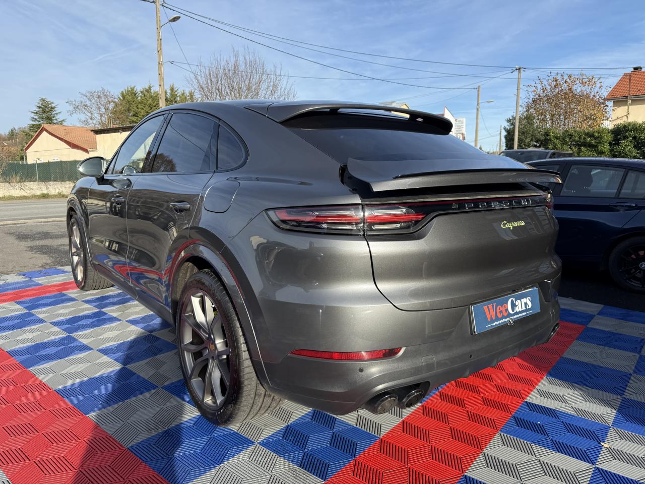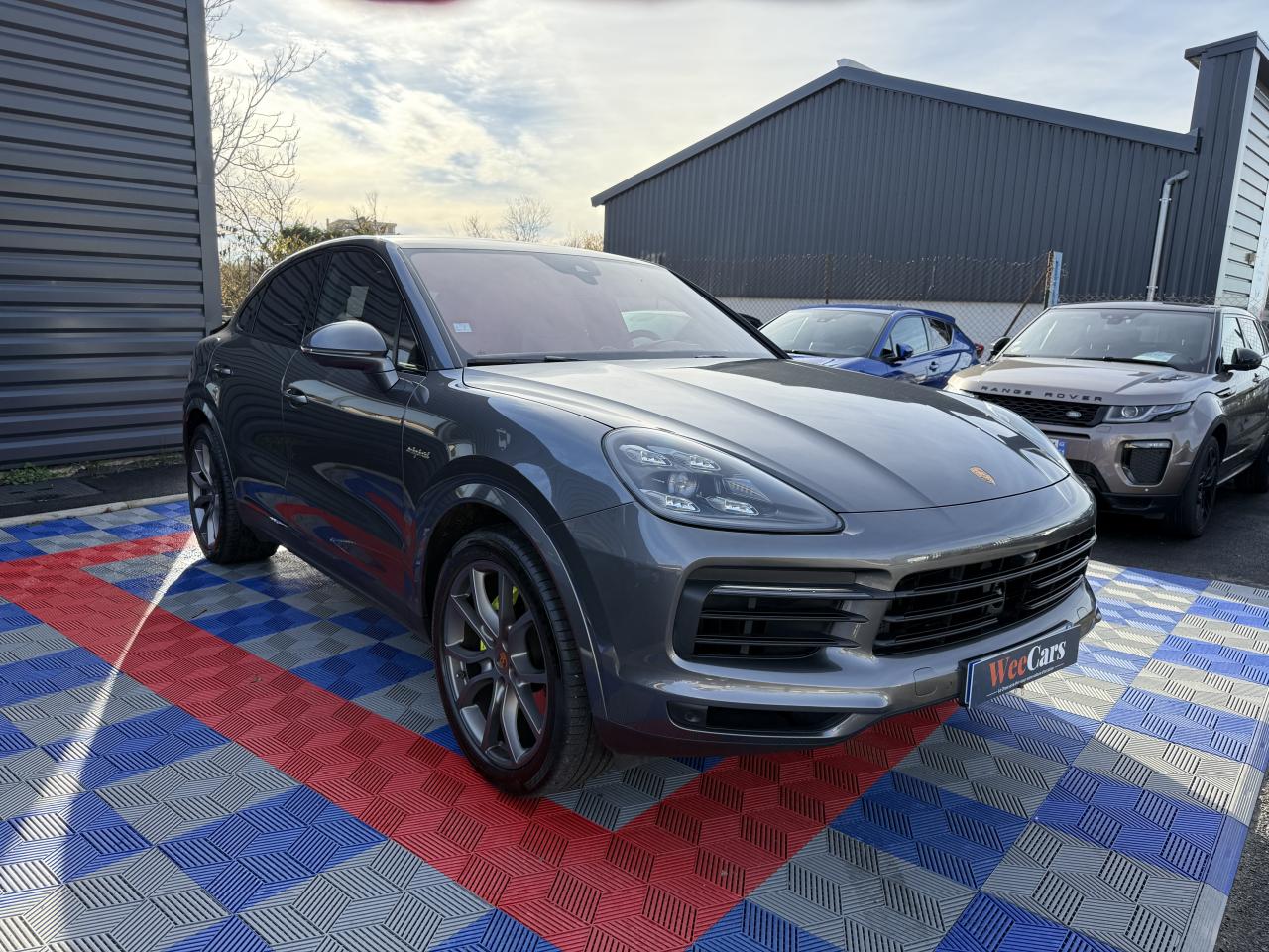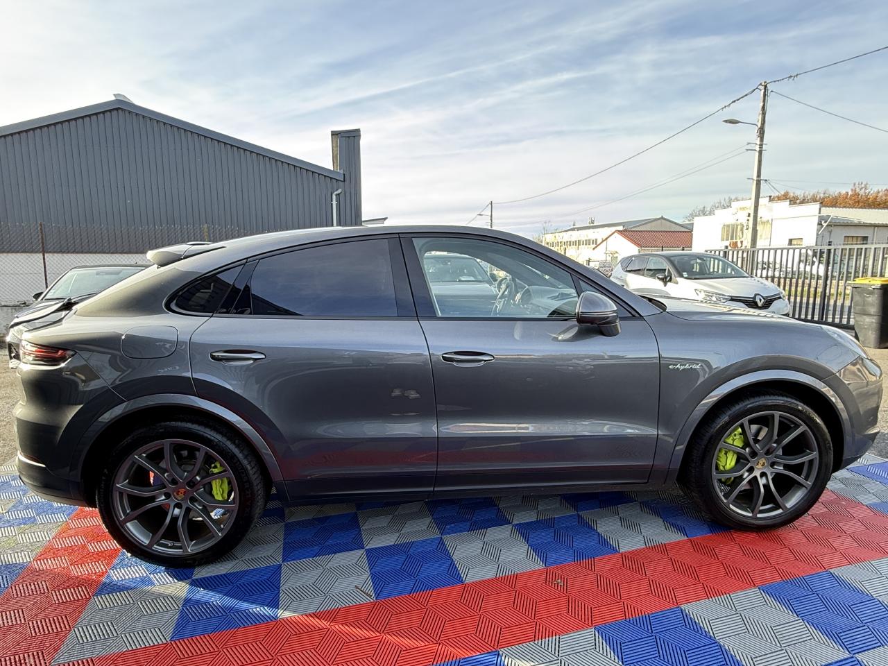 2 doubles sorties d’échappement, sur les côtés gauche et droit, acier brossé2 ports USB de chargement dans la console centrale arrière2 ports USB de chargement et de connexion dans le coffre de rangement de la console centrale avant4 places4 portes avec protection anti-encastrement latérale intégréeAccoudoir central AR avec 2 porte-gobelets, réglage longitudinalAir Curtains dans les passages de rouesAirbag genoux côté conducteur et passagerAirbags grand volume pour le conducteur et le passagerAirbags latéraux avant (siège avant)Airbags rideauxAlarme et double verrouillageAllumage automatique des feux en cas d'ouverture/fermeture du véhiculeApple CarPlayAssistance à la descente (Porsche Hill Control, PHC)Assistance parking avant et arrière avec caméra de reculAvertisseur de freinage d'urgenceBac de rangement dans la console centraleBaguettes de seuil de porte en Acier spécial avec monogramme du modèle à l’avant et à l'arrière : «Cayenne»Batterie allégéeBecquet arrière avec troisième feu de stop à LEDBecquet de toit arrière de couleur carrosserieBloc moteur en aluminiumBlocs optiques avant avec feux de position et clignotants à conducteurs de lumière à technologie LEDBoîte à gants réfrigéréeBoîte de vitesse Tiptronic S 8 rapportsBouclier avant avec prises d’air de refroidissement intégréesCâble de charge pour prise domestiqueCâble secteur permettant d’établir la connexion entre la prise industrielle rouge (400 V, 32 A, 5 broches) et l’unité de commandeCapot avant actifCapteur de pluieCapteur de retournementCarrosserie de conception allégée hybride entièrement galvanisée alliant Acier et AluminiumCarrosserie élargie à l'arrièreCarrosserie hybride en aluminium (capot moteur, hayon, portières et ailes)Ceintures de sécurité automatiques à 3 points avec prétensionneurs pyrotechniques à l'avant et à l'arrière, et limiteur d'effort à l'avantChargeur embarqué (3.6 kW)Châssis avec suspension à ressort hélicoïdauxCiel de toit en tissuClimatisation automatique avec réglage individuel de la température pour le conducteur et le passager, commande automatique du recyclage de l’air avec capteur de qualité de l’air et réglage individuel du débit d’air côtés conducteur eCombiné d’instruments avec 2 écrans haute résolutionCompte-tours analogique central avec fond de compteur Noir, powermètre et aiguille en Vert AcideConcept d’éclairage de l’habitacle à LED : temporisation d’arrêt, éclairage bas d’habitacle avant et arrière, éclairage du cendrier, de la boîte à gants, du démarreurConnect Plus avec module de navigation en ligne, module téléphone LTE avec lecteur de carte SIM et accès Internet sans fil ainsi que Porsche Car Connect incluant de nombreux services Porsche ConnectContrôle de pression des pneus ( TPMS )Contrôle stabilité remorque et mode PSM SPORTContrôle vocalCouvre-bagages souple enroulableCrochet porte-vêtement sur les montants latéraux (gauche/droite)Culasse en aluminiumDéflecteurs (Airblades) avec entrées d’air latéralesDégivrage de lunette arrière avec arrêt automatiqueDémarrage sans cléDétecteur d'humiditéDiamètre des disques de frein de 360 mm à l’avant et 358 mm à l’arrièreDisques de freins avant et arrière ventilésEclairage d'alentourÉlectronique de puissance, batterie lithium-ion d’une capacité énergétique de 14 kWh et accessoires moteur électriques (compresseur de climatisation et servofrein électrique)Entourage des vitres en finition noire brillanteEssieu arrière multibras en aluminiumEssieu avant multibras AluminiumEssuie-glace avant à 2 vitesses avec balayage intermittentEtriers de frein couleur Vert AcideÉtriers fixes monobloc en aluminium à 6 pistons à l'avant et 4 pistons à l'arrièreFeux arrière à LED avec graphisme tridimensionnel, avec feux stop intégrés 4 points et bandeau lumineuxFeux de jours à DEL 4 pointsFiltre à charbon actifFiltre à particulesFonction Auto-HoldFrein de parking électriqueFrein multi-collisionHayon automatiqueInjection directe d’essence (Direct Fuel Injection, DFI) avec position centrale des injecteursInscription "e-hybrid" sur les ailes avant gauche et droite entourée en Vert AcideInserts des lamelles des entrées d’air en Noir (finition brillante)Kit de réparation avec compresseur électriqueLarge soubassement caréné aérodynamiqueLimiteur de vitesseMiroirs de courtoisie éclairés conducteur et passagerMode Individual pour la sélection de réglages sportifs personnalisés du véhiculeMode SPORT PLUS avec réglage axé sur les performances pour le moteur, la boîte de vitesse et le châssisMonogramme avec bordure Vert AcideMonogramme du modèle sur le hayon arrière, en couleur ArgentPack intérieur Noir, finition brillantePack Sport ChronoParamètres de personnalisation du conducteurPare-chocs constitué de traverses haute résistance et de 2 éléments de déformation, comportant chacun 2 logements taraudésPhares à LEDPoignées de portes couleur carrosseriePorsche Active Aerodynamics (PAA) avec becquet de toit à déploiement adaptatifPorsche Active Suspension Management (PASM)Porsche Communication Management (PCM) avec module de navigationPorsche Mobile Charger avec support mural, sac de transport et câble de 4,5 mètres de la voiture au chargeurPorsche Traction Management (PTM) : transmission intégrale dynamique avec différentiel central multidisque électroniquePorte-bouteilles dans les contre-portes avant et arrièrePorte-cartesPorte-gobelets doubles à diamètre variable à l'avant et à l'arrièrePré-climatisationPré-équipement attelagePré-équipement pour le montage d'un système de transport sur toitPrise 12 V dans la boîte à gants et le coffrePrise de courant 12 V dans la console centrale avantPrise de rechargeProtection anti-encastrement latérale dans les portièresRangement sous les sièges avantRefroidissement de l'air de suralimentationRefroidissement par e