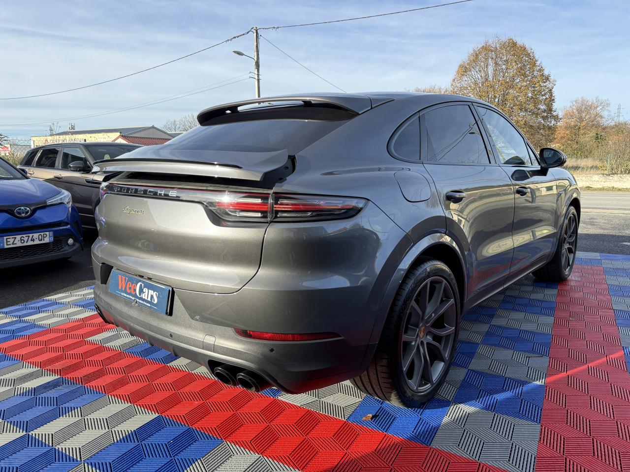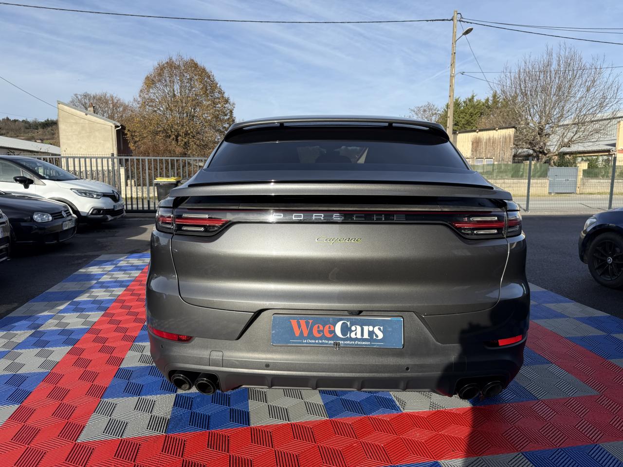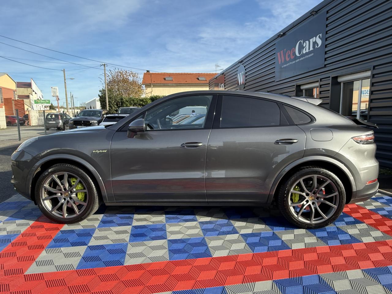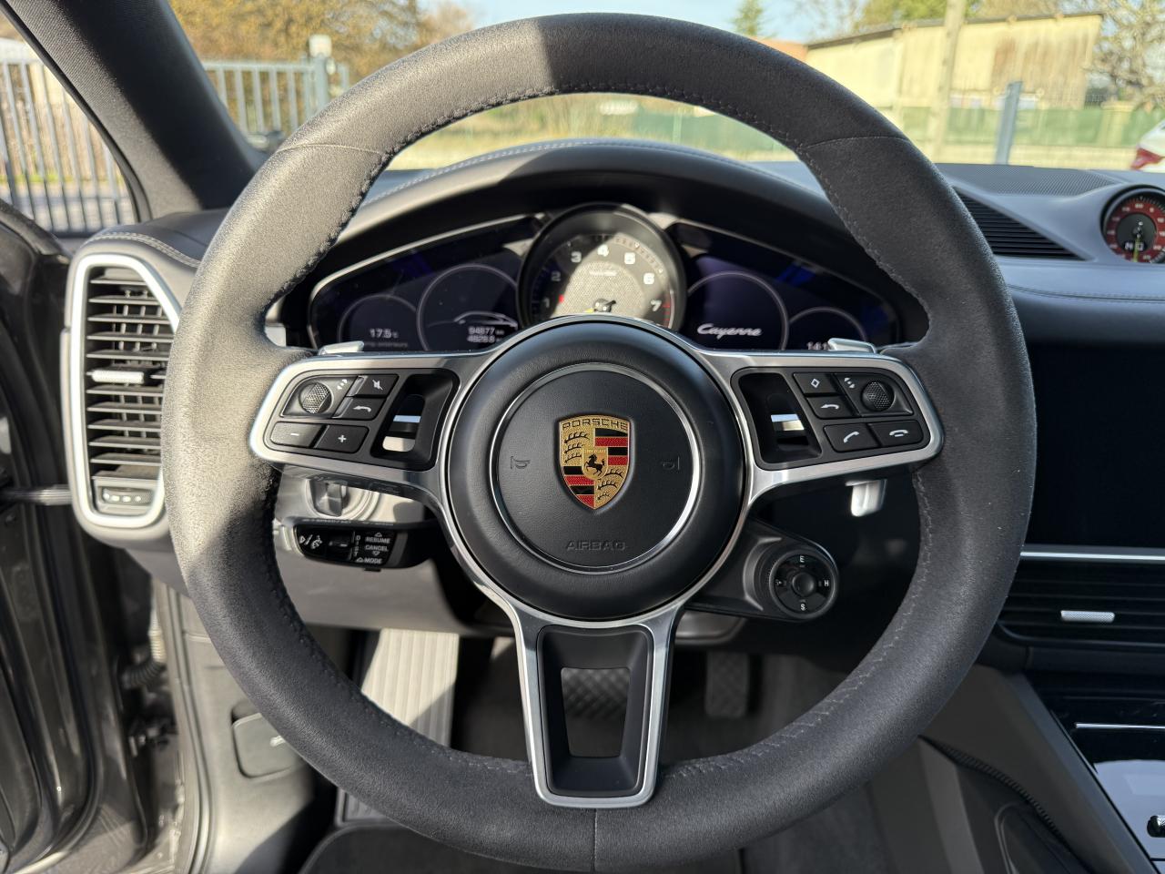 2 doubles sorties d’échappement, sur les côtés gauche et droit, acier brossé2 ports USB de chargement dans la console centrale arrière2 ports USB de chargement et de connexion dans le coffre de rangement de la console centrale avant4 places4 portes avec protection anti-encastrement latérale intégréeAccoudoir central AR avec 2 porte-gobelets, réglage longitudinalAir Curtains dans les passages de rouesAirbag genoux côté conducteur et passagerAirbags grand volume pour le conducteur et le passagerAirbags latéraux avant (siège avant)Airbags rideauxAlarme et double verrouillageAllumage automatique des feux en cas d'ouverture/fermeture du véhiculeApple CarPlayAssistance à la descente (Porsche Hill Control, PHC)Assistance parking avant et arrière avec caméra de reculAvertisseur de freinage d'urgenceBac de rangement dans la console centraleBaguettes de seuil de porte en Acier spécial avec monogramme du modèle à l’avant et à l'arrière : «Cayenne»Batterie allégéeBecquet arrière avec troisième feu de stop à LEDBecquet de toit arrière de couleur carrosserieBloc moteur en aluminiumBlocs optiques avant avec feux de position et clignotants à conducteurs de lumière à technologie LEDBoîte à gants réfrigéréeBoîte de vitesse Tiptronic S 8 rapportsBouclier avant avec prises d’air de refroidissement intégréesCâble de charge pour prise domestiqueCâble secteur permettant d’établir la connexion entre la prise industrielle rouge (400 V, 32 A, 5 broches) et l’unité de commandeCapot avant actifCapteur de pluieCapteur de retournementCarrosserie de conception allégée hybride entièrement galvanisée alliant Acier et AluminiumCarrosserie élargie à l'arrièreCarrosserie hybride en aluminium (capot moteur, hayon, portières et ailes)Ceintures de sécurité automatiques à 3 points avec prétensionneurs pyrotechniques à l'avant et à l'arrière, et limiteur d'effort à l'avantChargeur embarqué (3.6 kW)Châssis avec suspension à ressort hélicoïdauxCiel de toit en tissuClimatisation automatique avec réglage individuel de la température pour le conducteur et le passager, commande automatique du recyclage de l’air avec capteur de qualité de l’air et réglage individuel du débit d’air côtés conducteur eCombiné d’instruments avec 2 écrans haute résolutionCompte-tours analogique central avec fond de compteur Noir, powermètre et aiguille en Vert AcideConcept d’éclairage de l’habitacle à LED : temporisation d’arrêt, éclairage bas d’habitacle avant et arrière, éclairage du cendrier, de la boîte à gants, du démarreurConnect Plus avec module de navigation en ligne, module téléphone LTE avec lecteur de carte SIM et accès Internet sans fil ainsi que Porsche Car Connect incluant de nombreux services Porsche ConnectContrôle de pression des pneus ( TPMS )Contrôle stabilité remorque et mode PSM SPORTContrôle vocalCouvre-bagages souple enroulableCrochet porte-vêtement sur les montants latéraux (gauche/droite)Culasse en aluminiumDéflecteurs (Airblades) avec entrées d’air latéralesDégivrage de lunette arrière avec arrêt automatiqueDémarrage sans cléDétecteur d'humiditéDiamètre des disques de frein de 360 mm à l’avant et 358 mm à l’arrièreDisques de freins avant et arrière ventilésEclairage d'alentourÉlectronique de puissance, batterie lithium-ion d’une capacité énergétique de 14 kWh et accessoires moteur électriques (compresseur de climatisation et servofrein électrique)Entourage des vitres en finition noire brillanteEssieu arrière multibras en aluminiumEssieu avant multibras AluminiumEssuie-glace avant à 2 vitesses avec balayage intermittentEtriers de frein couleur Vert AcideÉtriers fixes monobloc en aluminium à 6 pistons à l'avant et 4 pistons à l'arrièreFeux arrière à LED avec graphisme tridimensionnel, avec feux stop intégrés 4 points et bandeau lumineuxFeux de jours à DEL 4 pointsFiltre à charbon actifFiltre à particulesFonction Auto-HoldFrein de parking électriqueFrein multi-collisionHayon automatiqueInjection directe d’essence (Direct Fuel Injection, DFI) avec position centrale des injecteursInscription "e-hybrid" sur les ailes avant gauche et droite entourée en Vert AcideInserts des lamelles des entrées d’air en Noir (finition brillante)Kit de réparation avec compresseur électriqueLarge soubassement caréné aérodynamiqueLimiteur de vitesseMiroirs de courtoisie éclairés conducteur et passagerMode Individual pour la sélection de réglages sportifs personnalisés du véhiculeMode SPORT PLUS avec réglage axé sur les performances pour le moteur, la boîte de vitesse et le châssisMonogramme avec bordure Vert AcideMonogramme du modèle sur le hayon arrière, en couleur ArgentPack intérieur Noir, finition brillantePack Sport ChronoParamètres de personnalisation du conducteurPare-chocs constitué de traverses haute résistance et de 2 éléments de déformation, comportant chacun 2 logements taraudésPhares à LEDPoignées de portes couleur carrosseriePorsche Active Aerodynamics (PAA) avec becquet de toit à déploiement adaptatifPorsche Active Suspension Management (PASM)Porsche Communication Management (PCM) avec module de navigationPorsche Mobile Charger avec support mural, sac de transport et câble de 4,5 mètres de la voiture au chargeurPorsche Traction Management (PTM) : transmission intégrale dynamique avec différentiel central multidisque électroniquePorte-bouteilles dans les contre-portes avant et arrièrePorte-cartesPorte-gobelets doubles à diamètre variable à l'avant et à l'arrièrePré-climatisationPré-équipement attelagePré-équipement pour le montage d'un système de transport sur toitPrise 12 V dans la boîte à gants et le coffrePrise de courant 12 V dans la console centrale avantPrise de rechargeProtection anti-encastrement latérale dans les portièresRangement sous les sièges avantRefroidissement de l'air de suralimentationRefroidissement par e
