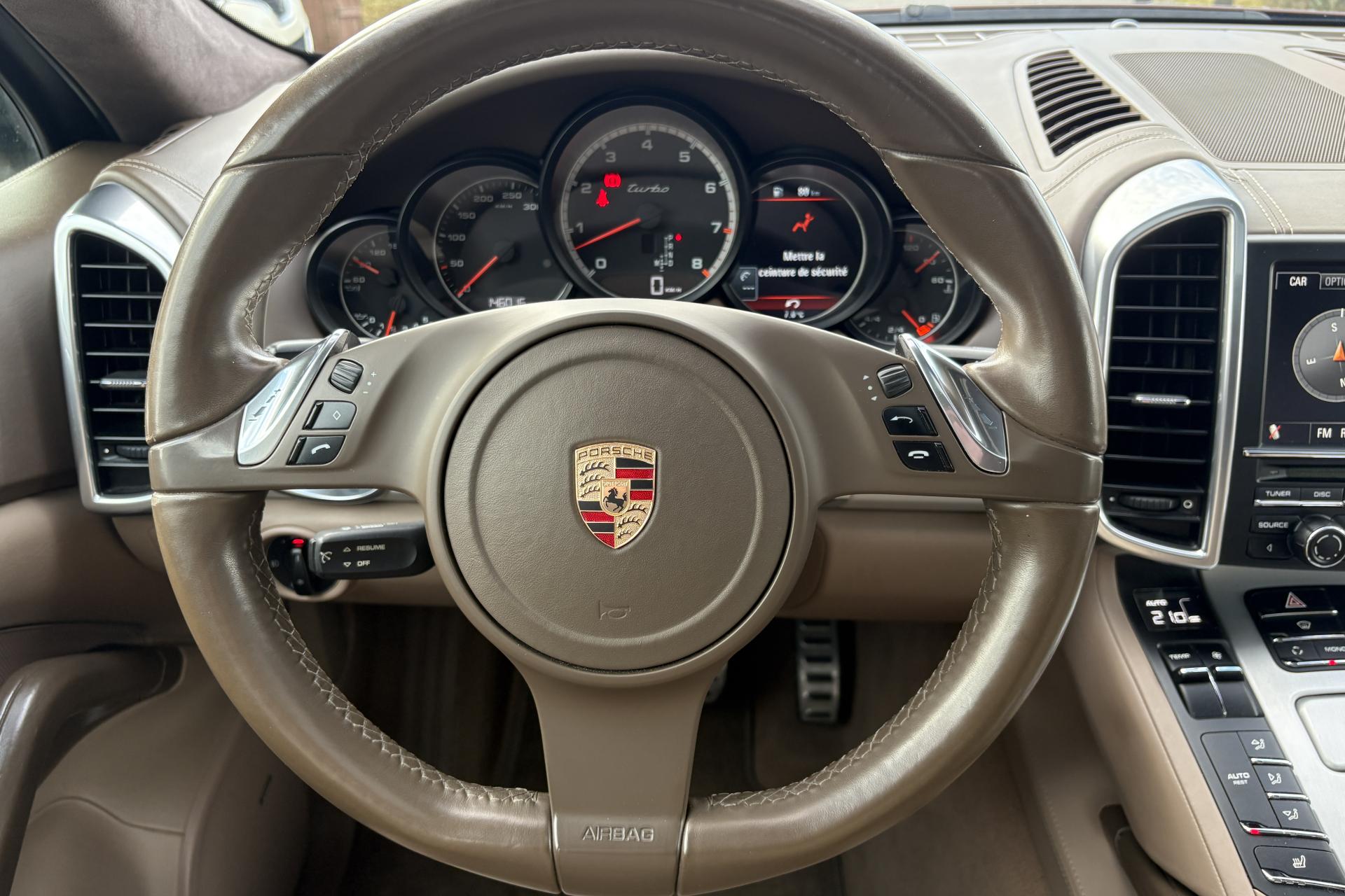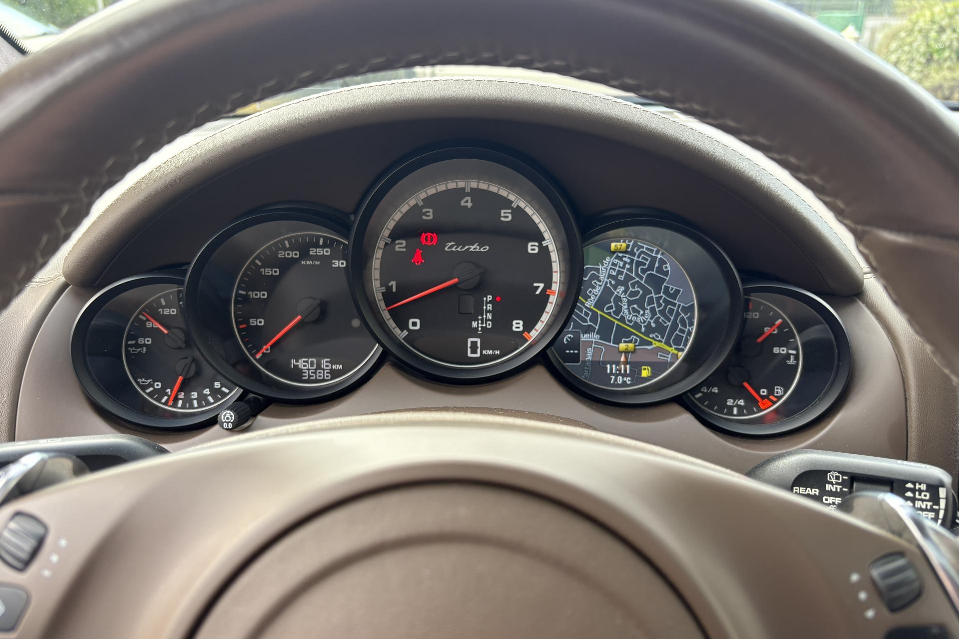 3ème feu stop arrière4 portes avec protection anti-encastrement latérale5 instruments ronds intégrés dans le cockpit5 places, banquette arrière avec 2 sièges latéraux confortables et une place centrale5 prises 12 voltsAccoudoir de la console centrale relevable et réglable en profondeurAffichage analogique : température et pression d'huile, température du liquide de refroidissement, niveau carburantAffichage numérique (écran TFT du combiné d'instruments) de la pression de suralimentationAirbags grand volume pour le conducteur et le passagerAirbags latéraux avantAirbags rideauxAntenne intégrées dédiées à la radio, la navigation, le téléphone et la TV (selon l'équipement choisi)Antennes intégrées permettant la réception de la radio, de la navigation, du téléphone et de la TV (selon les équipements, fonction RDS Diversity uniquement pour le PCM)Appuie-tête réglables (2 positions) sur 4 sièges (pas sur la place centrale arrière)Assistance automatique à l'utilisation des feux de croisementAssistance Parking avant et arrière avec affichages à diodes à l'avant et à l'arrière de l'habitacle, alarme sonore d'intensité variable et capteurs logés dans les pare-chocsAvertisseur sonore à 2 tonalités avec avertisseur sonore simple supplémentaire pour système d'alarmeBaguettes de parement de couleur ArgentBaguettes de seuil de porte en acier spécialBaguettes de seuil de porte en acier spécial avec monogramme du modèleBanquette AR fractionnable 60/40 ou entièrement rabattableBanquette arrière fractionnable (40/20/40)Banquette arrière fractionnable (40/20/40), accoudoir central rabattable, avec réglage manuel de la profondeur d'assise et de l'inclinaison du dossierBloc moteur en aluminiumBobines d allumage séparées, distribution, statique à haute tensionBOSE Surround Sound-System doté de 14 haut-parleurs, d'une puissance globale de 585 wattsBouclier avant avec entrées d'airBoucliers avant et arrière déformables avec pare-chocs en alliage légerCapot moteur avec double bossageCarrosserie galvanisée autoporteuseCeintures de sécurité 3 points avec prétensionneur (sièges avant et sièges arrière latéraux) et limiteur d'effort de ceinture (sièges avant), ceinture 3 points sur la place arrière centraleCeintures de sécurité en NoirChauffage de la lunette arrière avec arrêt automatiqueCiel de toit en AlcantaraClimatisation automatique avec réglage séparé côtés conducteur et passager, contrôle automatique du recyclage de l'air incluant un capteur de qualité de l'airCommande d'accélérateur électroniqueCompensation hydraulique du jeu des soupapesConcept d'éclairage de l'habitacleContrôle de pression des pneus ( TPMS )Couleurs métalliséesCoupure d'alimentation automatique en décélérationCouvre-bagages souple enroulable (dissimulé dans un boitier amovible)Culasse en aluminiumDeux sorties d'échappement doubles couleur Argent matDeux sorties d'échappement simples couleur Argent matDiagnostic embarqué (OBD II) avec contrôle des émissionsDirection assistéeDispositif de contrôle de l'usure des freins sur chaque plaquetteDispositif de gestion thermiqueDos des sièges avant avec aumônières intégréesDouble pare-soleil conducteur et passagerEcran TFT couleur haute définition 4,8 pouces, affichage des rapports de la Tiptronic S, des intervalles de révision, de la température extérieure et des différents témoins d'alarmeEssieu arrière multibrasEssieu avant à double triangulationEssuie-glace arrière avec réglage de l'intermittence et buse de lave-glace intégrée au becquetEssuie-glace avant à 2 vitesses de balayage et intermittence variable, capteur de pluie, et buses de lave-glace chauffantesEtriers de frein rougesFermeture centralisée des portes à télécommandeFeux arrière à DEL avec feux stop adaptatifsFeux avant avec feux de position et clignotants à DELFeux de jour avec 4 diodes intégrées aux pharesFiltres à particules et à pollen avec filtre à charbon actifFonction Stop-Start automatiqueFrein de parking électriqueHayon arrière avec becquet intégréInjection directe d'essence (DFI)Instruments avec fonds de compteurs noirs et inscription "turbo"Intérieur cuirKit de réparation pneumatiqueKit de réparation pneumatique avec compresseur électriqueLamelles des entrées d'air latérales en NoirLève-vitres électriques avant et arrière, avec fonction confort et anti-pincement et fonction et abaissement séquentielLubrification à carter sec intégrée avec aspiration à deux étagesModule de gestion électronique EMS SDI 8Ordinateur de bordPack Intérieur Aluminium brosséPack Mémoire confortPédales en acier spécialPeinture métalliséePhares bi-xénon avec Porsche Dynamic Light System (PDLS)Phares principaux Bi-Xénon avec fonction PDLS (Porsche Dynamic Light System)Poignées de porte peintes dans la couleur de la carrosseriePorsche Active Suspension Management (PASM)Porsche Communication Management avec module de navigation, écran TFT 7 pouces couleur, double tuner FM lecteur CD/DVD, compatible MP3, 11 haut-parleurs avec amplificateur externe offrant une puissance de 235 wattsPorsche Traction Management (PTM)Porte-gobelets doubles à diamètre variable à l'avant et à l'arrièrePortes avec protection anti-encastrement latéralePré-équipement attelageProjecteurs antibrouillardRange-bouteille dans les contre-portes avant et arrièreRangements dans l'habitacleRefroidissement du moteurRéglage électronique du ralentiRégulateur de vitesse (Tempostat)Régulation lambda stéréoRégulation sélective des cames d'échappementRégulation sélective du cliquetisRenvois de ceinture des sièges avant et arrière latéraux réglables manuellement en hauteurRétroviseur intérieur anti-éblouissement à commande manuelleRétroviseurs extérieurs chauffants, réglables et repliables électriquement, de forme asphérique côté conducteurRétroviseurs intérieur et extérieurs automatiques anti-éblouisseme